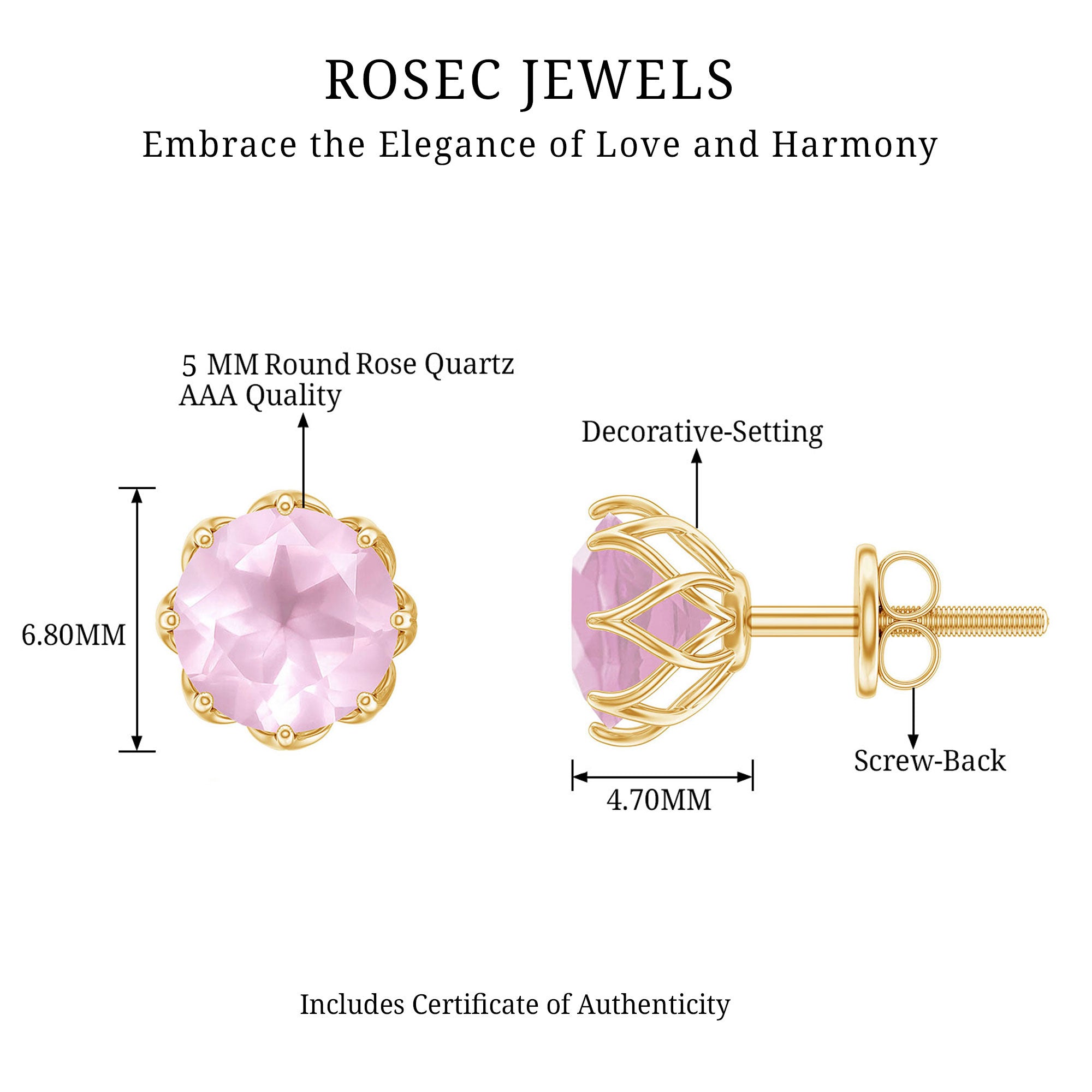Perfect to slip on every day, Rose Quartz Stud Earrings are worn directly through the earlobe, without hanging or dropping down. To perfectly lend them a feminine touch, they are fashioned with the Centerpiece of Rose Quartz. Despite being a timeless and classic choice of accessory, these earrings offer great versatility. While Simple Rose Quartz Solitaire Earrings best resonate with minimalist senses of style, those adorned with Halo, vintage engravings, two stones, cluster, or eye-catching motifs are perfect for the women who are all about fancy aesthetics.