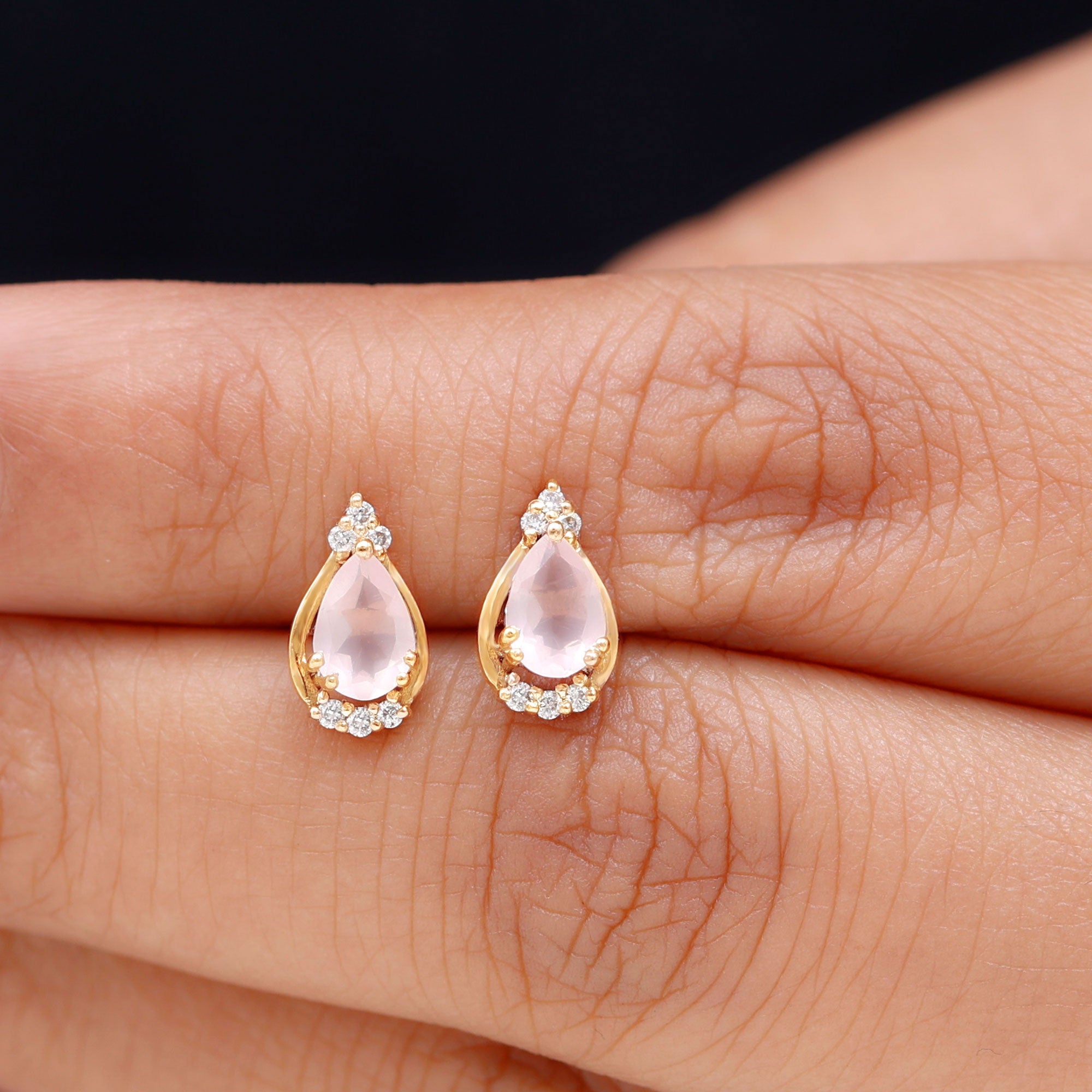 Now that you’re well versed with this gemstone, let’s head to the fun part and acquaint you with our versatile catalog of Rose Quartz Gold Earrings that has something in store for everyone.