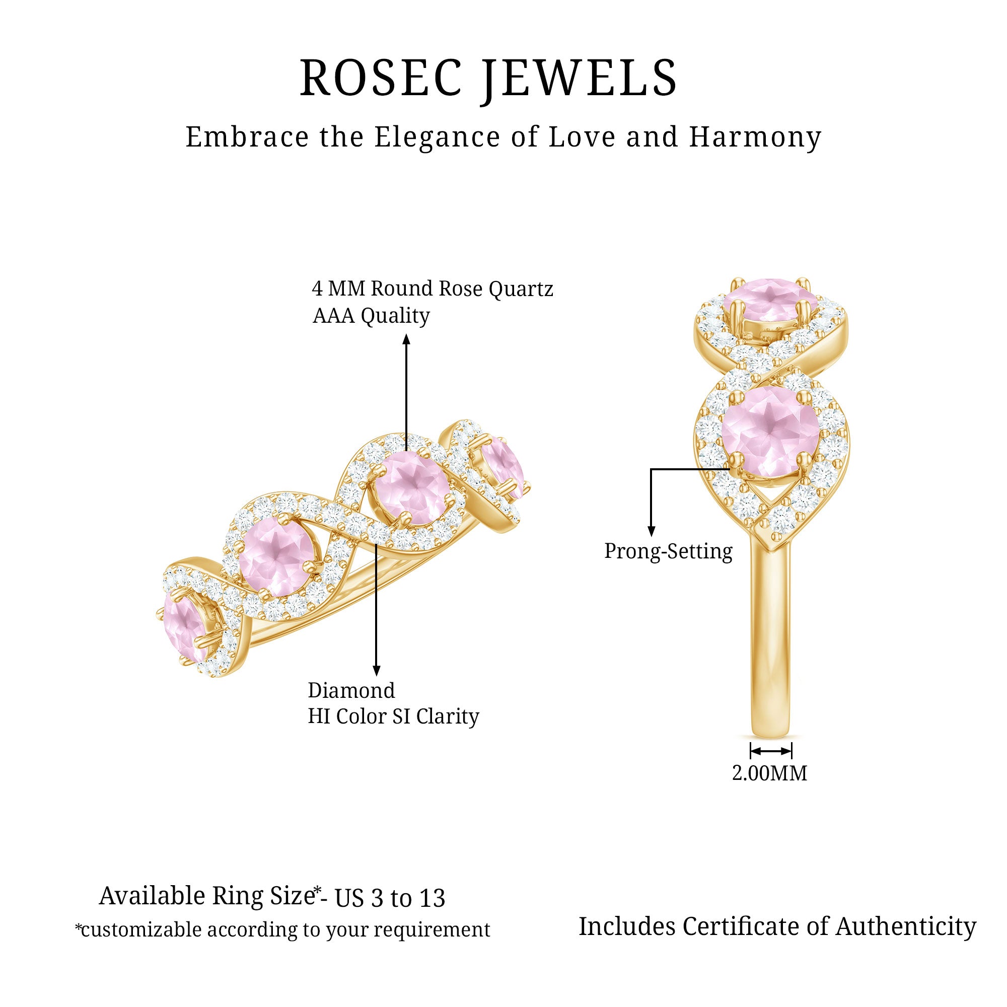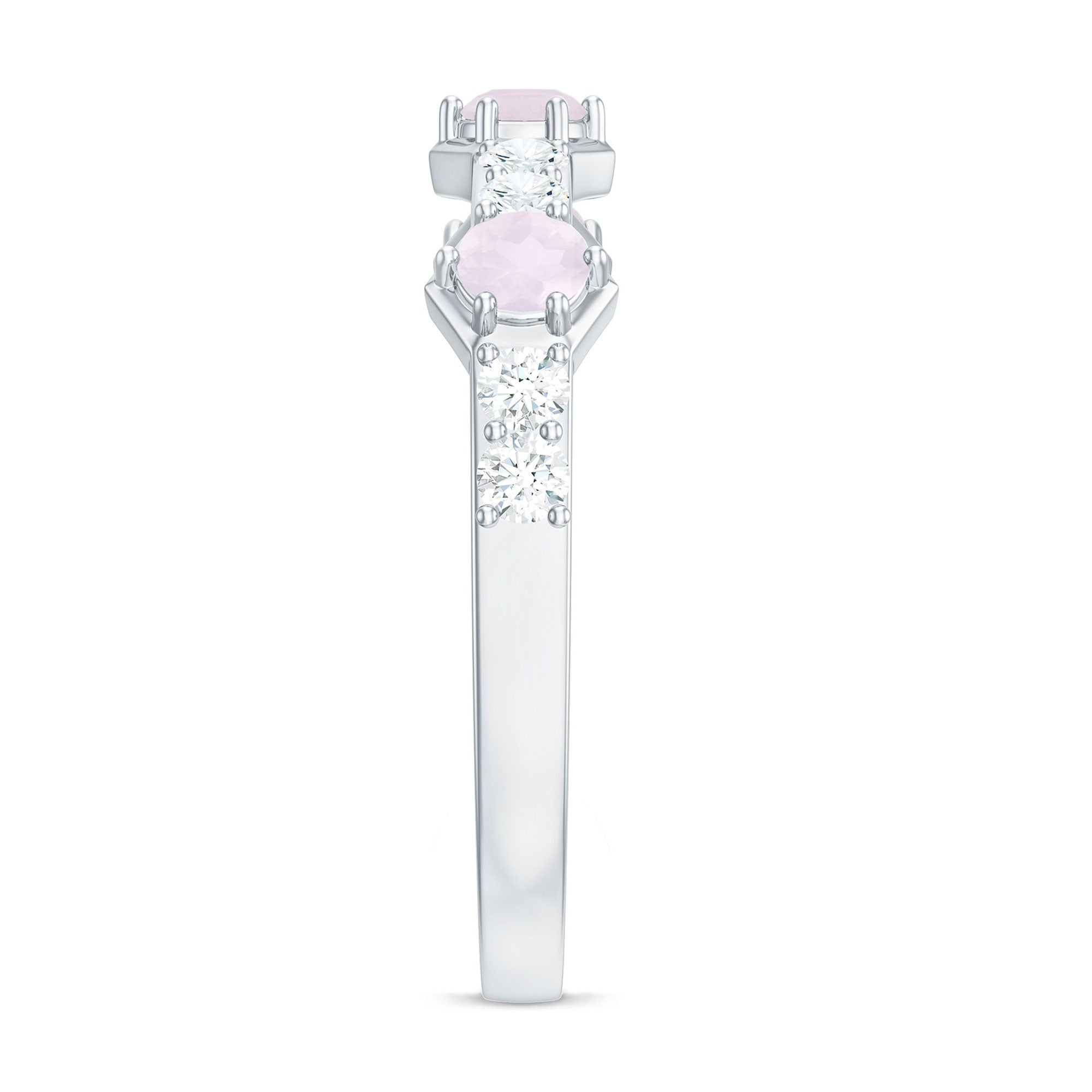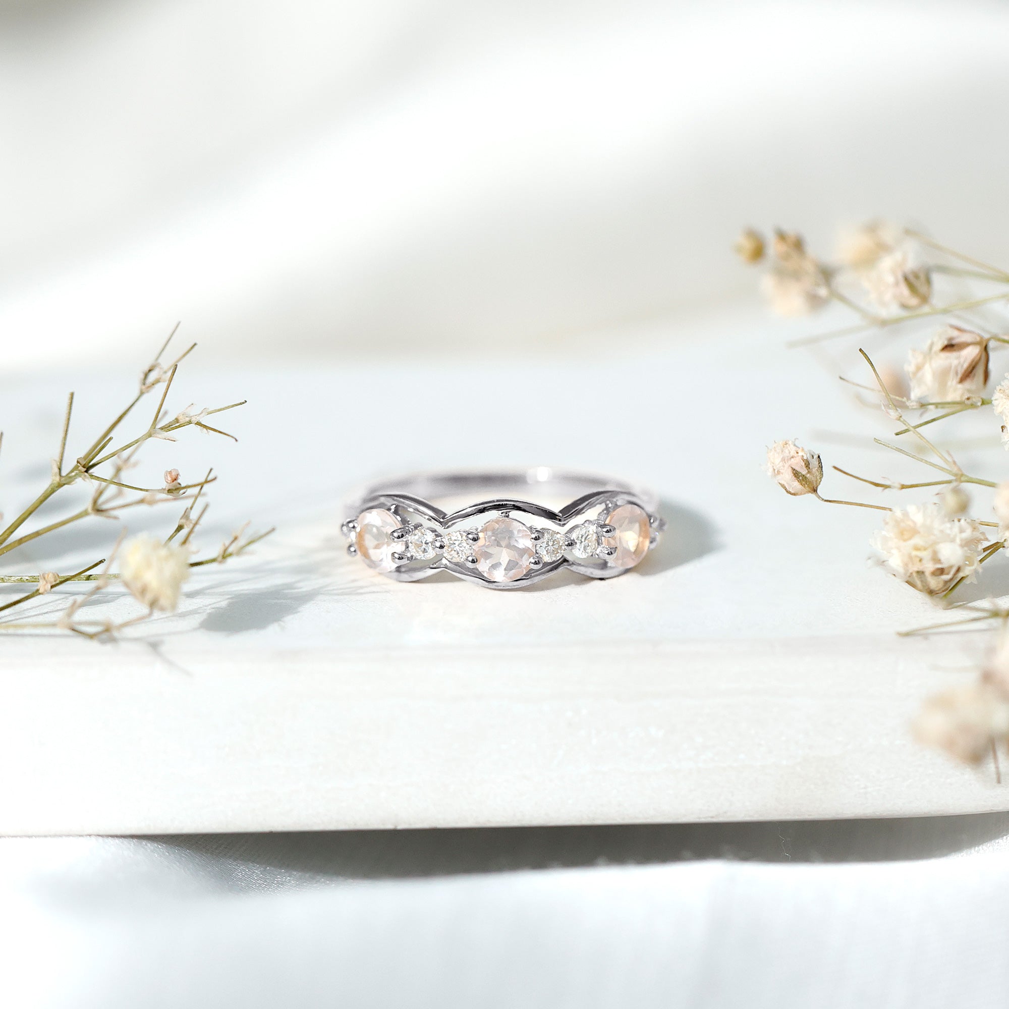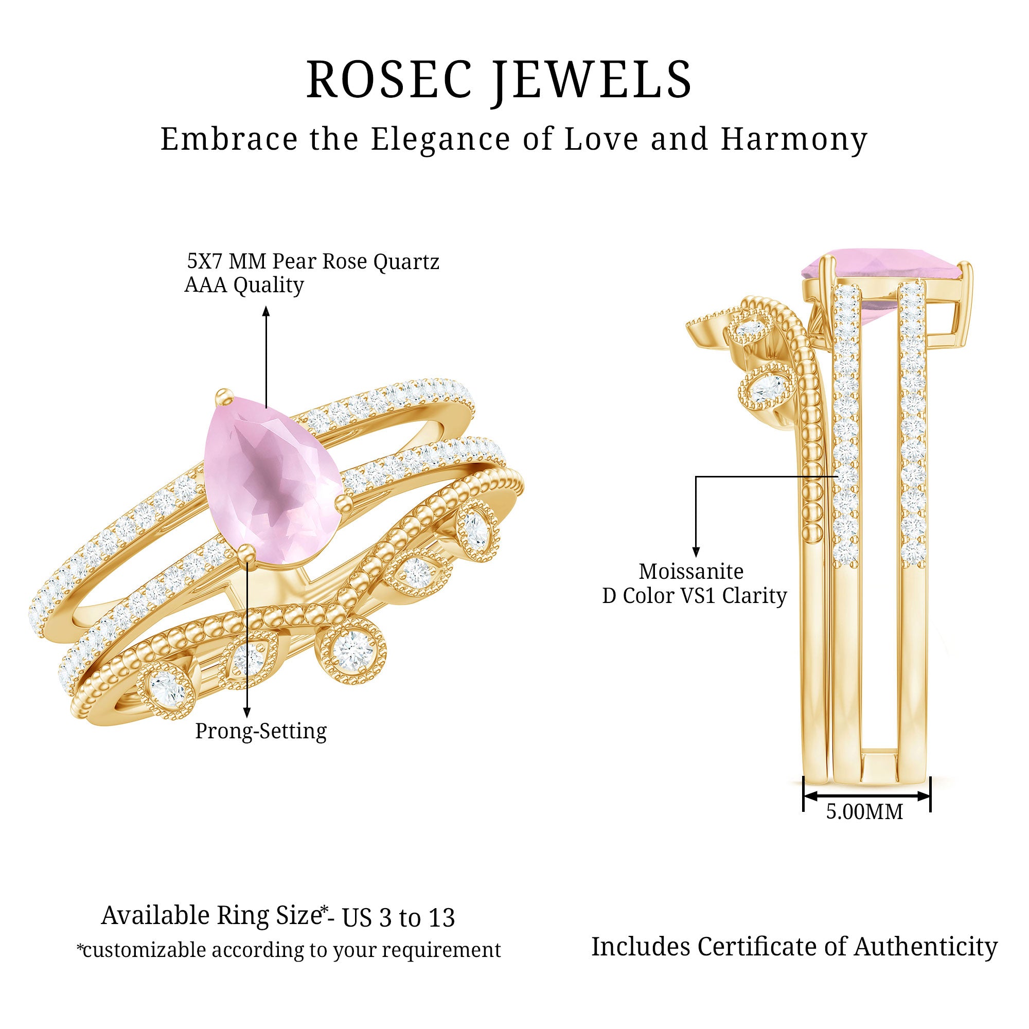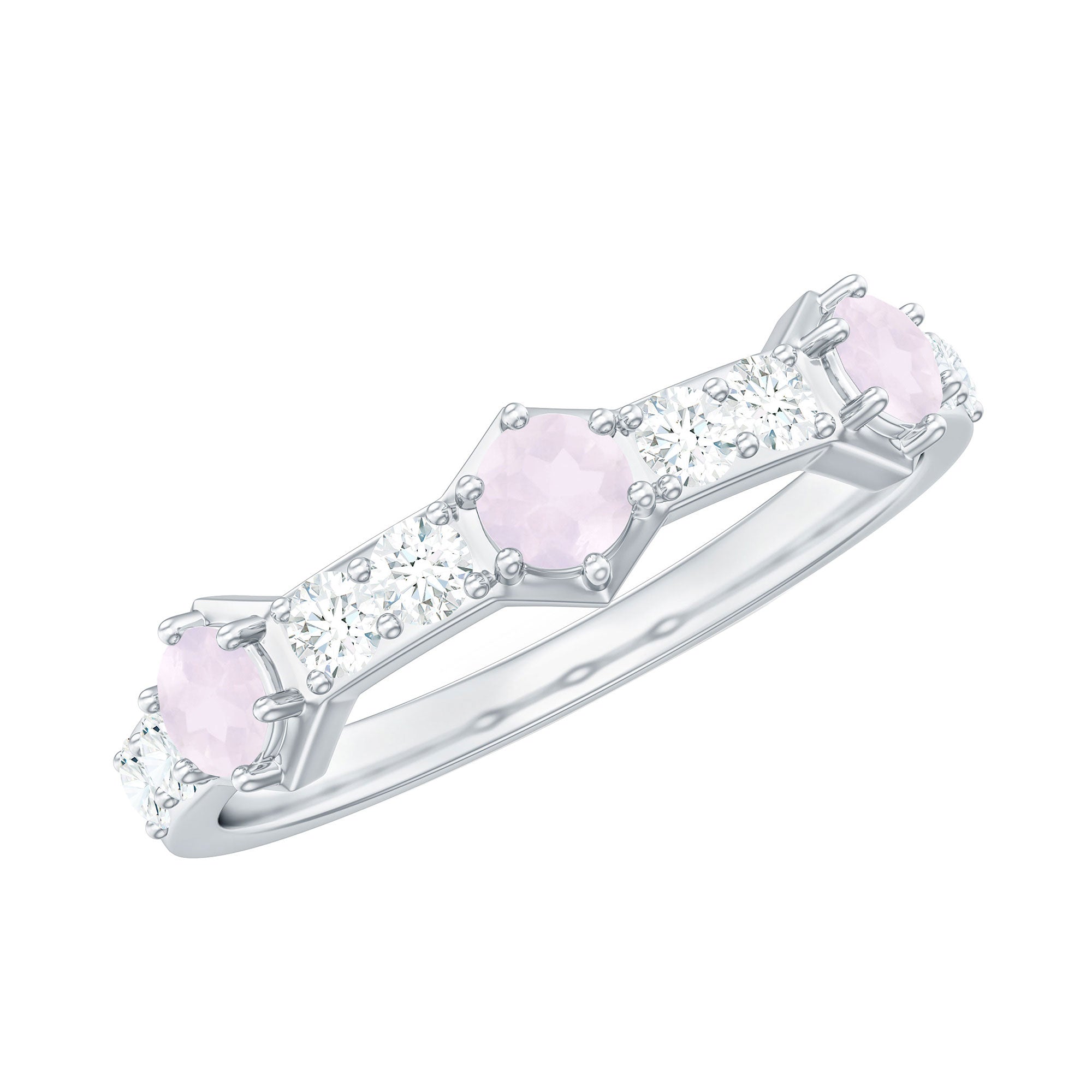 Rose quartz wedding rings from the online store of Rosec Jewels are a collection of enticing wedding rings for women to tie the knot between two souls. The romantic pink saturation of rose quartz rings makes them a popular choice among women when it comes to buying wedding rings. Thus bearing in mind, the latest trends in fashion jewelry our artisans have come out with out of the box ring styles with fine details. Rose quartz wedding band is one such sophisticated style to watch out for when it comes to buying wedding bands for women.
