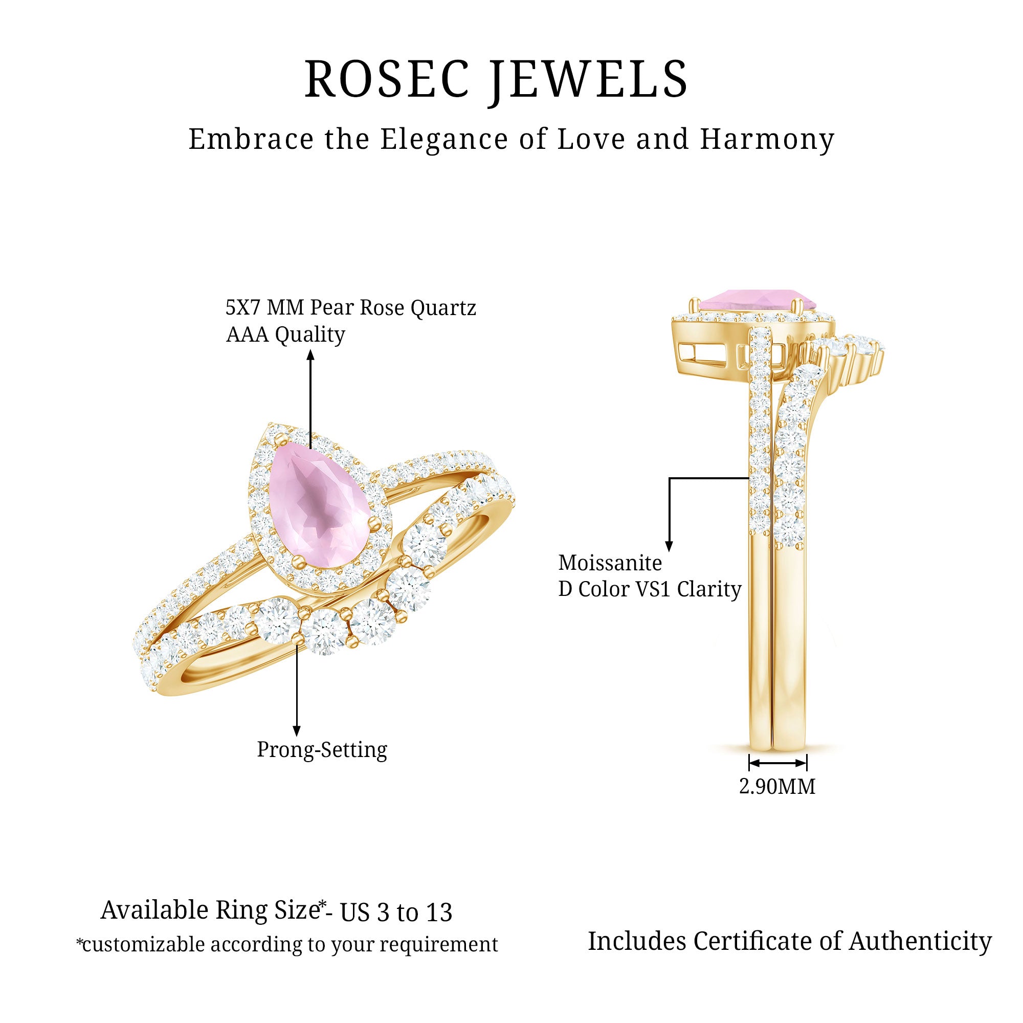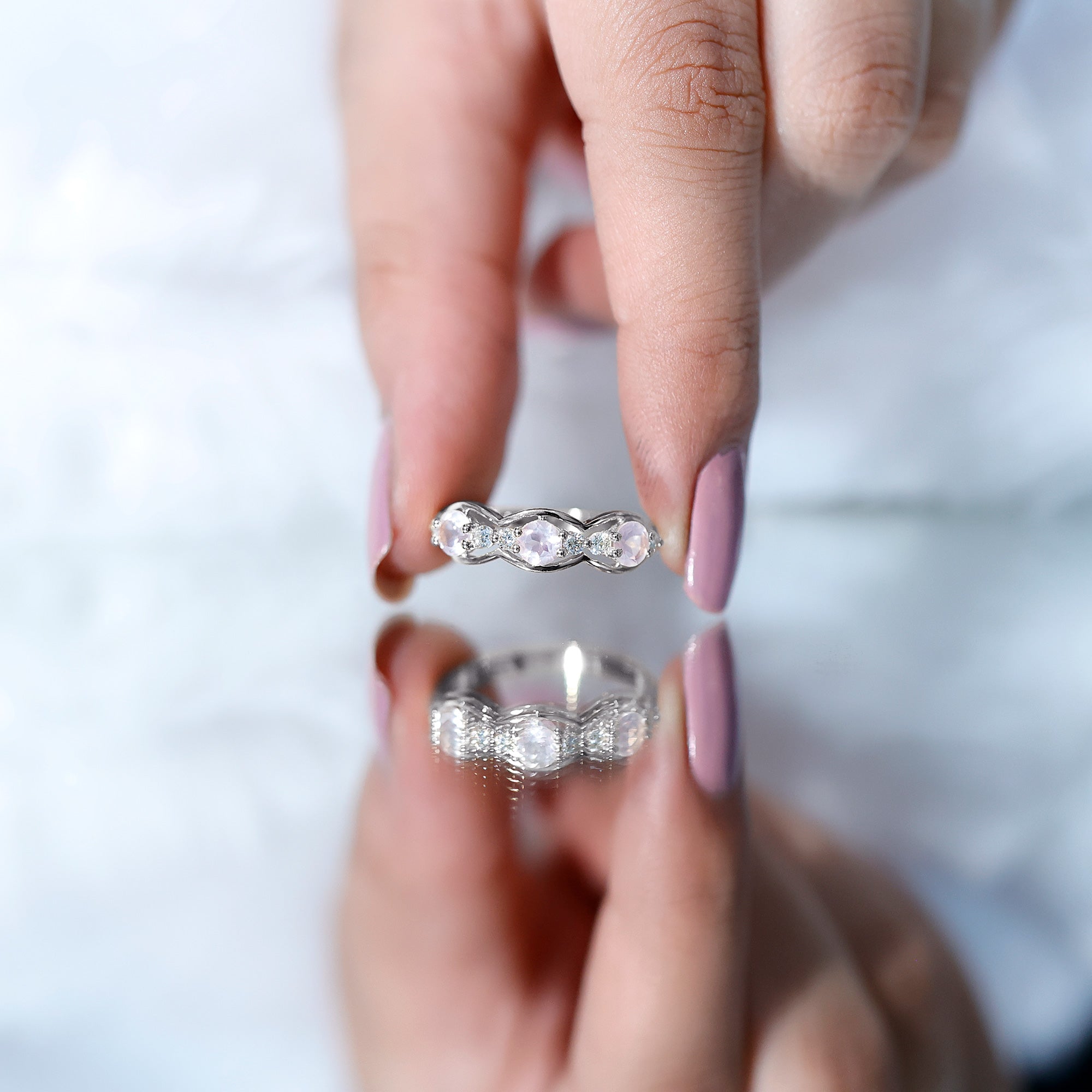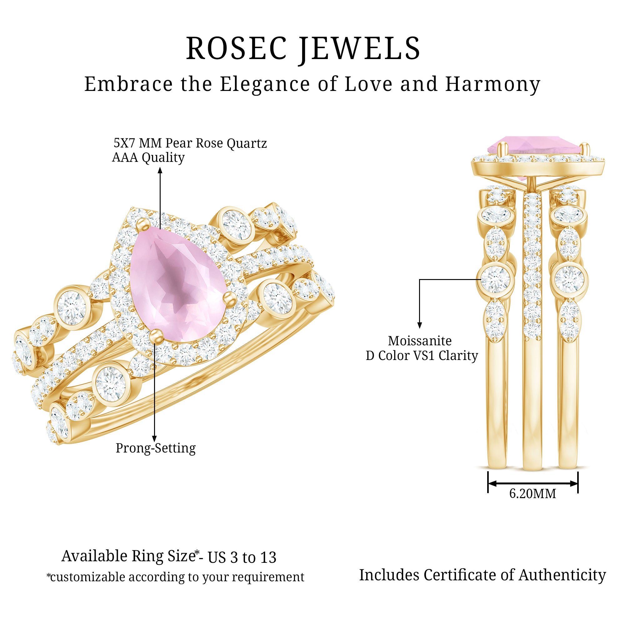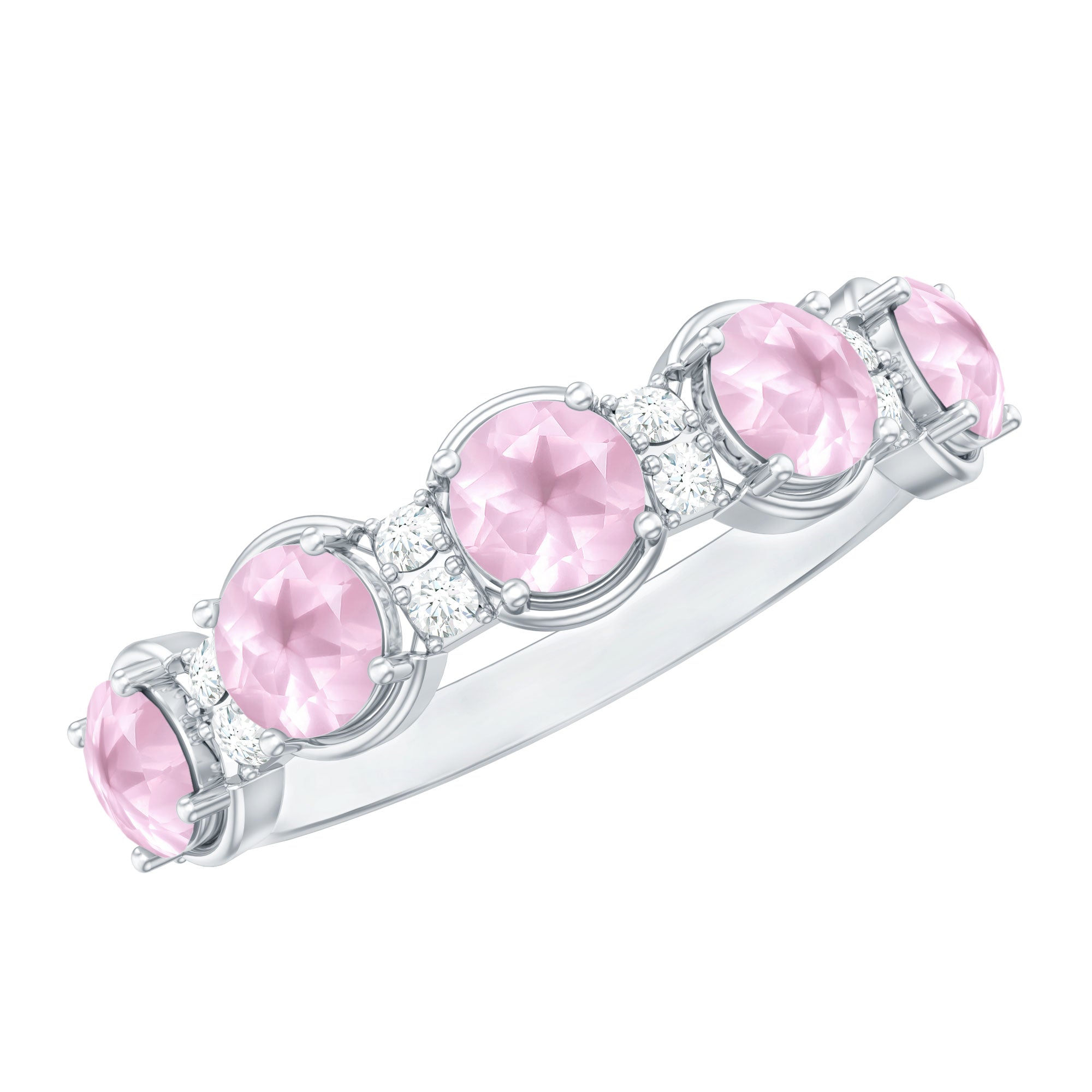 Rose quartz wedding rings from the online store of Rosec Jewels are a collection of enticing wedding rings for women to tie the knot between two souls. The romantic pink saturation of rose quartz rings makes them a popular choice among women when it comes to buying wedding rings. Thus bearing in mind, the latest trends in fashion jewelry our artisans have come out with out of the box ring styles with fine details. Rose quartz wedding band is one such sophisticated style to watch out for when it comes to buying wedding bands for women.