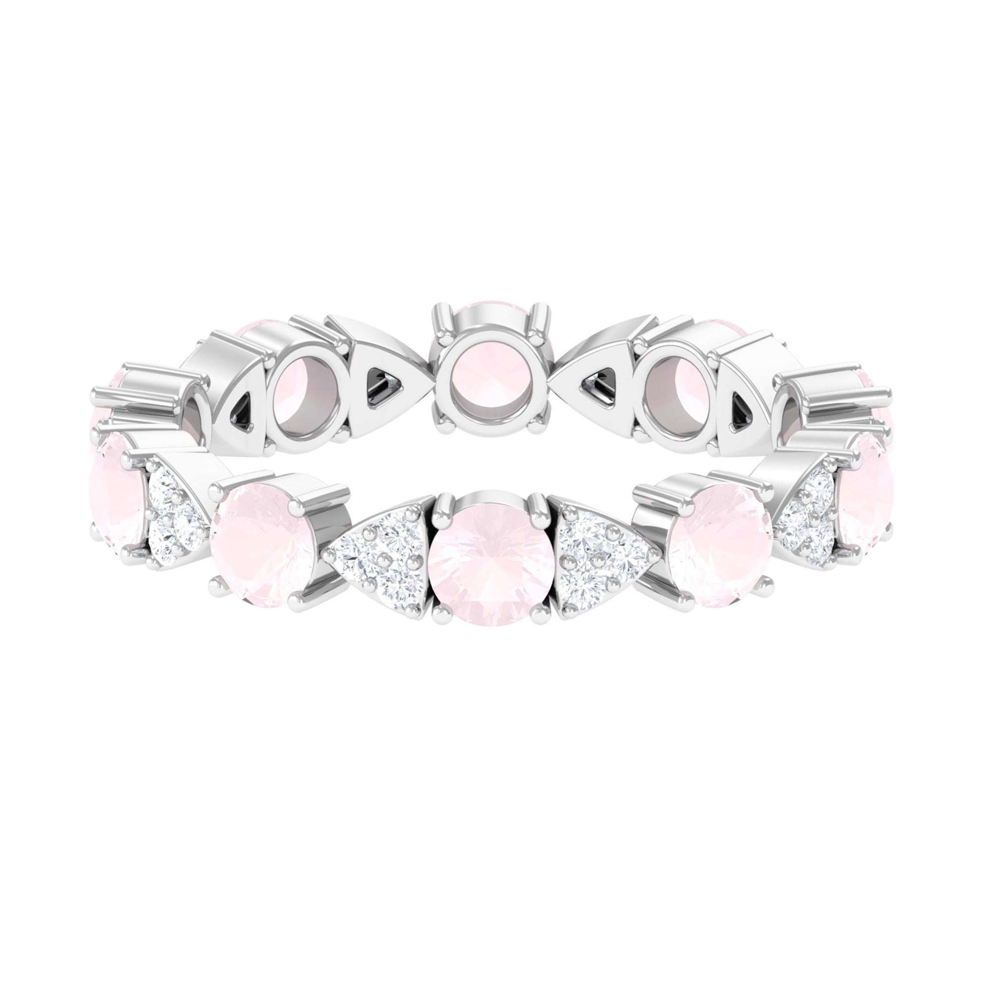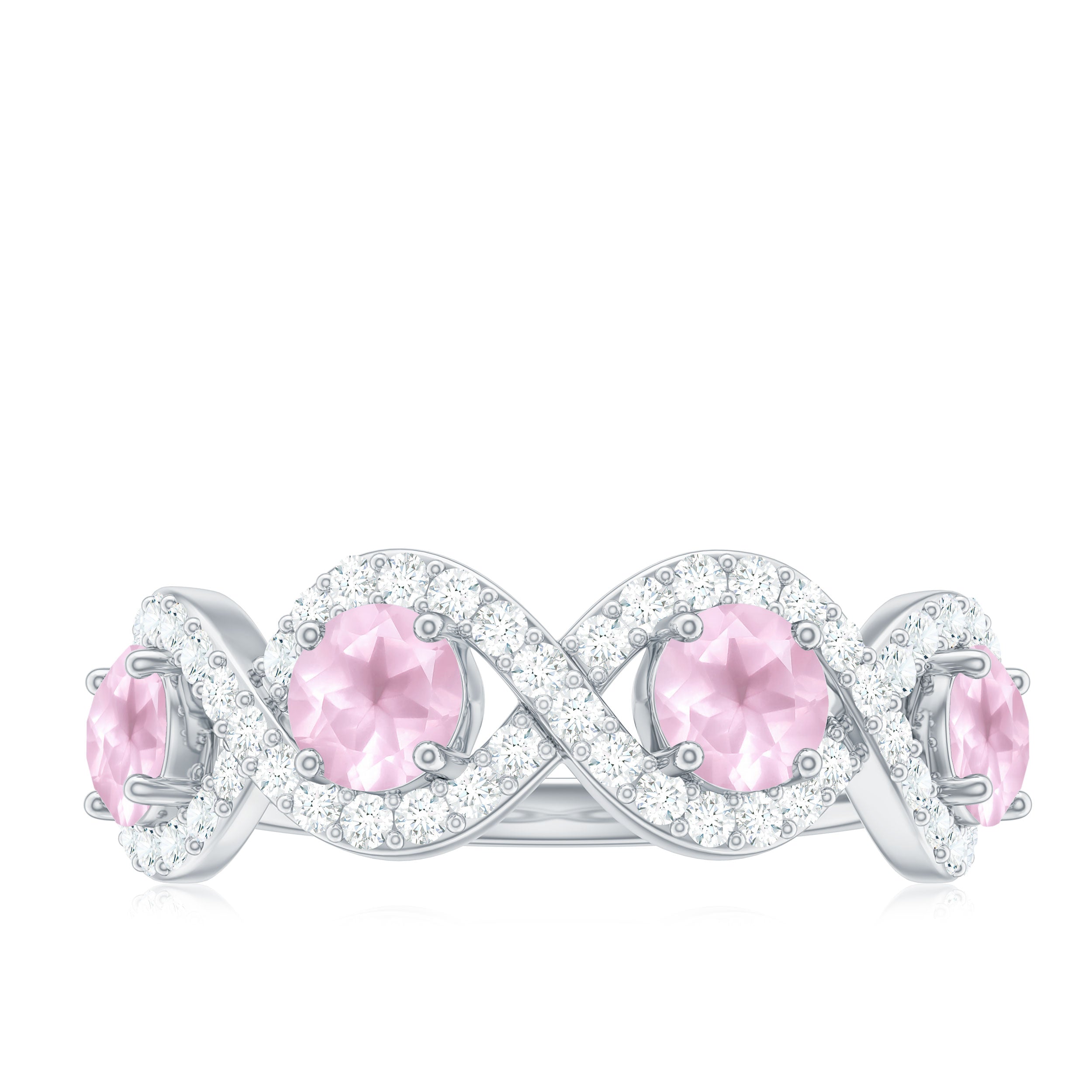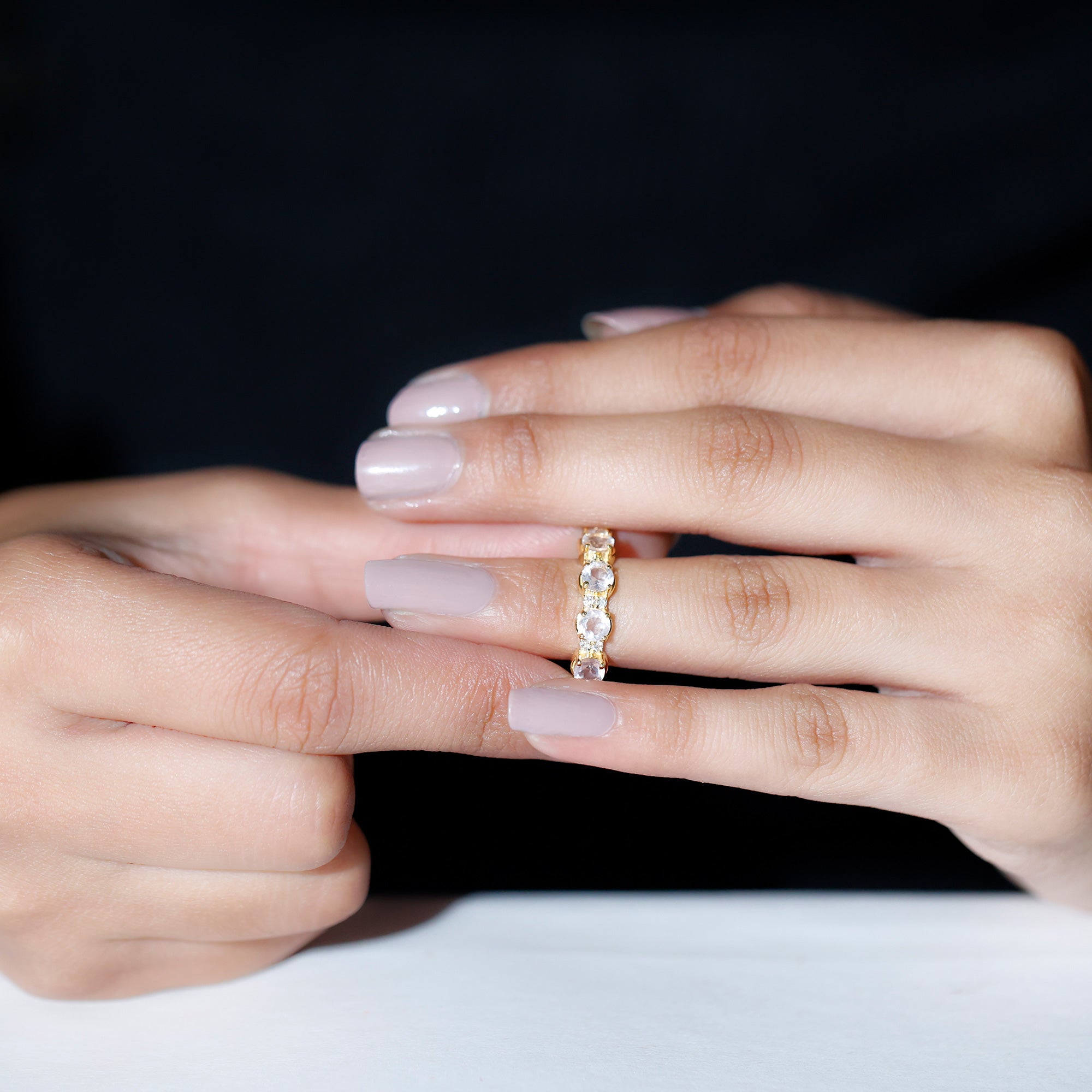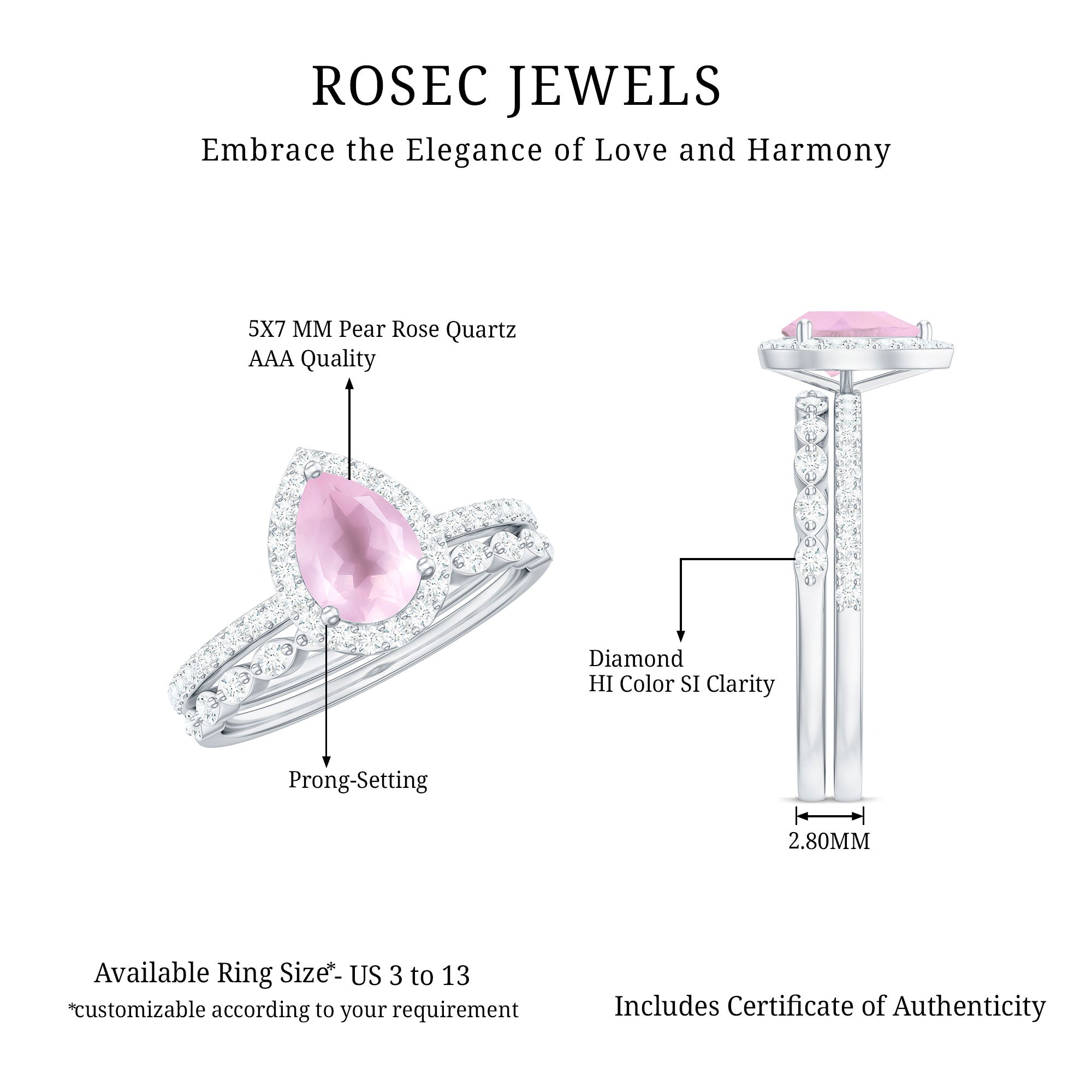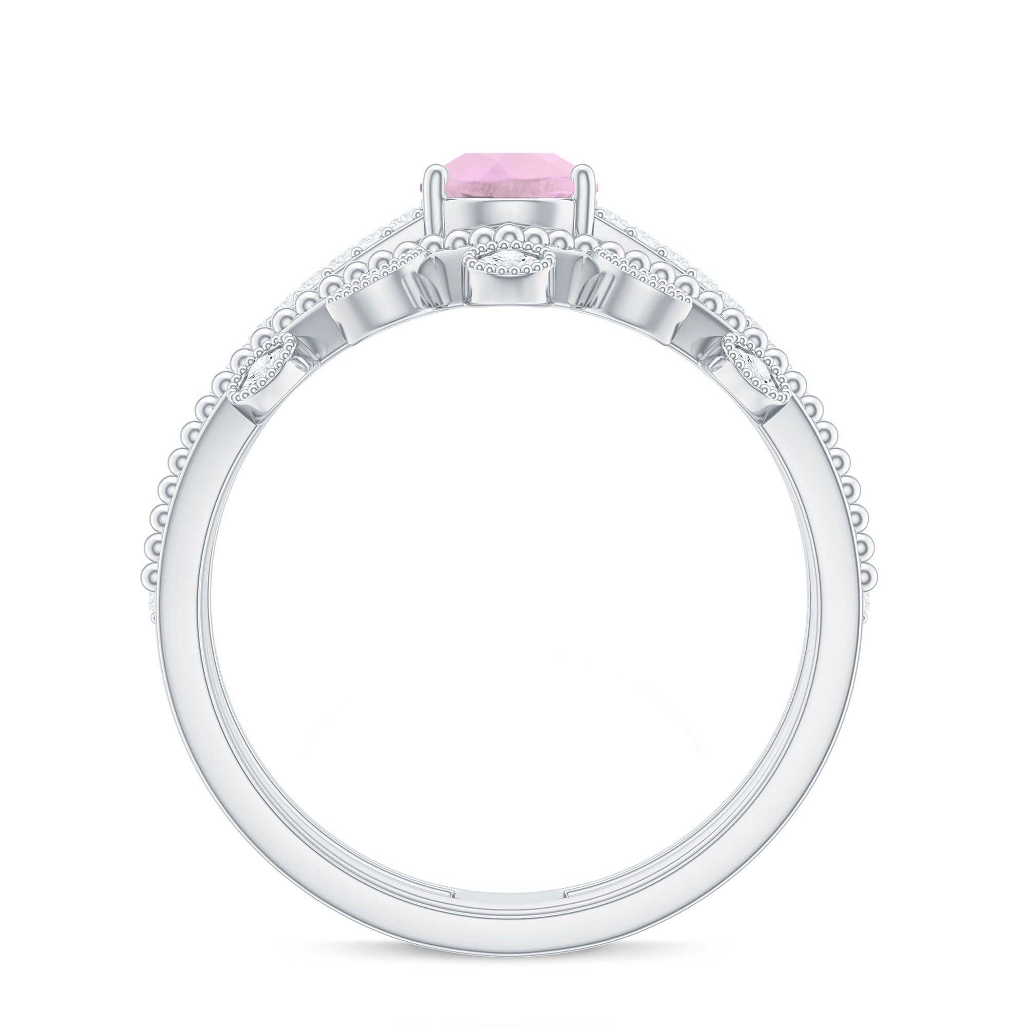 Rose quartz wedding rings from the online store of Rosec Jewels are a collection of enticing wedding rings for women to tie the knot between two souls. The romantic pink saturation of rose quartz rings makes them a popular choice among women when it comes to buying wedding rings. Thus bearing in mind, the latest trends in fashion jewelry our artisans have come out with out of the box ring styles with fine details. Rose quartz wedding band is one such sophisticated style to watch out for when it comes to buying wedding bands for women.
