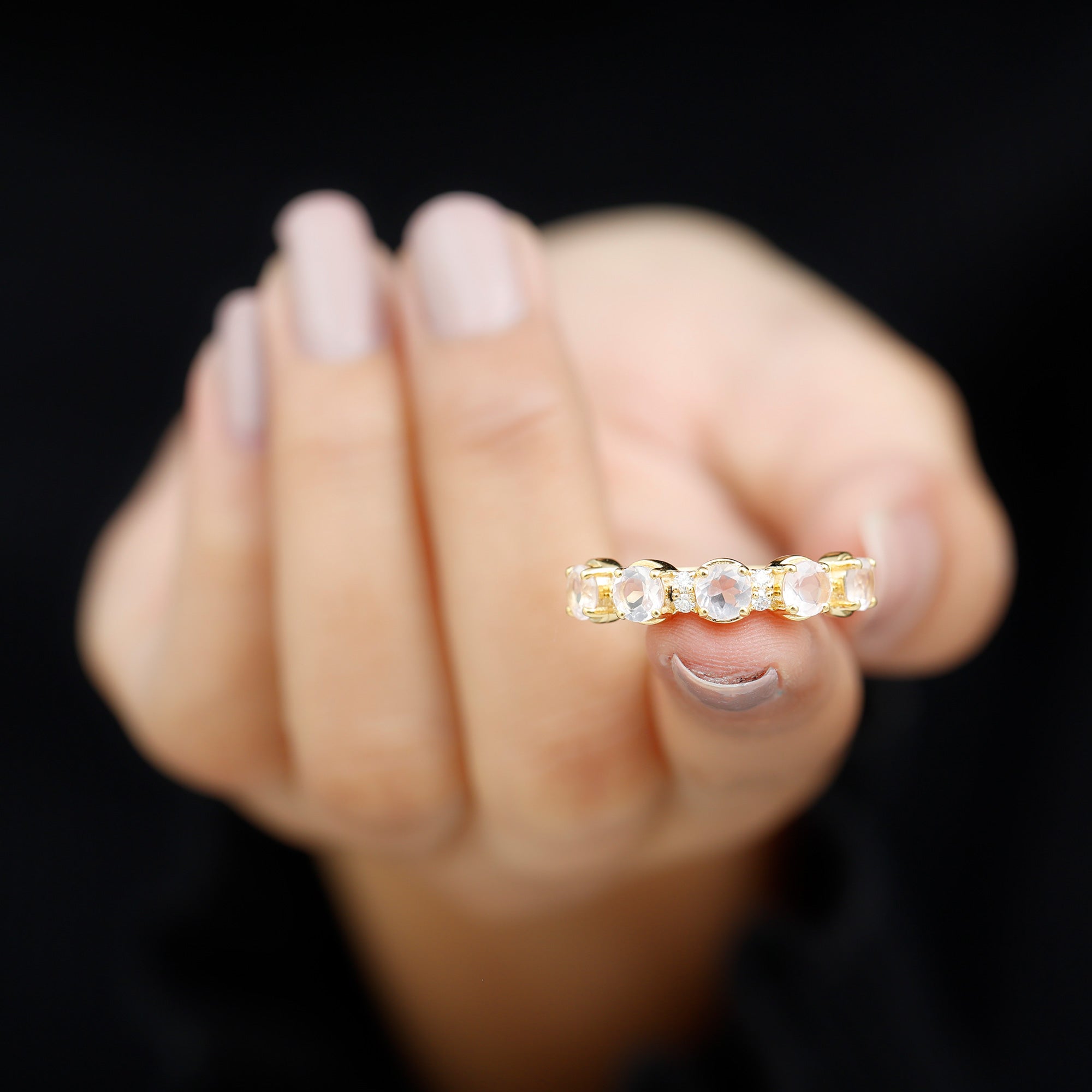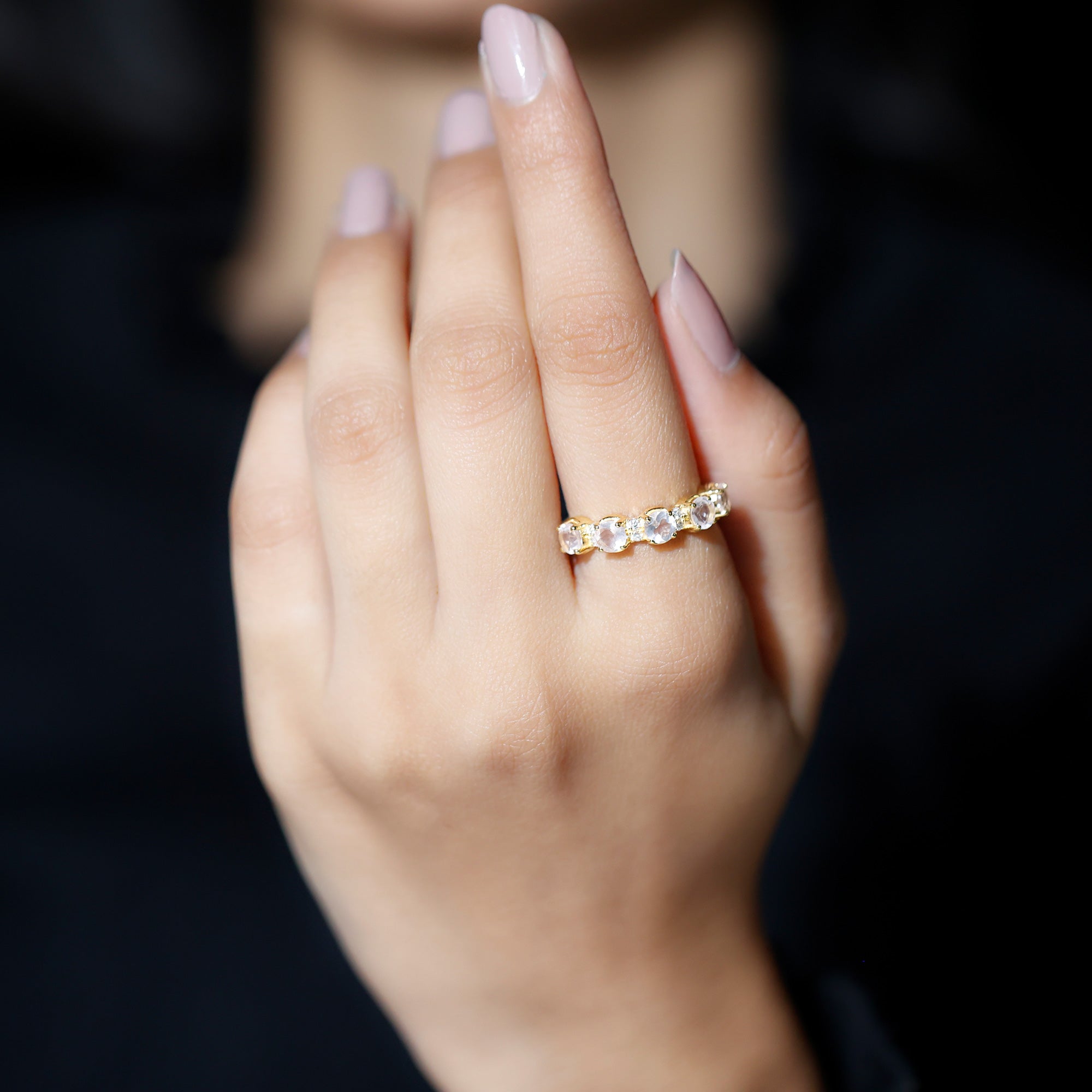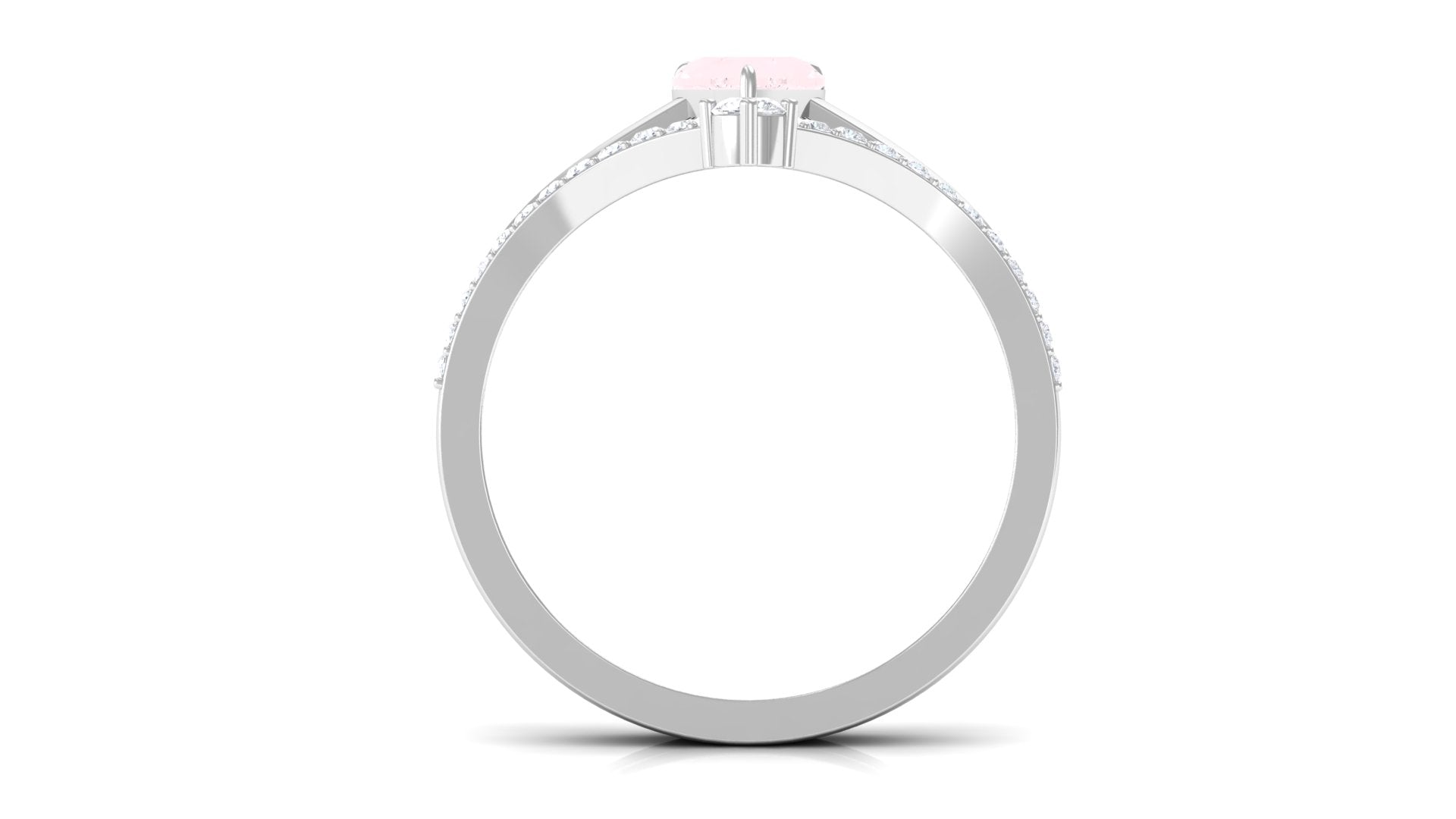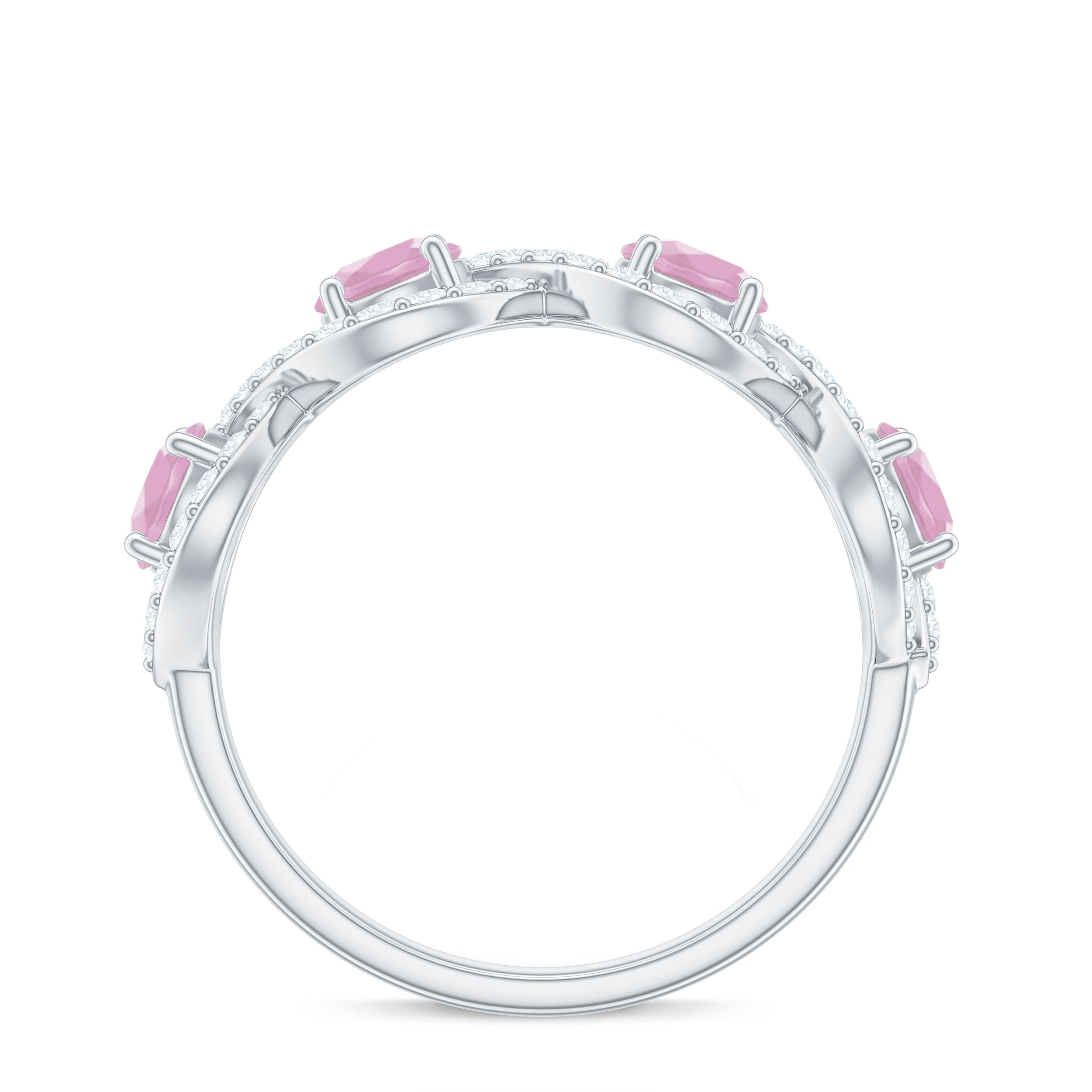 Rose quartz wedding rings from the online store of Rosec Jewels are a collection of enticing wedding rings for women to tie the knot between two souls. The romantic pink saturation of rose quartz rings makes them a popular choice among women when it comes to buying wedding rings. Thus bearing in mind, the latest trends in fashion jewelry our artisans have come out with out of the box ring styles with fine details. Rose quartz wedding band is one such sophisticated style to watch out for when it comes to buying wedding bands for women.