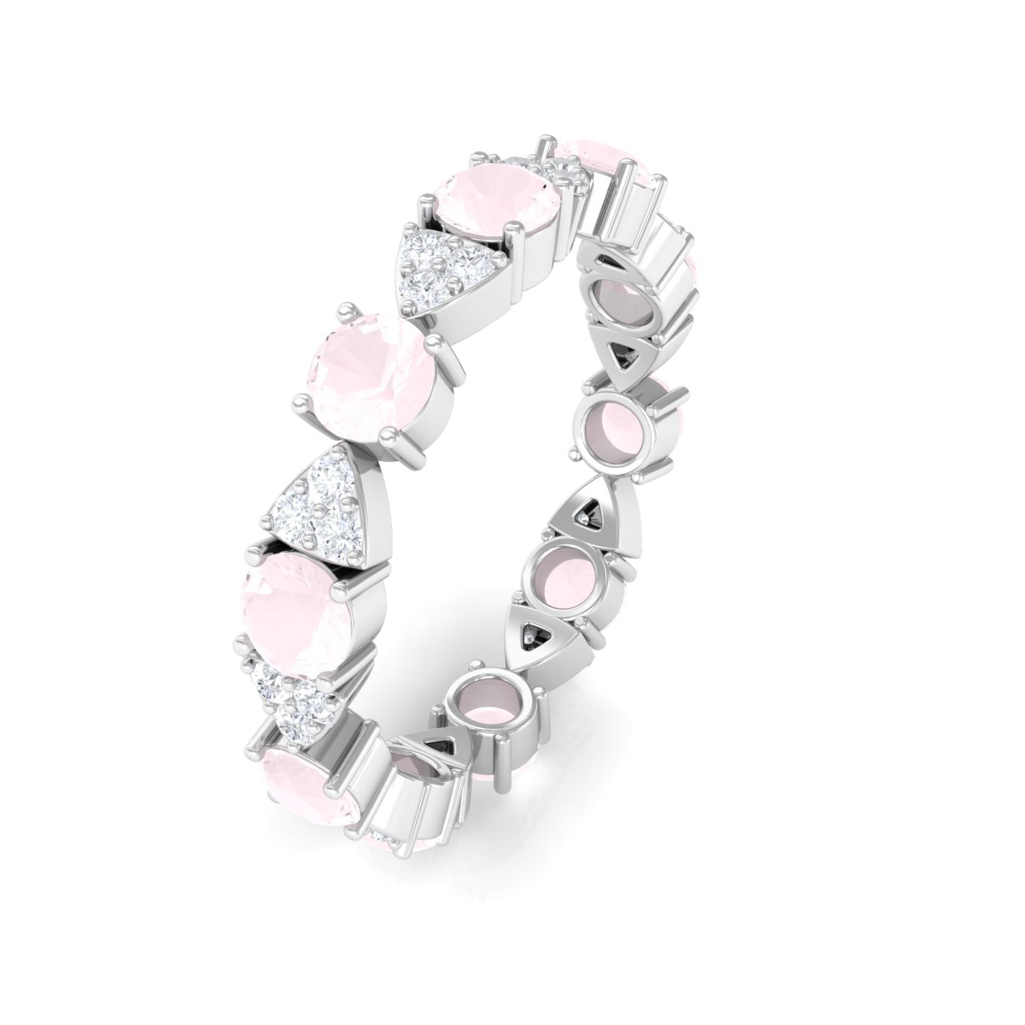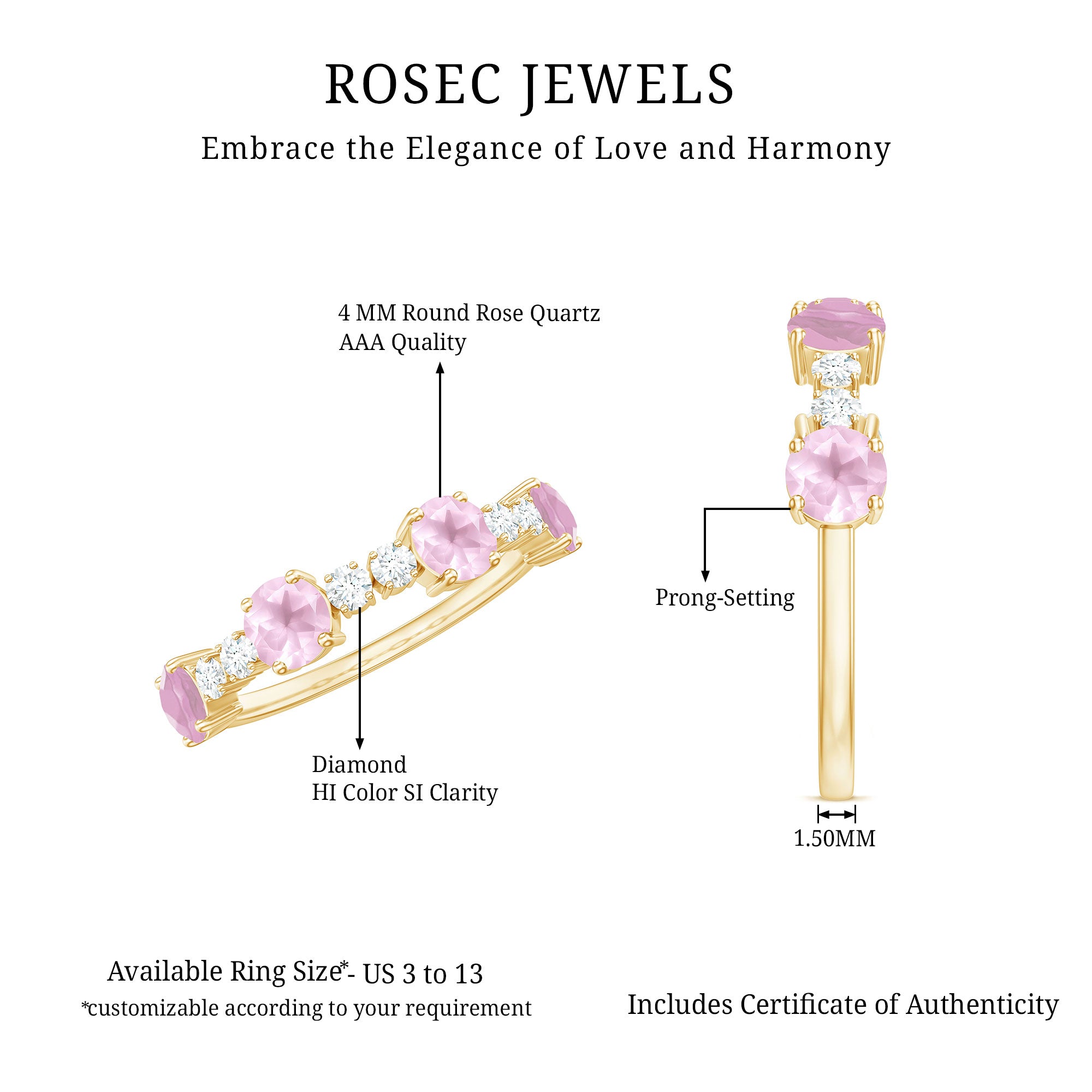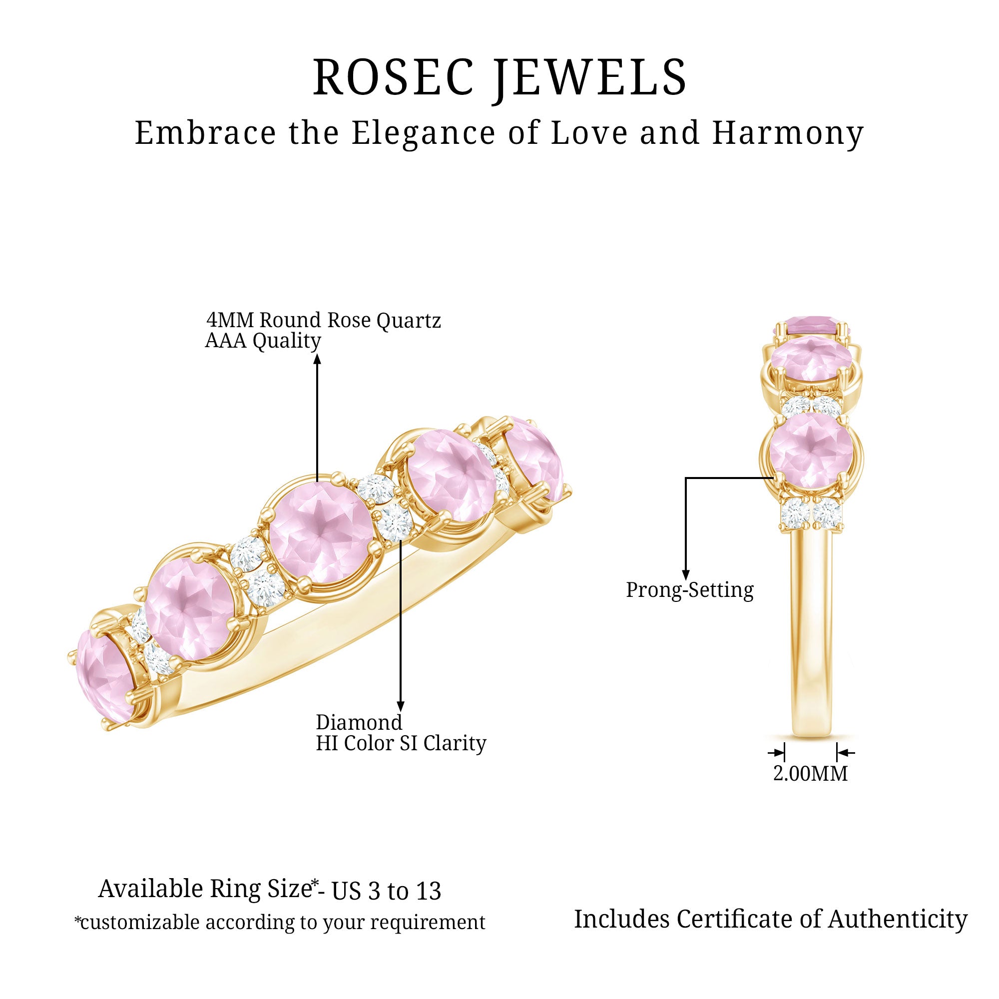 The delicate and soft pink hues of rose quartz has motivated our artisans to combine them with the alluring colors of gold further helping us in curating fantastic rose quartz band in white gold, yellow gold and rose gold. A wide diversity in our wedding ring design is effectively achieved by different rose quartz shapes, gemstone settings and metal embellishments. Therefore, Rosec Jewels’ collection of adorable rose quartz band rings are best suited for women with eyes for delicate details and romantic hues of the rose quartz.