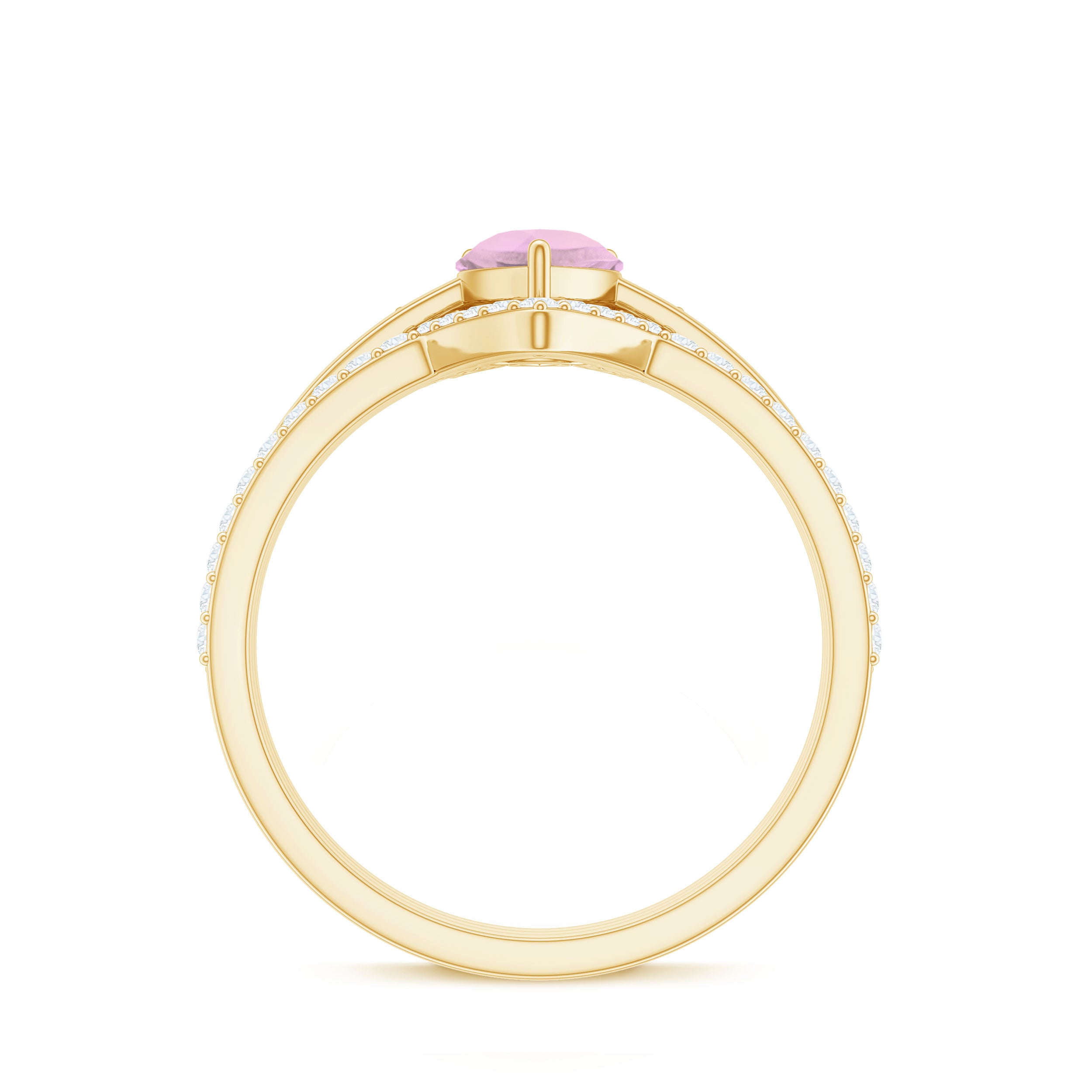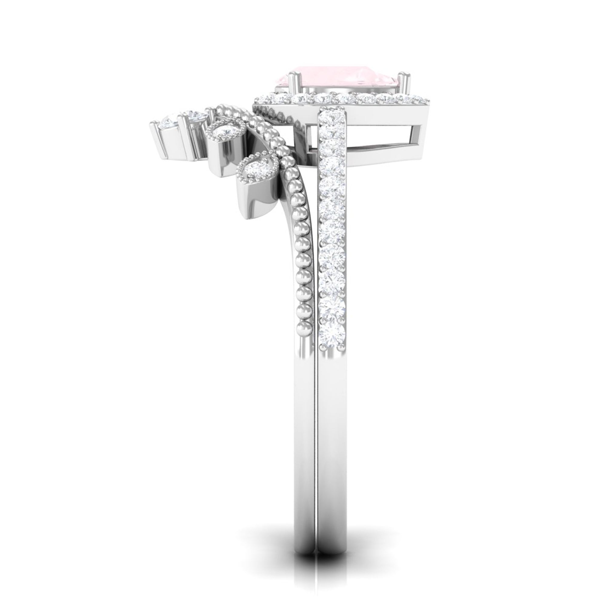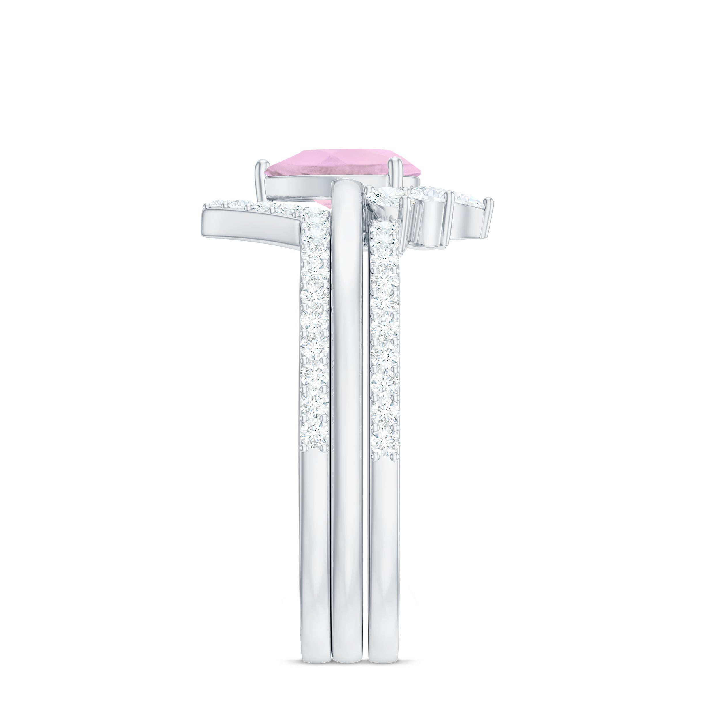 The delicate and soft pink hues of rose quartz has motivated our artisans to combine them with the alluring colors of gold further helping us in curating fantastic rose quartz band in white gold, yellow gold and rose gold. A wide diversity in our wedding ring design is effectively achieved by different rose quartz shapes, gemstone settings and metal embellishments. Therefore, Rosec Jewels’ collection of adorable rose quartz band rings are best suited for women with eyes for delicate details and romantic hues of the rose quartz.