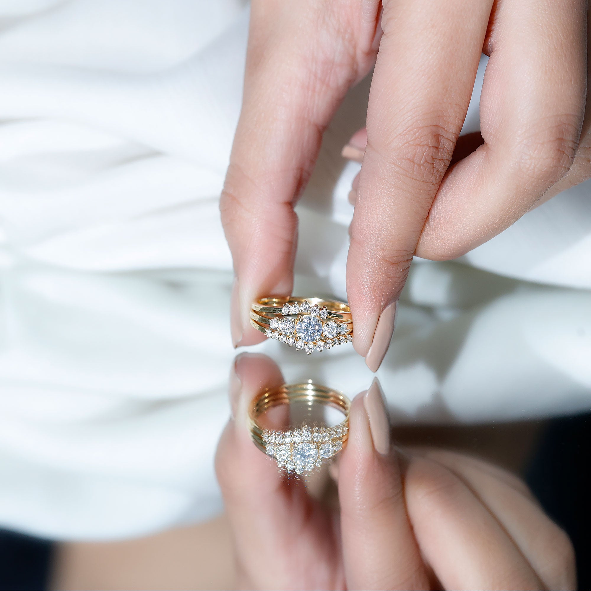 • Can I pair my round engagement ring with a wedding band?