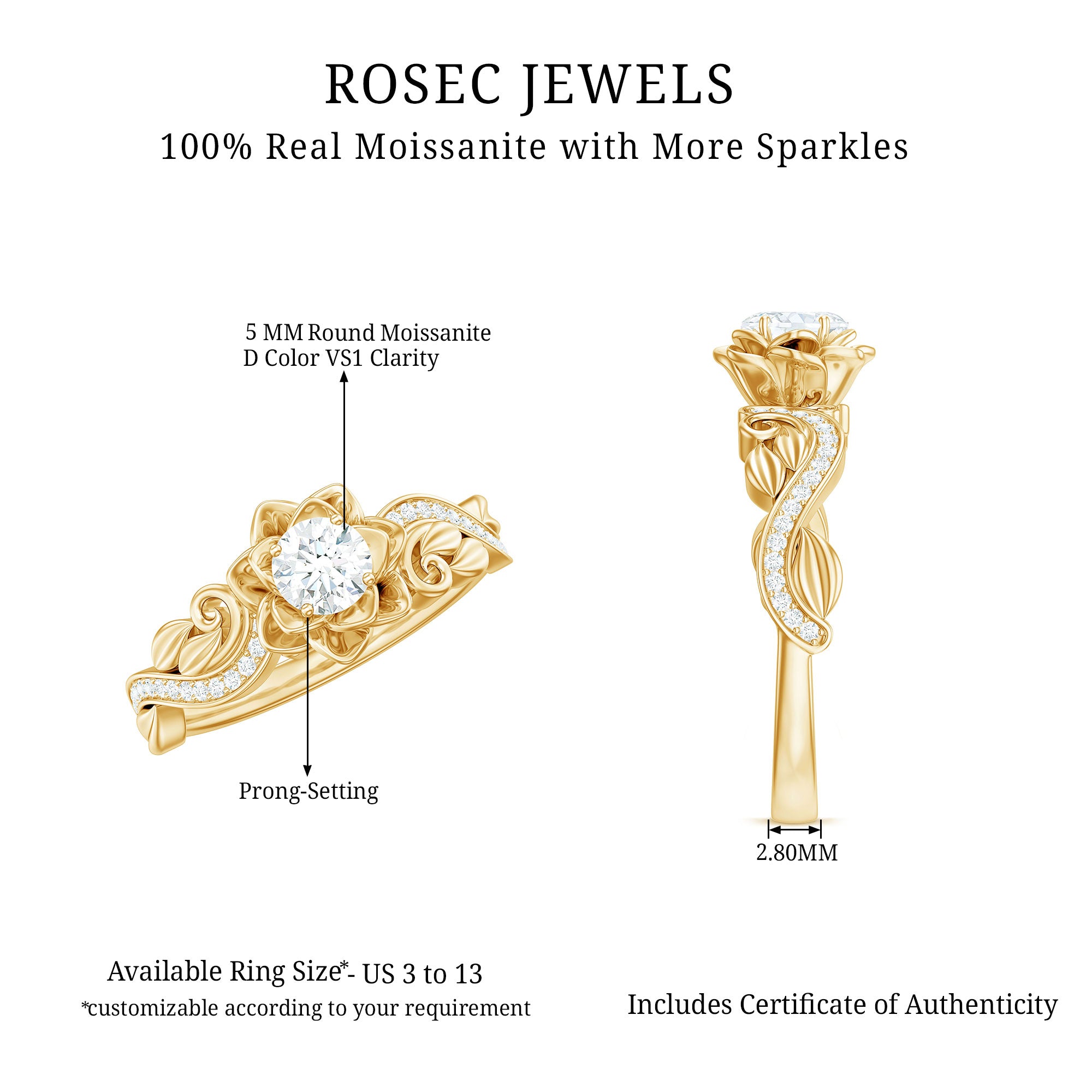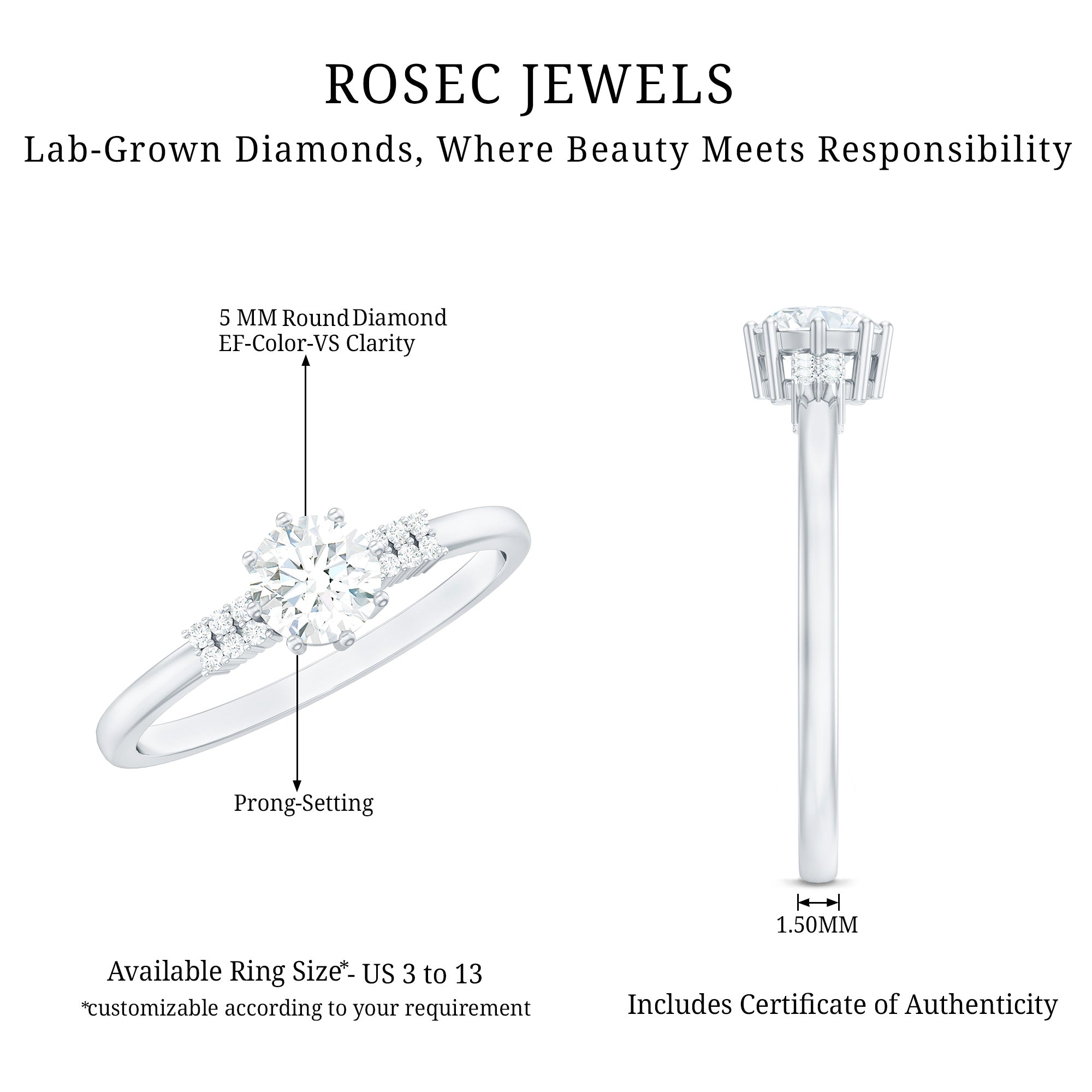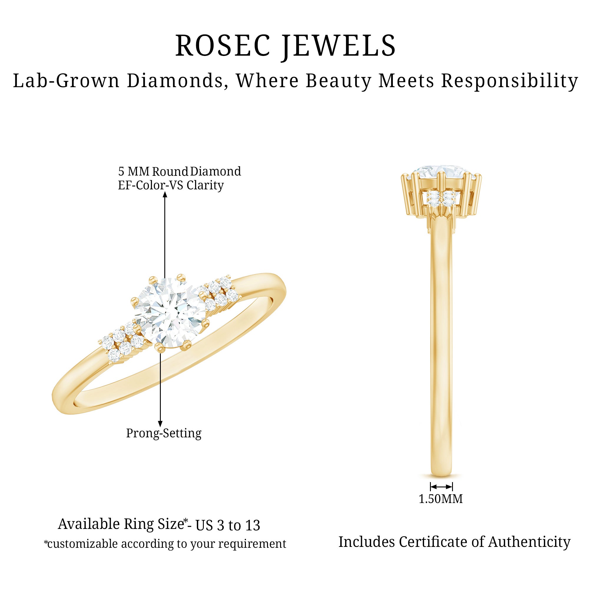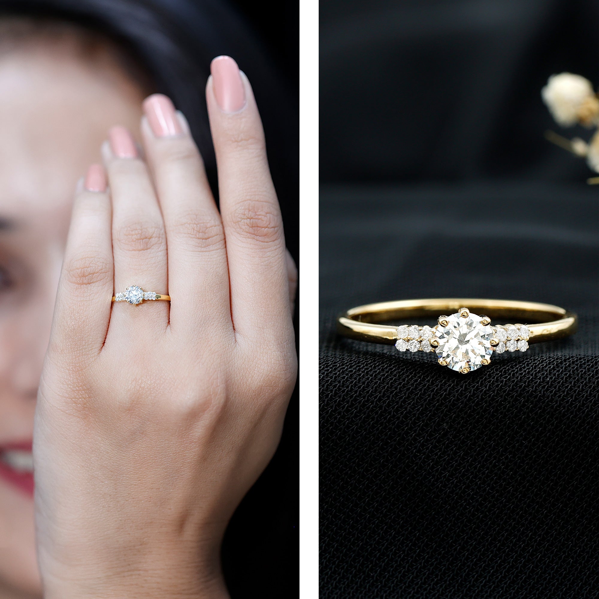 Rosec Jewels, is well known for its experience and wide catalogue of handcrafted engagement rings to suit every style and budget. We keep our collection updated with the trending and inspiring pieces like solitaires and statement rings to designer and minimal pieces. Our round engagement rings feature everything from classic diamonds and moissanites to colored gemstones, both natural and lab-grown. Our high-quality certified gemstones undergo strict quality checks for their authenticity. We have a simple 60-day return policy for complete peace of mind and our fast, reliable shipping ensures that your ring arrives on time.
