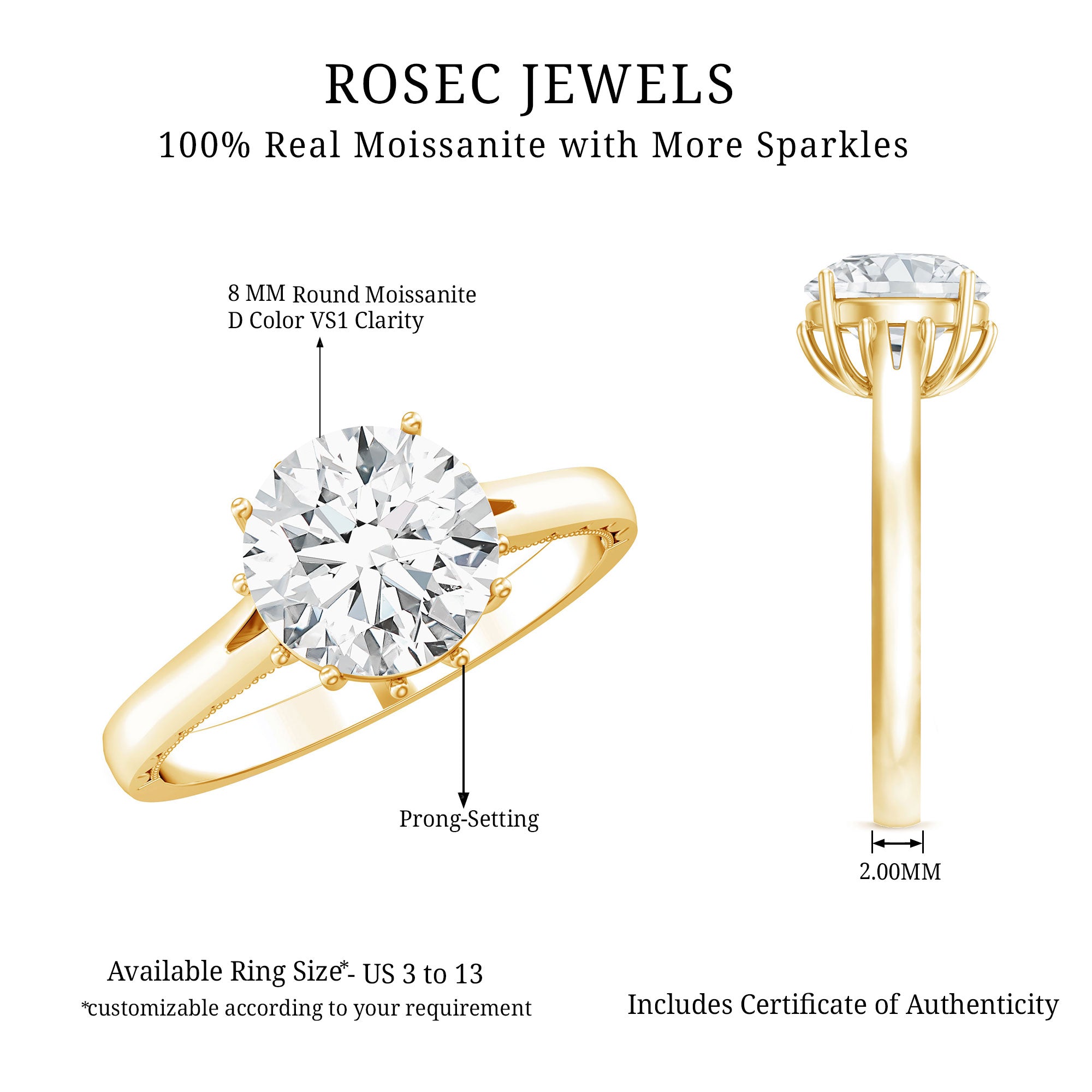 Rosec Jewels, is well known for its experience and wide catalogue of handcrafted engagement rings to suit every style and budget. We keep our collection updated with the trending and inspiring pieces like solitaires and statement rings to designer and minimal pieces. Our round engagement rings feature everything from classic diamonds and moissanites to colored gemstones, both natural and lab-grown. Our high-quality certified gemstones undergo strict quality checks for their authenticity. We have a simple 60-day return policy for complete peace of mind and our fast, reliable shipping ensures that your ring arrives on time.