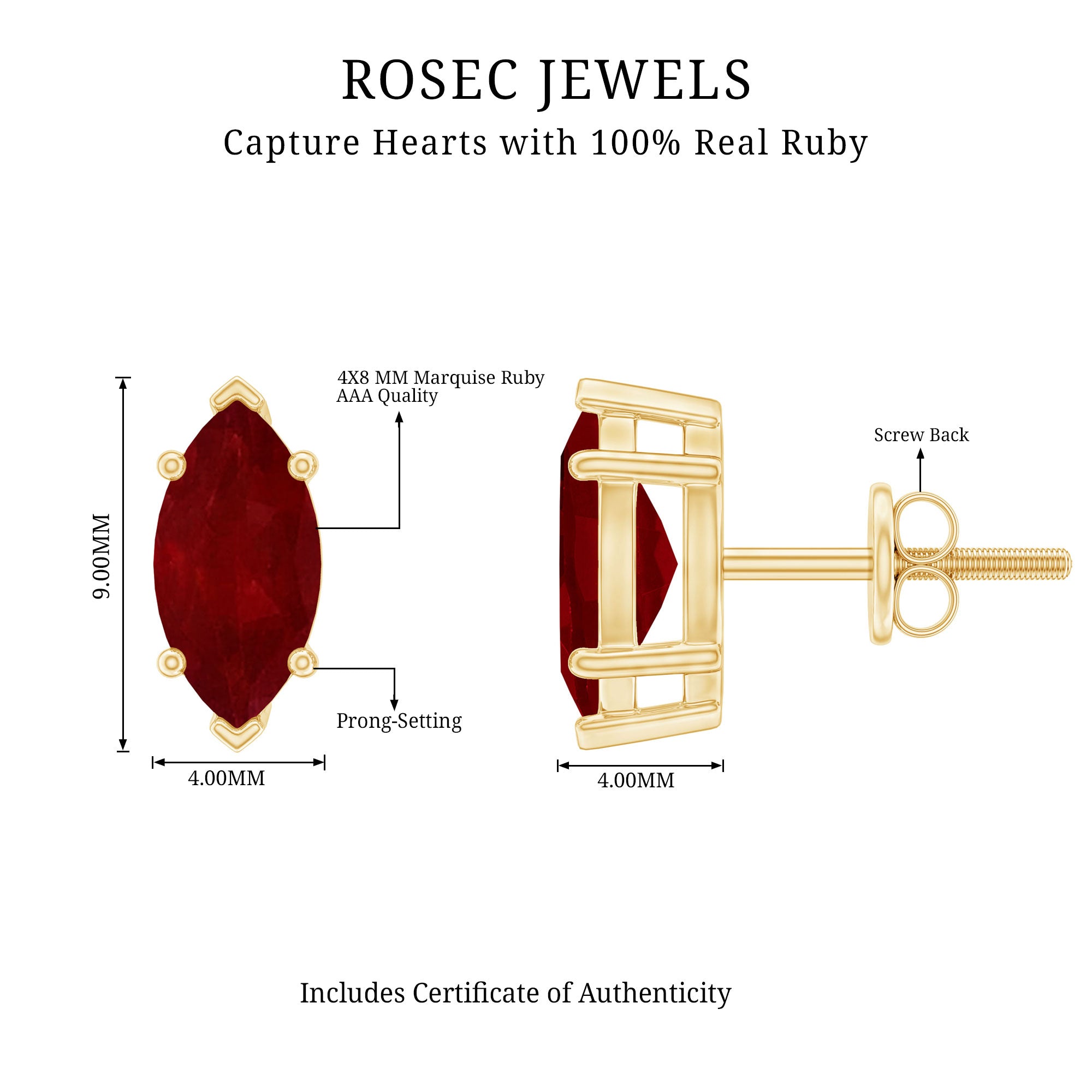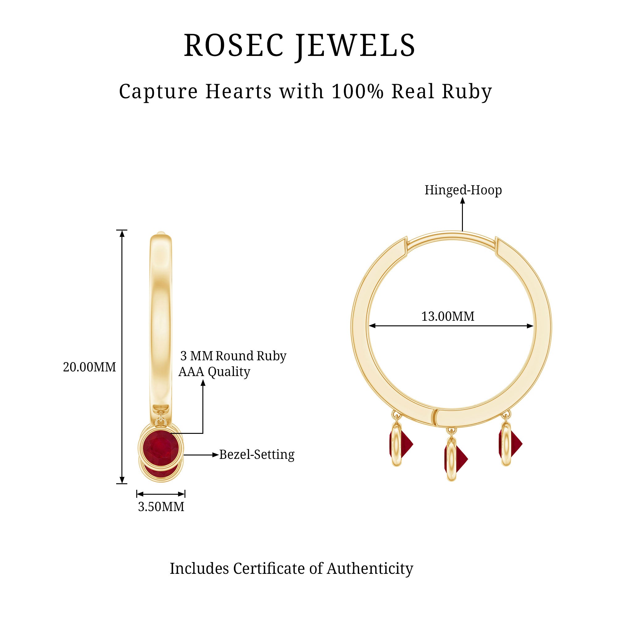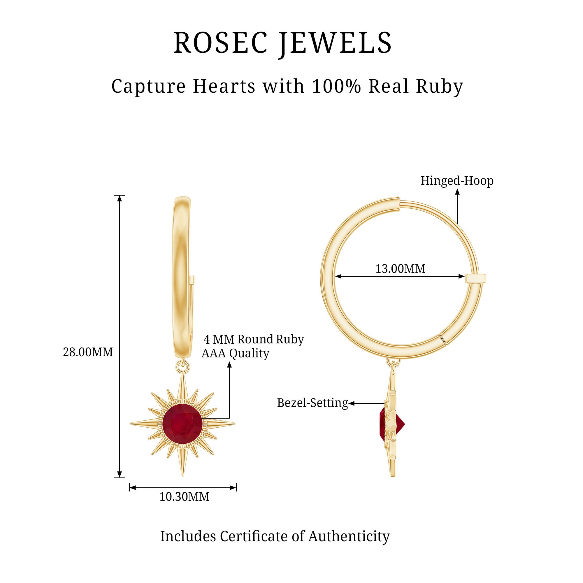 Besides its aesthetic appeal, this highly desired gemstone boasts remarkable durability, scoring a 9 out of 10 on the Mohs scale of hardness. Their versatility ensures that ruby is a perfect for daily wear, and also suitable for real gold jewelry.