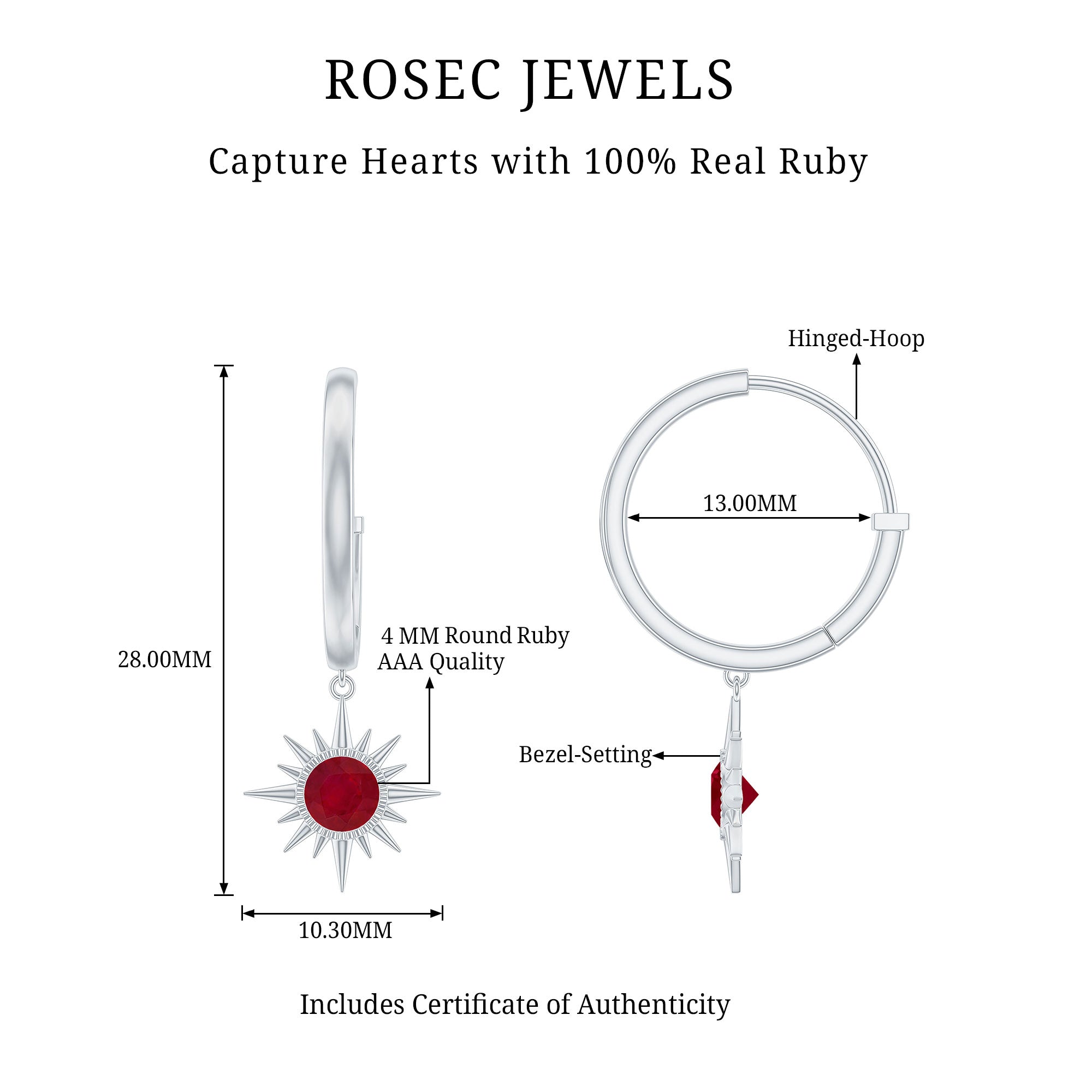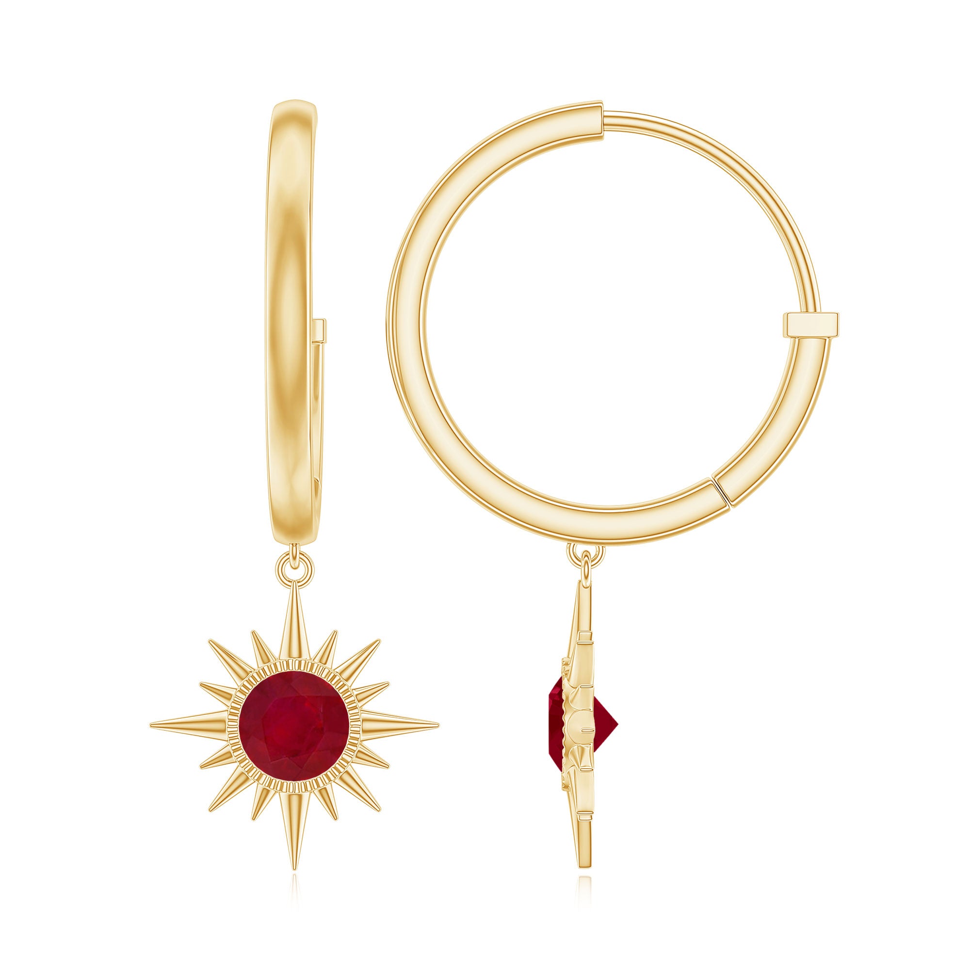 Selecting ruby as the focal point for earrings will be a worthy decision. Being a birthstone for July, Ruby is the true symbol of love, passion, health, and wealth, which also perfect for romantic gifts. This gem is renowned for its captivating deep red hue and ability to infuse passion into the wearer's life, ruby is capable of garnering instant attention.