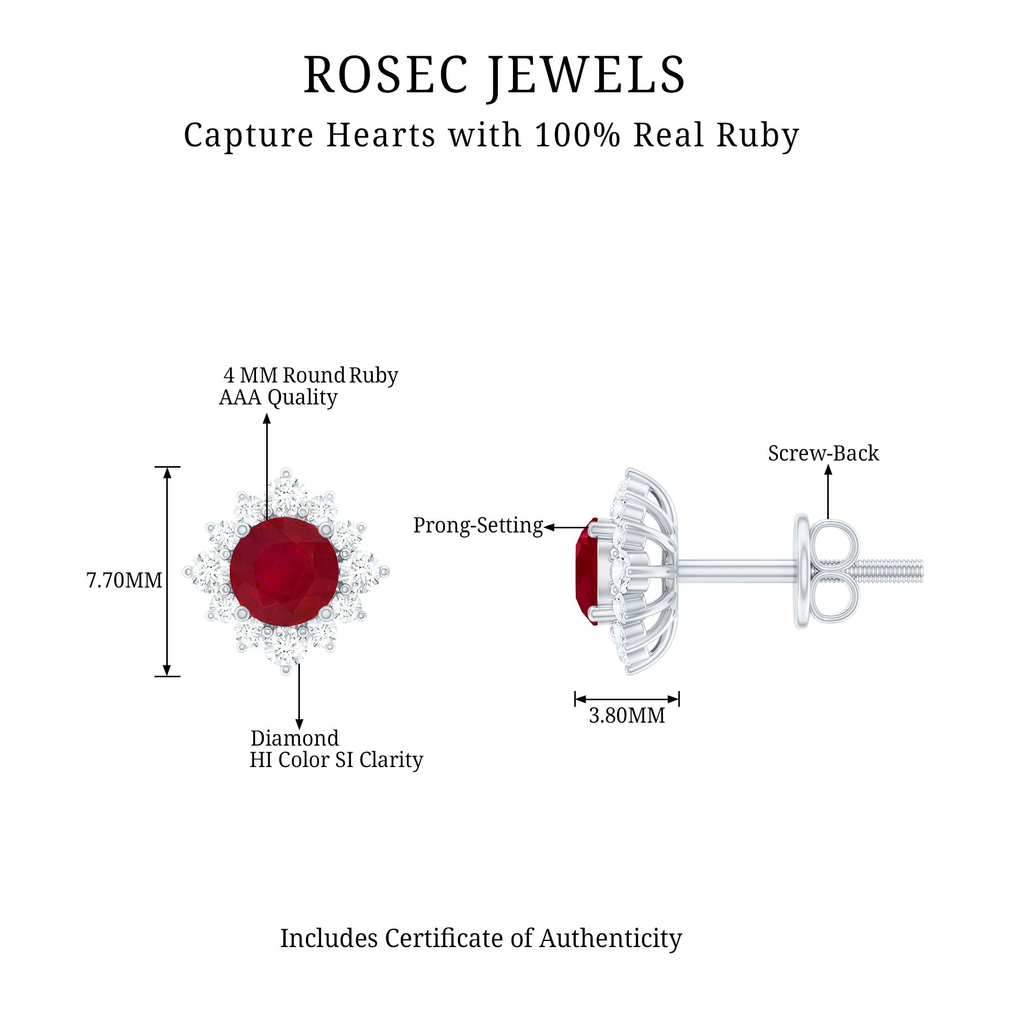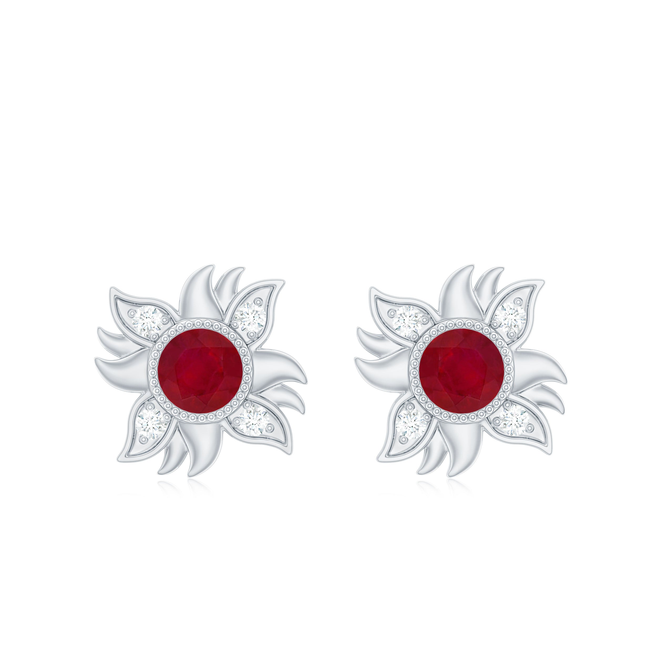 Mainly, this design of studs highlights the beauty and brilliance of ruby. These earrings are available in various metals like white gold, yellow gold, and sterling silver. The choice depends on your budget and preferences.