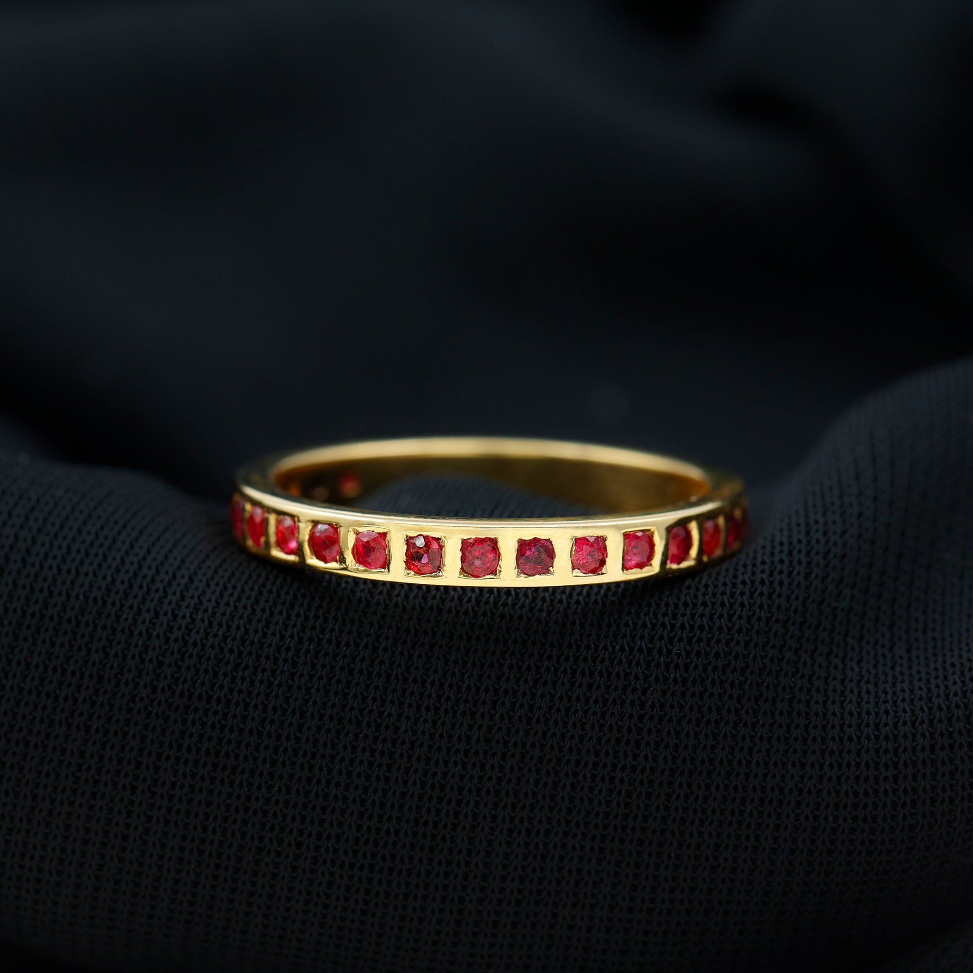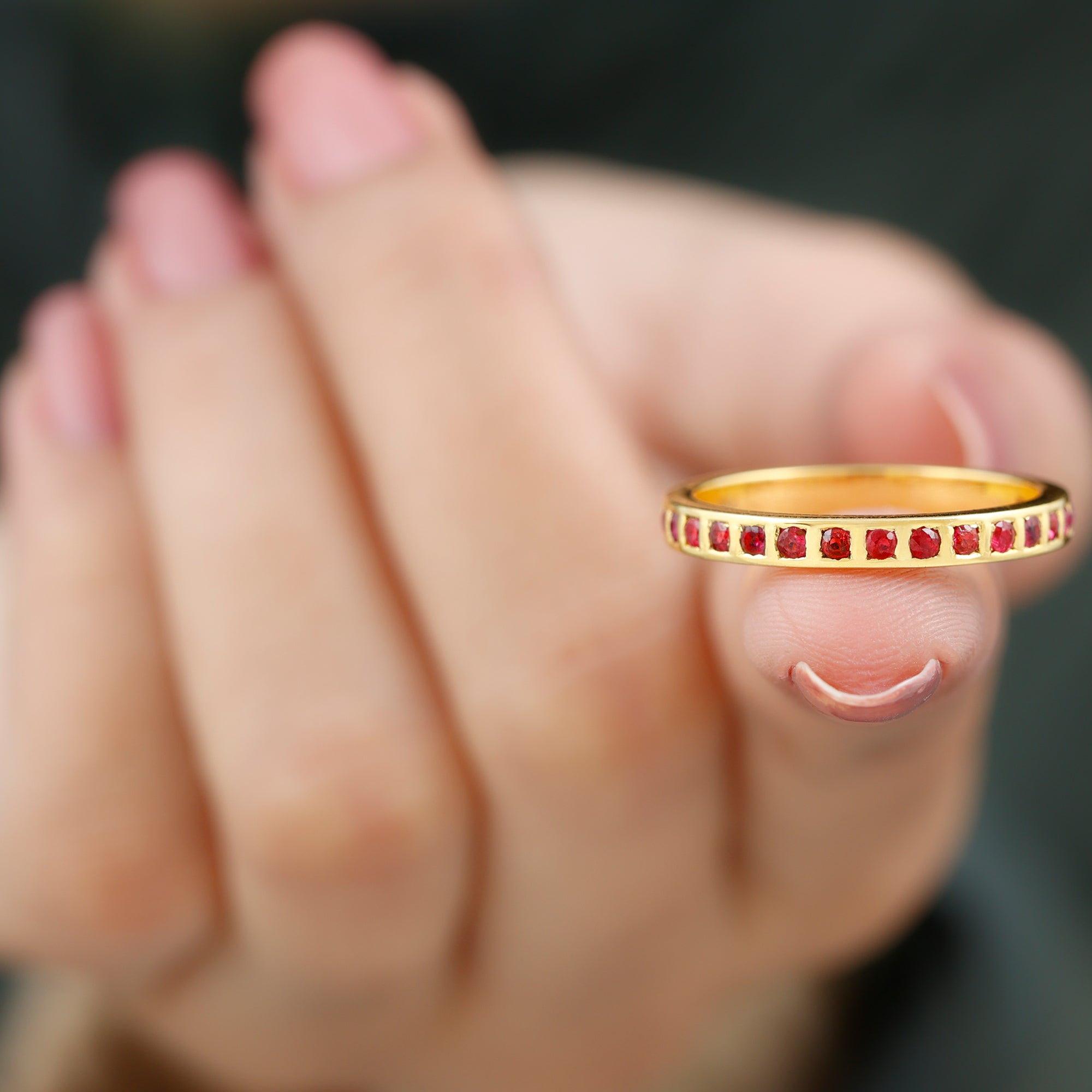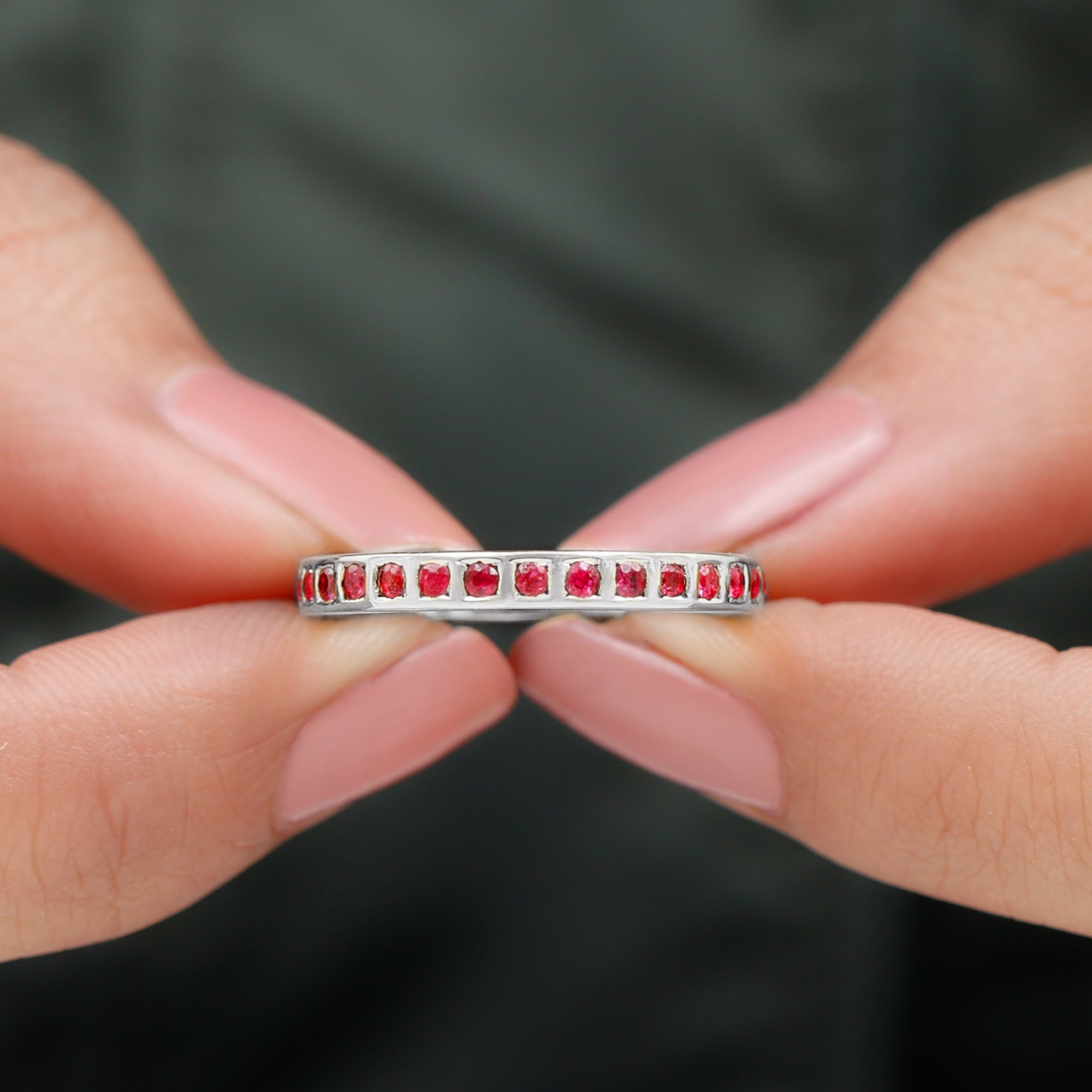 Eternity Rings: - Offering timeless elegance and beauty the ruby eternity rings are crafted with a stunning ruby gemstone, and precious white gold or yellow gold metal. Each half-eternity and full-eternity ring is carefully designed to stay forever while keeping the shine of the ruby stone.