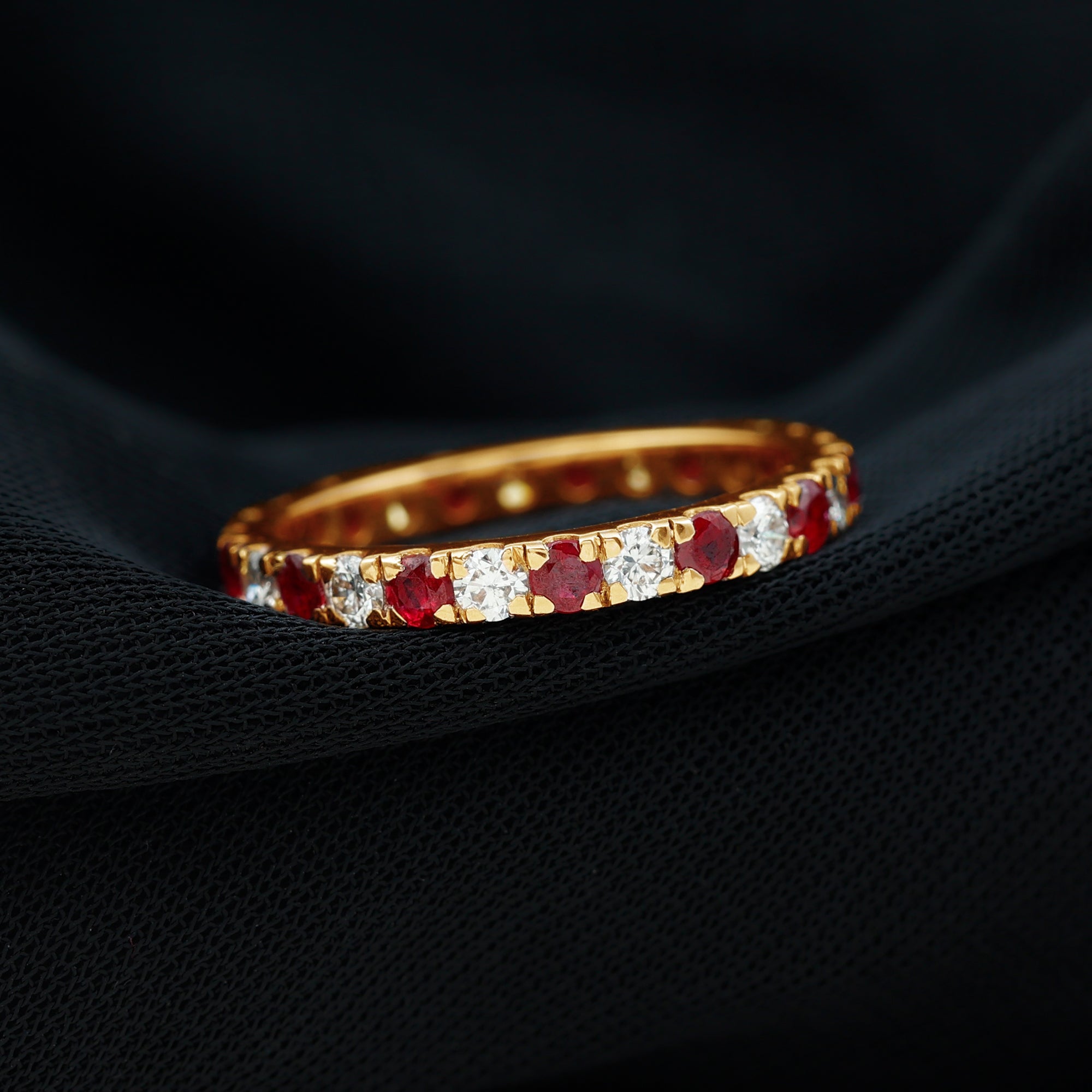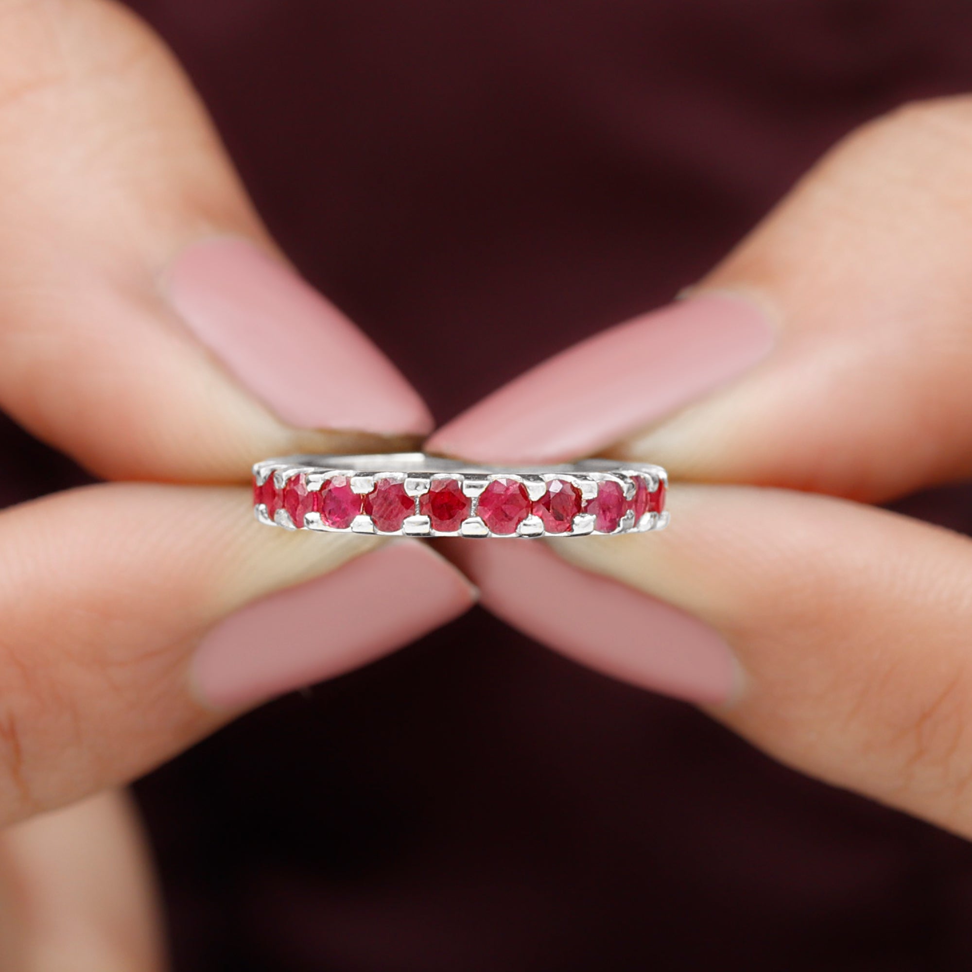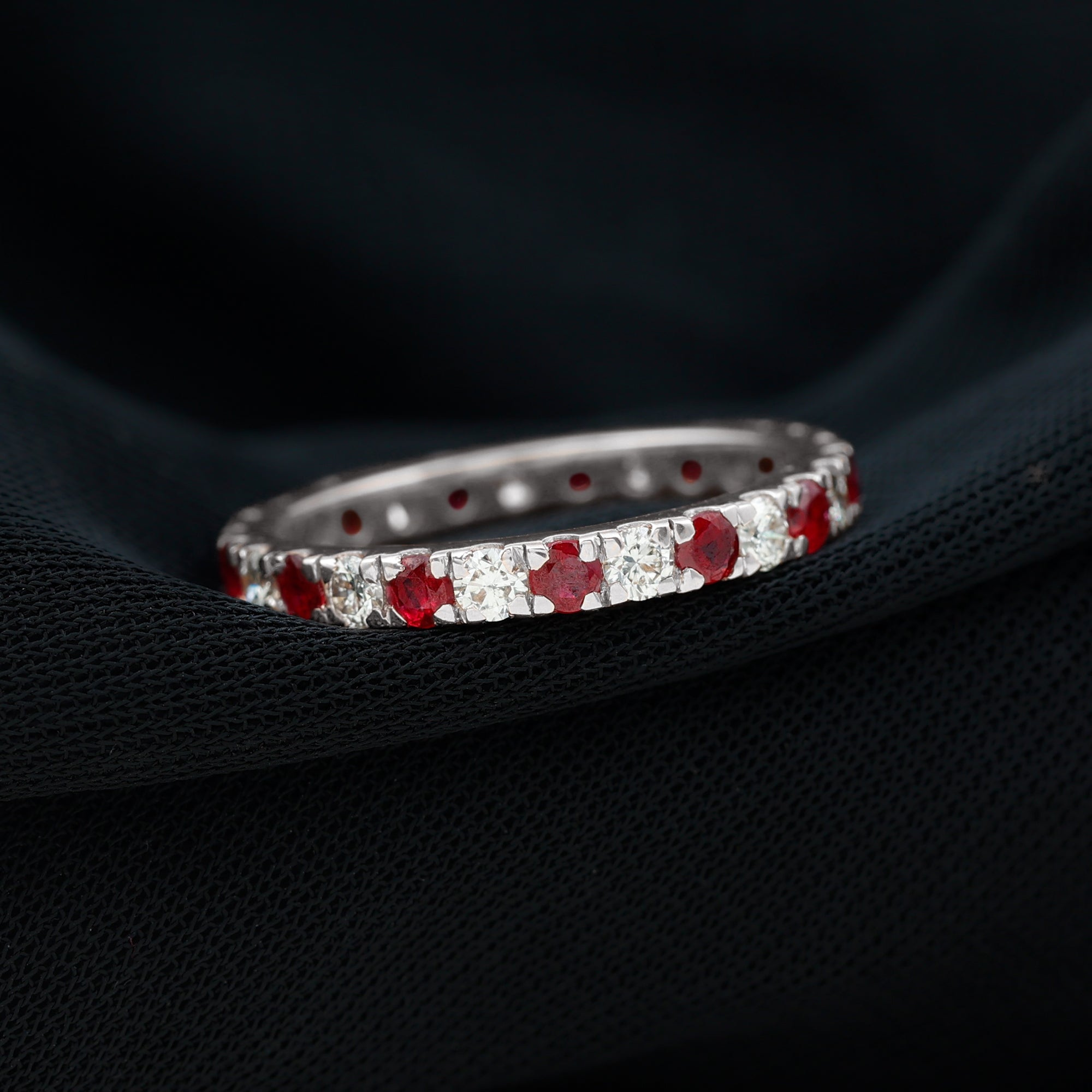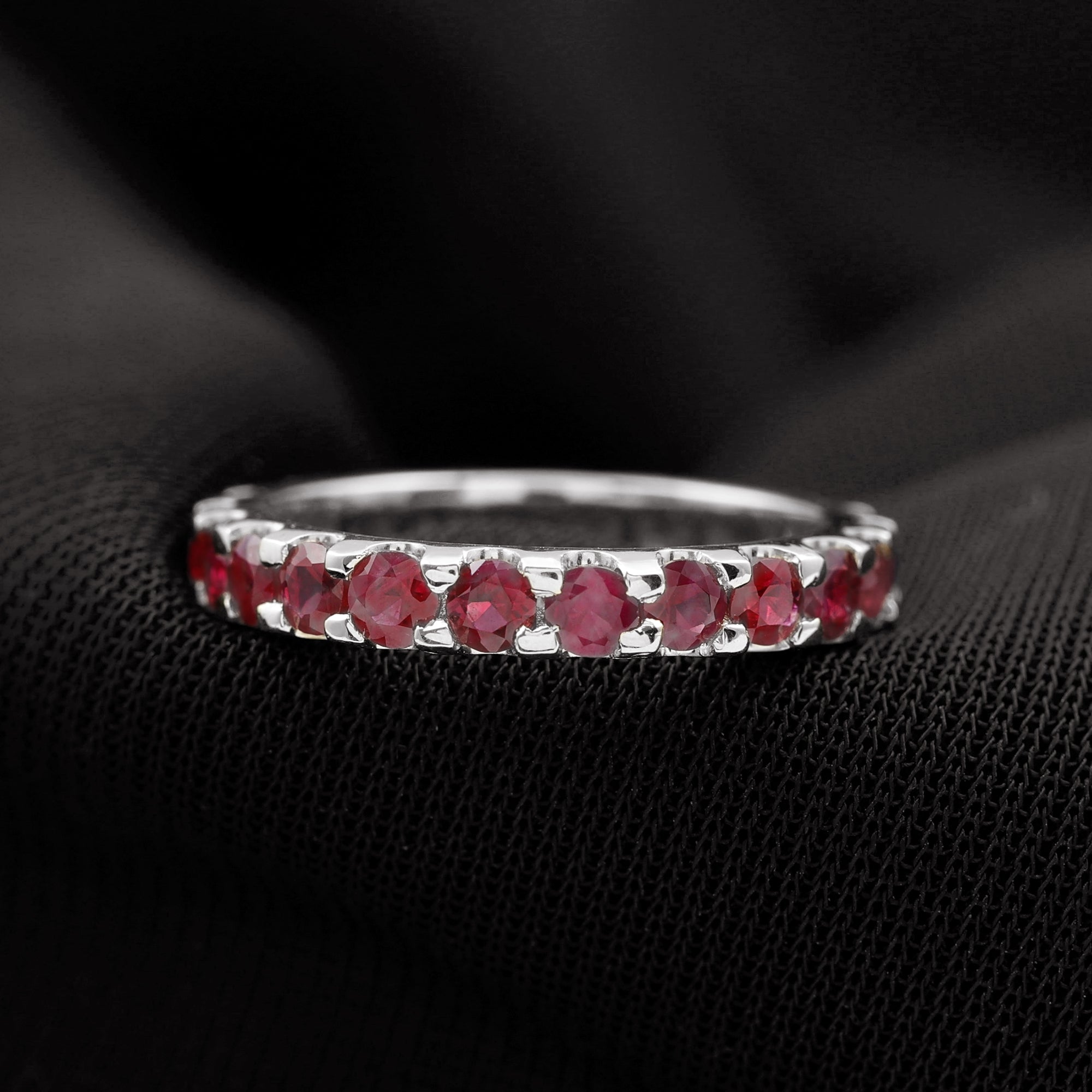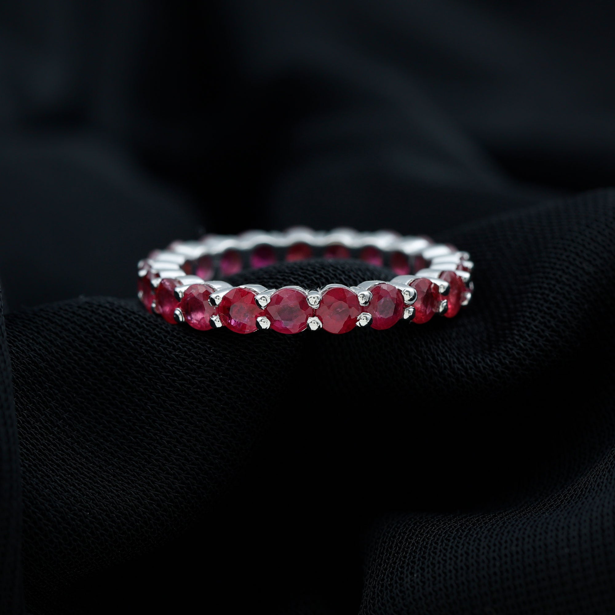 Eternity Rings: - Offering timeless elegance and beauty the ruby eternity rings are crafted with a stunning ruby gemstone, and precious white gold or yellow gold metal. Each half-eternity and full-eternity ring is carefully designed to stay forever while keeping the shine of the ruby stone.