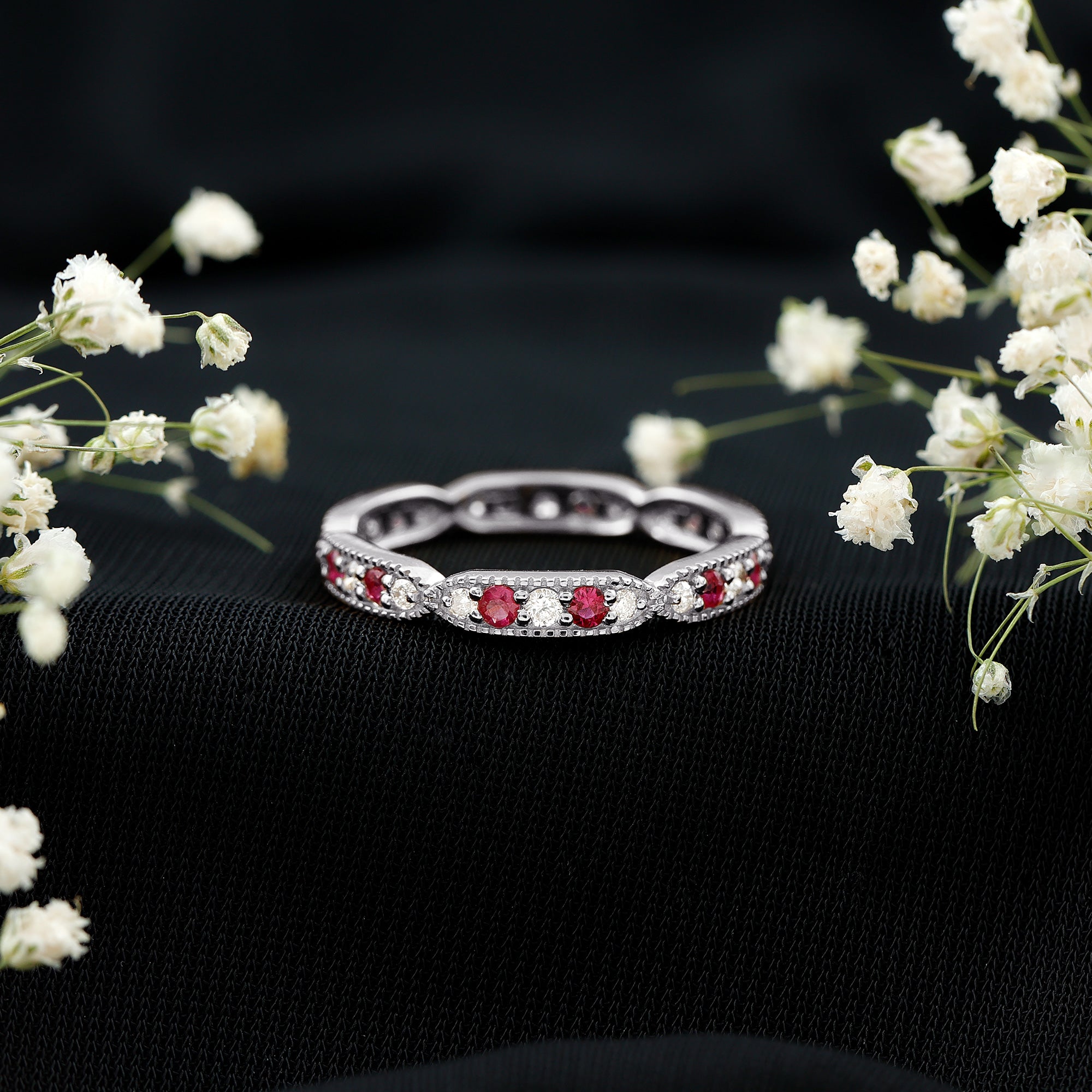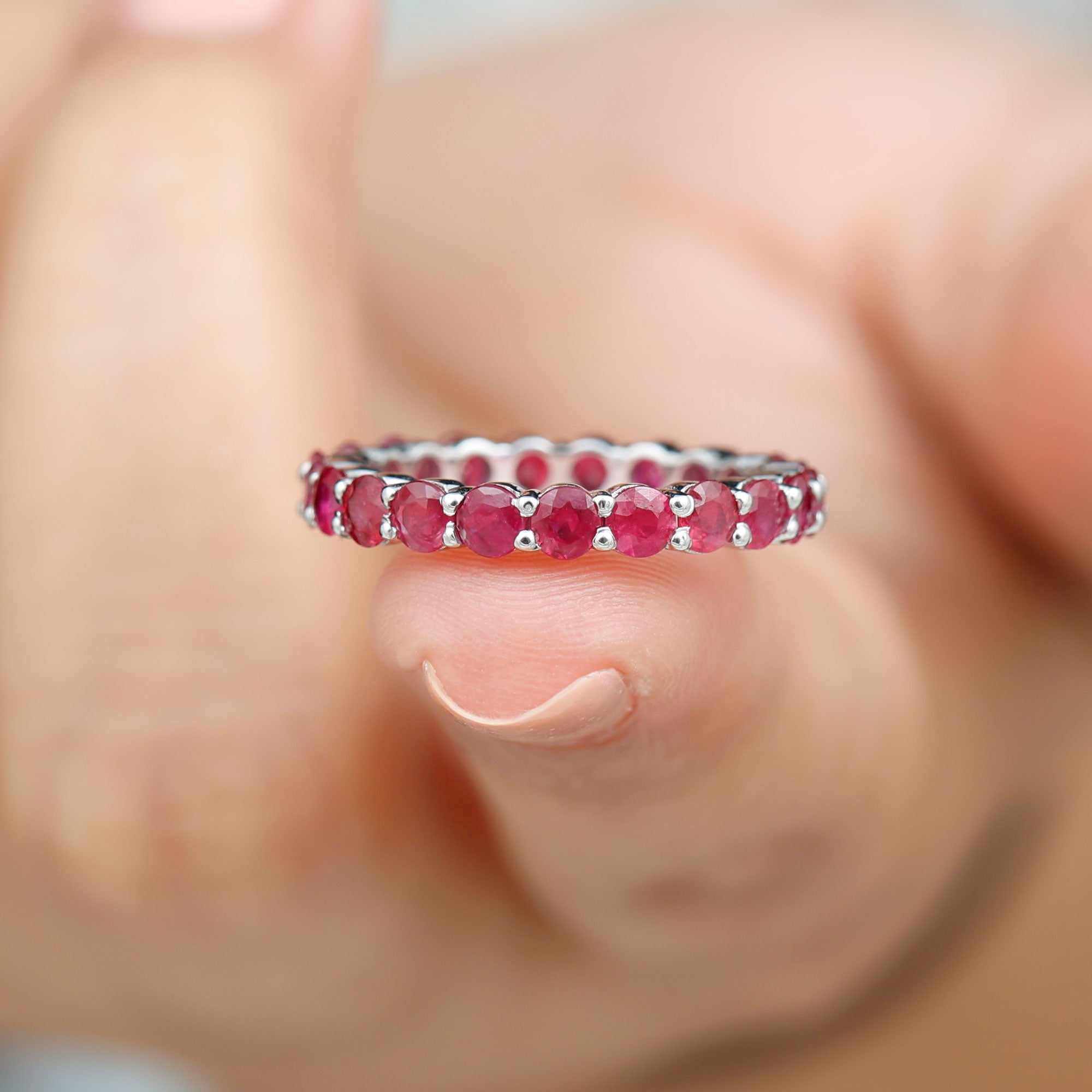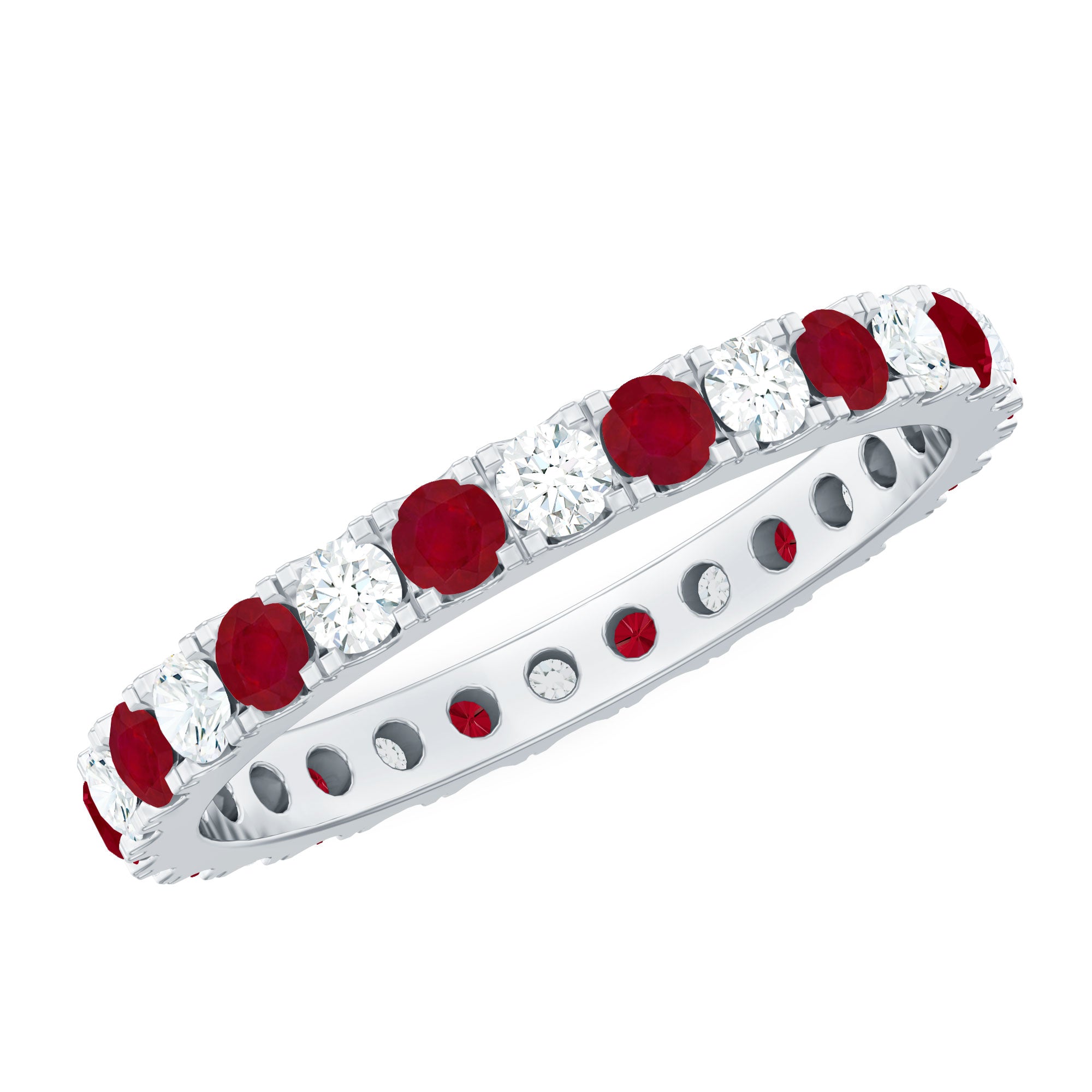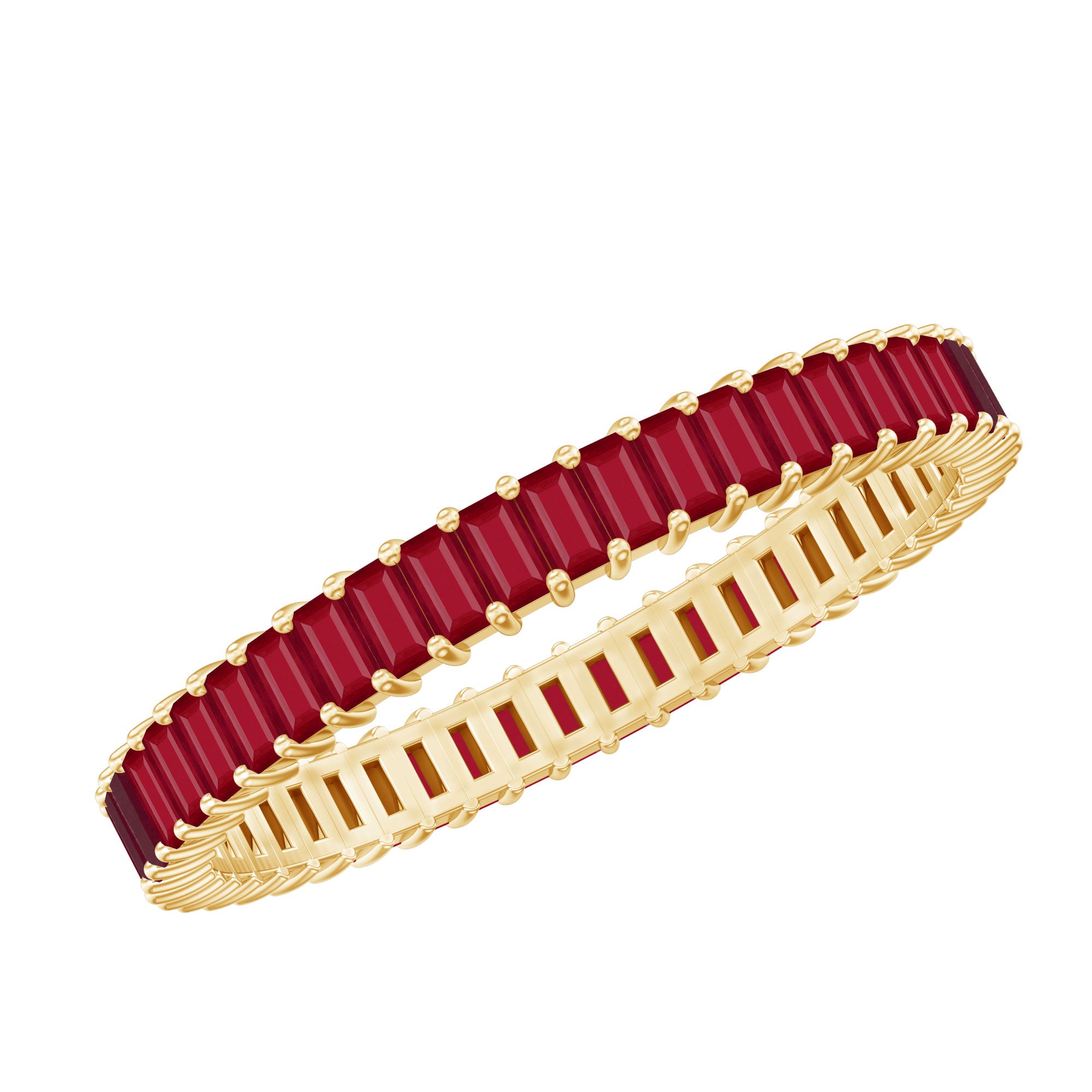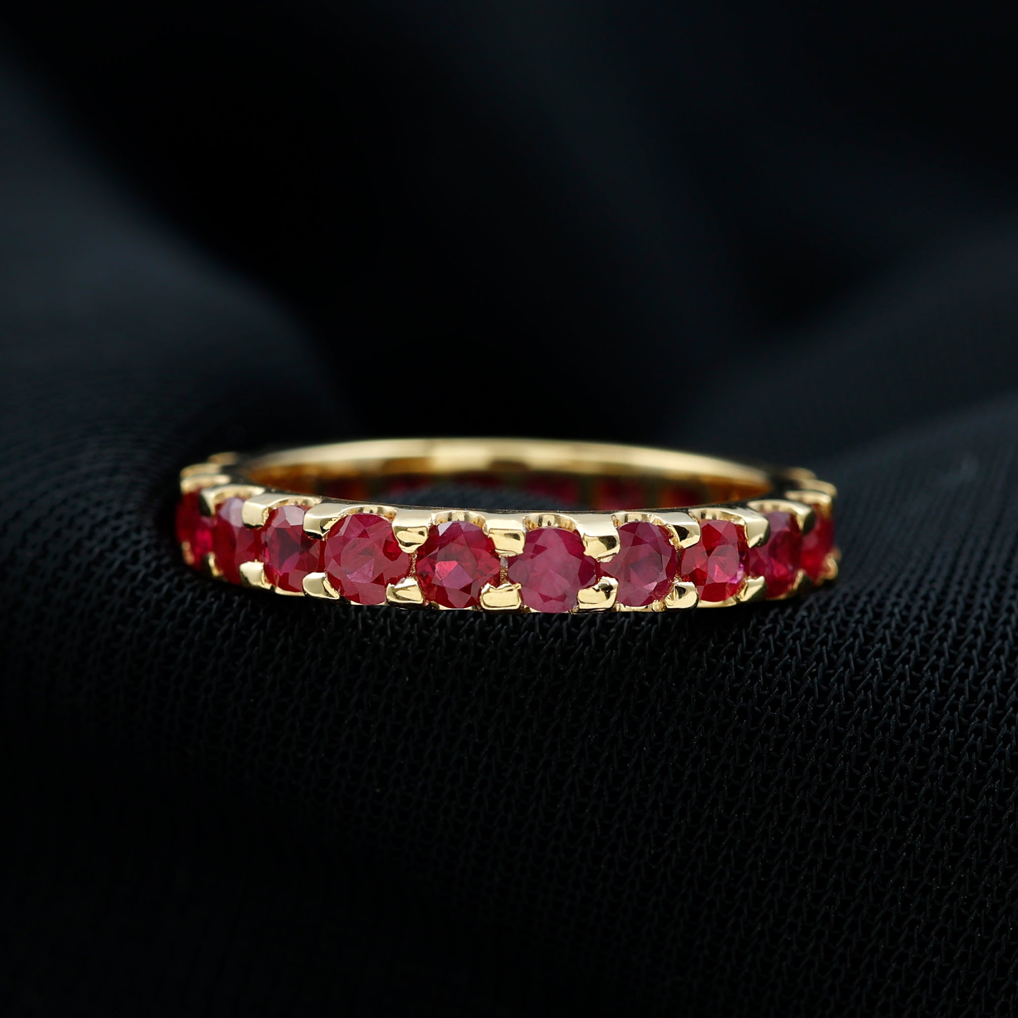 Eternity Rings: - Offering timeless elegance and beauty the ruby eternity rings are crafted with a stunning ruby gemstone, and precious white gold or yellow gold metal. Each half-eternity and full-eternity ring is carefully designed to stay forever while keeping the shine of the ruby stone.