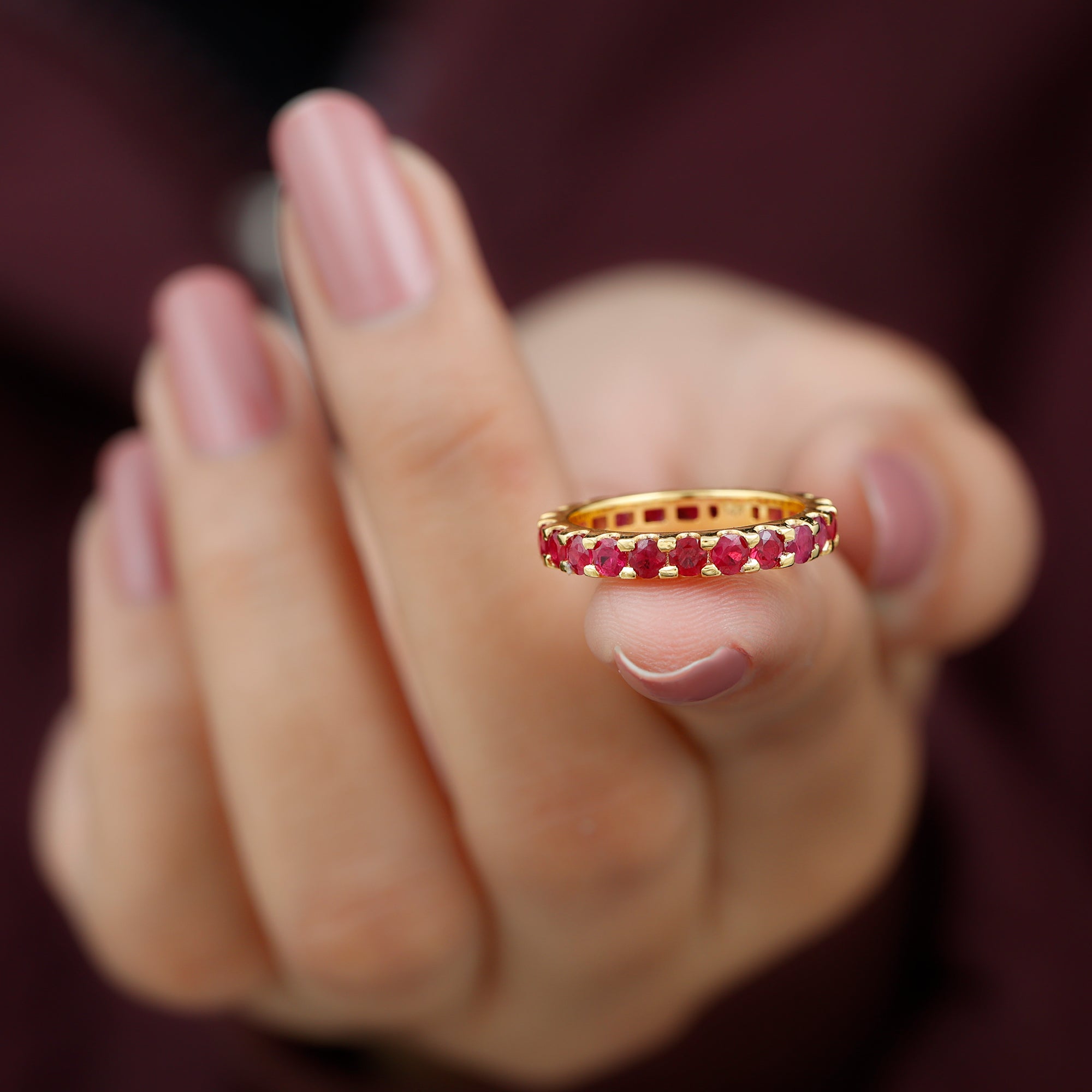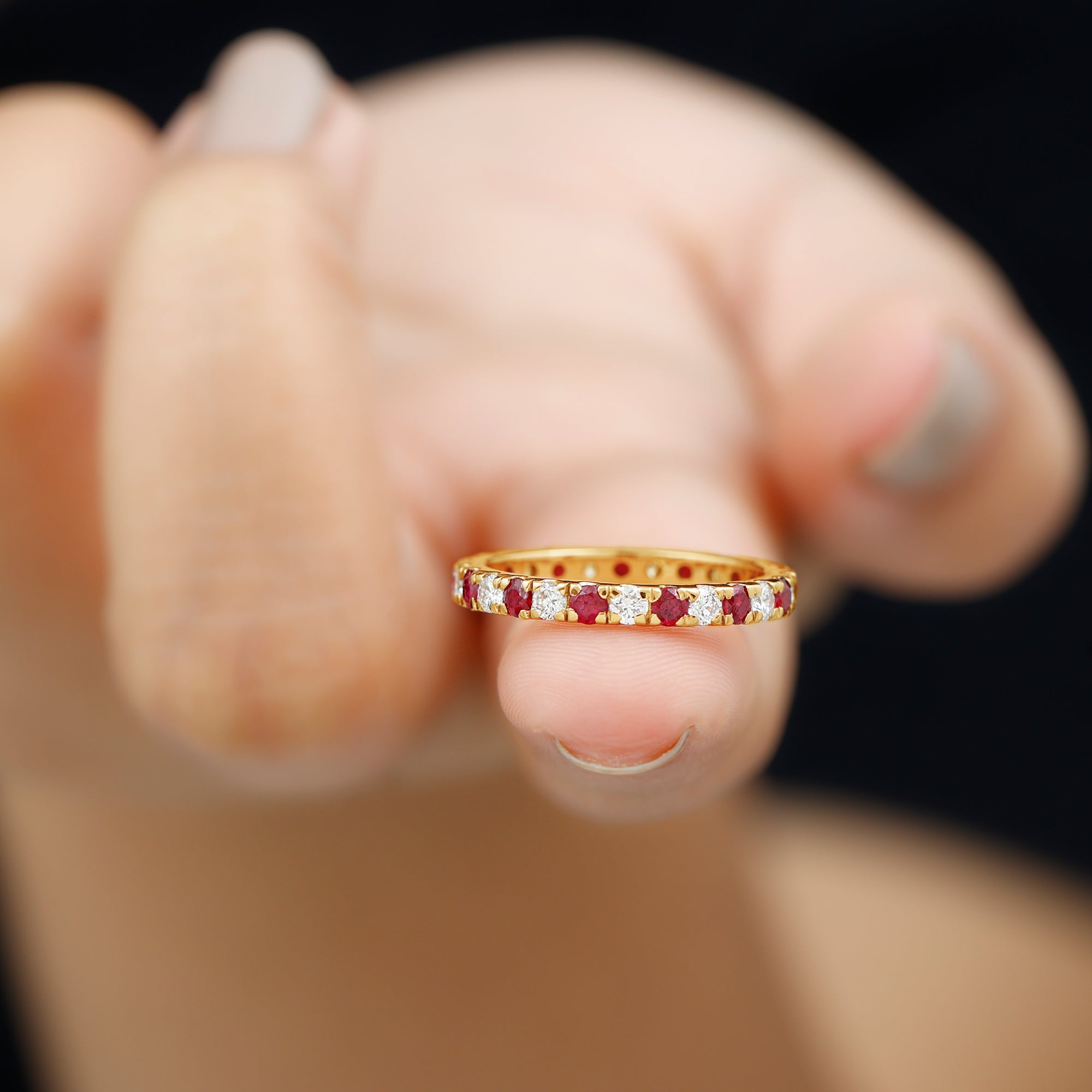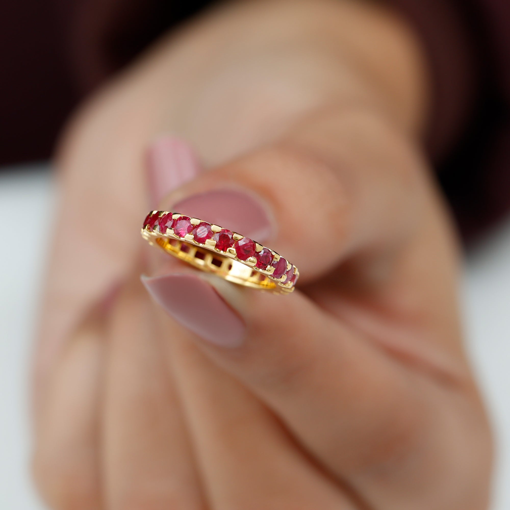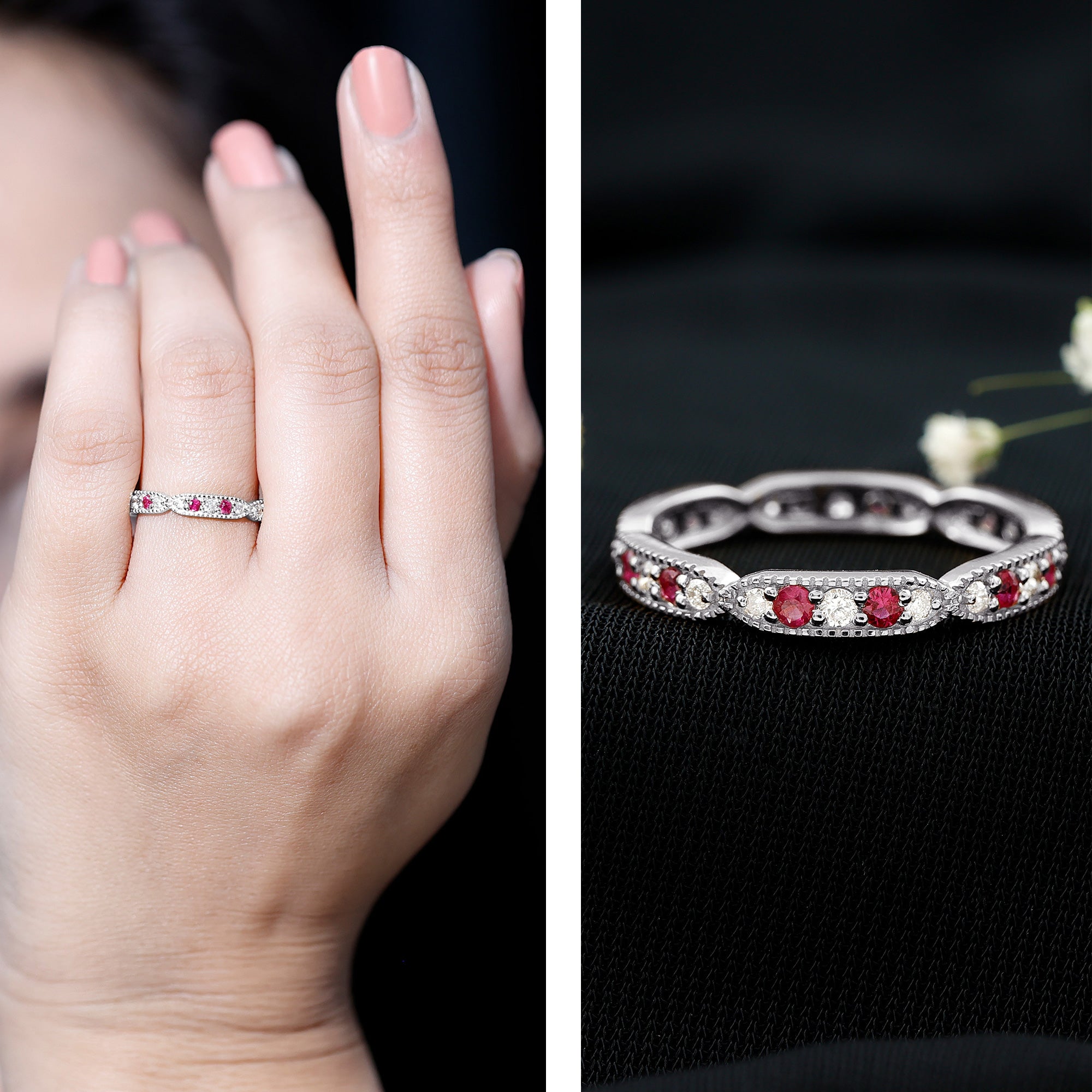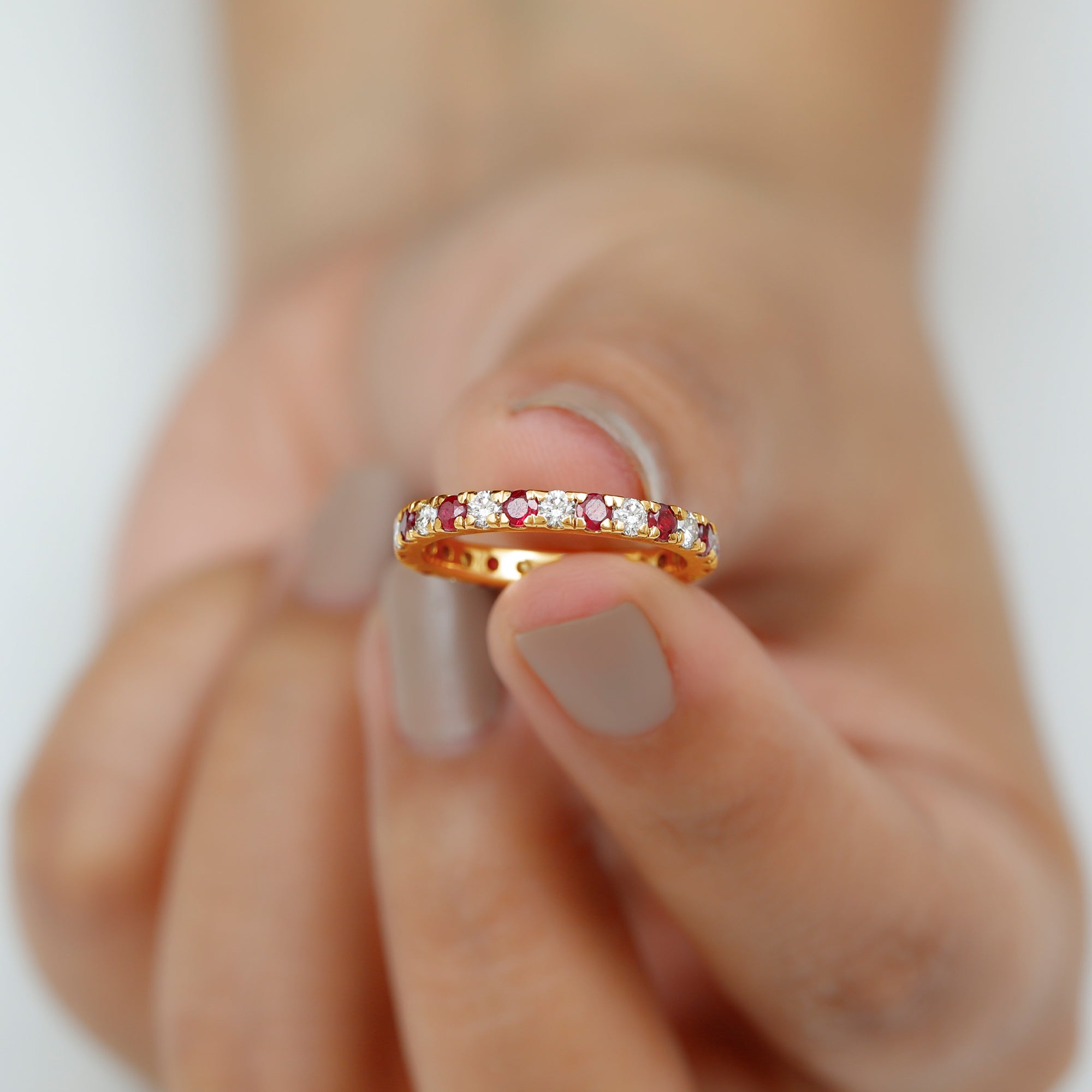 Eternity Rings: - Offering timeless elegance and beauty the ruby eternity rings are crafted with a stunning ruby gemstone, and precious white gold or yellow gold metal. Each half-eternity and full-eternity ring is carefully designed to stay forever while keeping the shine of the ruby stone.