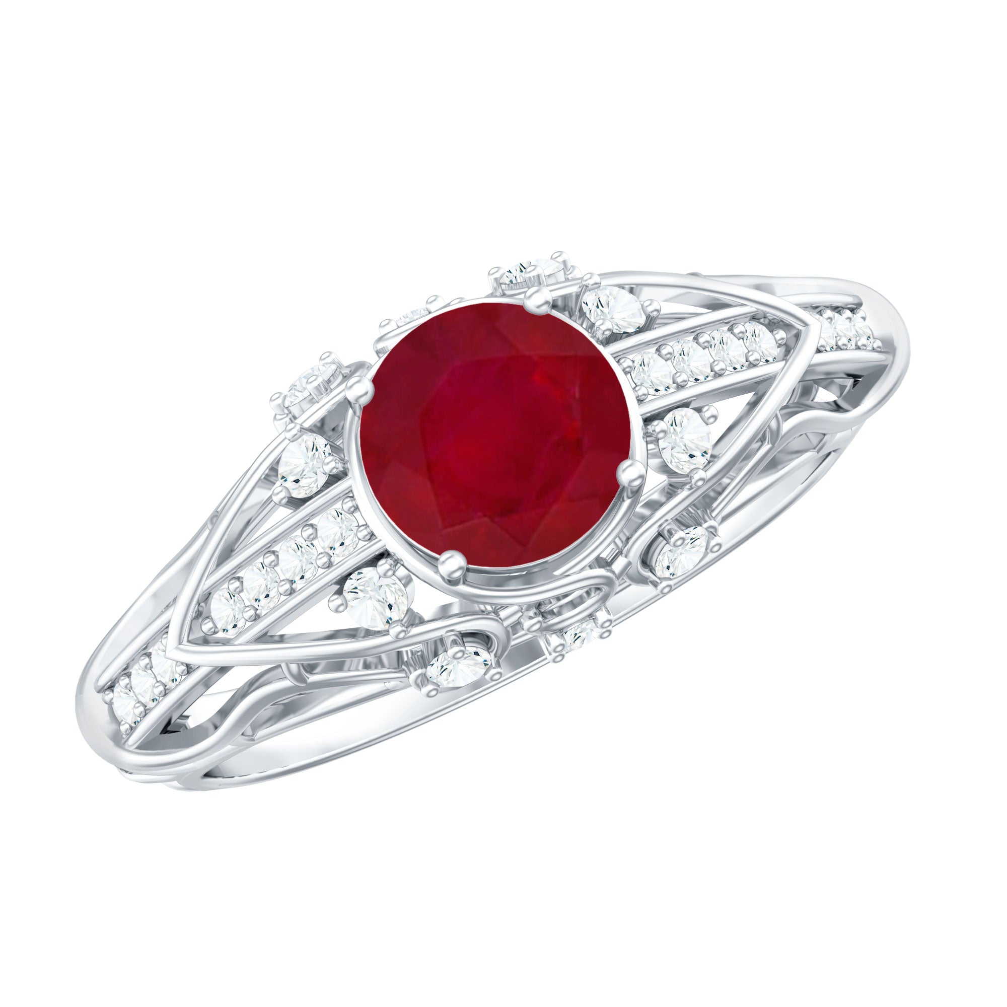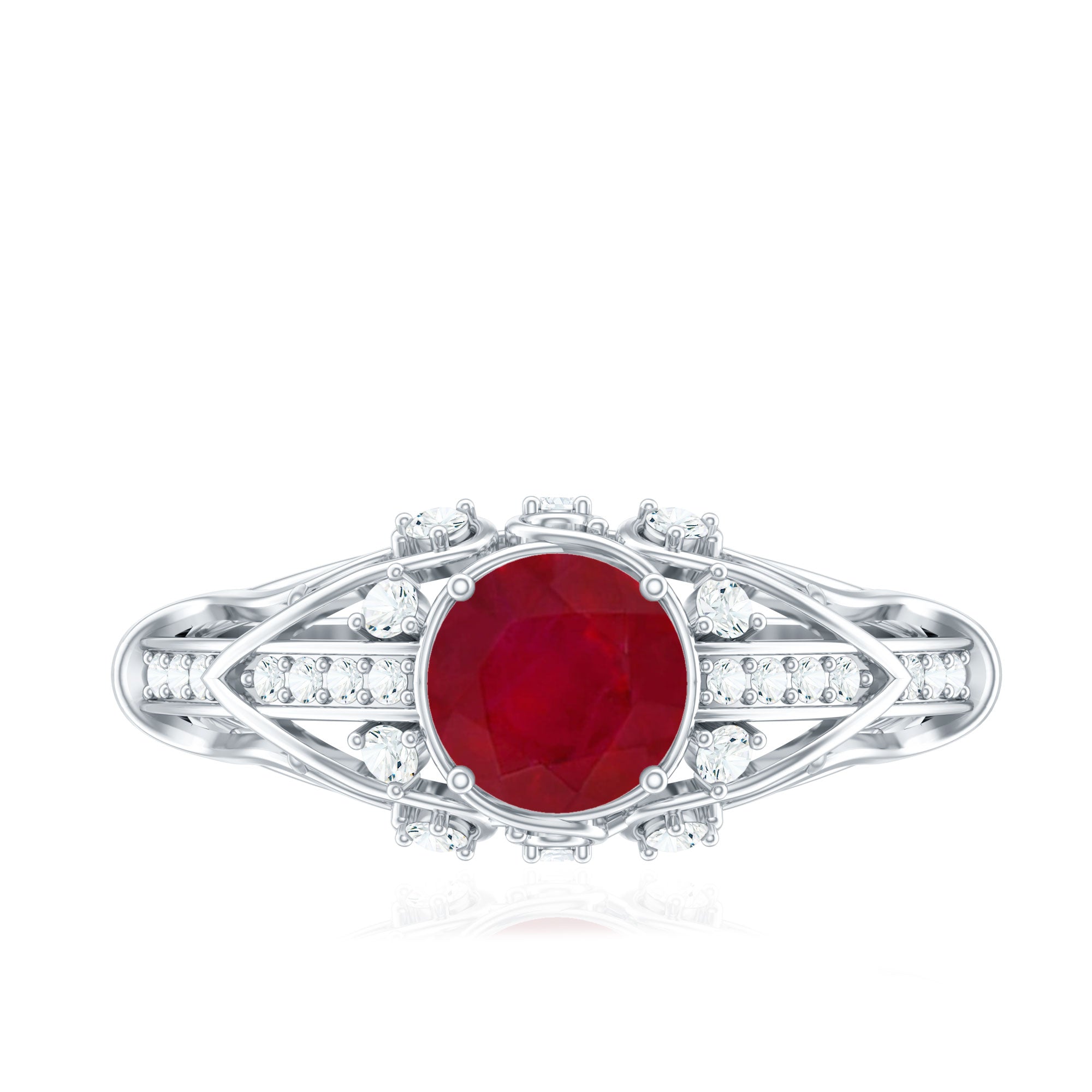 Halo Rings:- This style of ring features a vibrant ruby gemstone encircled by a diamond or moissanite halo, showing the beauty and brilliance of the center gemstone. These ruby halo rings become very popular and an ideal choice for those who want the touch of sparkle in their accessory.