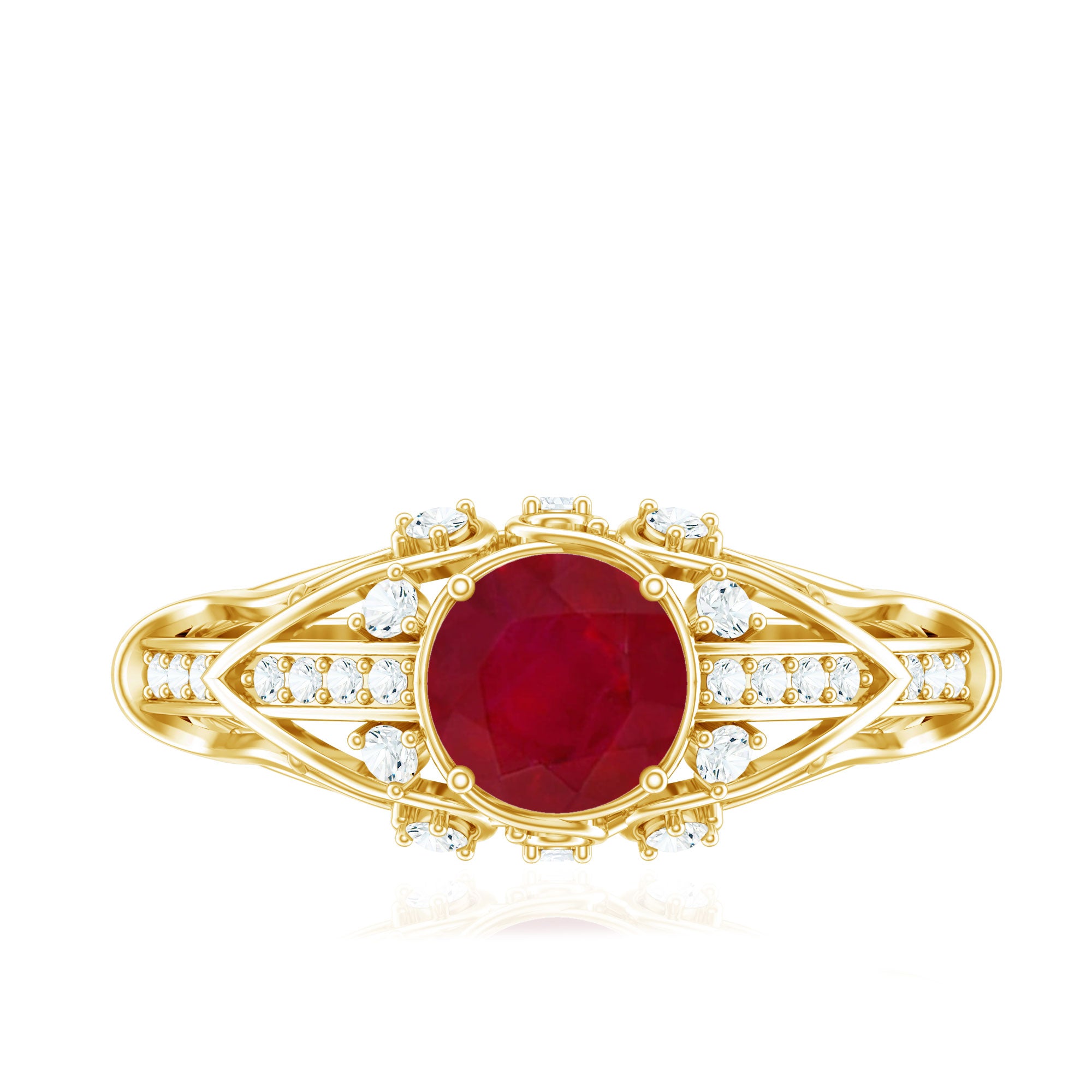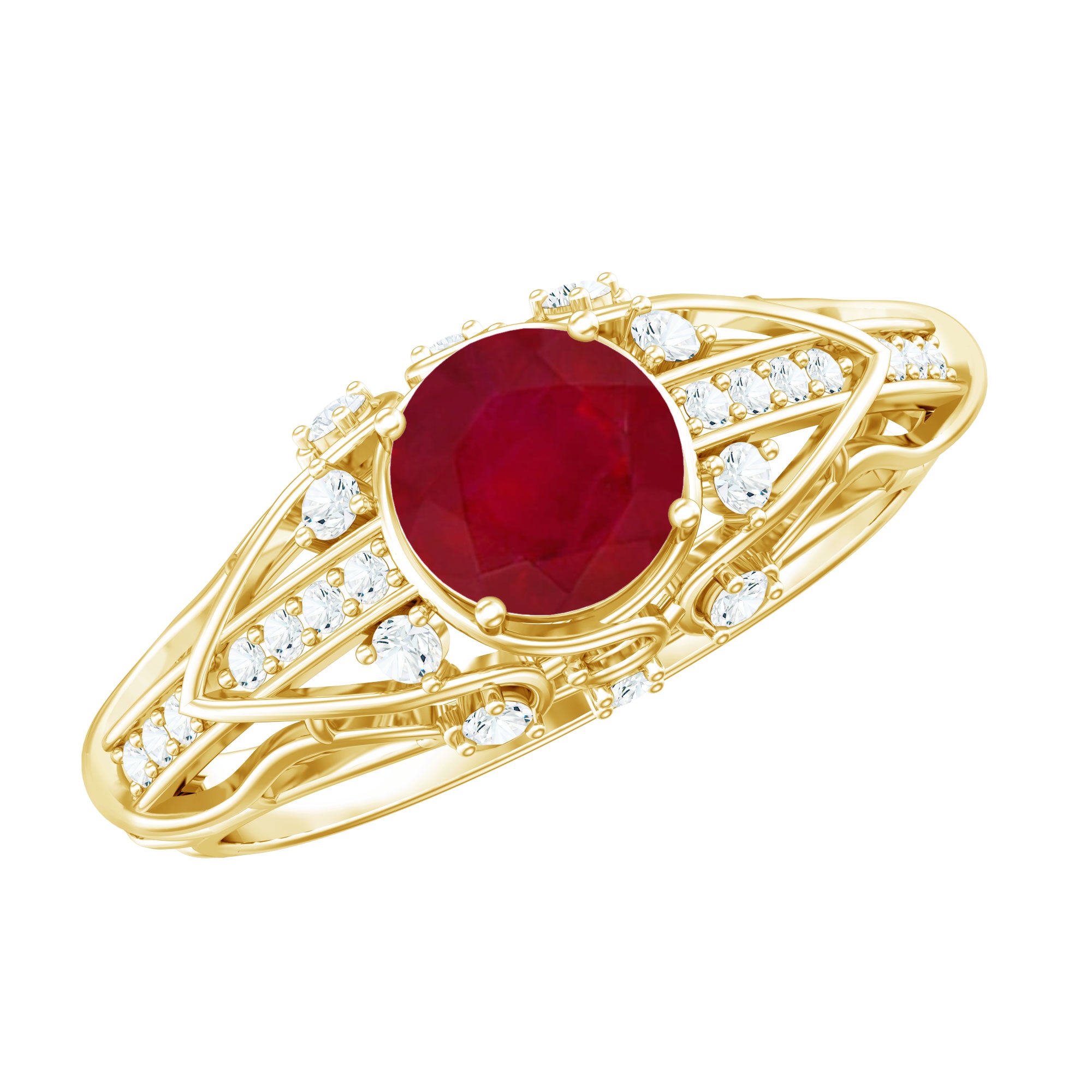 Solitaire Rings: - Graced by a single ruby gemstone, this solitaire ring holds a distinctive vibe. The simplicity of this solitaire ruby rings capture the hearts of onlookers. This type of style is best for those women who appreciate it as simple yet classic. Each ruby in solitaire ring set on yellow gold, or white gold metal brightens the design with its unlimited sparkle.