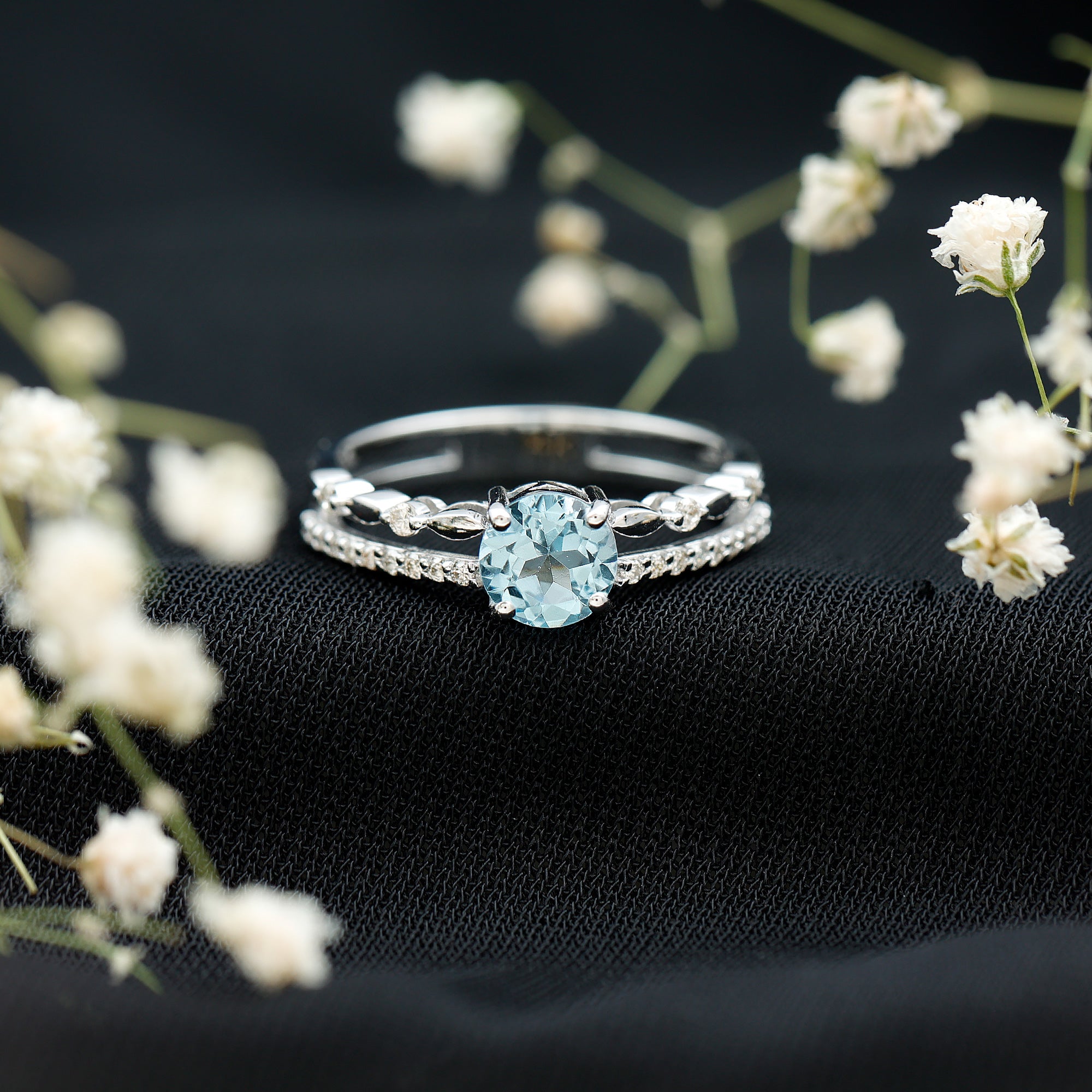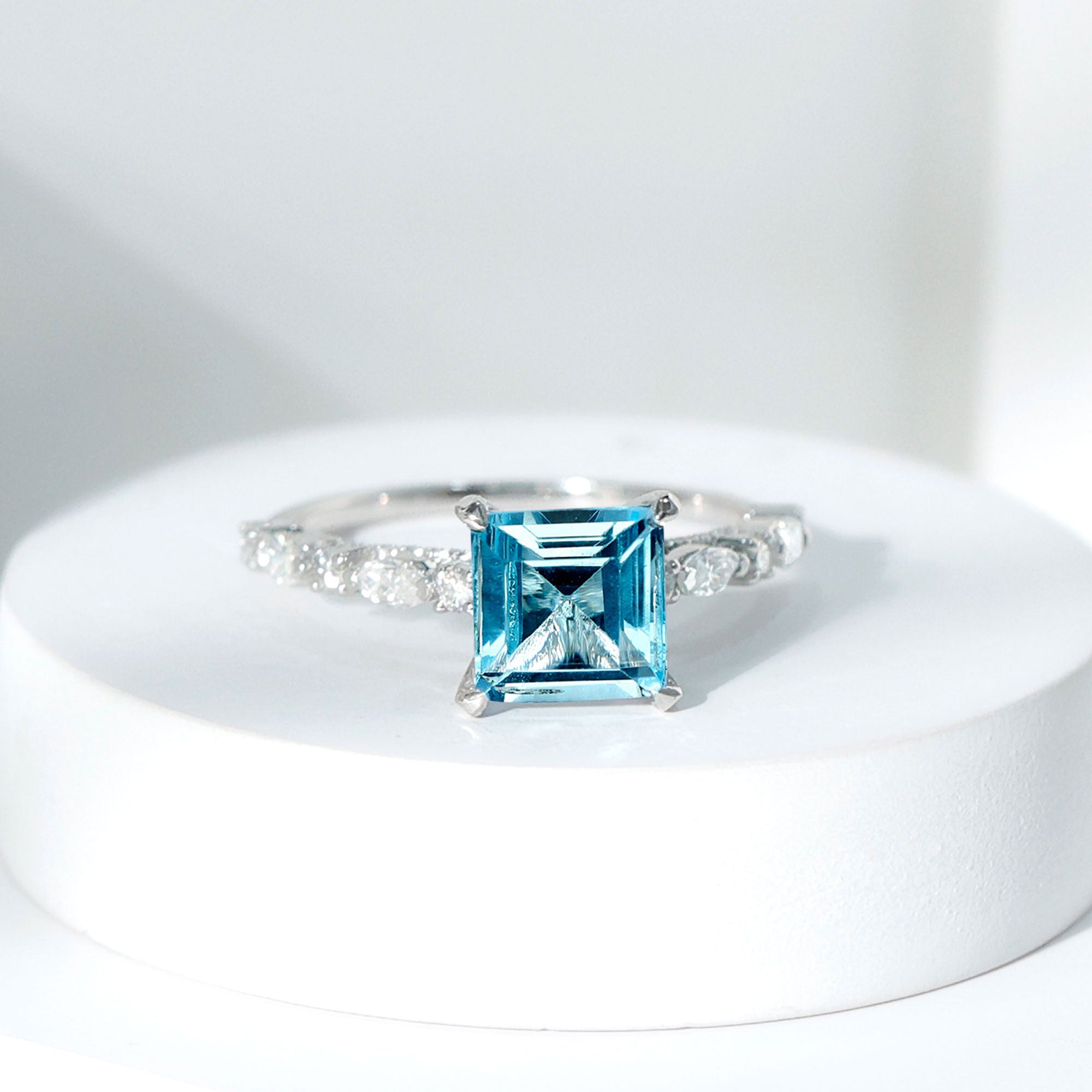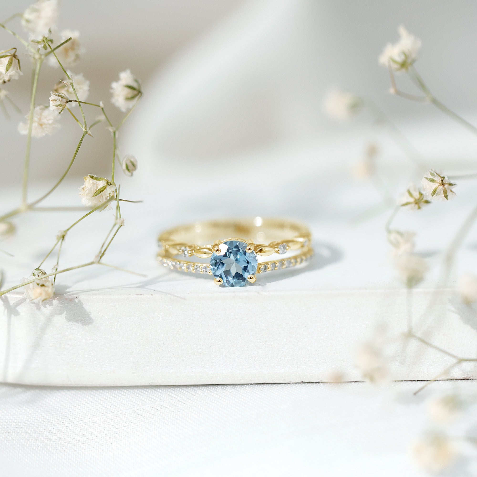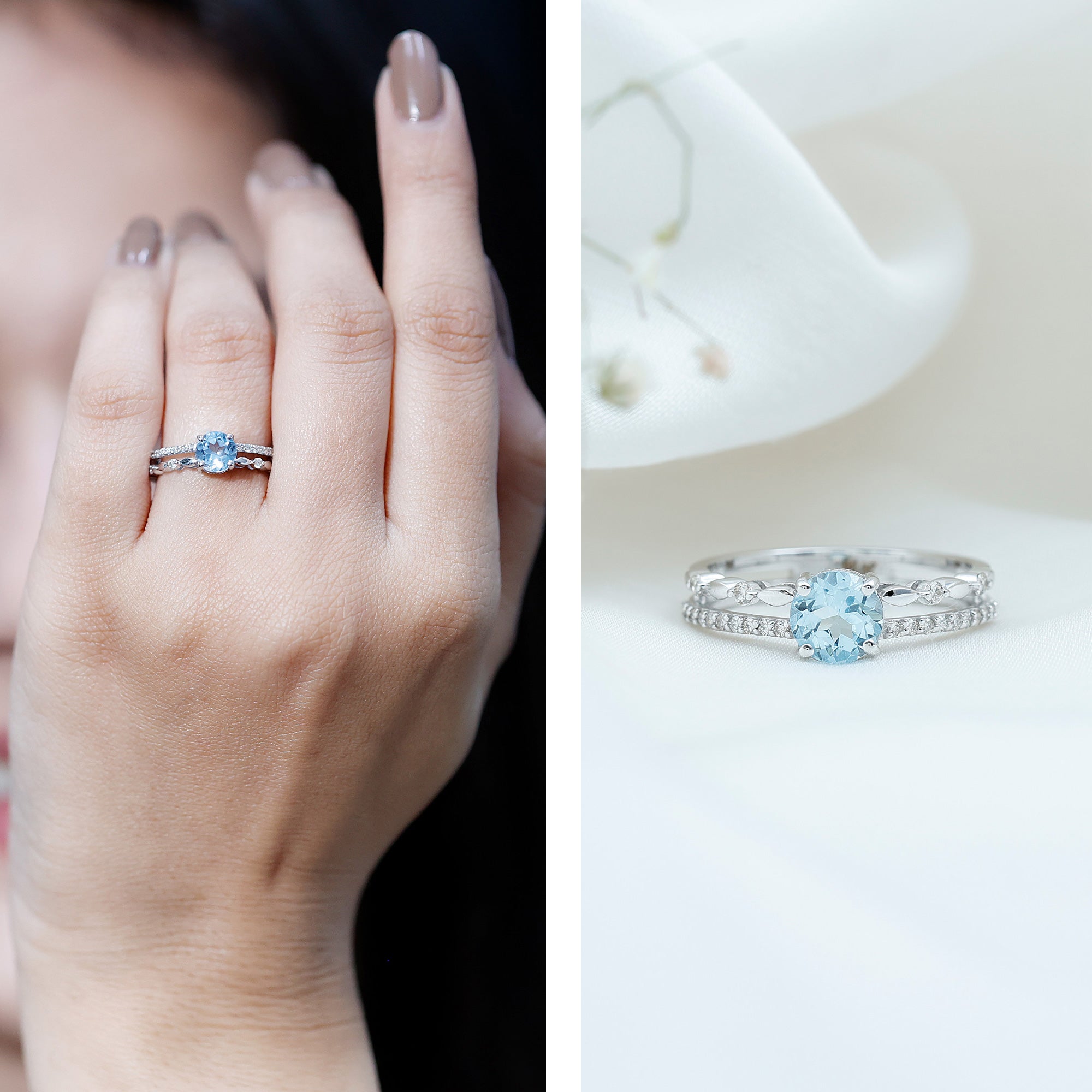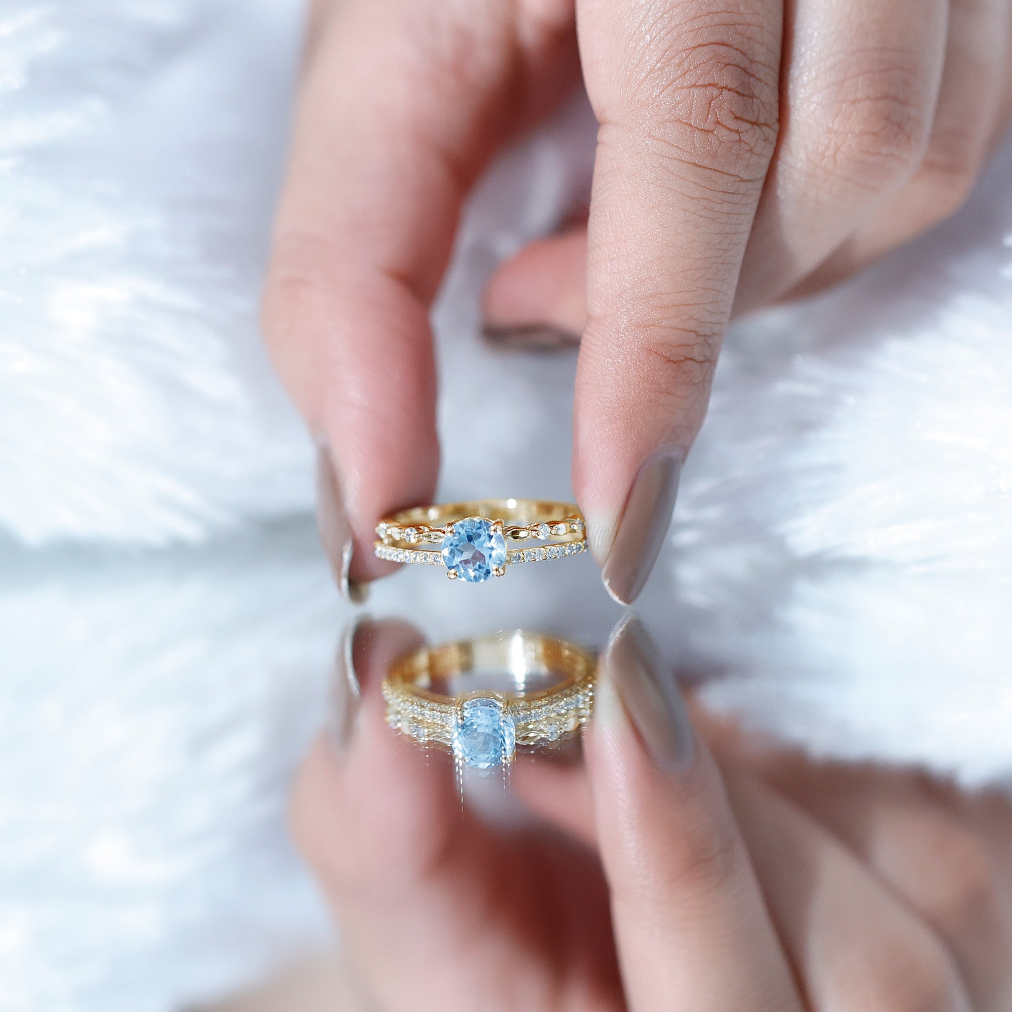 • Sky Blue Topaz Engagement Set: - Featuring two rings (the bride's engagement ring and wedding ring) complementing each other. Our sky blue topaz ring for her is often meaningful, more classic, and stylish, introducing dazzling halo patterns, and embellishments. Each set is crafted to captivate the hearts of onlookers, creating a dazzling ensemble for forever-shared moments.