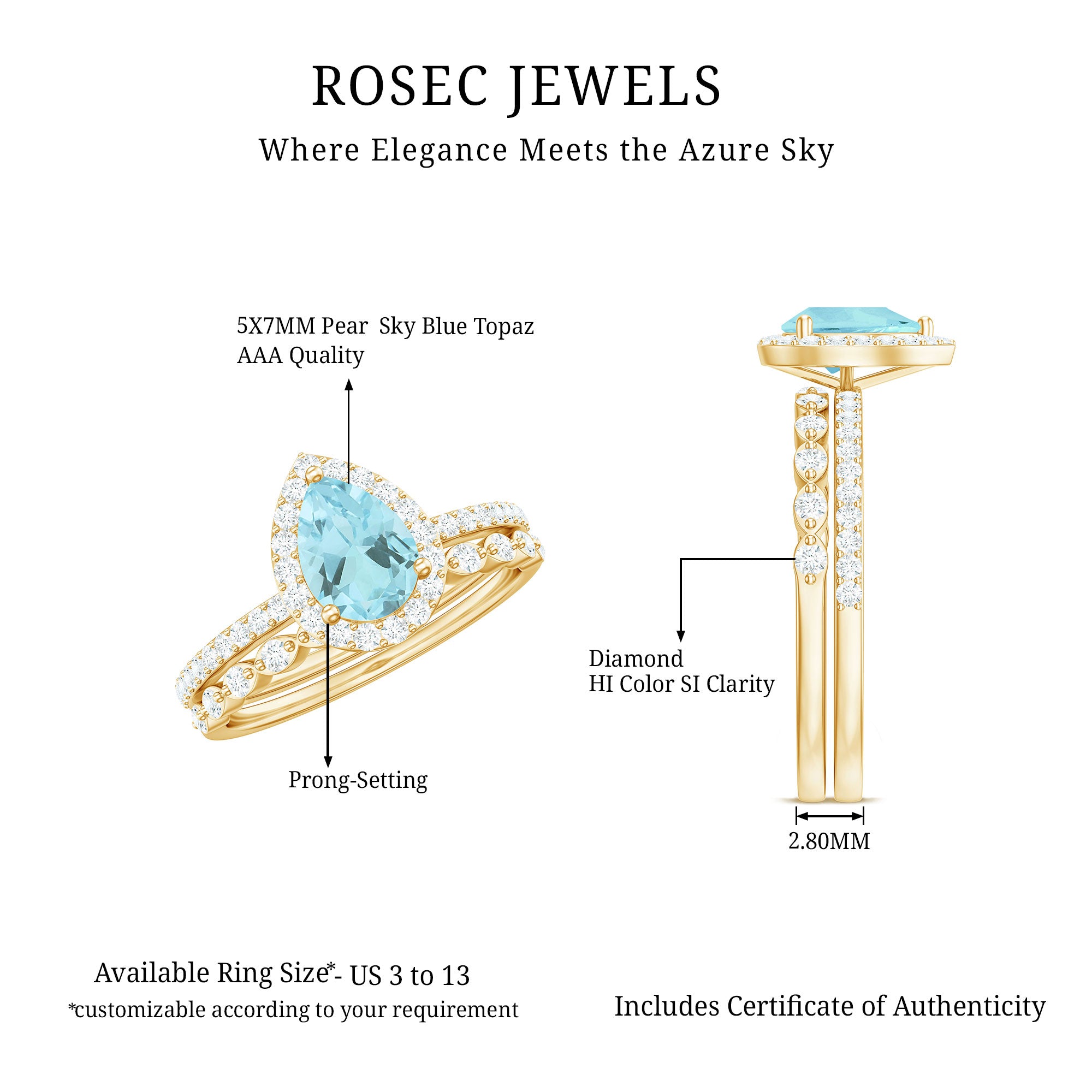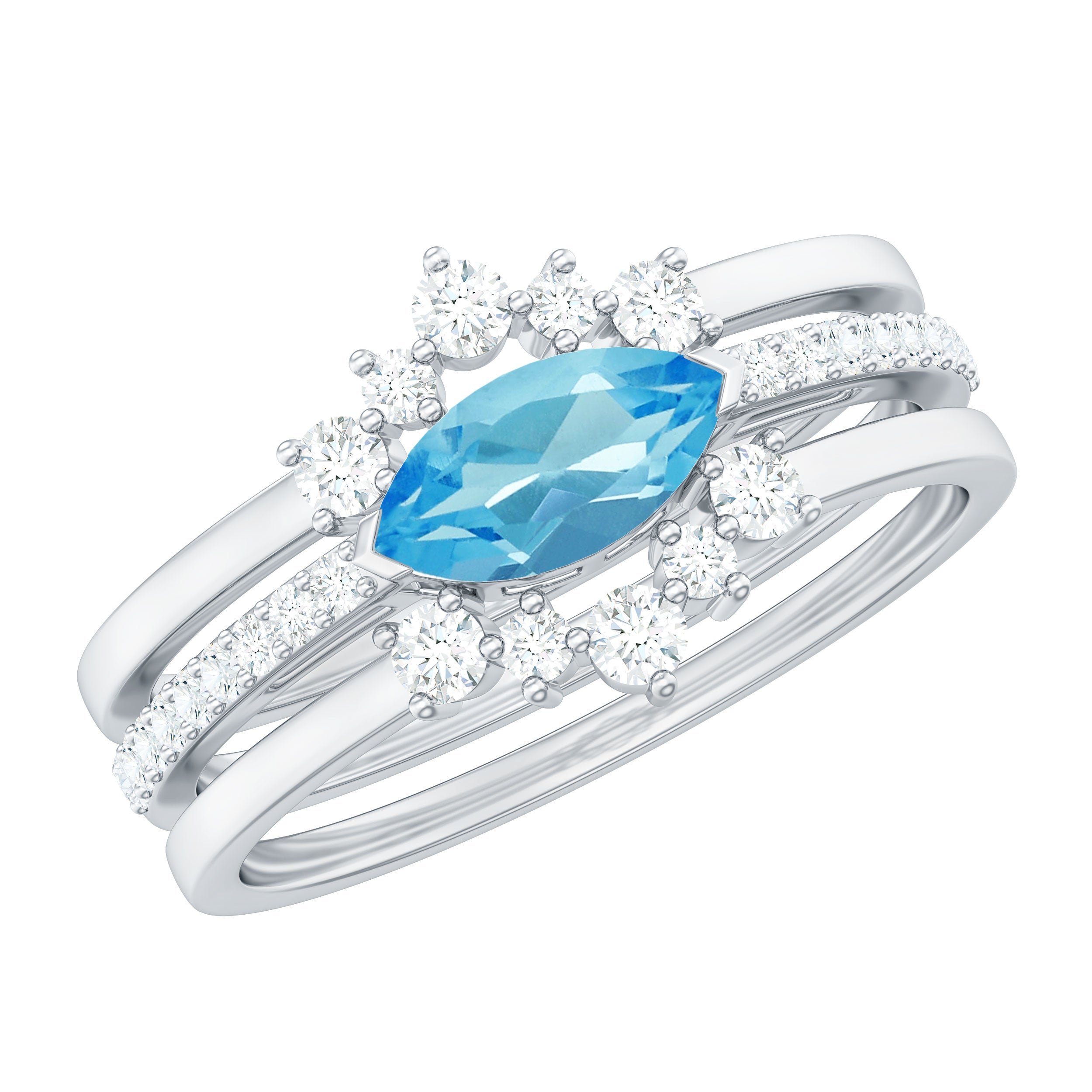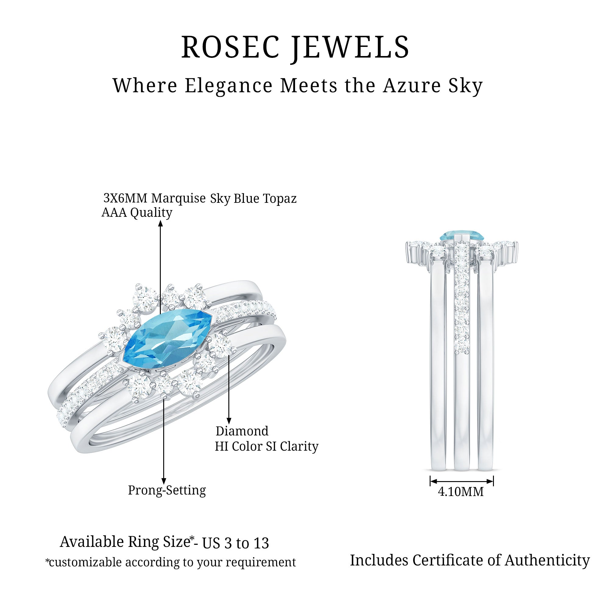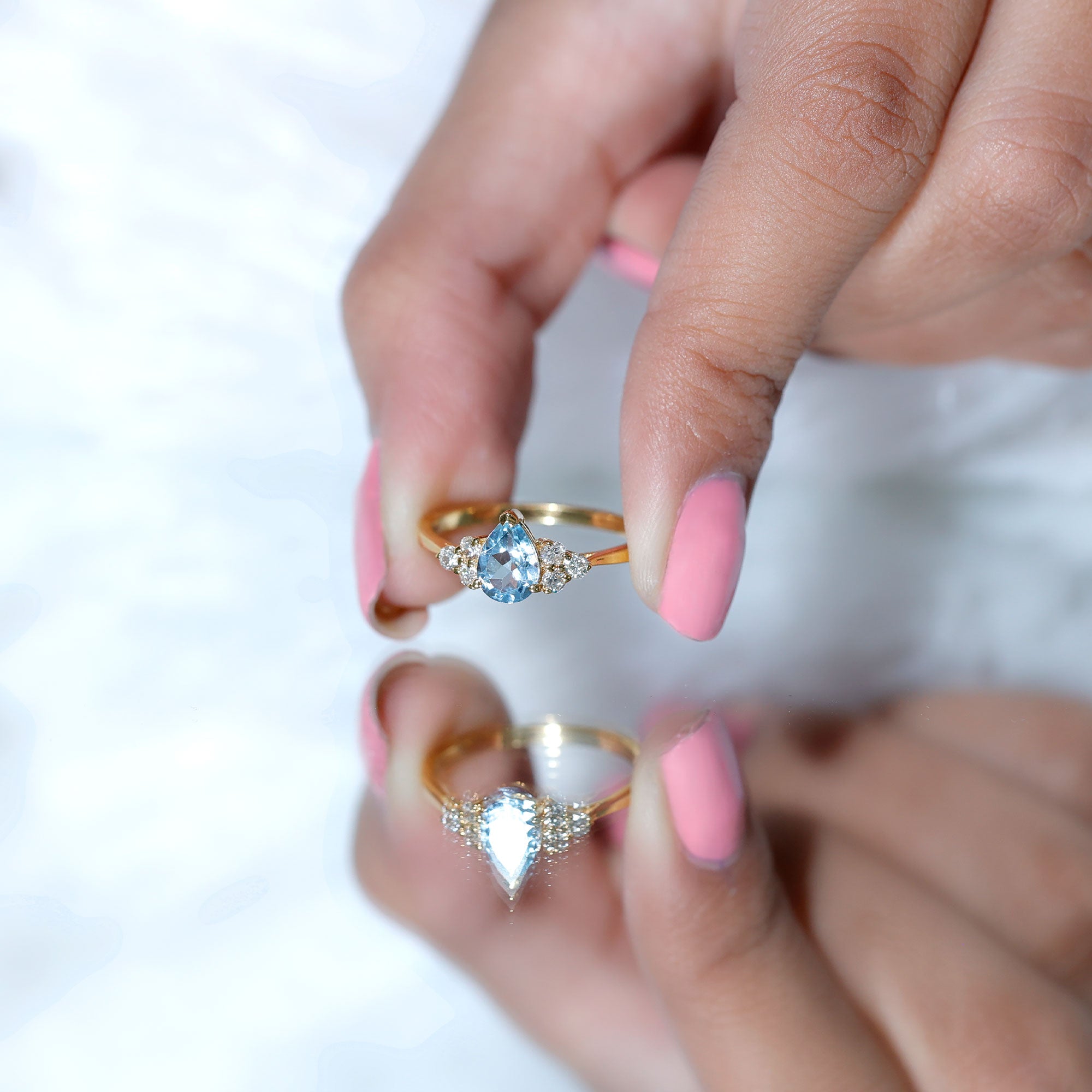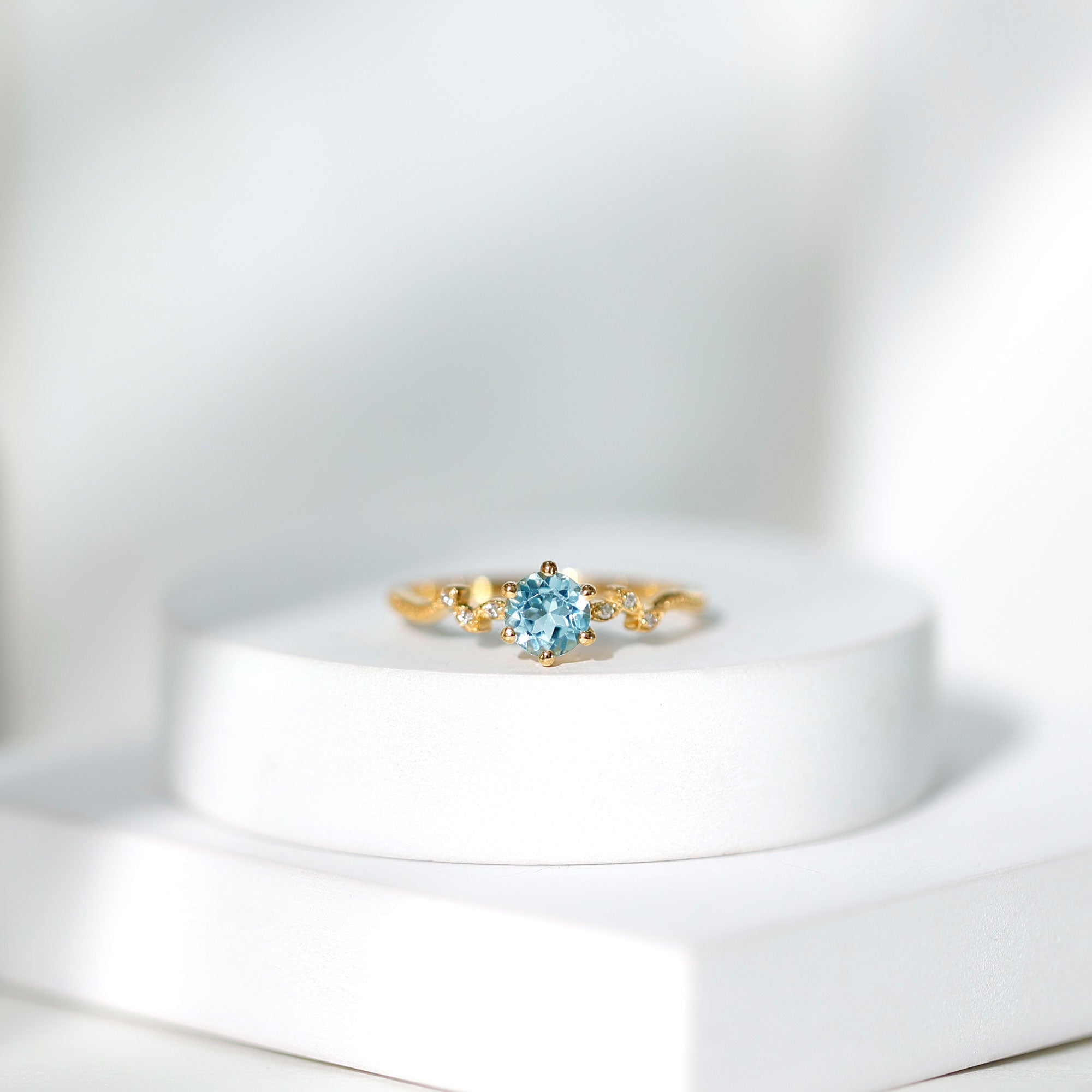 • Sky Blue Topaz Engagement Set: - Featuring two rings (the bride's engagement ring and wedding ring) complementing each other. Our sky blue topaz ring for her is often meaningful, more classic, and stylish, introducing dazzling halo patterns, and embellishments. Each set is crafted to captivate the hearts of onlookers, creating a dazzling ensemble for forever-shared moments.