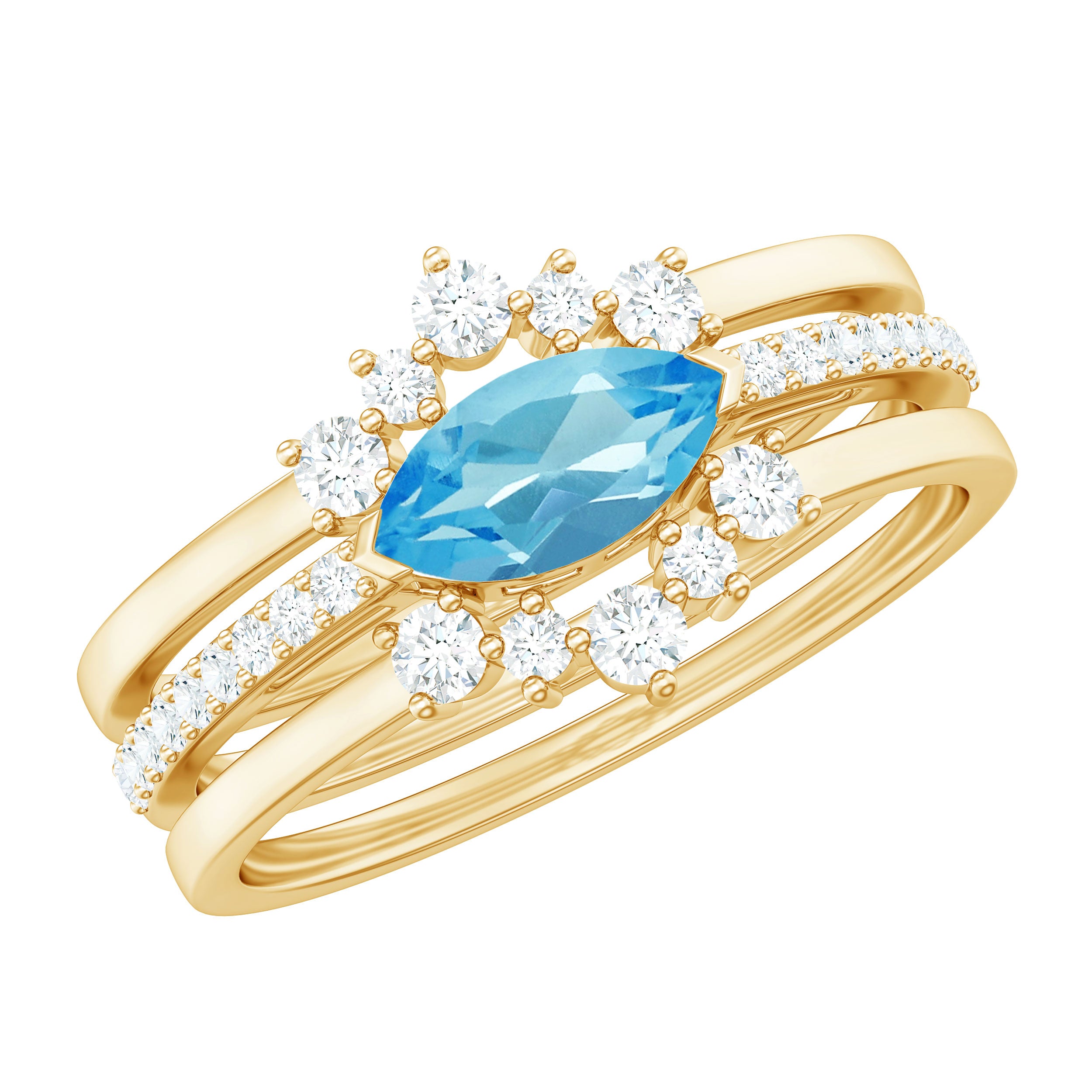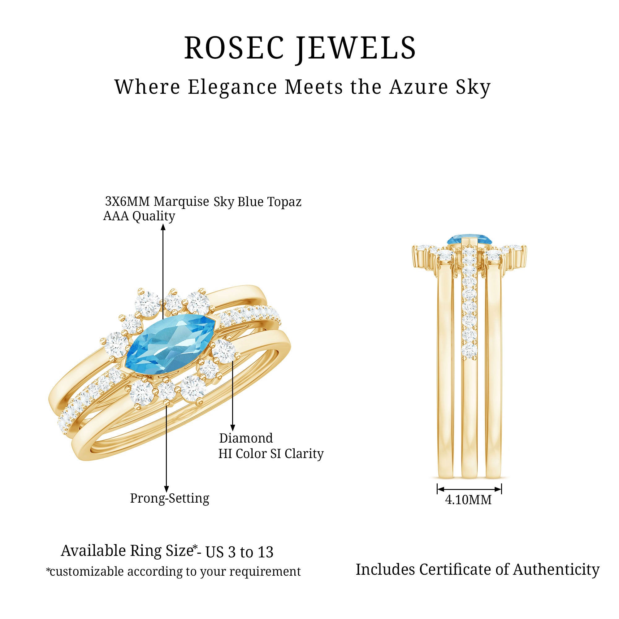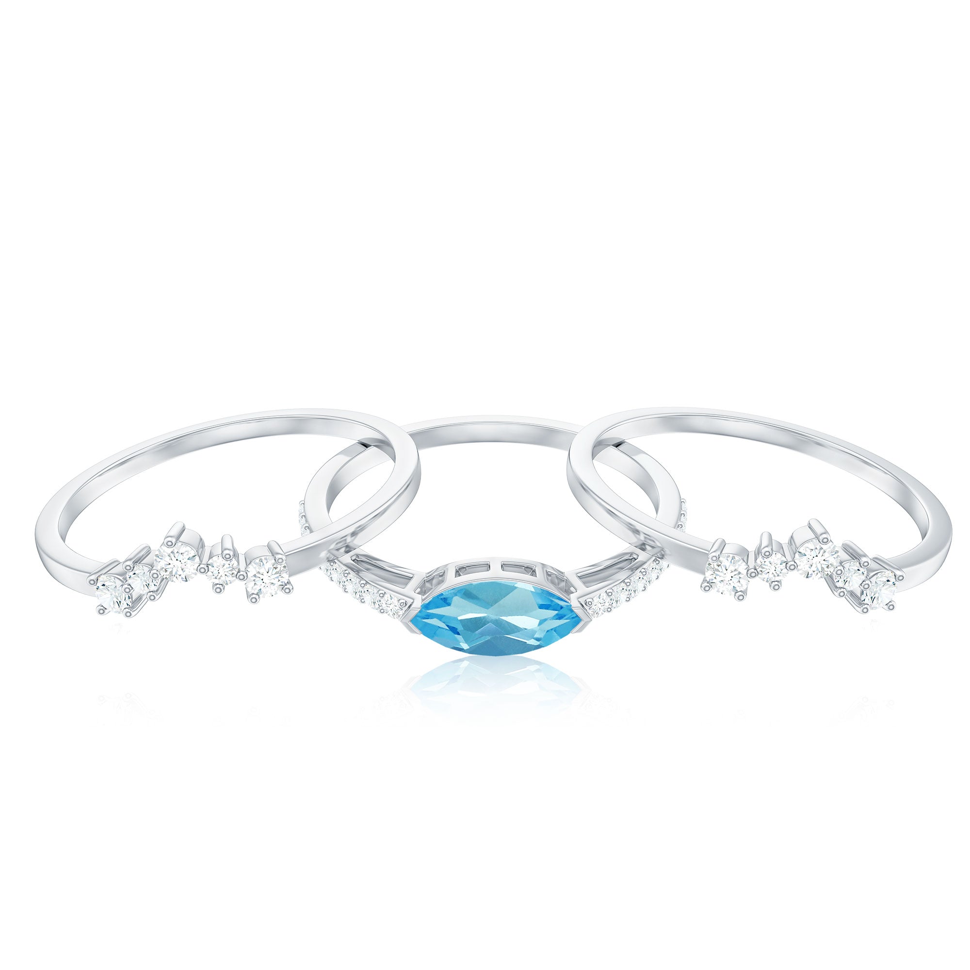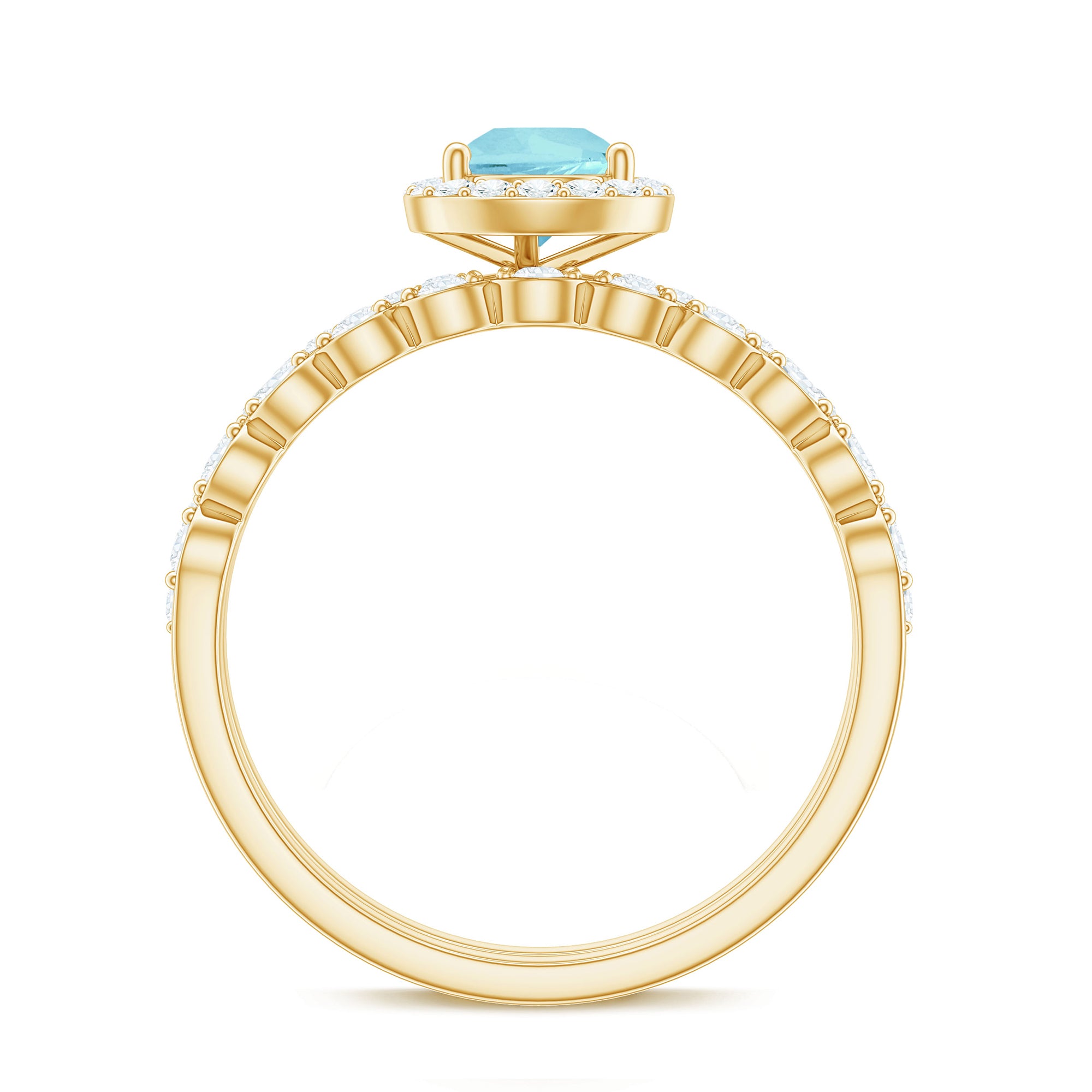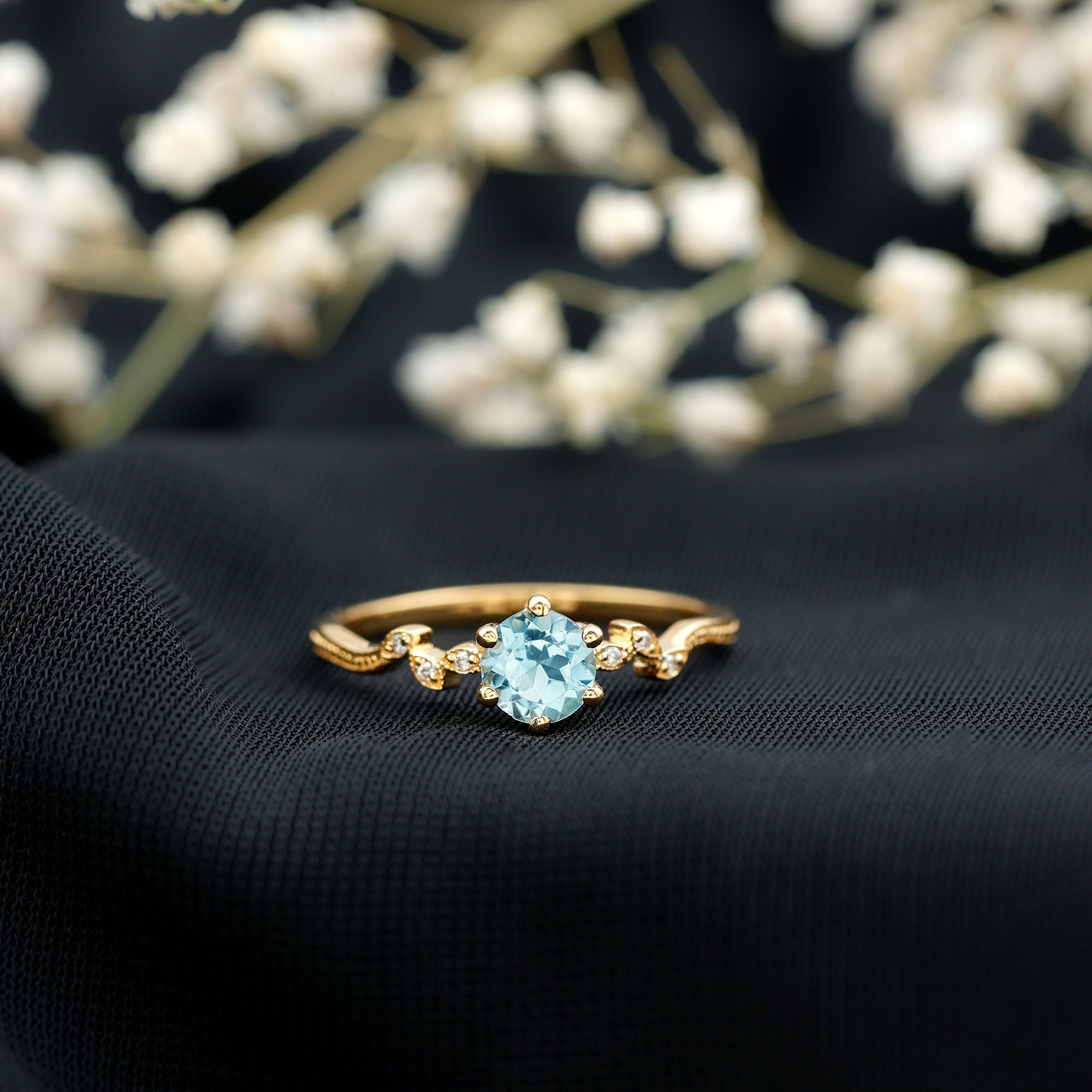 • Sky Blue Topaz Engagement Set: - Featuring two rings (the bride's engagement ring and wedding ring) complementing each other. Our sky blue topaz ring for her is often meaningful, more classic, and stylish, introducing dazzling halo patterns, and embellishments. Each set is crafted to captivate the hearts of onlookers, creating a dazzling ensemble for forever-shared moments.