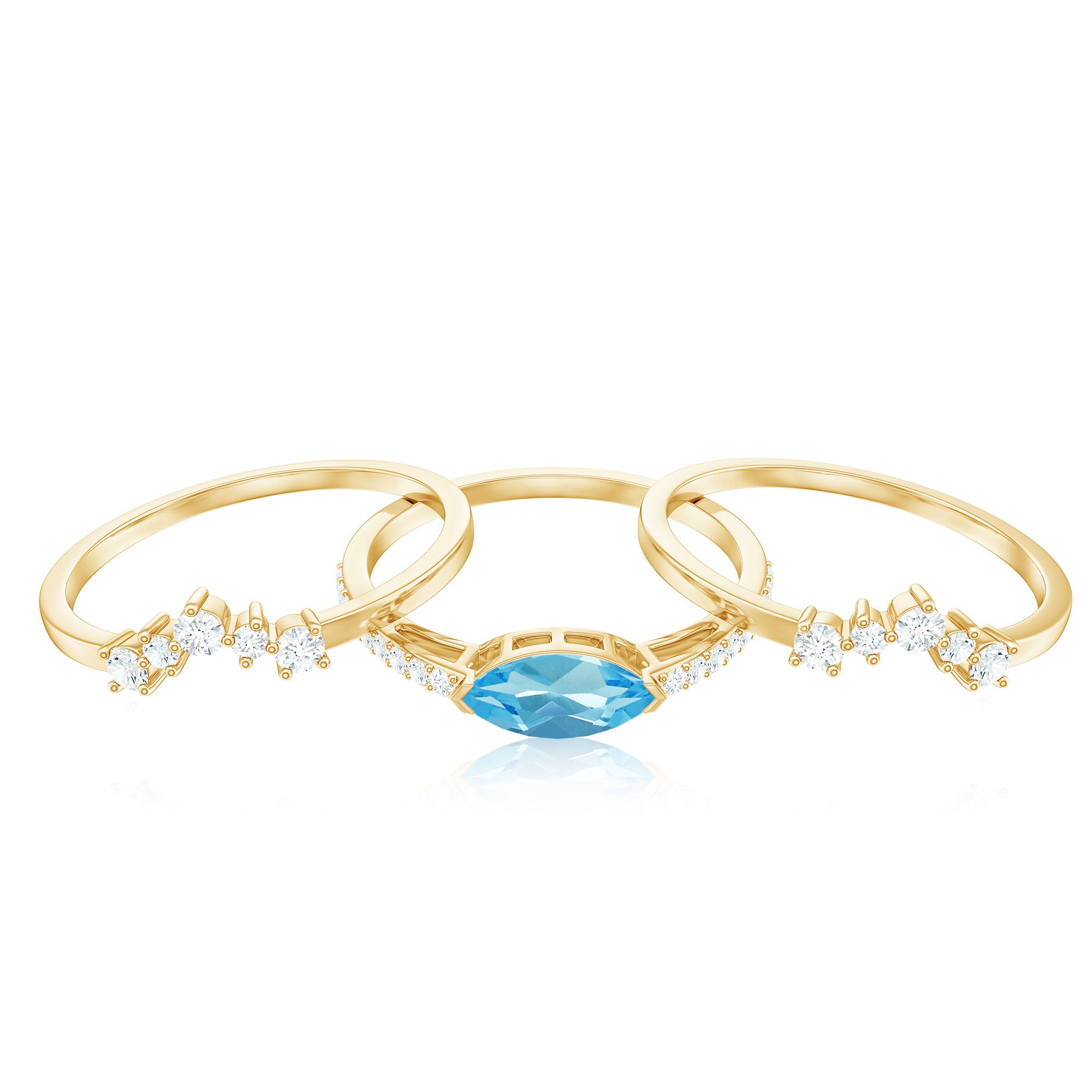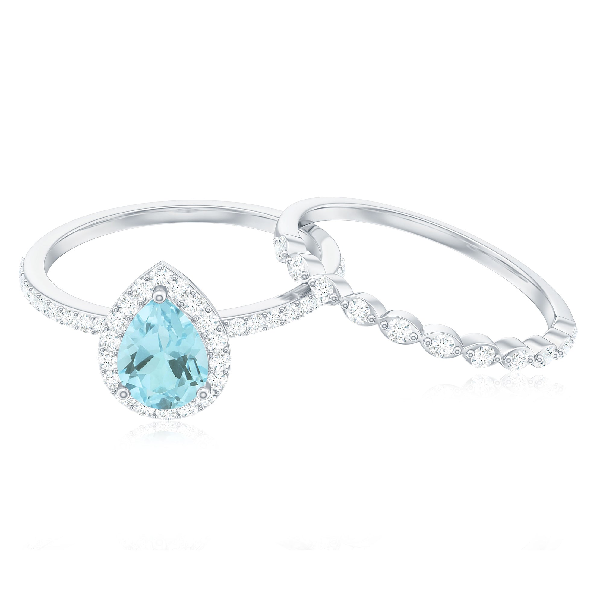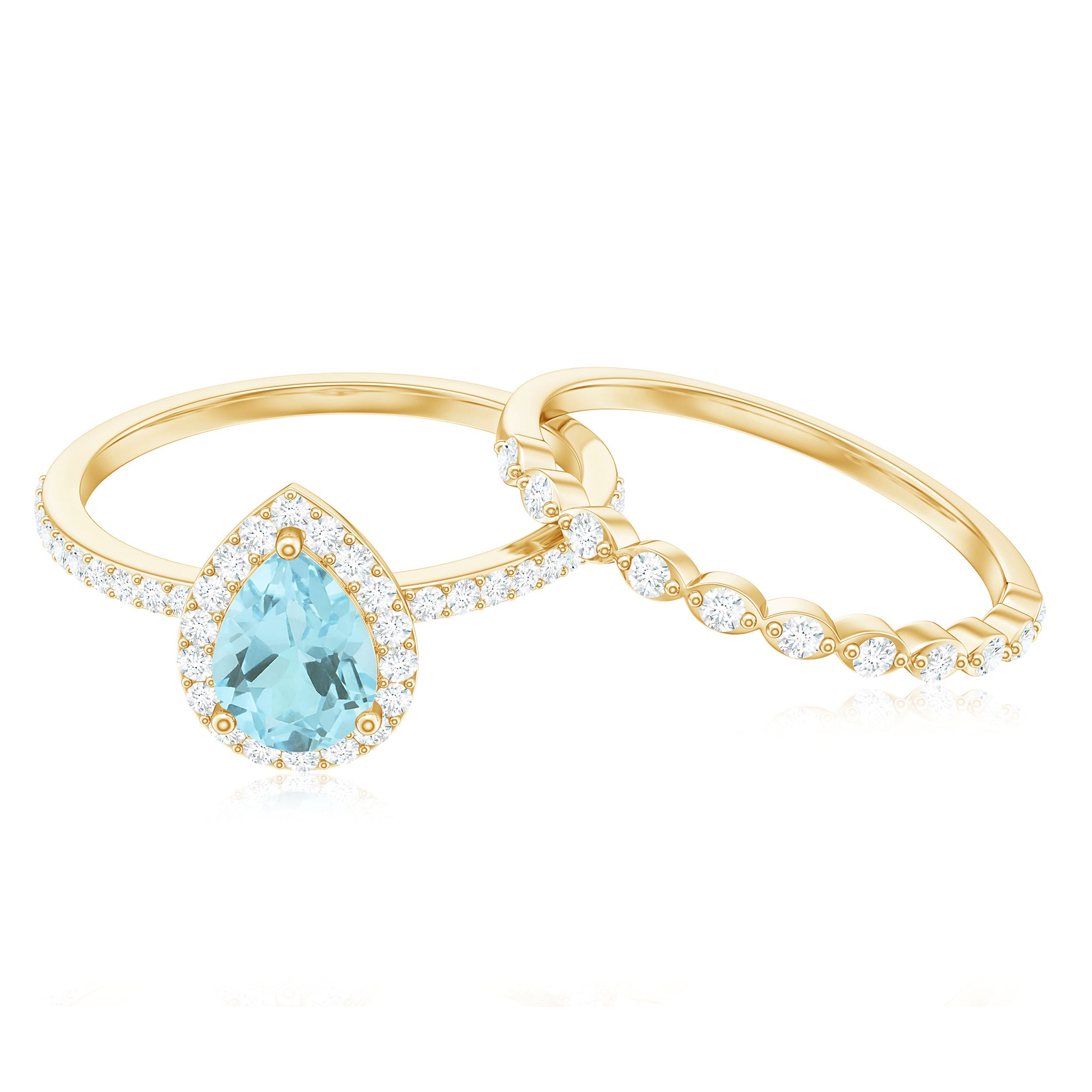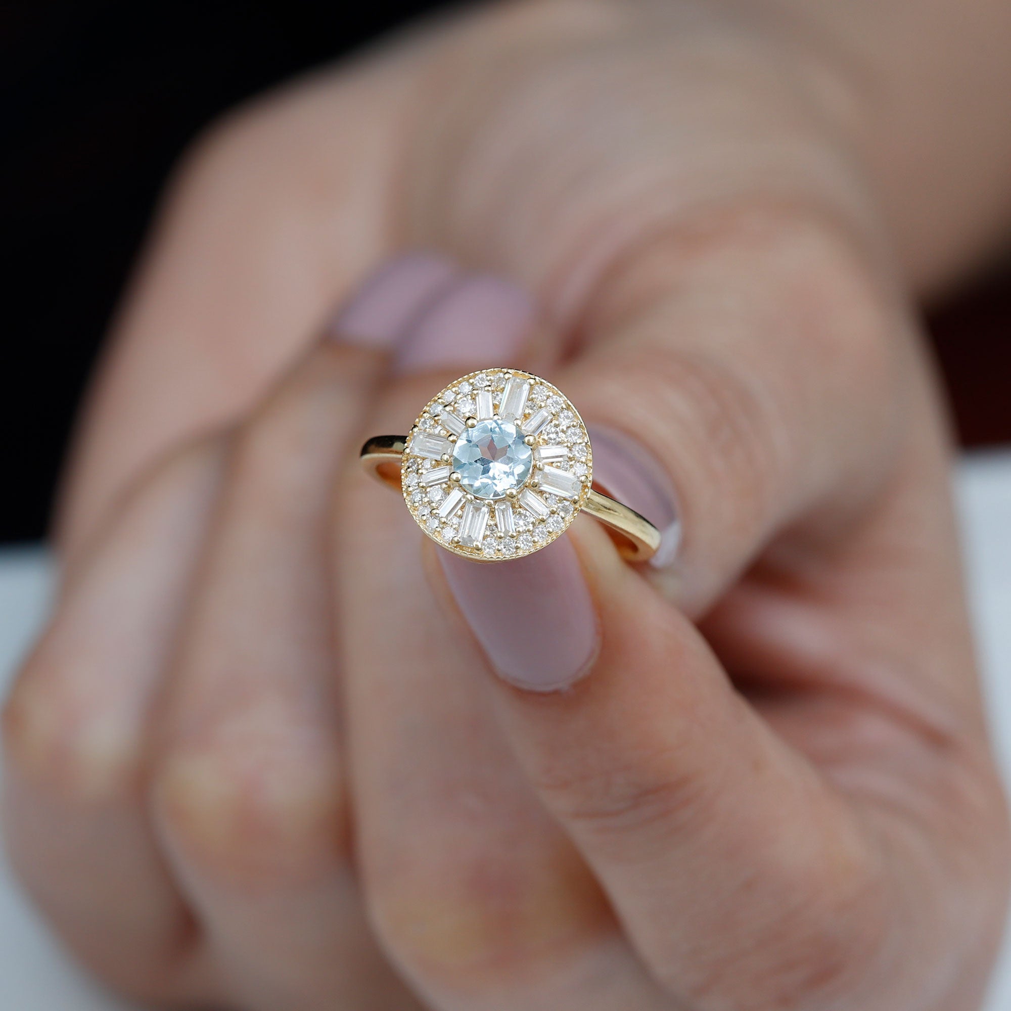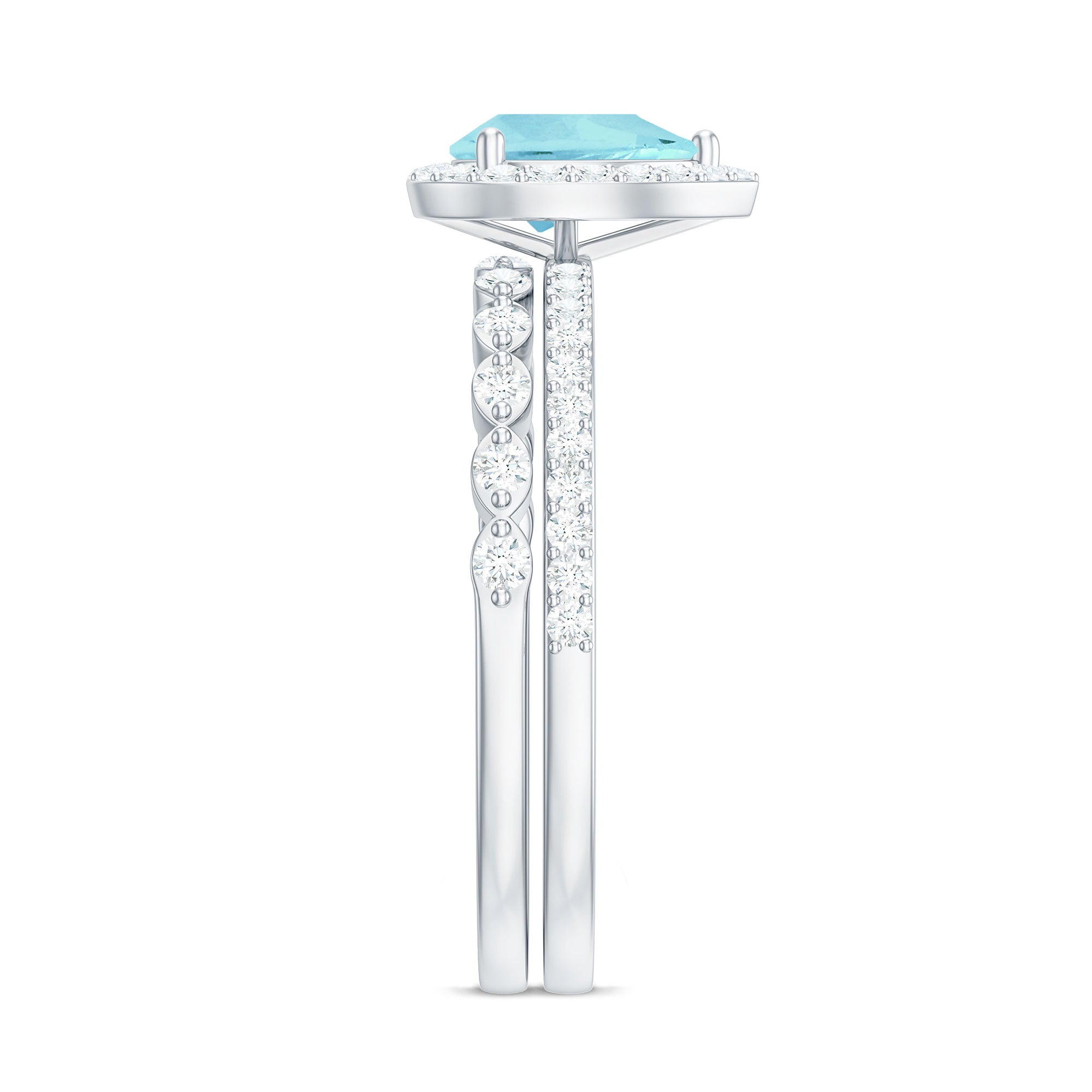 • Sky Blue Topaz Engagement Set: - Featuring two rings (the bride's engagement ring and wedding ring) complementing each other. Our sky blue topaz ring for her is often meaningful, more classic, and stylish, introducing dazzling halo patterns, and embellishments. Each set is crafted to captivate the hearts of onlookers, creating a dazzling ensemble for forever-shared moments.