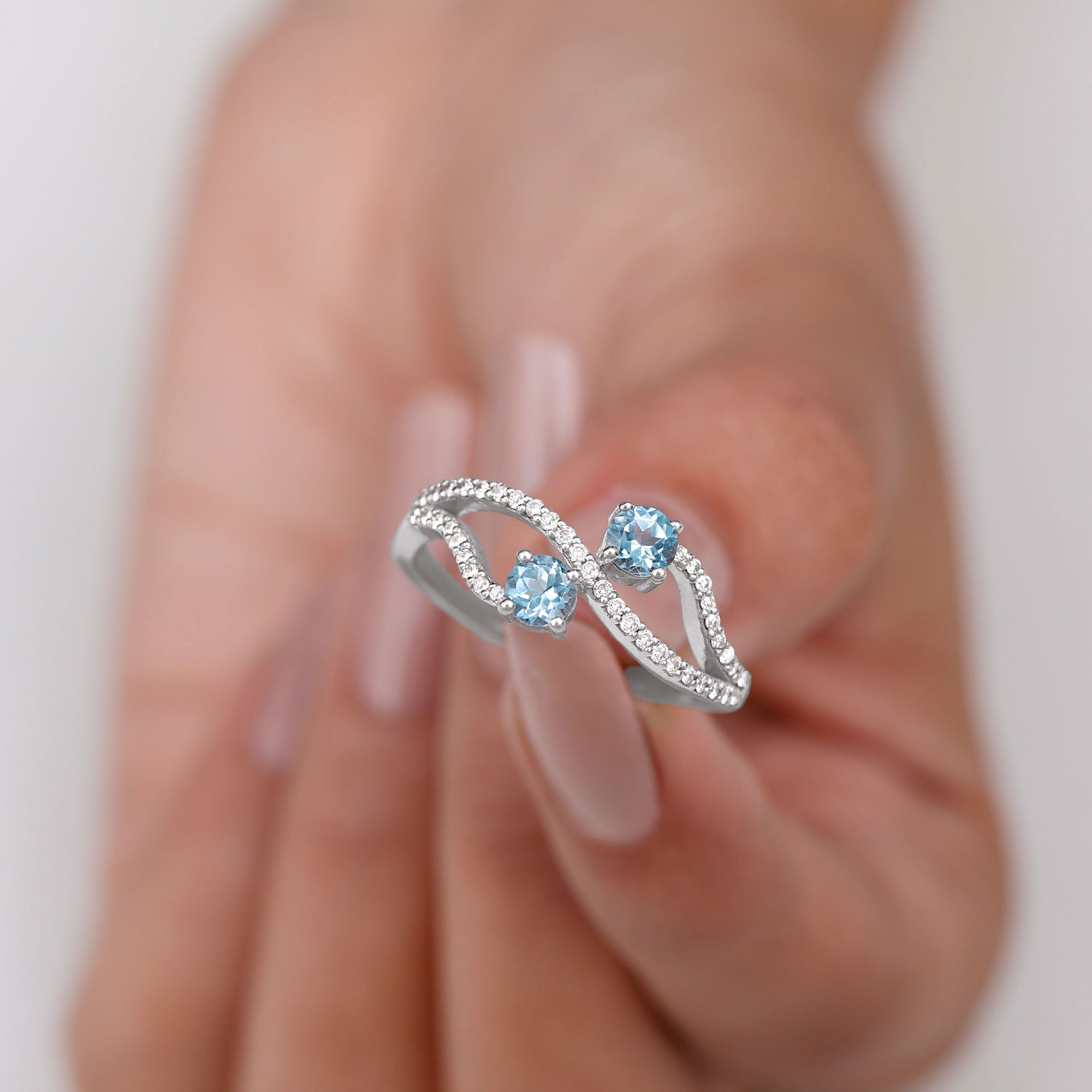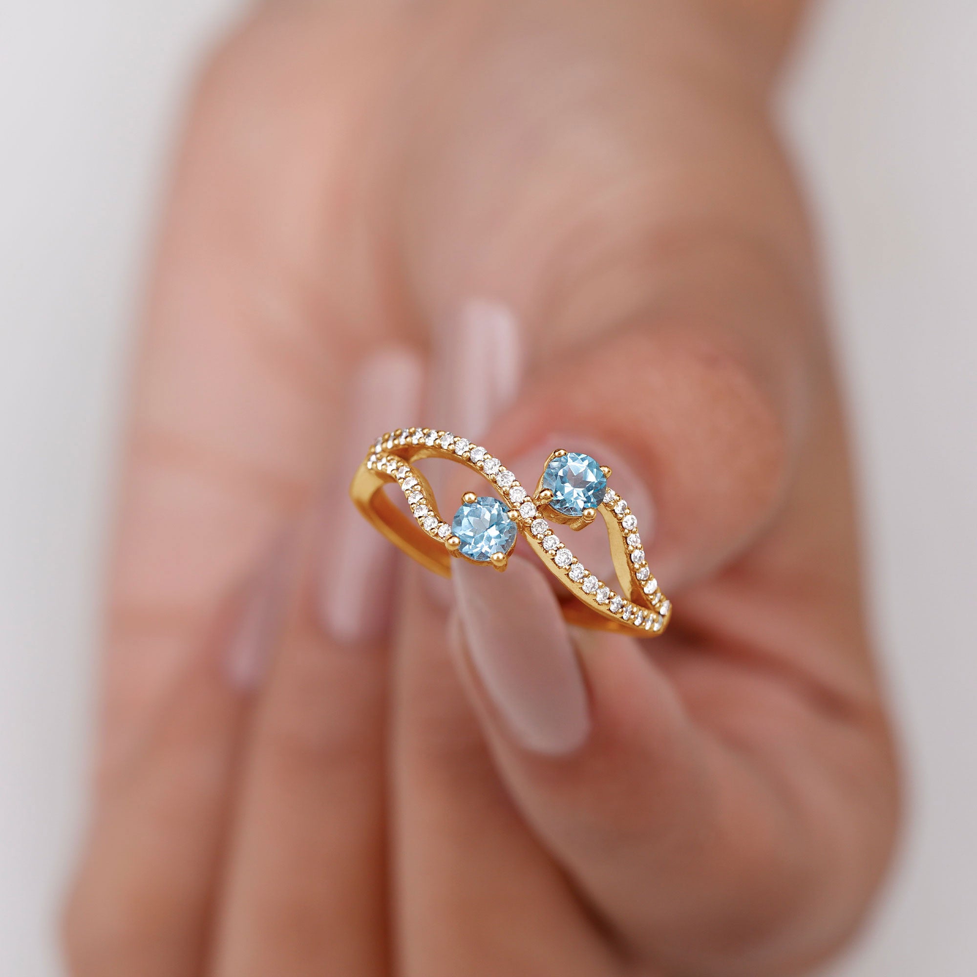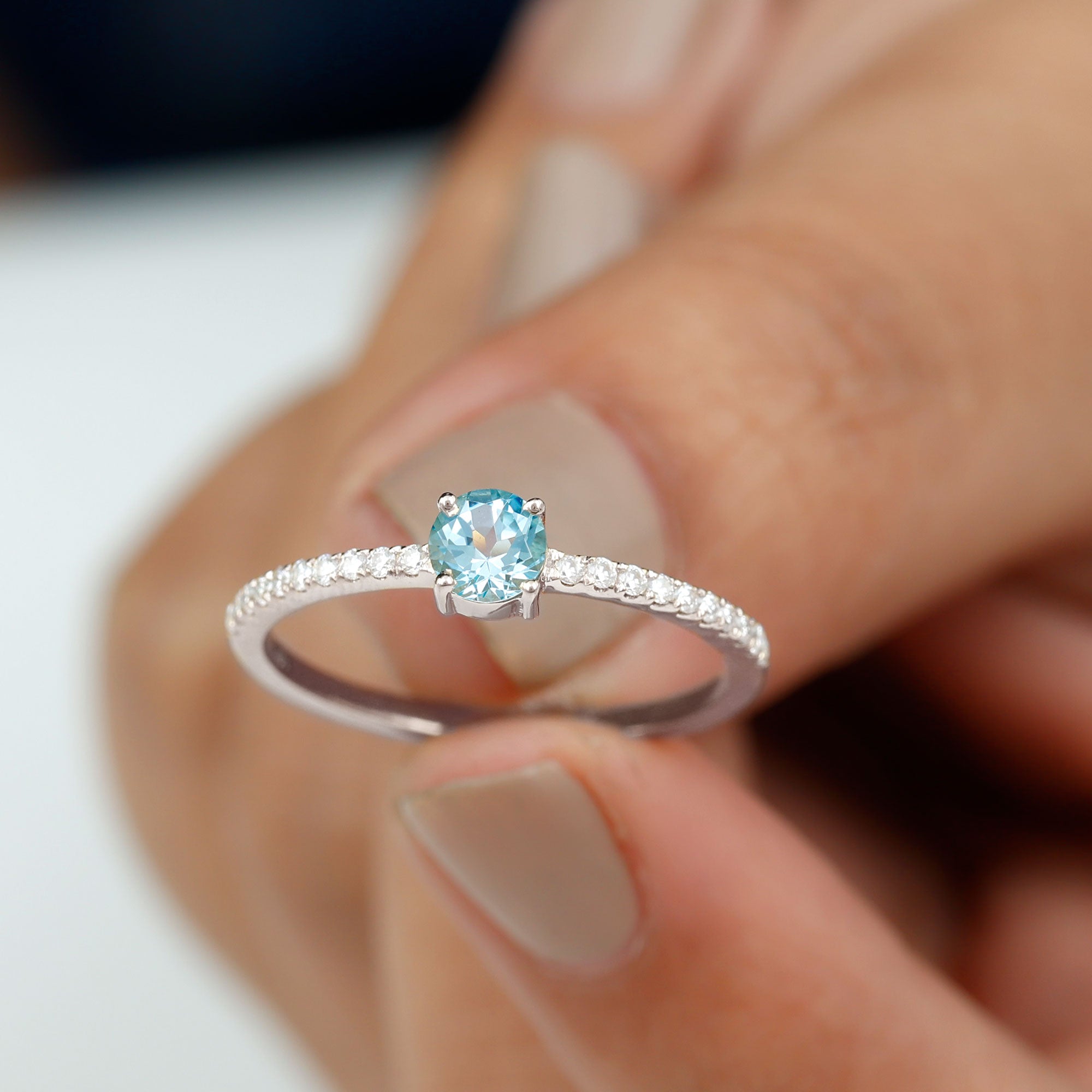 • Sky Blue Topaz Promise Rings:- Combine modernity and comfort, you can't go wrong with blue topaz promise rings. It features a center sky blue topaz stone, accentuating the design with a diamond accent, highlighting the long-lasting commitment. Mostly the sky blue topaz promise ring for women, graced by shimmery diamonds that elegantly line the band, ensures it will be cherished.