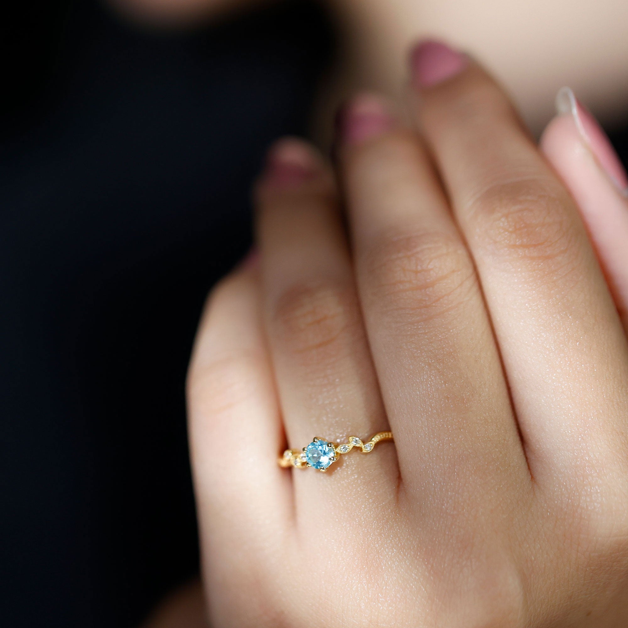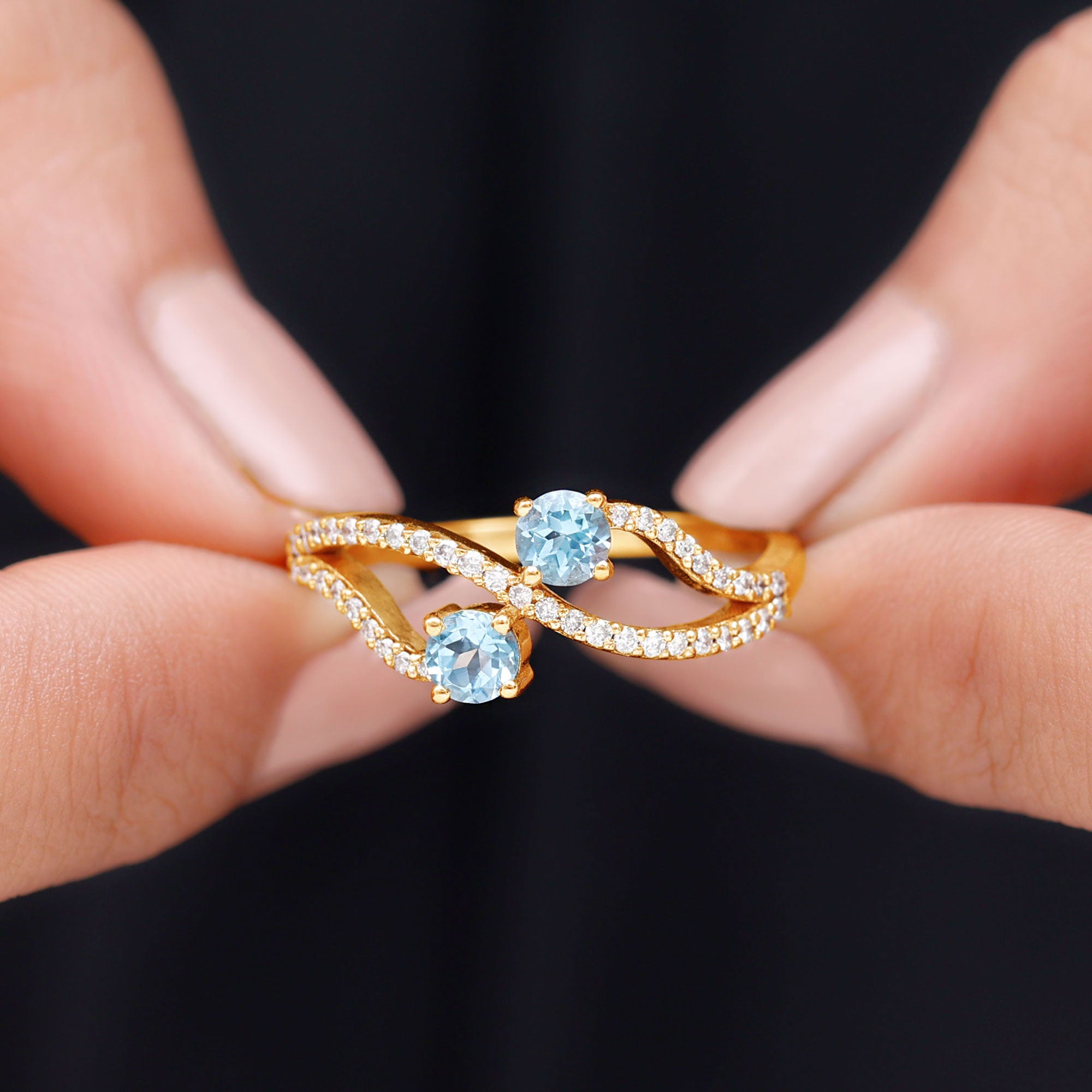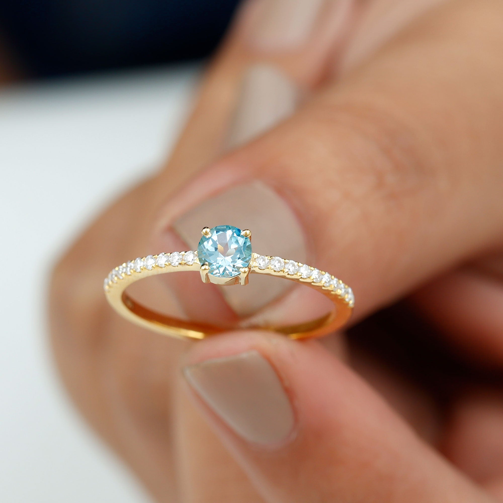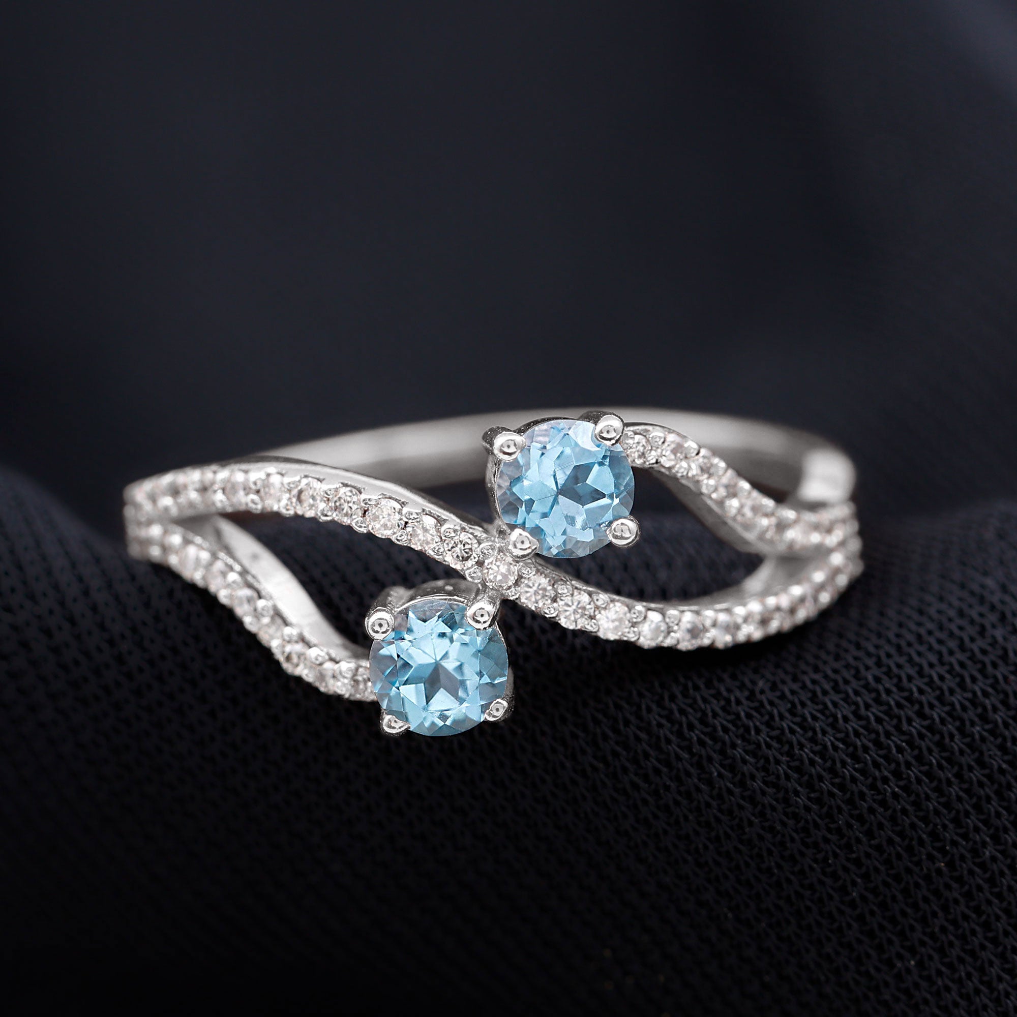 • Sky Blue Topaz Promise Rings:- Combine modernity and comfort, you can't go wrong with blue topaz promise rings. It features a center sky blue topaz stone, accentuating the design with a diamond accent, highlighting the long-lasting commitment. Mostly the sky blue topaz promise ring for women, graced by shimmery diamonds that elegantly line the band, ensures it will be cherished.