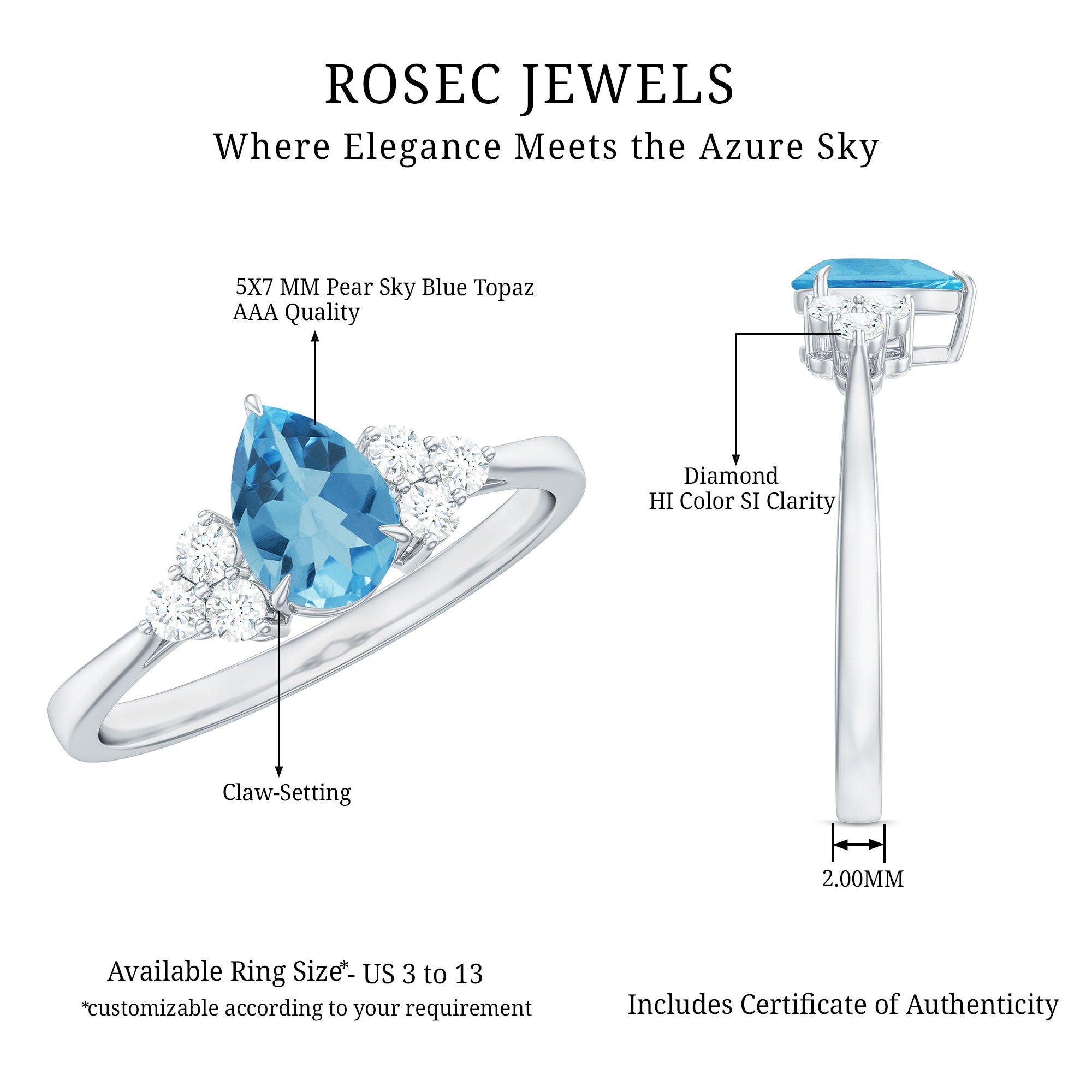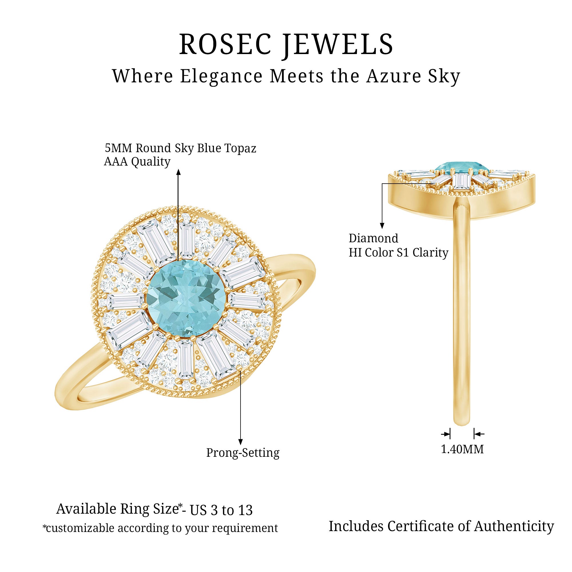 5. Setting and Metal Choice: - choose the metal type for your engagement ring that not only align with your evening attire but also complements your wedding ring. The popular setting for sky blue topaz rings are prong, claw and bezel, that securely holds the gemstone and protect it from cracks.