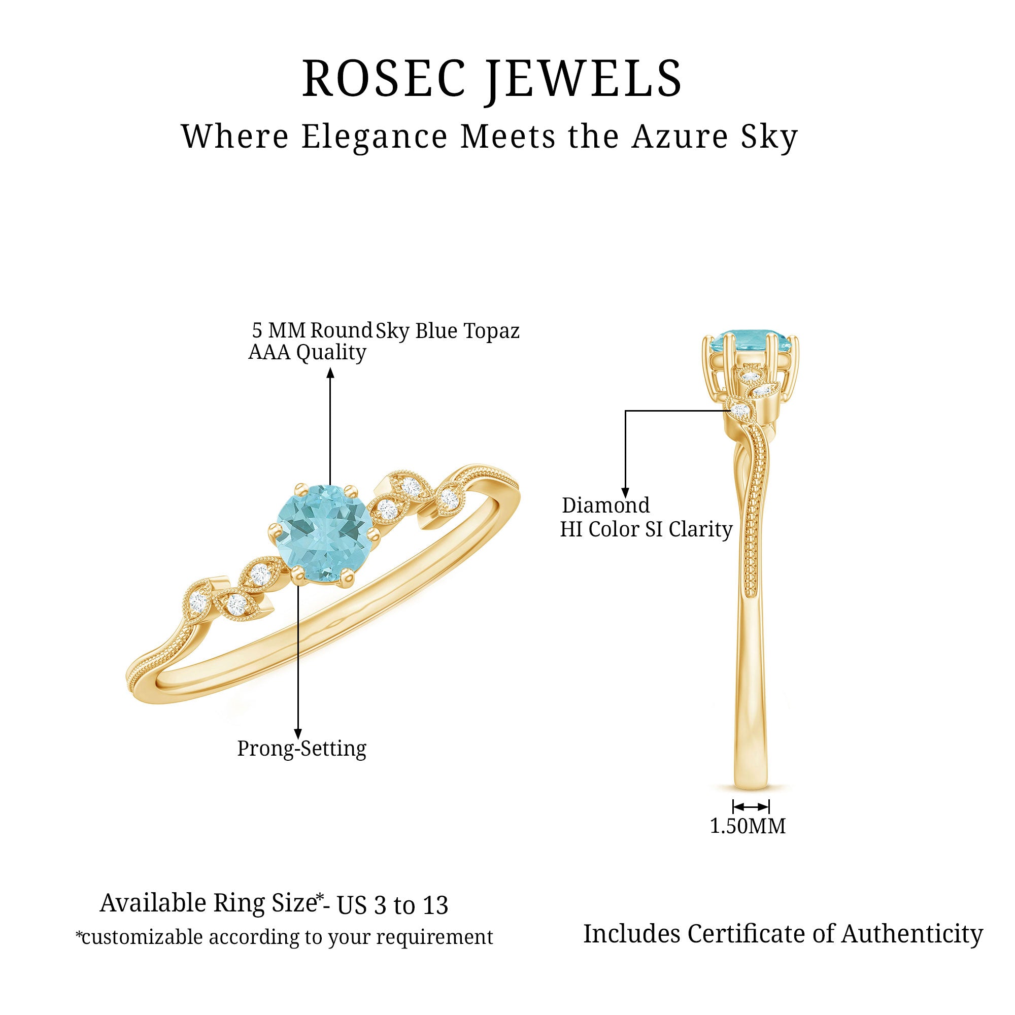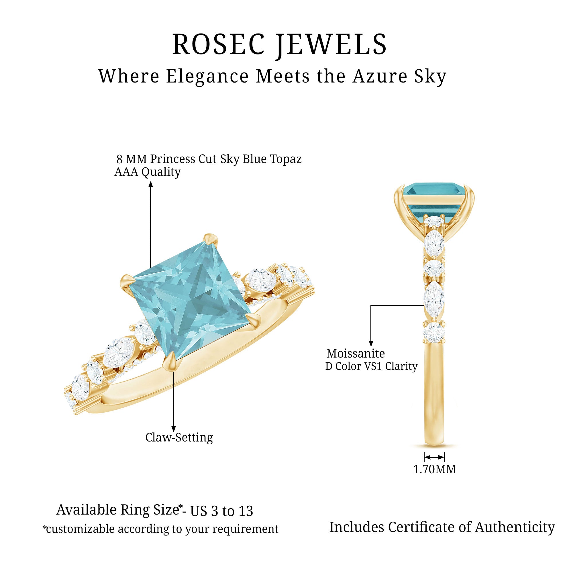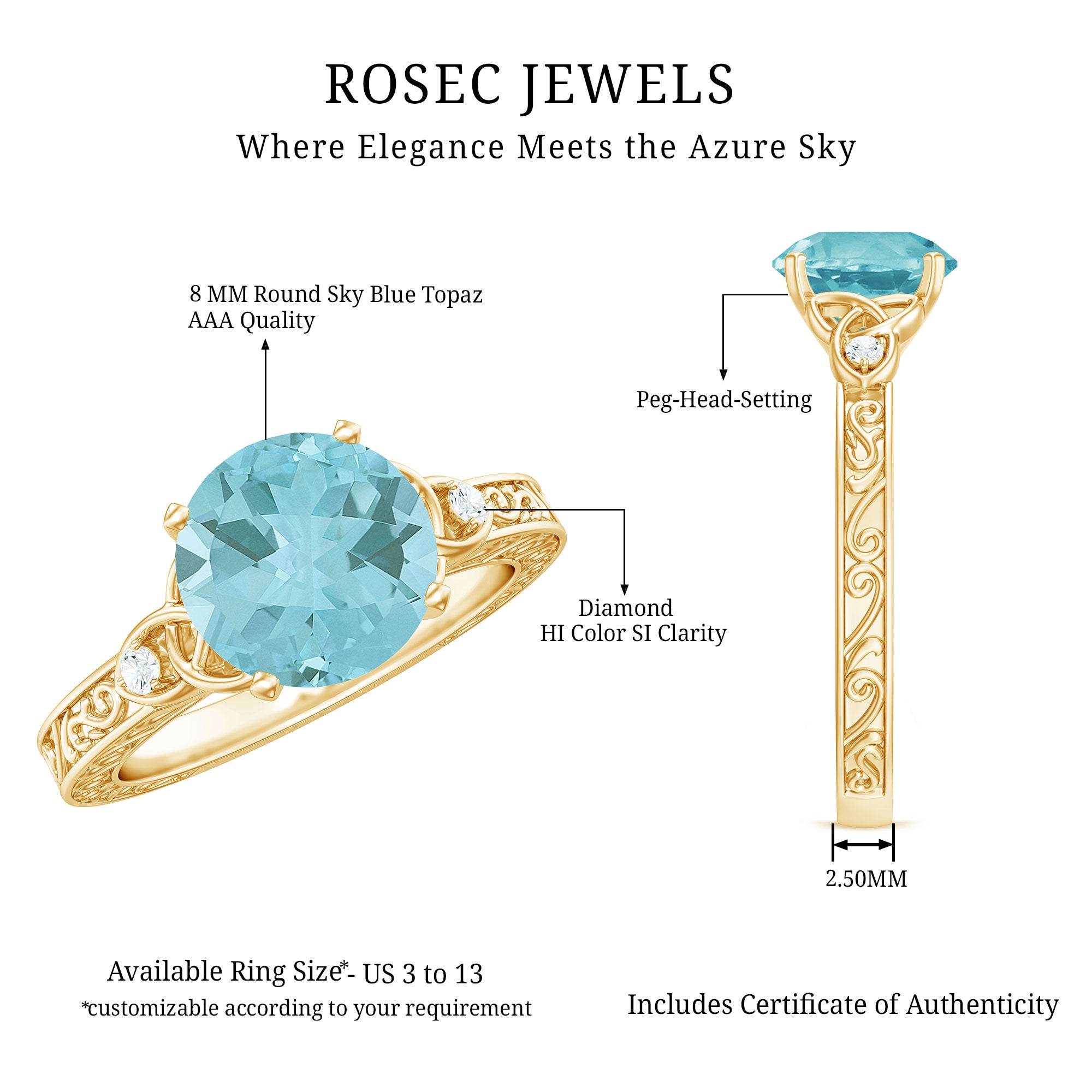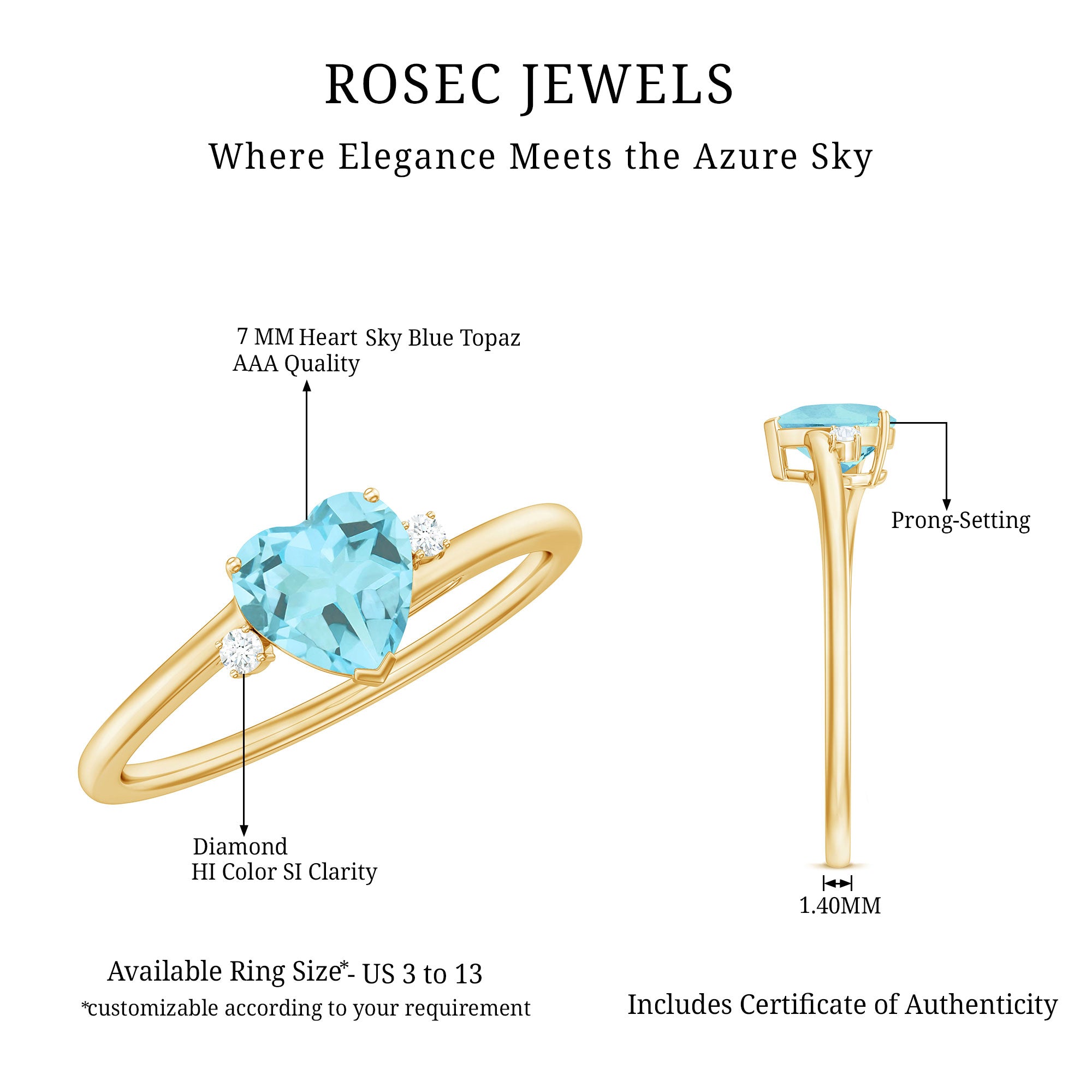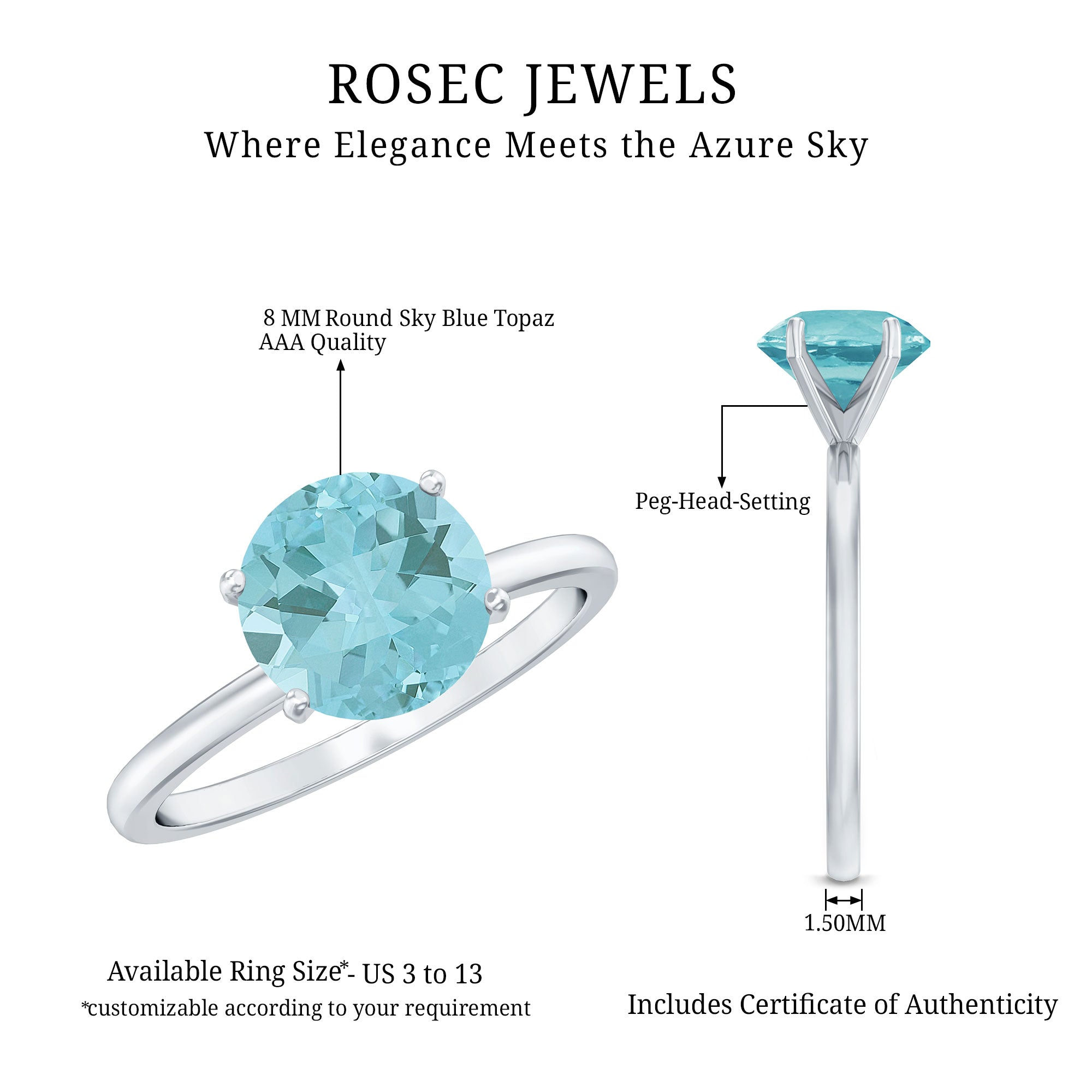 Being a birthstone for December, Sky Blue Topaz accentuates the luminous light blue tones and a variant of topaz mineral. The gems are associated with wisdom and strength. These also go through treatments to form a better transformation of color, representing clarity and calmness. Our Sky Blue rings serve as a timeless embodiment of commitment shared by partners. Here at Rosec Jewels, we love crafting exquisite colored gemstone rings that'll treasure you forever.