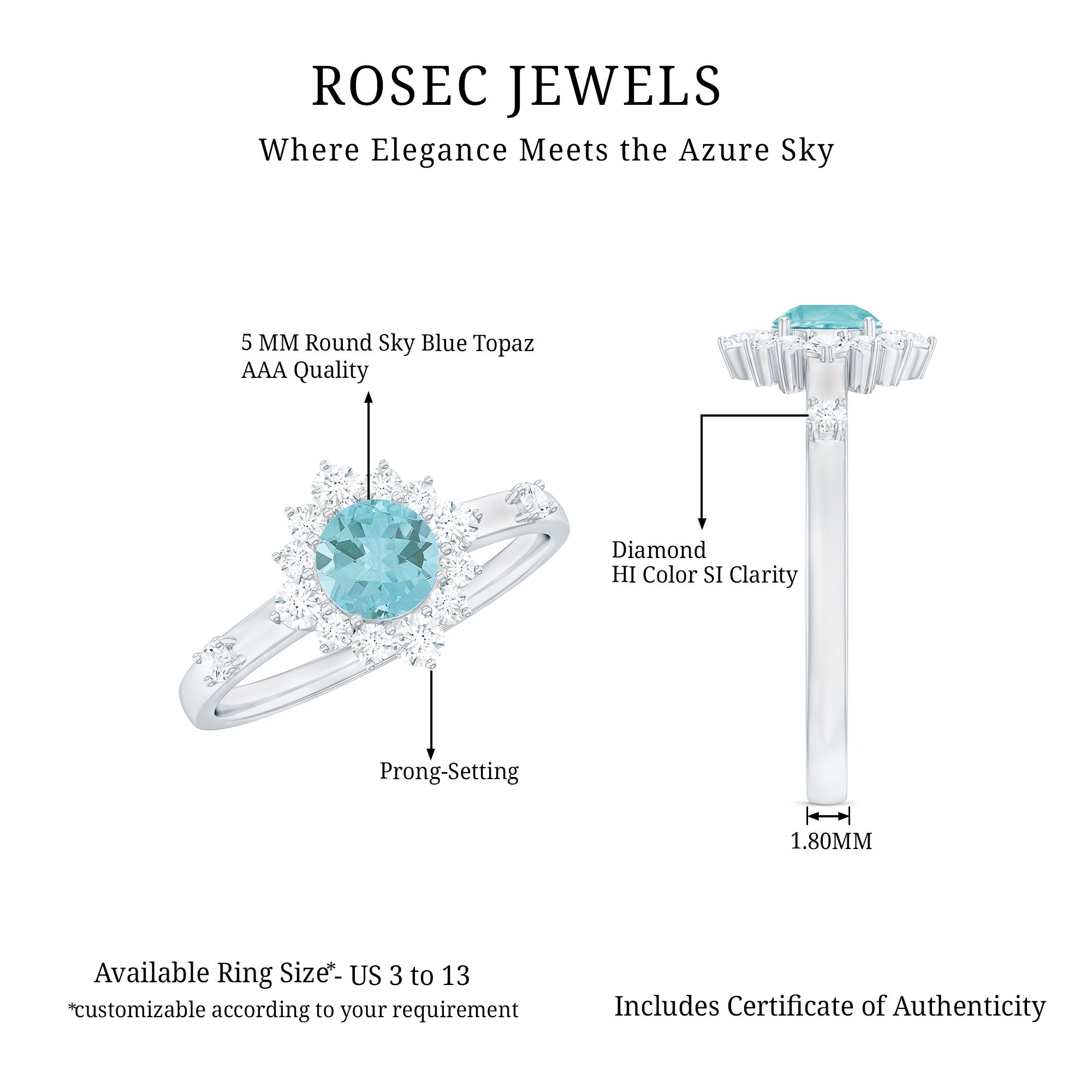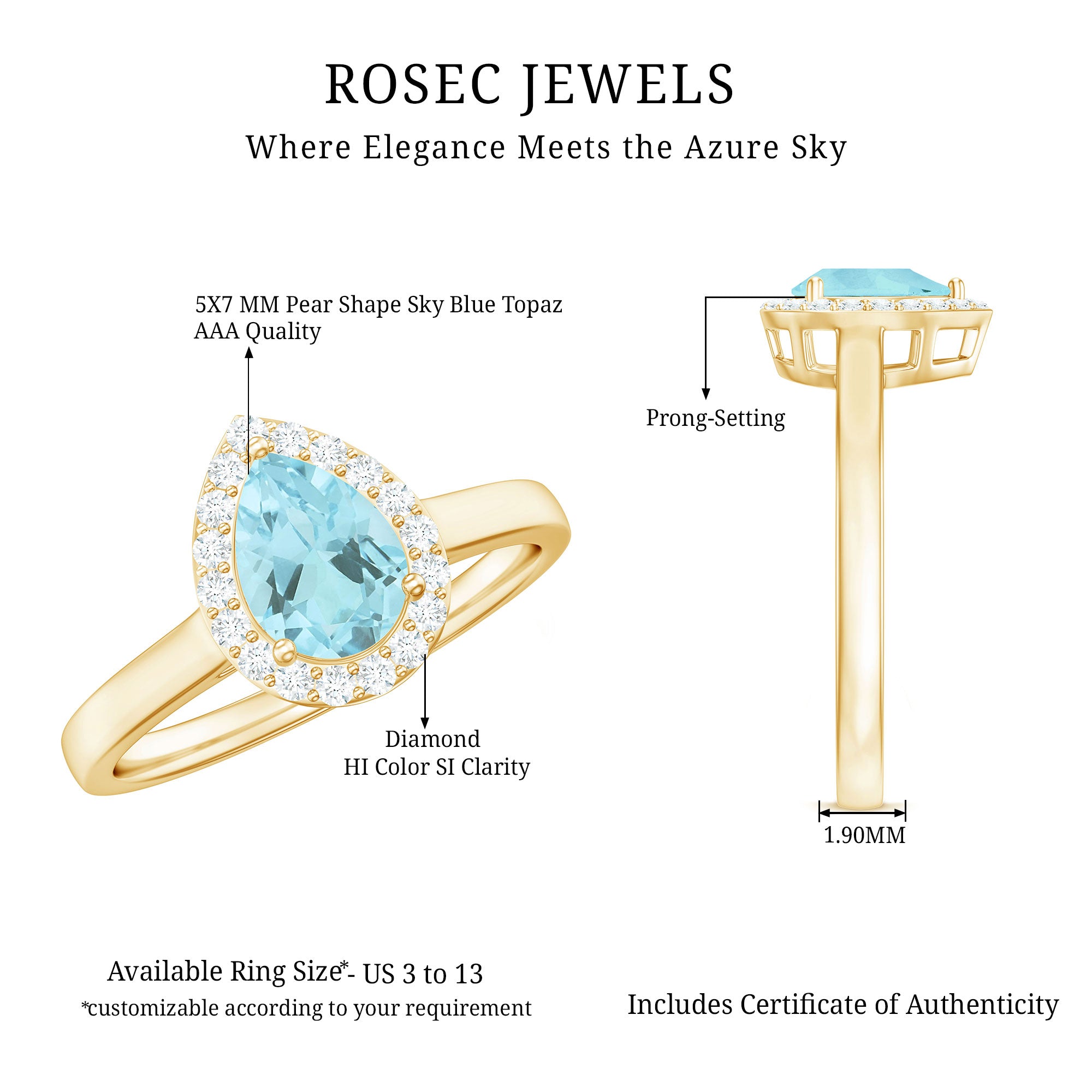 • Sky Blue Topaz Halo Rings:- this collection of rings is inspired by a halo of small glistening diamonds with a center sky blue topaz gemstone. This style is not only glowing but also allows the center gemstone to appear larger. Their shimmery circumference can match with any shape or cut, which makes the sky blue topaz halo rings popular for every day comfort or occasional wear.