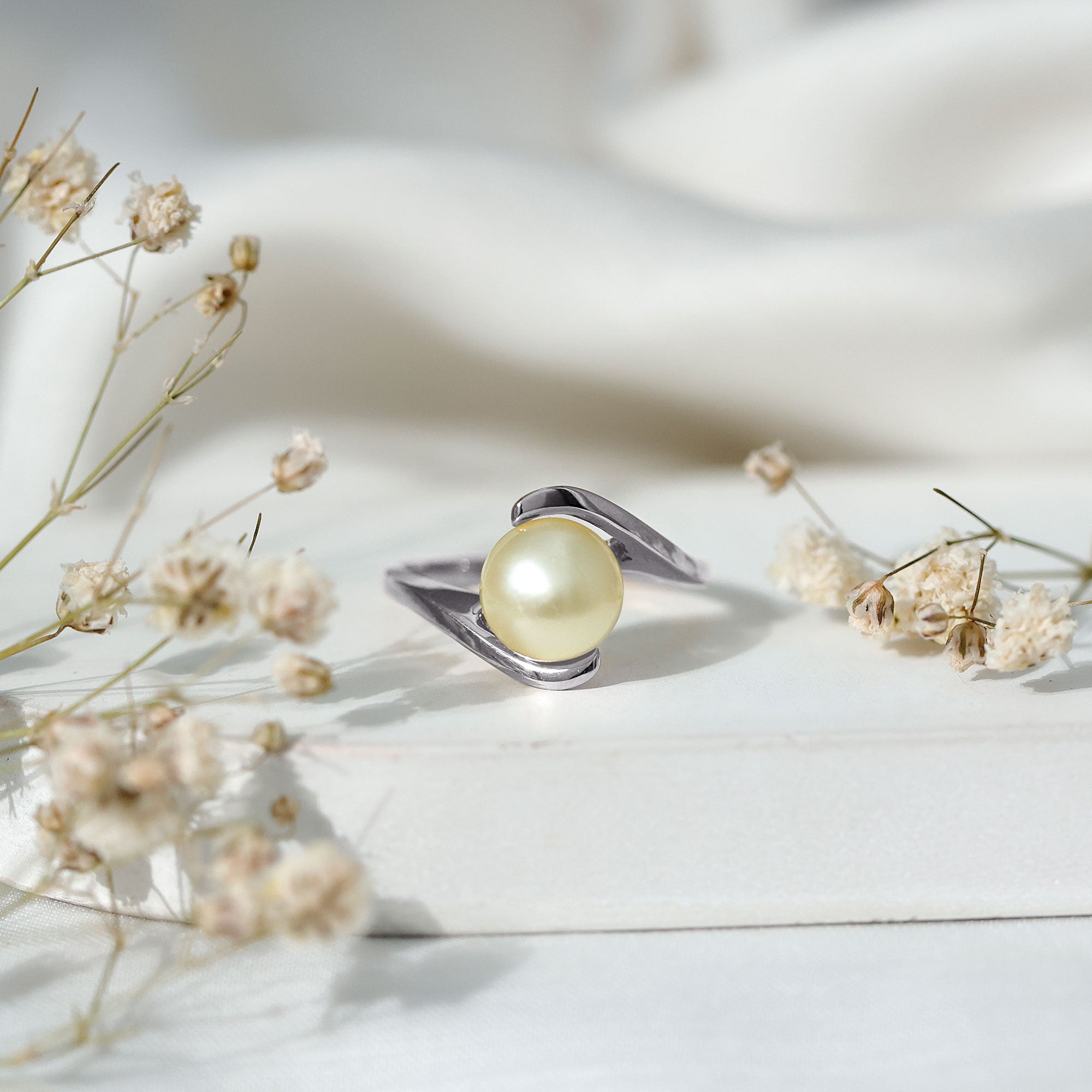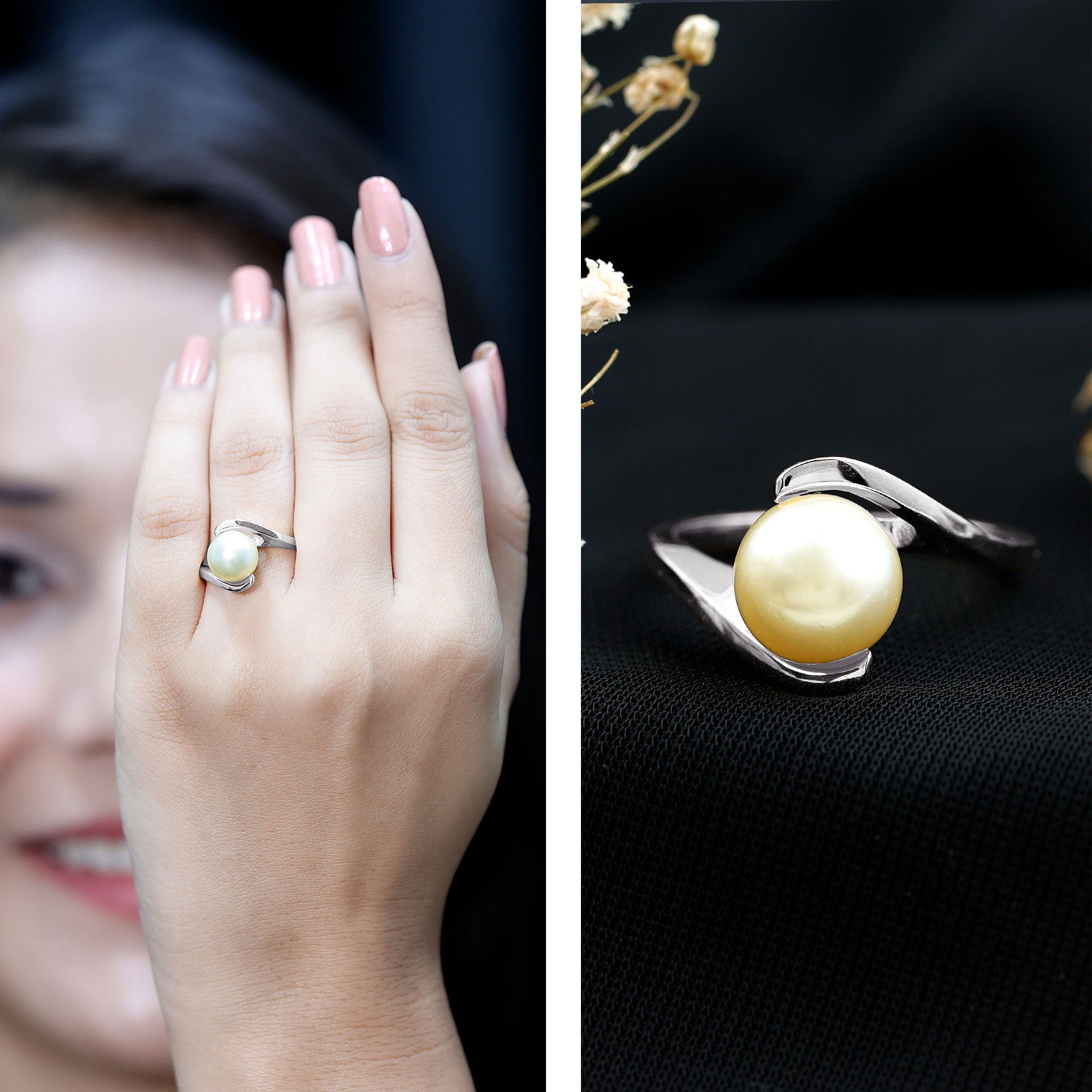 South sea pearl rings must be worn with utmost care and any sort of contact with cosmetics, whatsoever must be avoided as the use of hairspray, lotion or perfume can dull their luster.