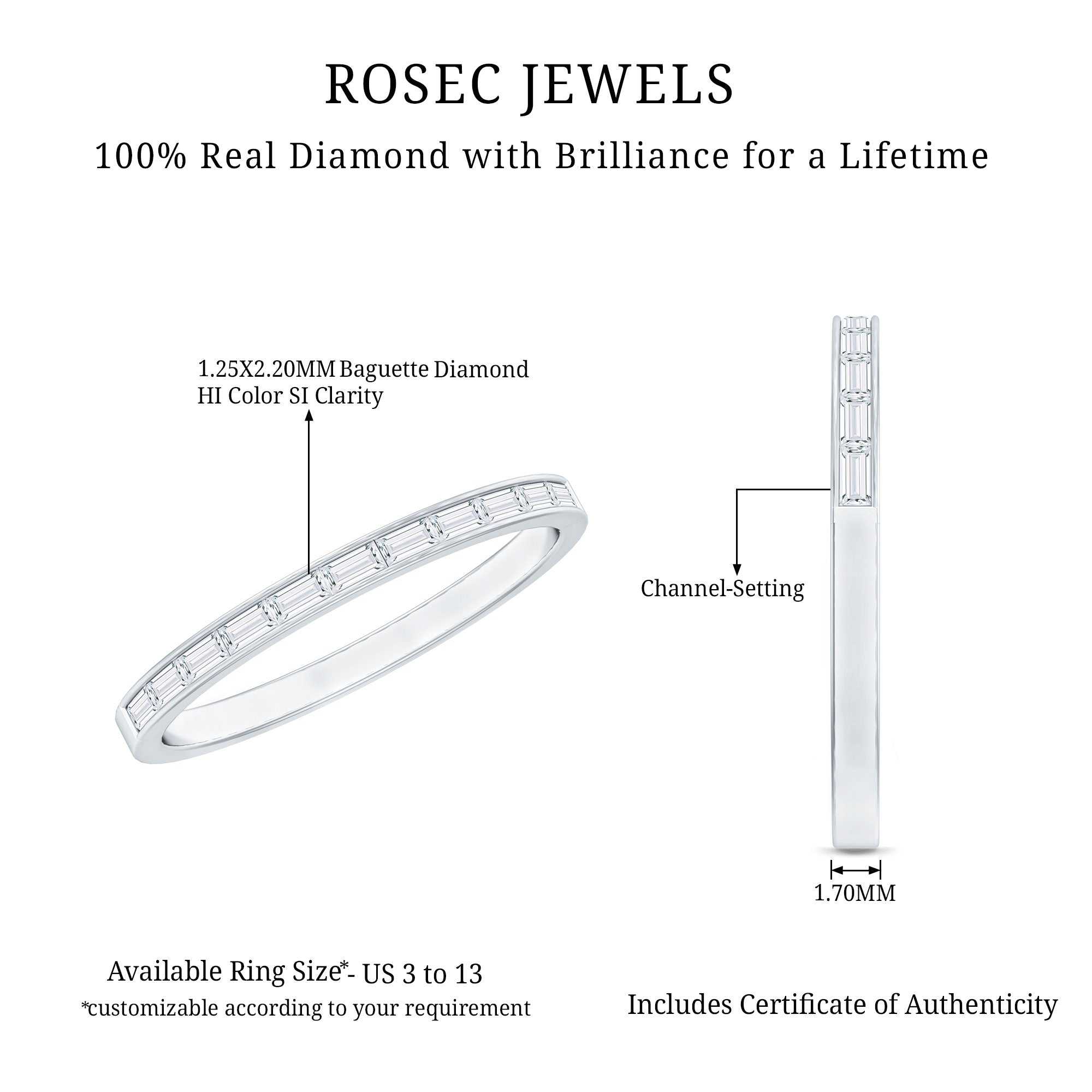 Mixed Color and Metal stacks: Different metals in different colors leave a different effect. Like a yellow gold diamond band, when stacked with a blue sapphire eternity silver band makes a totally different appeal. Rose gold is another option for adding warmth and a romantic touch to your stack.