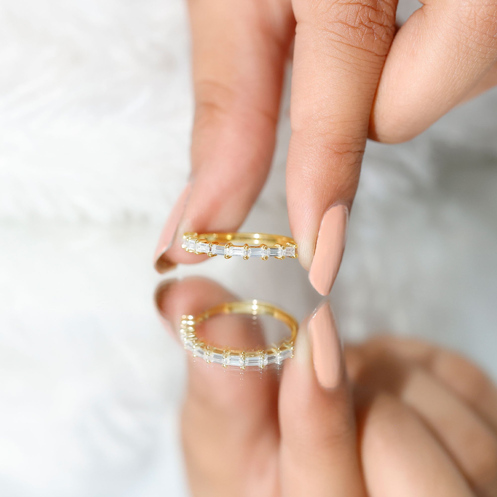 • Shining Ring Stacks: If you love sparkles all around, then you can opt for shimmering stone rings. Timeless diamonds, durable moissanites, and trending lab growns make great stackable rings.