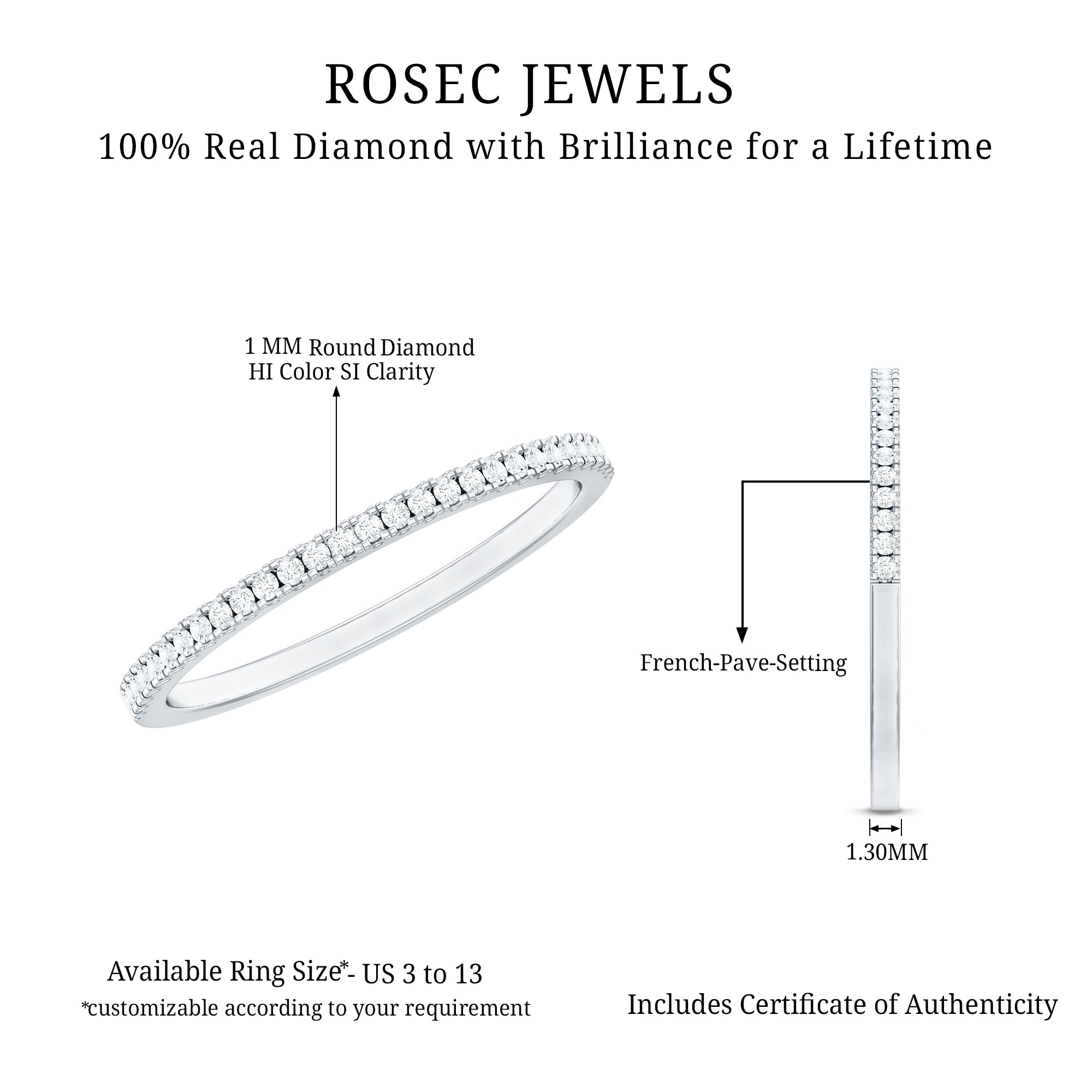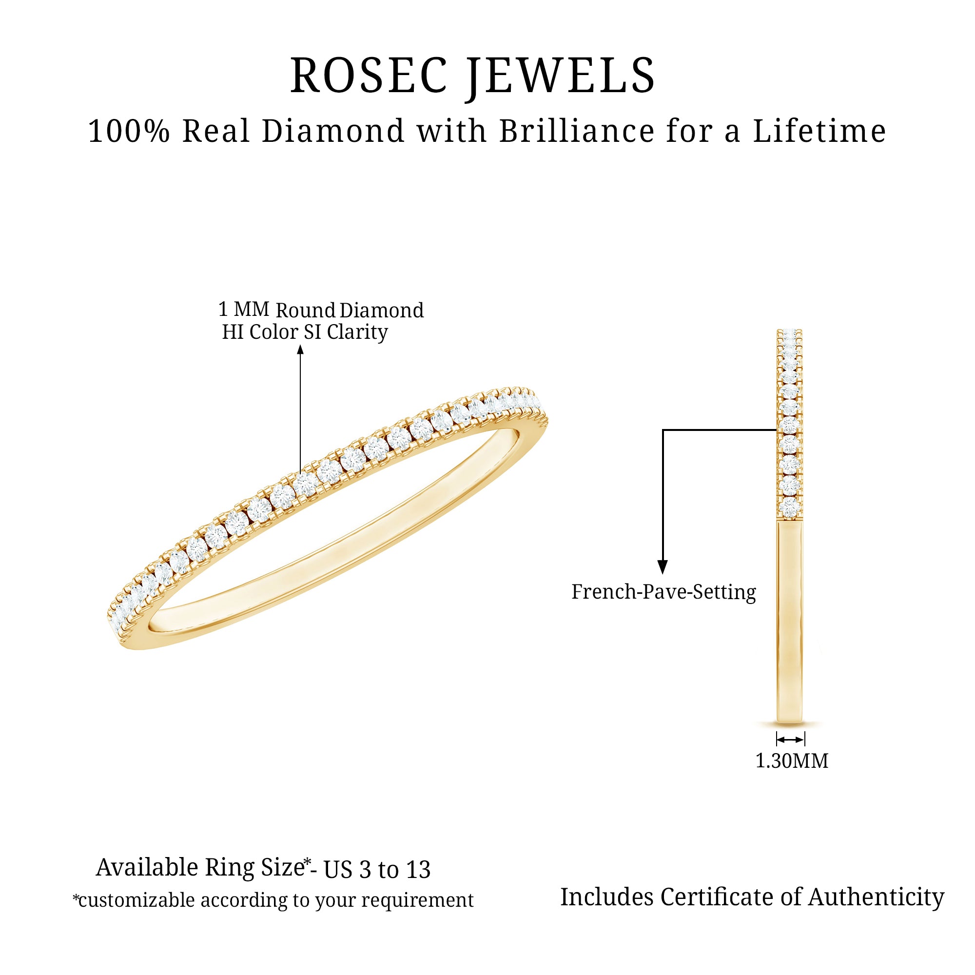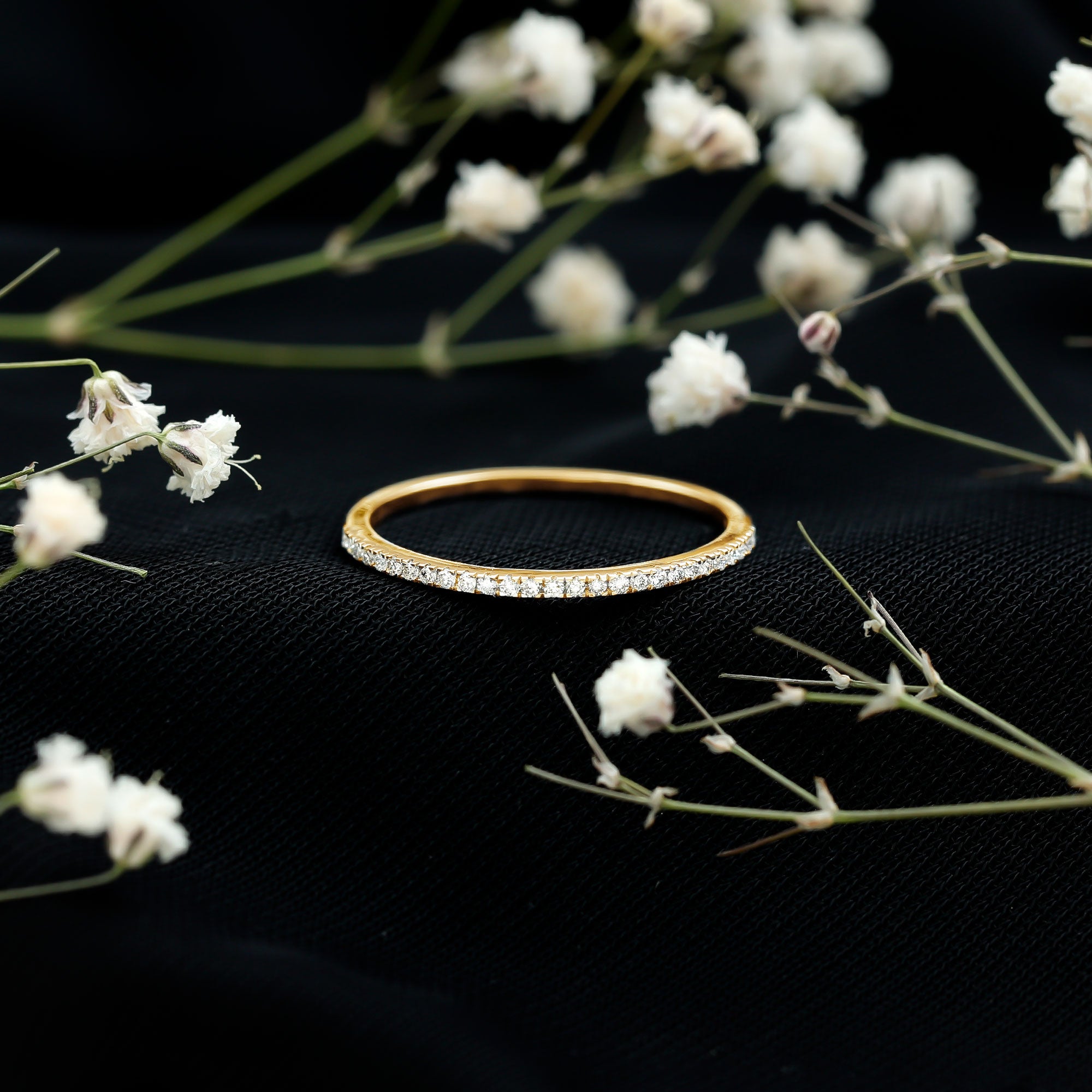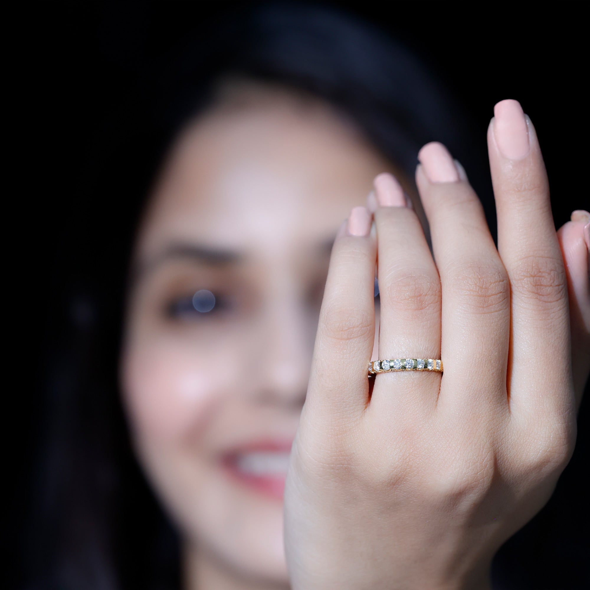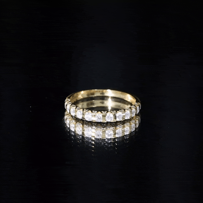 • Mixed Color and Metal stacks: Different metals in different colors leave a different effect. Like a yellow gold diamond band, when stacked with a blue sapphire eternity silver band makes a totally different appeal. Rose gold is another option for adding warmth and a romantic touch to your stack.