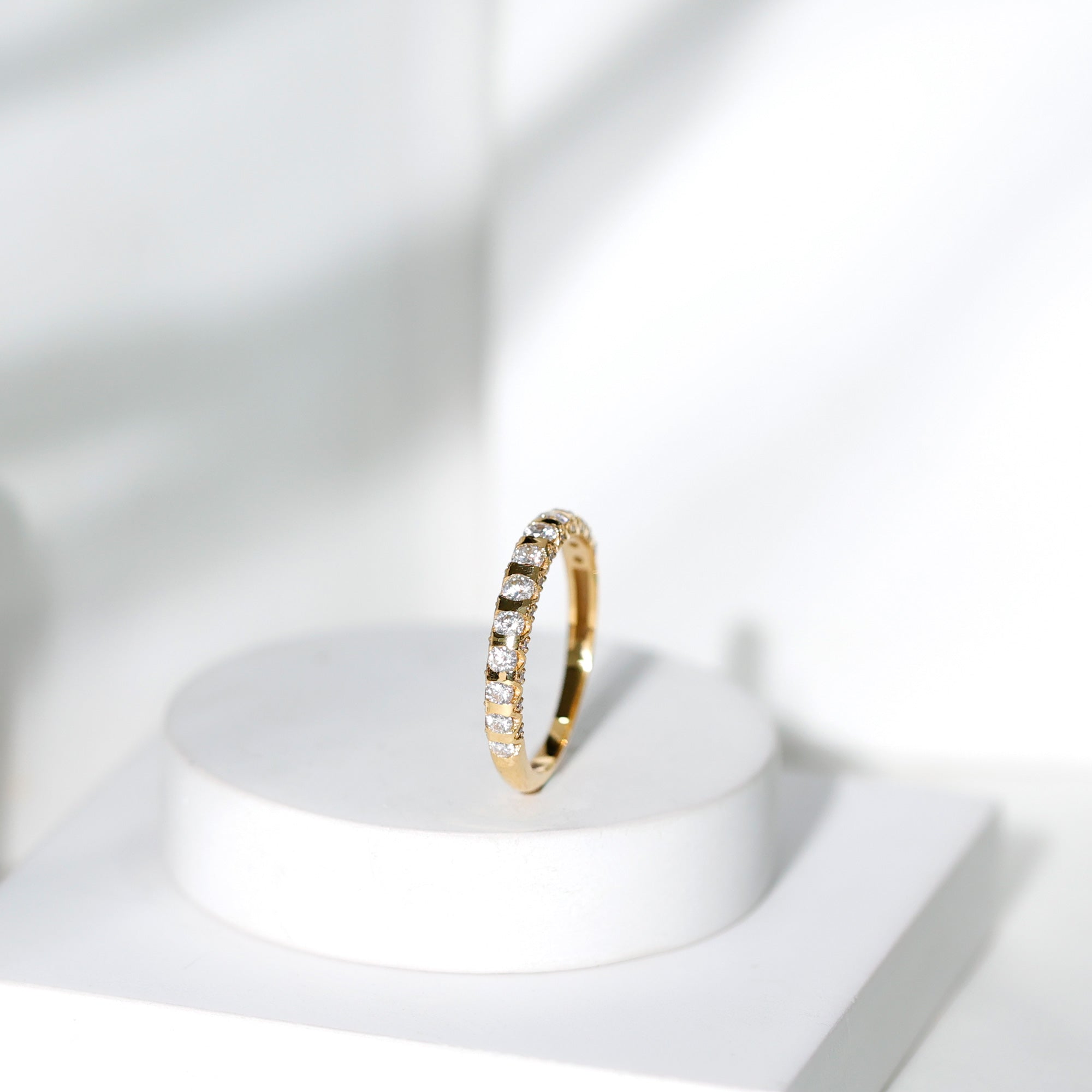 Stackable rings don't feature bold or statement designs, they are elegant, sleek bands that can adorn any finger. Sleek eternity bands featuring different gemstone shapes are among the popular stackable ring styles. Depending on your luxurious or sparkling taste, full or half eternity stackable rings can be chosen. Two stone stackable rings symbolizing union of two souls in a romantic way are a good choice for your unique stack. Infinity rings with a symbolic frame adorned with dainty gemstones form the heart of this ring style. Minimalism is a trend and stackable rings have a style to match this trend too.