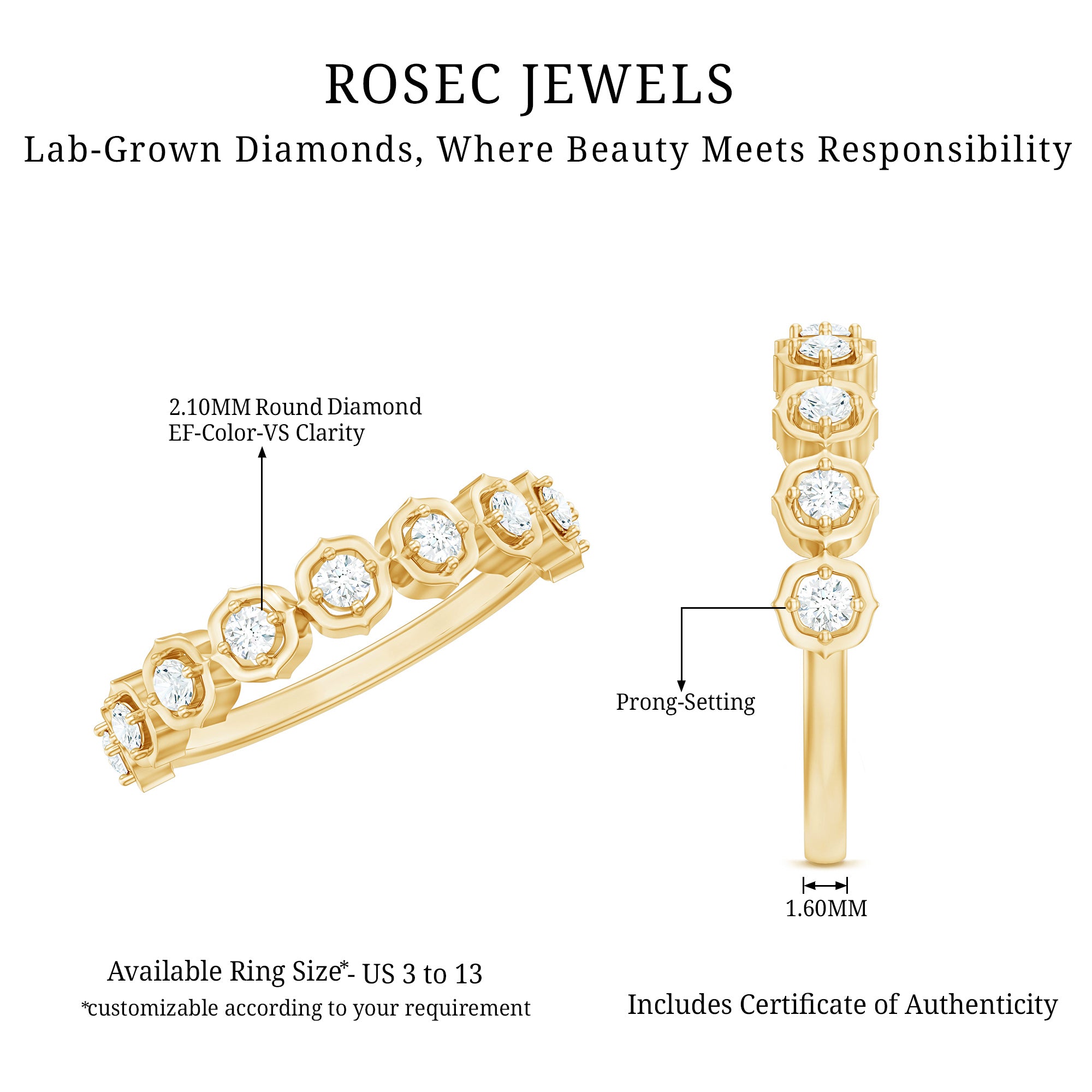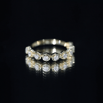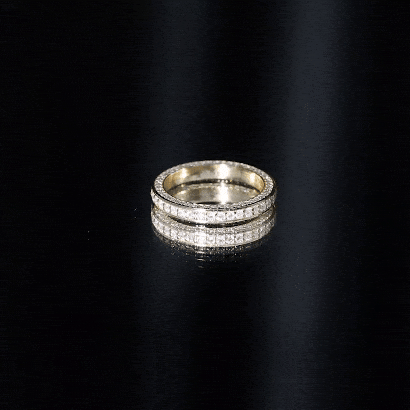 Mixed Color and Metal stacks: Different metals in different colors leave a different effect. Like a yellow gold diamond band, when stacked with a blue sapphire eternity silver band makes a totally different appeal. Rose gold is another option for adding warmth and a romantic touch to your stack.