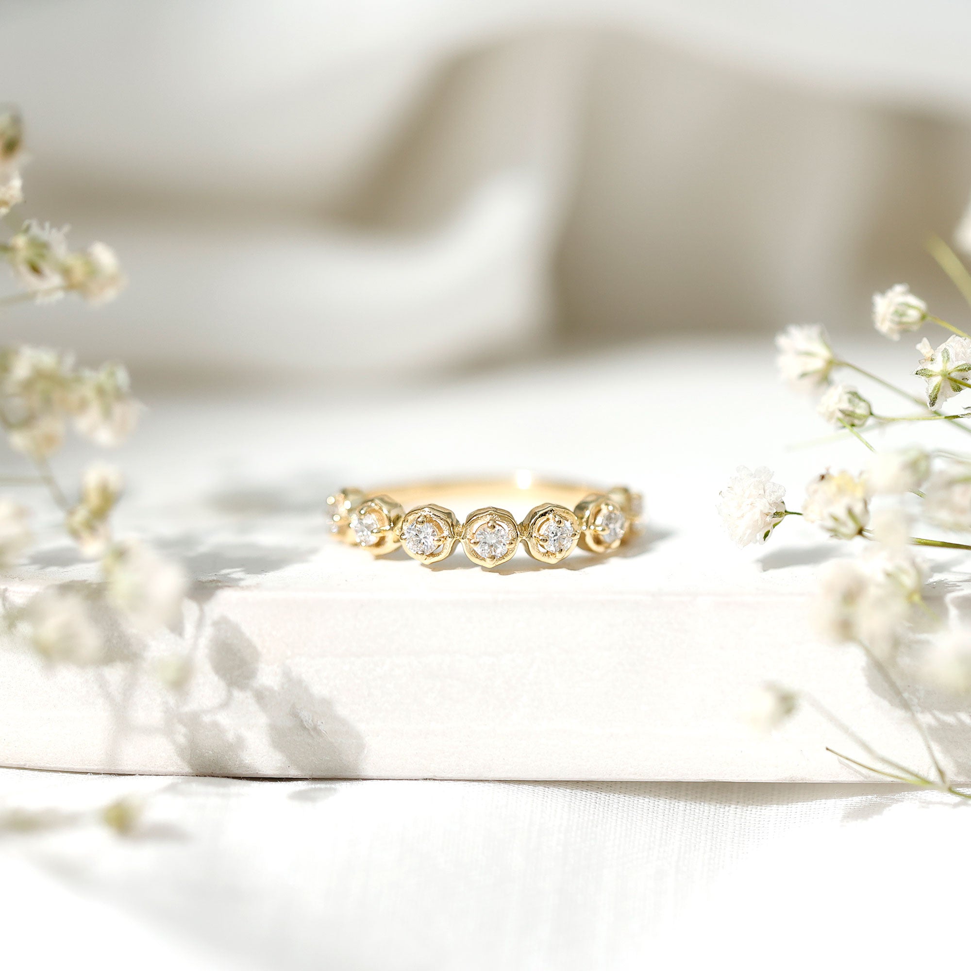 Choose Simple bands: Plain gold bands or simple twisted bands adorned with very few gemstones can add depth to the stack.