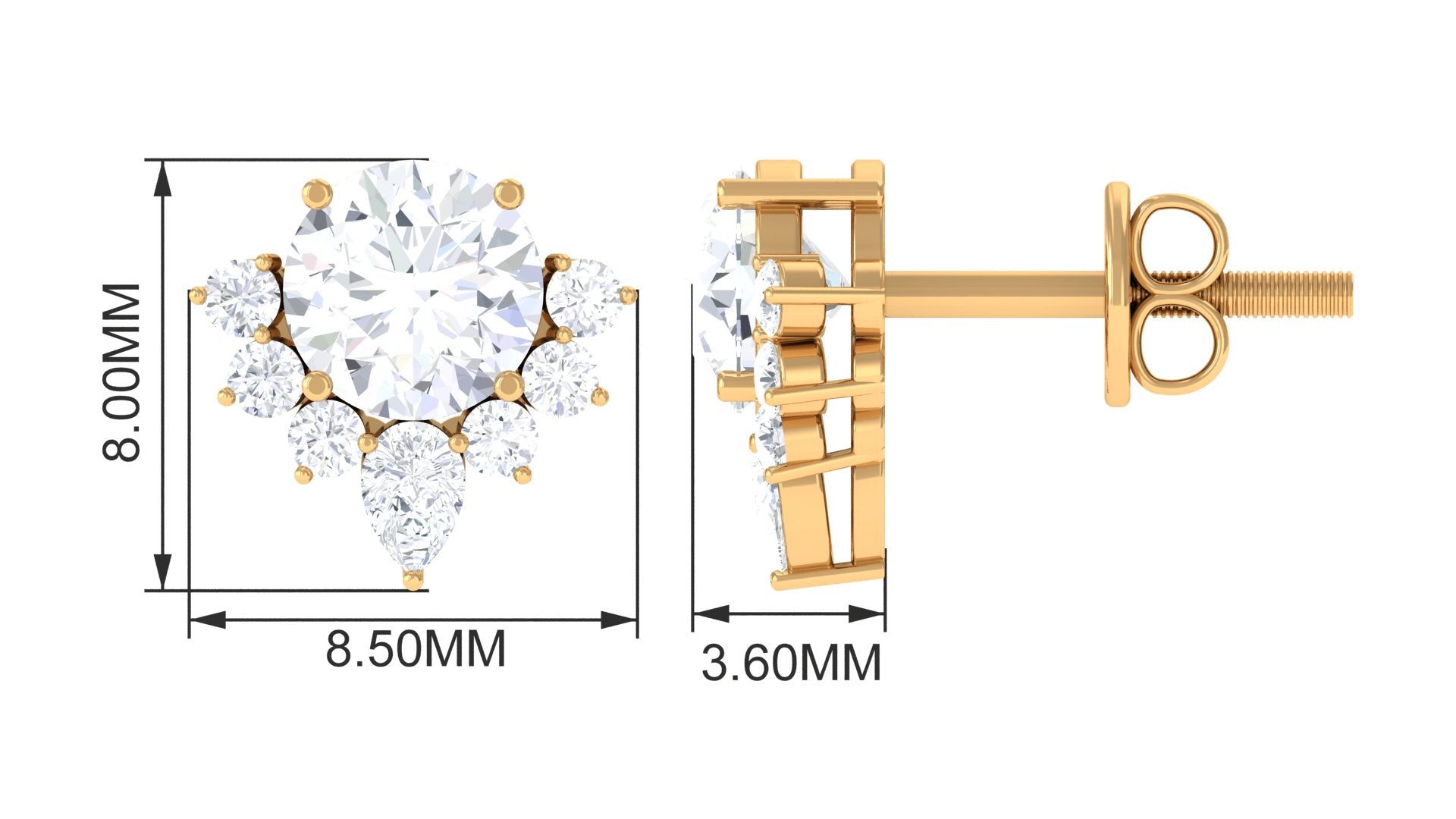 • Cluster Studs: Offering dazzling brilliance, cluster stud earrings with multiple stones create a stunning focal point, adding glamour and sophistication.