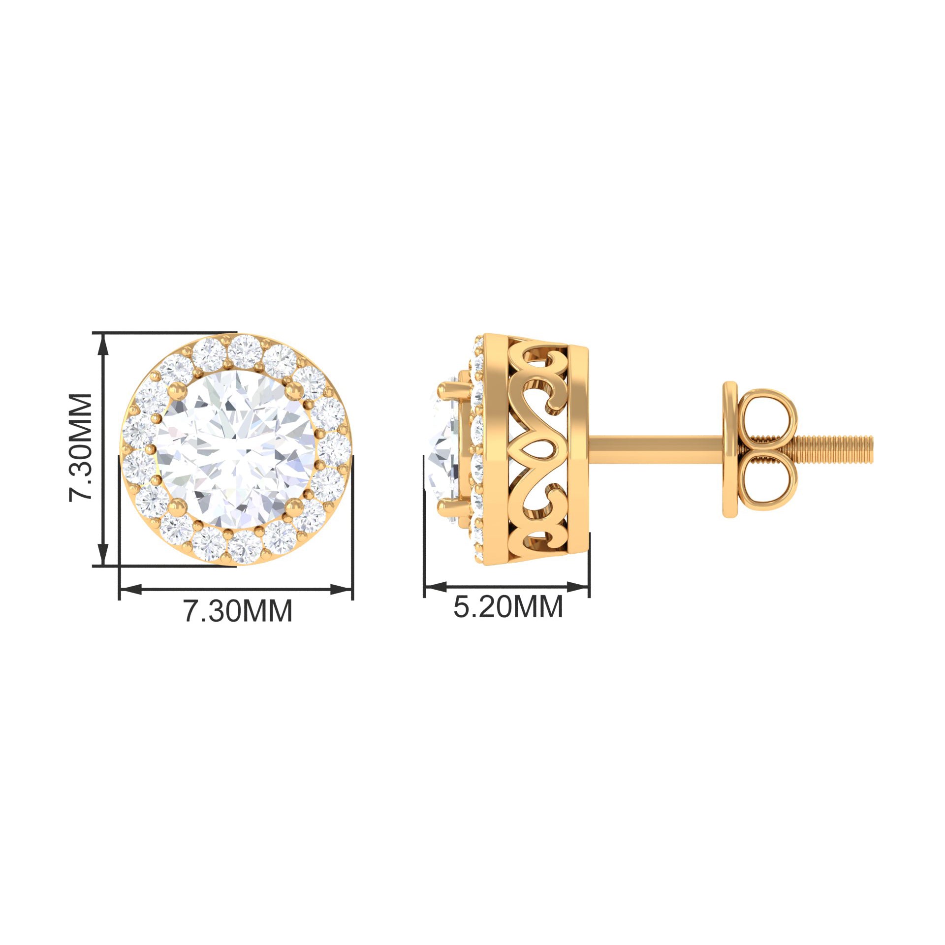 • Halo Studs: Instantly elevate your style with halo stud earrings, featuring a circle of gems that enhances the center stone, creating a dazzling effect.