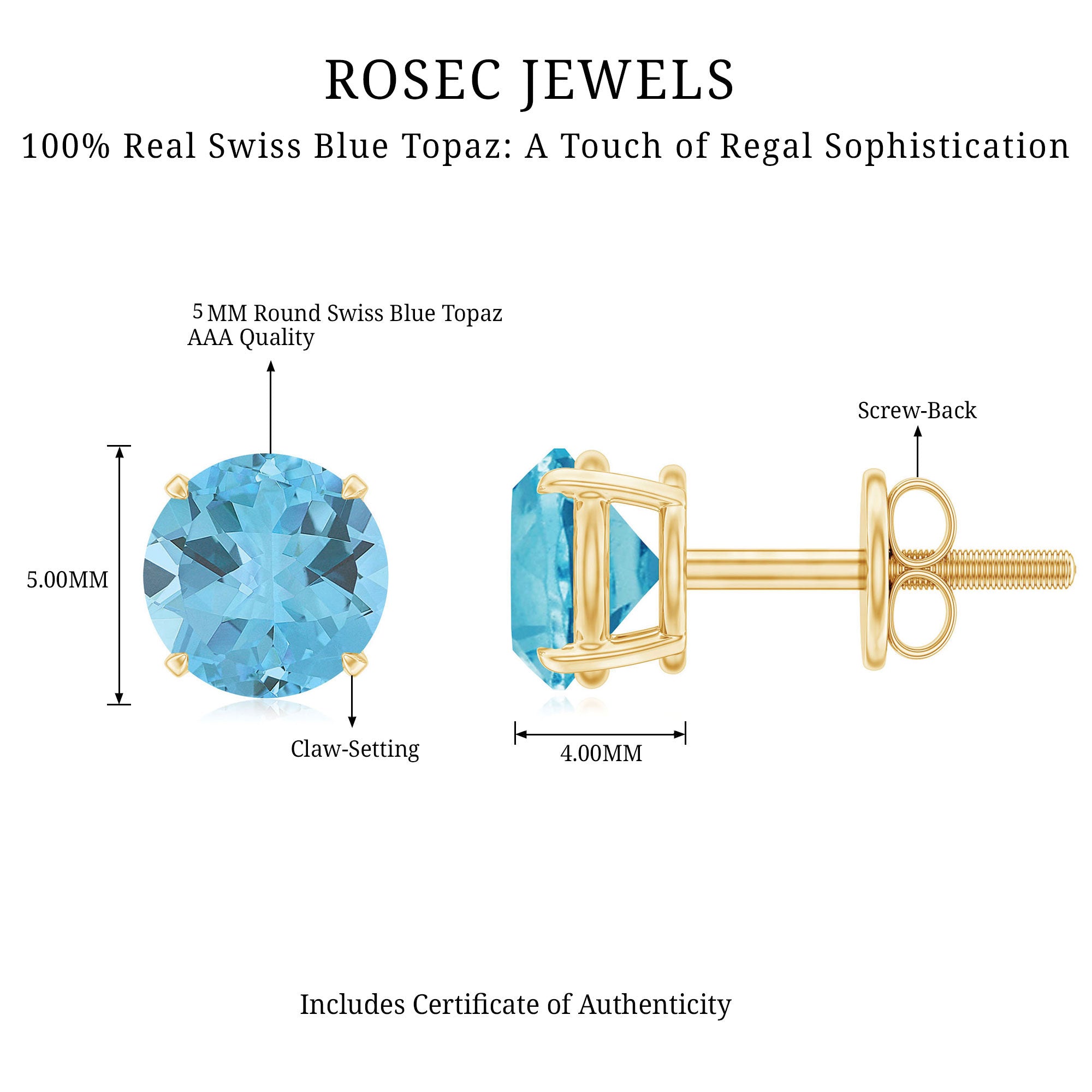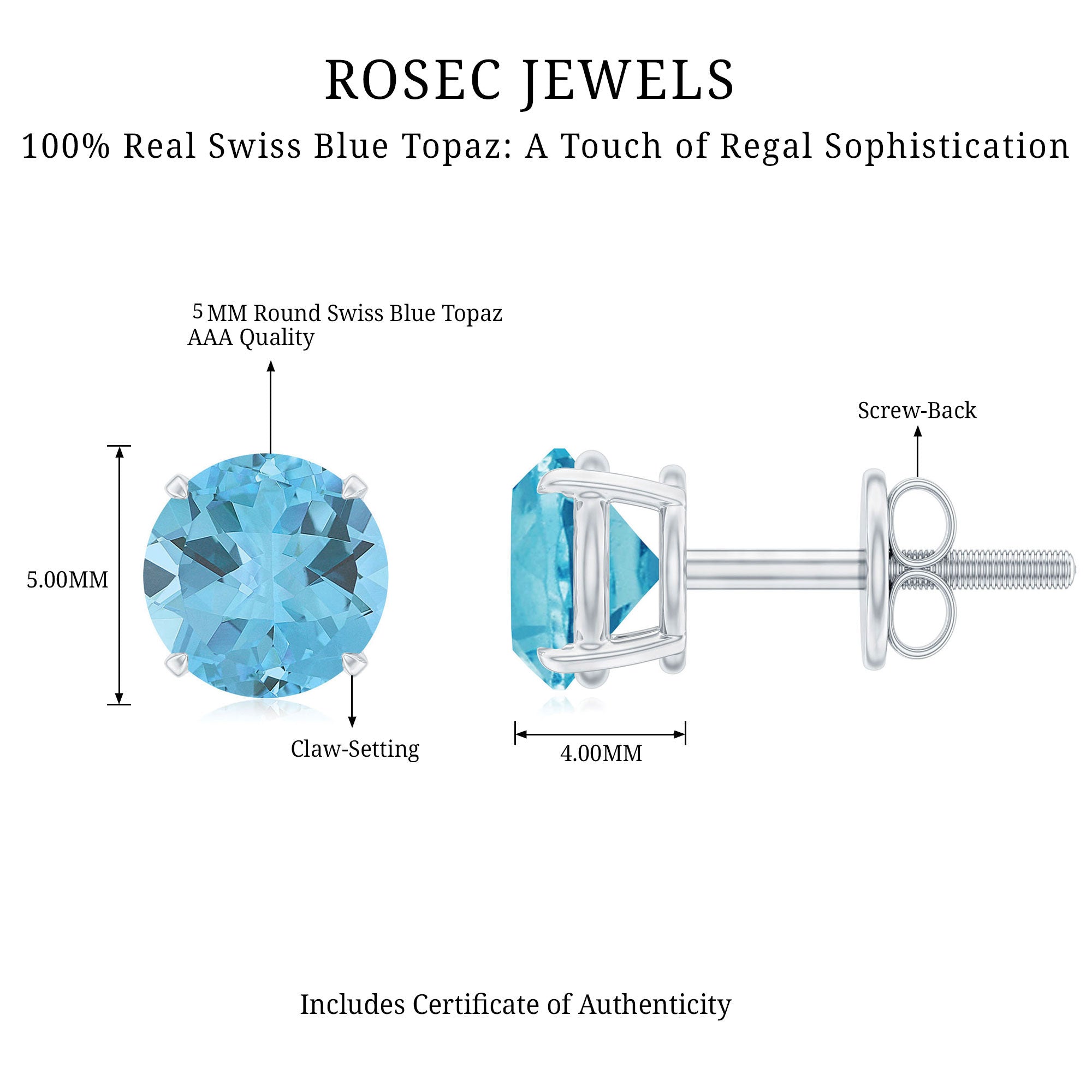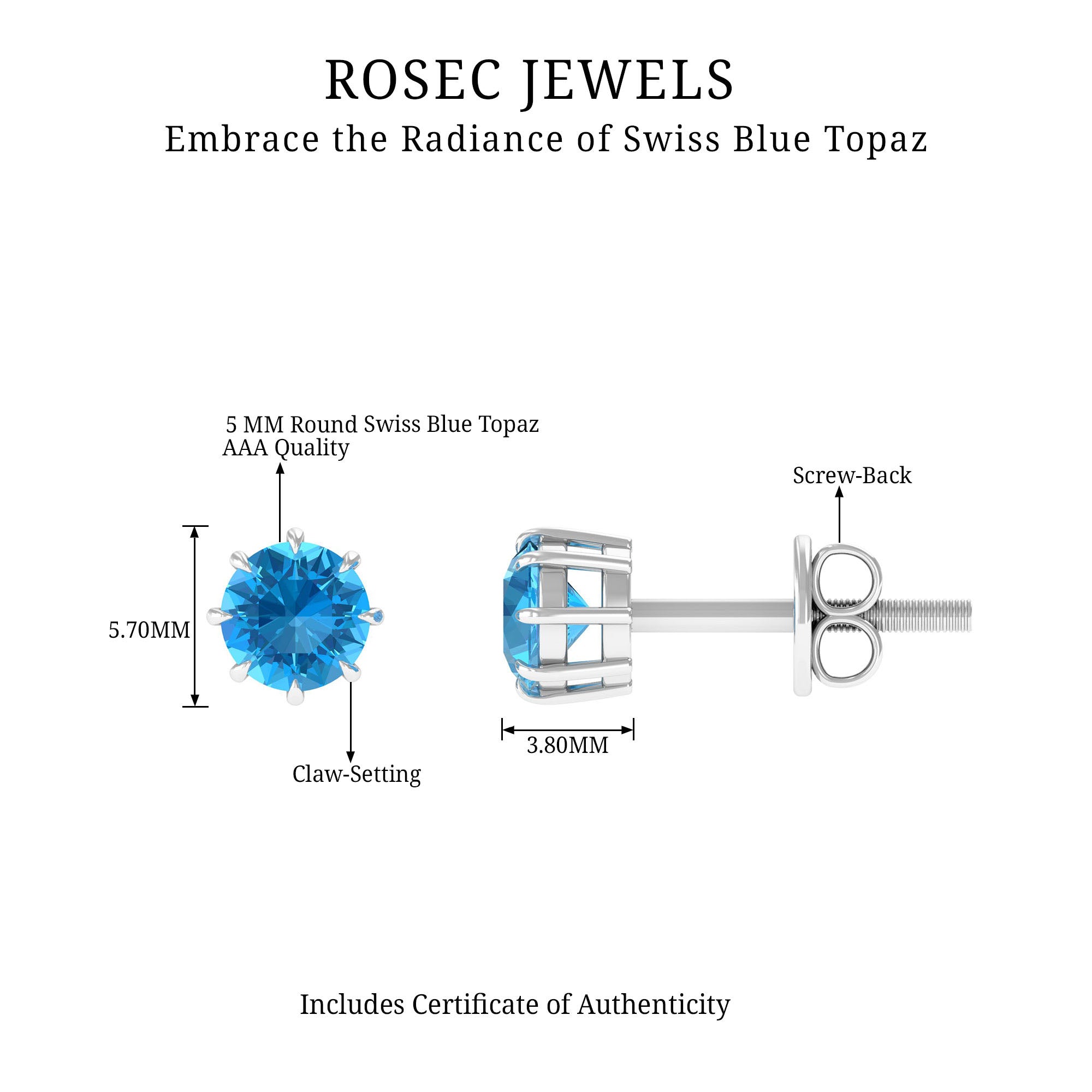 Having a hardness of around 8 on Moh’s scale, Swiss Blue Topaz Earrings can be worn on a regular basis as well, making it one of the most durable gemstones of all times. In fact, an original Swiss Blue topaz is known to scratch glass with its hardness.
