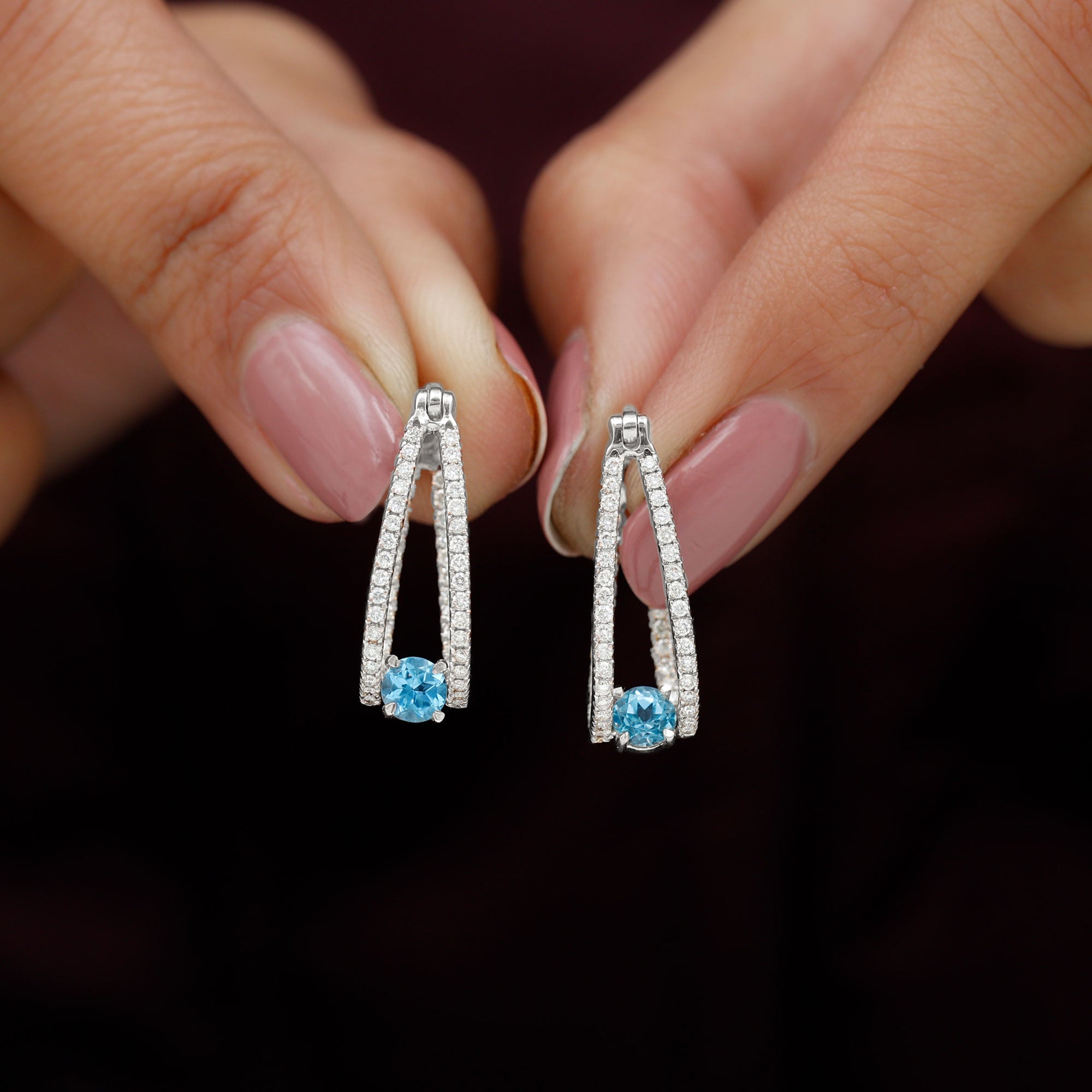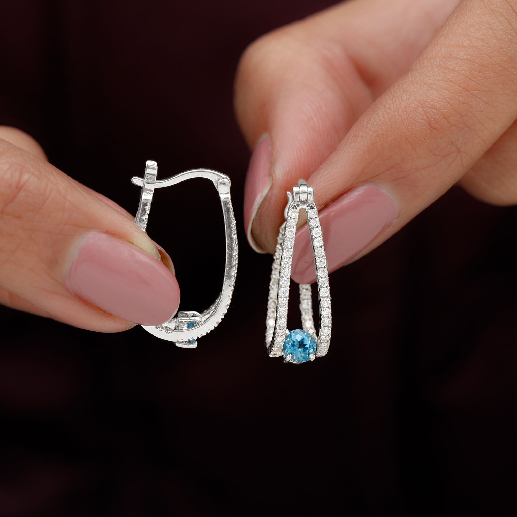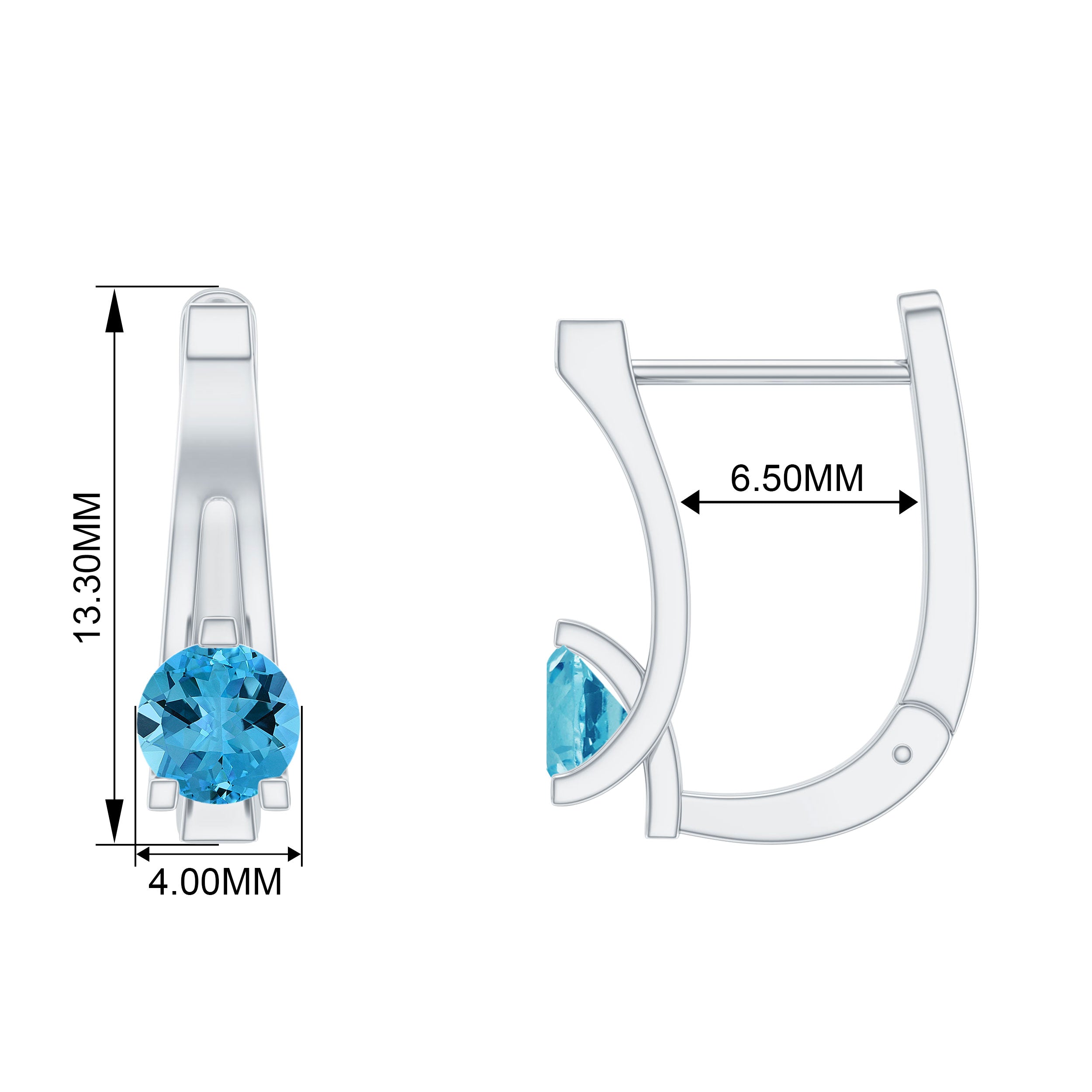 The shape of Swiss Blue Topaz Earrings ranges from a classic round, oval, baguette to a profound princess and marquise cut.