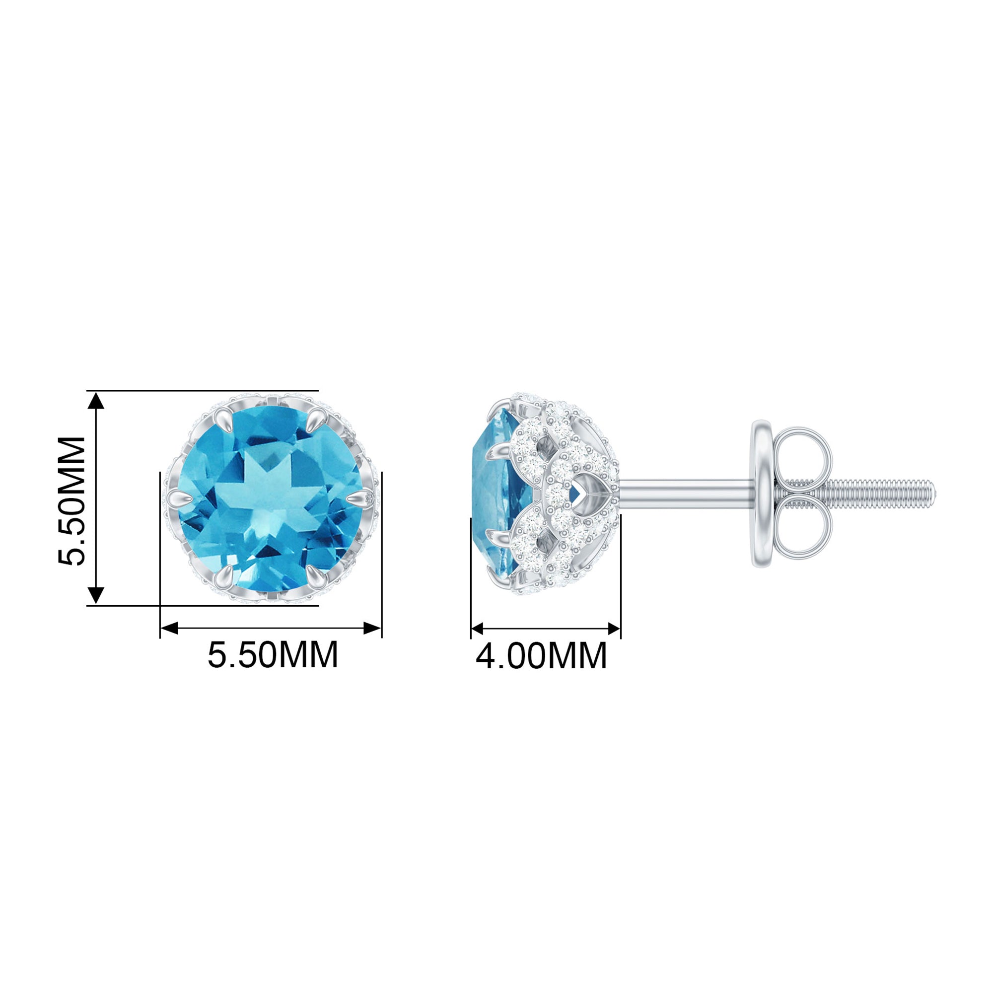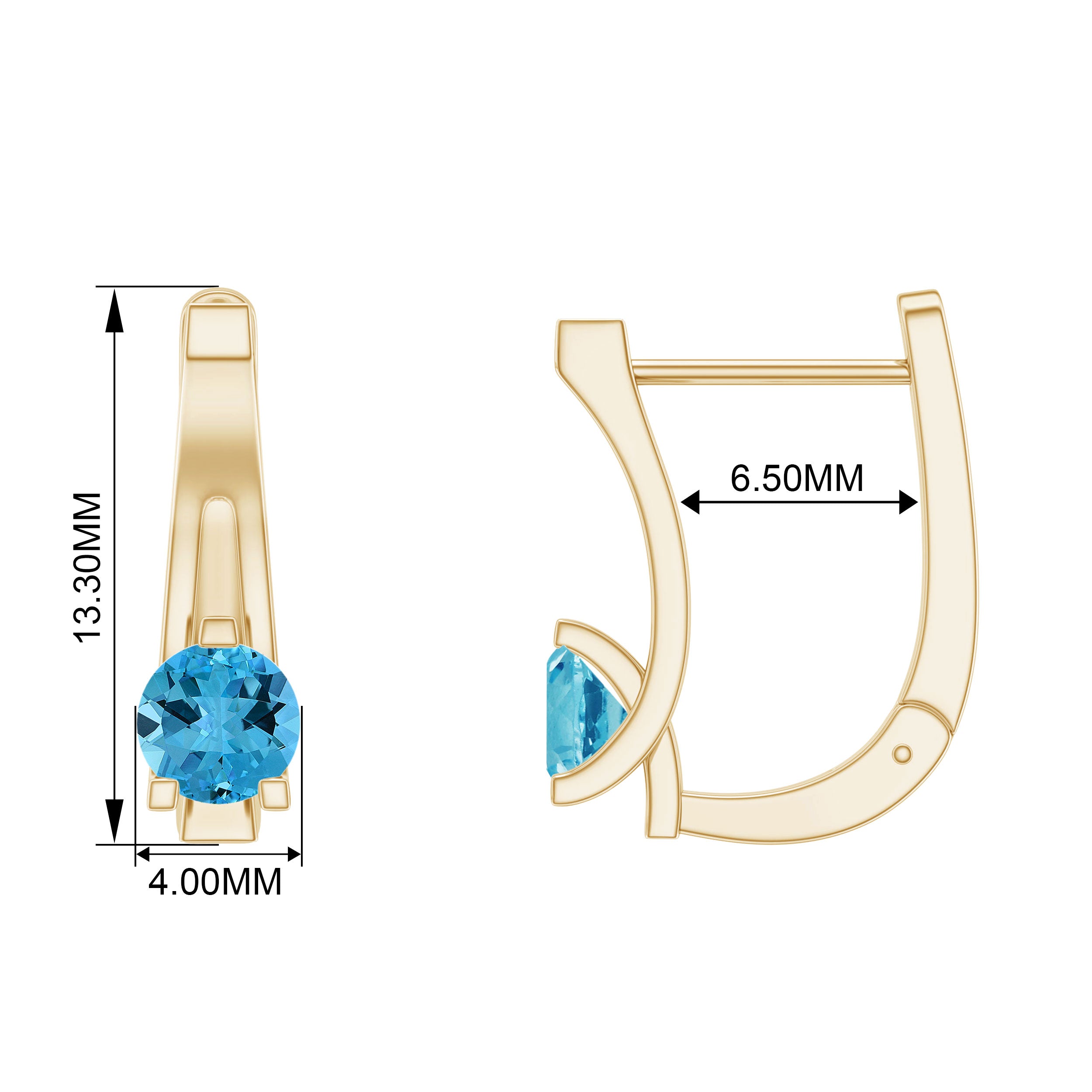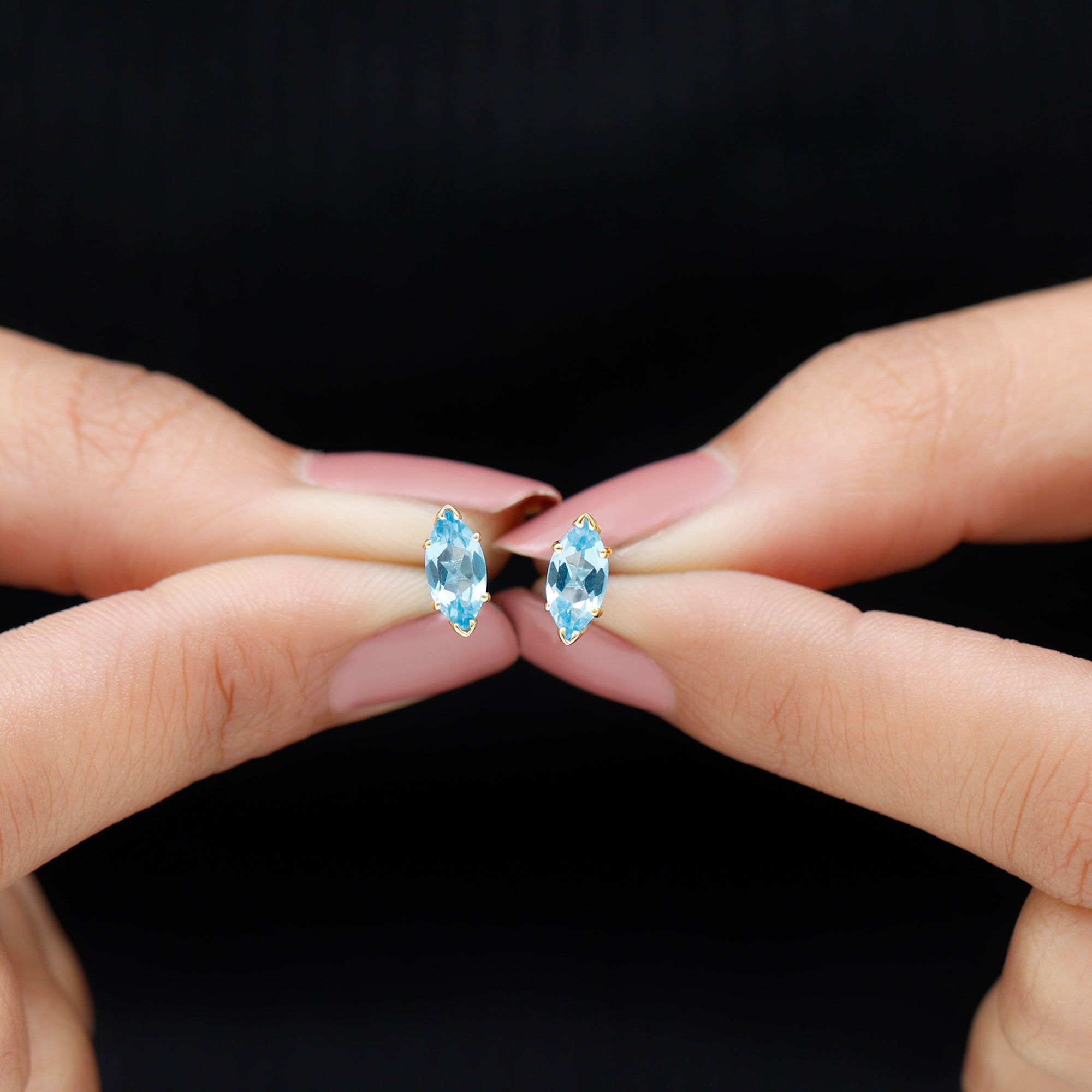The shape of Swiss Blue Topaz Earrings ranges from a classic round, oval, baguette to a profound princess and marquise cut.