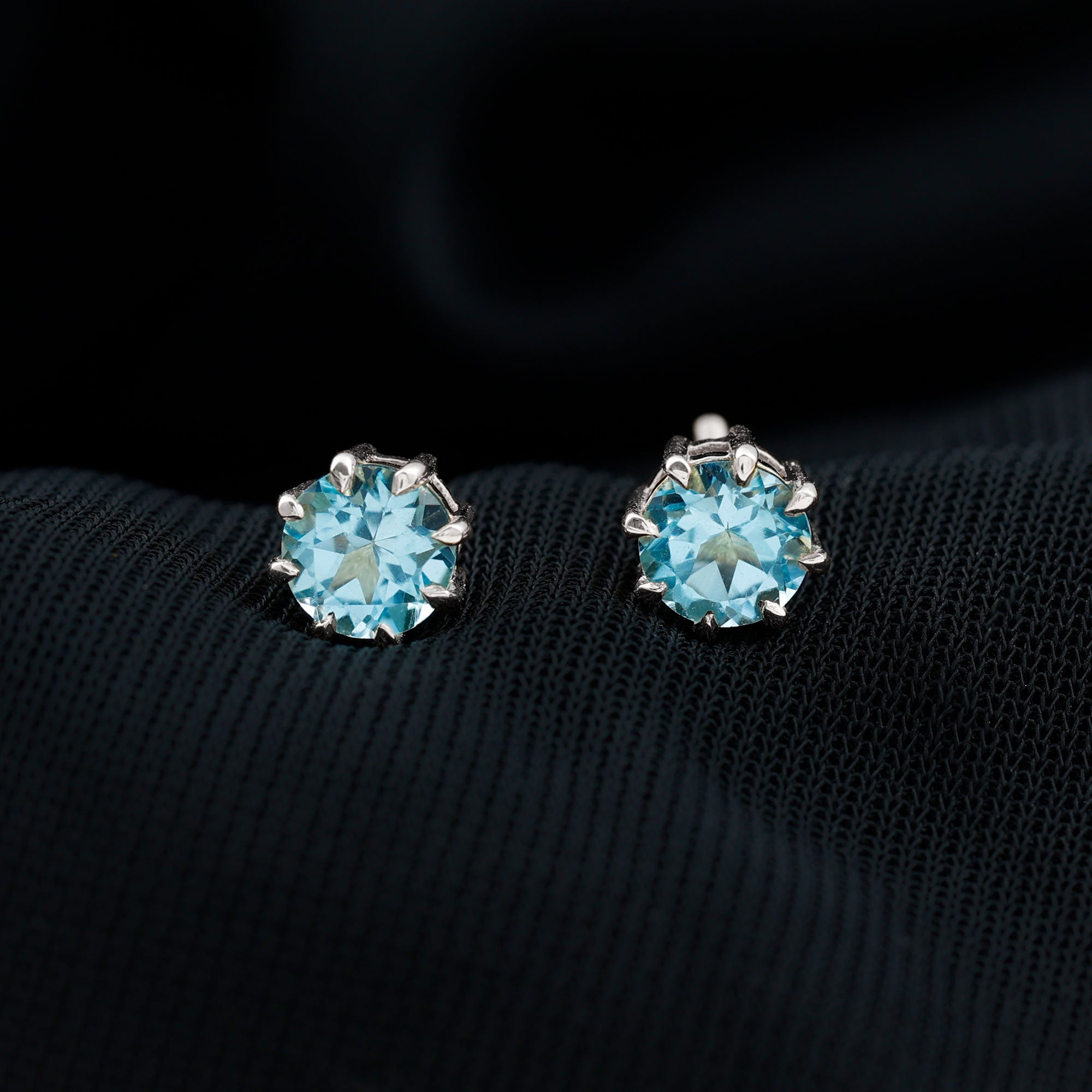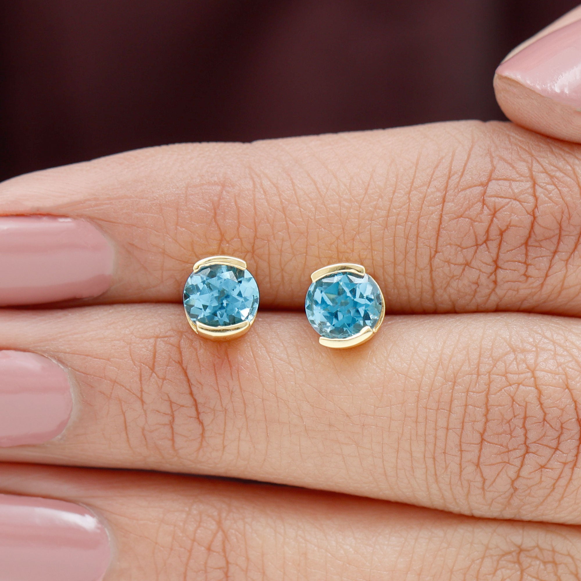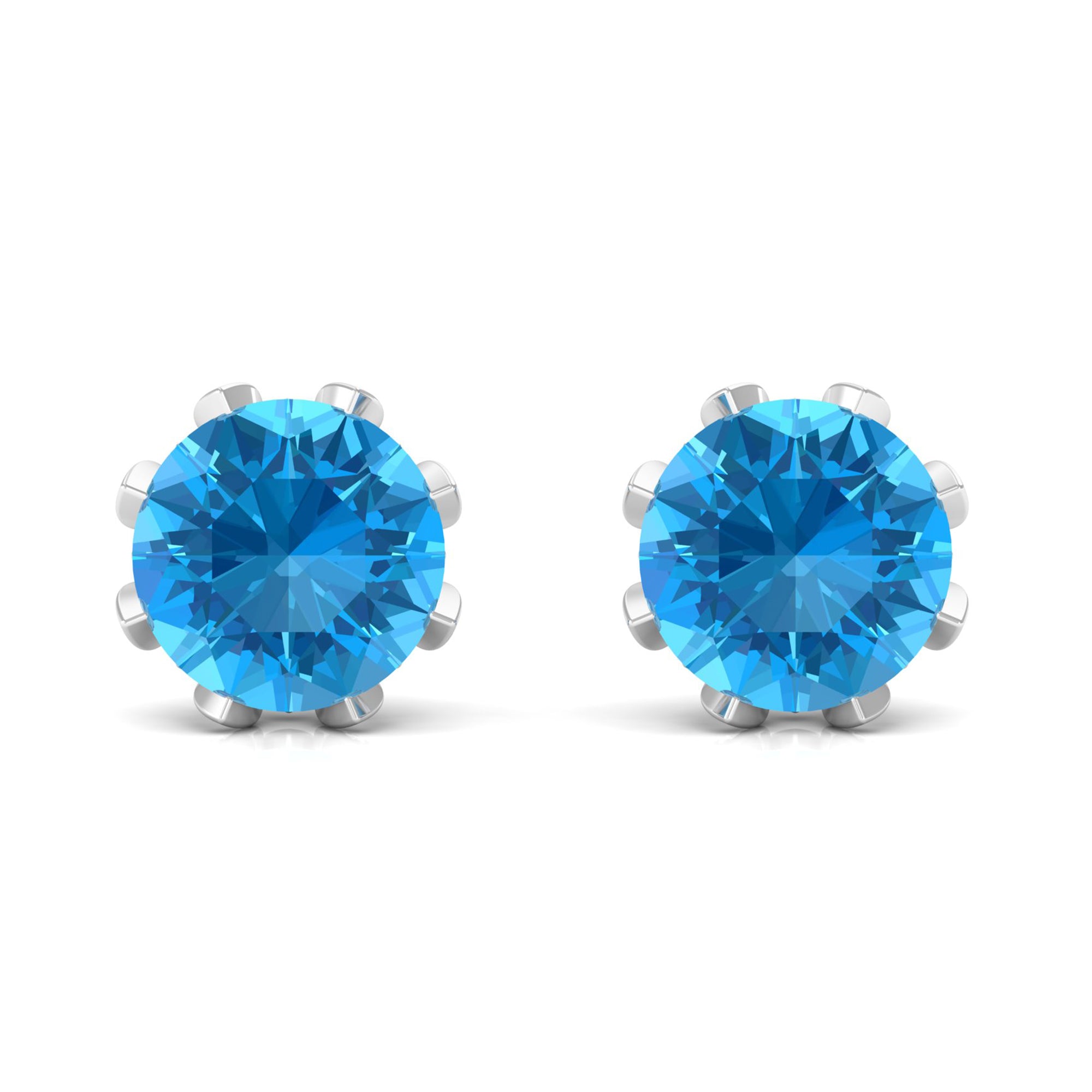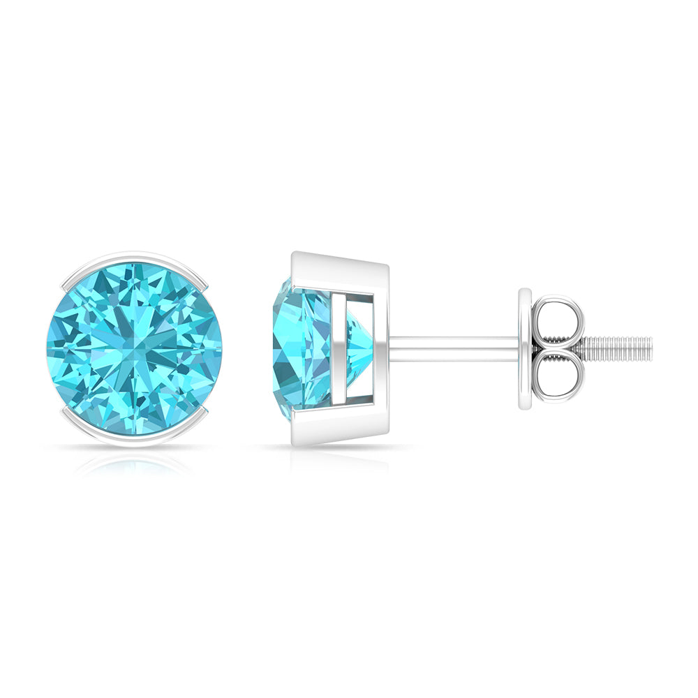 Swiss Blue Topaz Stud Earrings: