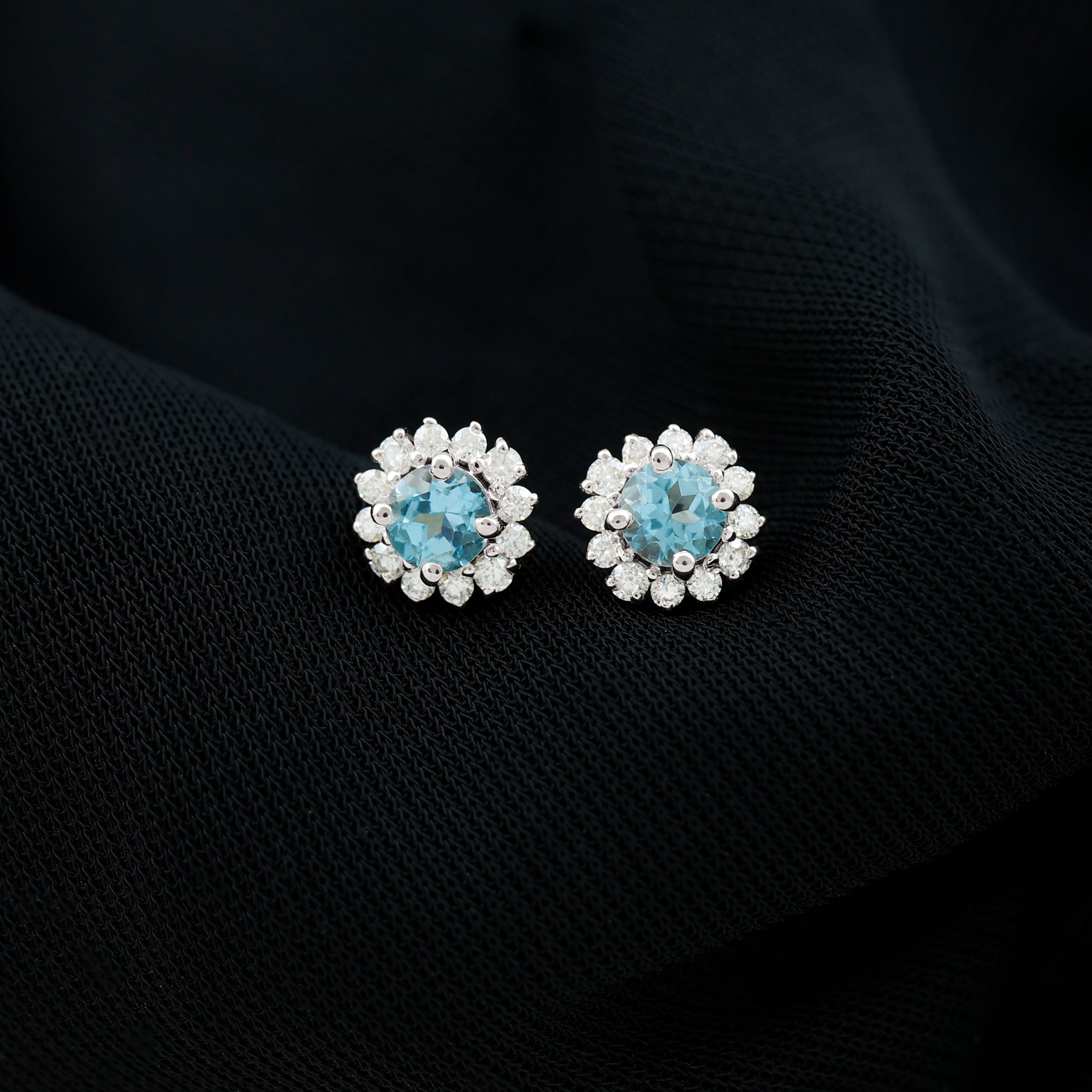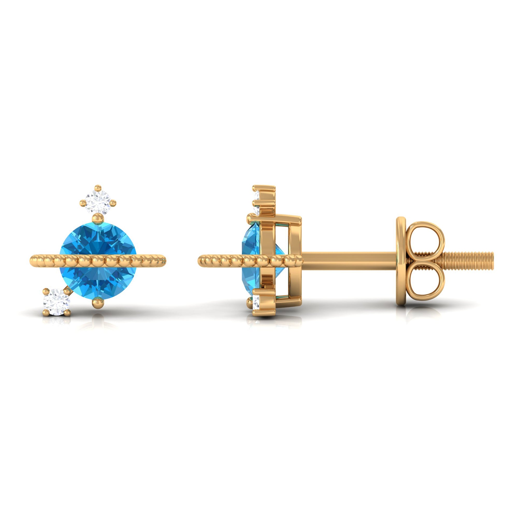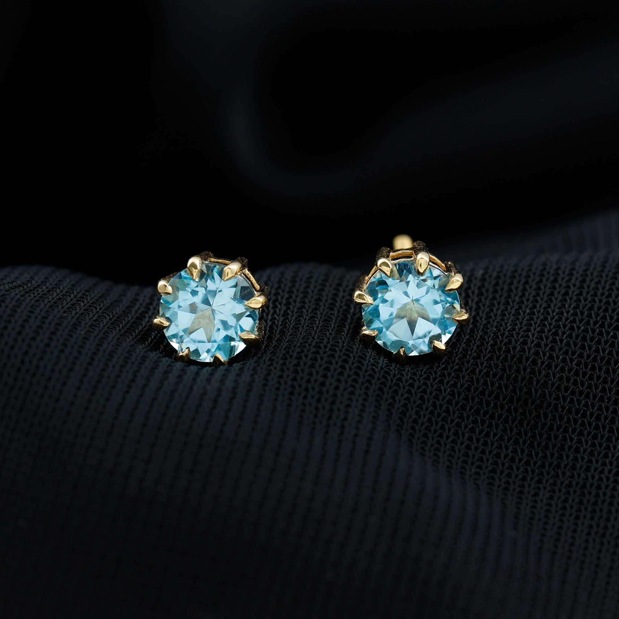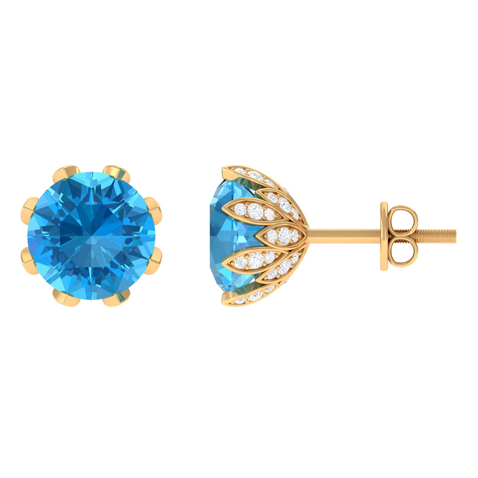 Swiss Blue Topaz Stud Earrings: