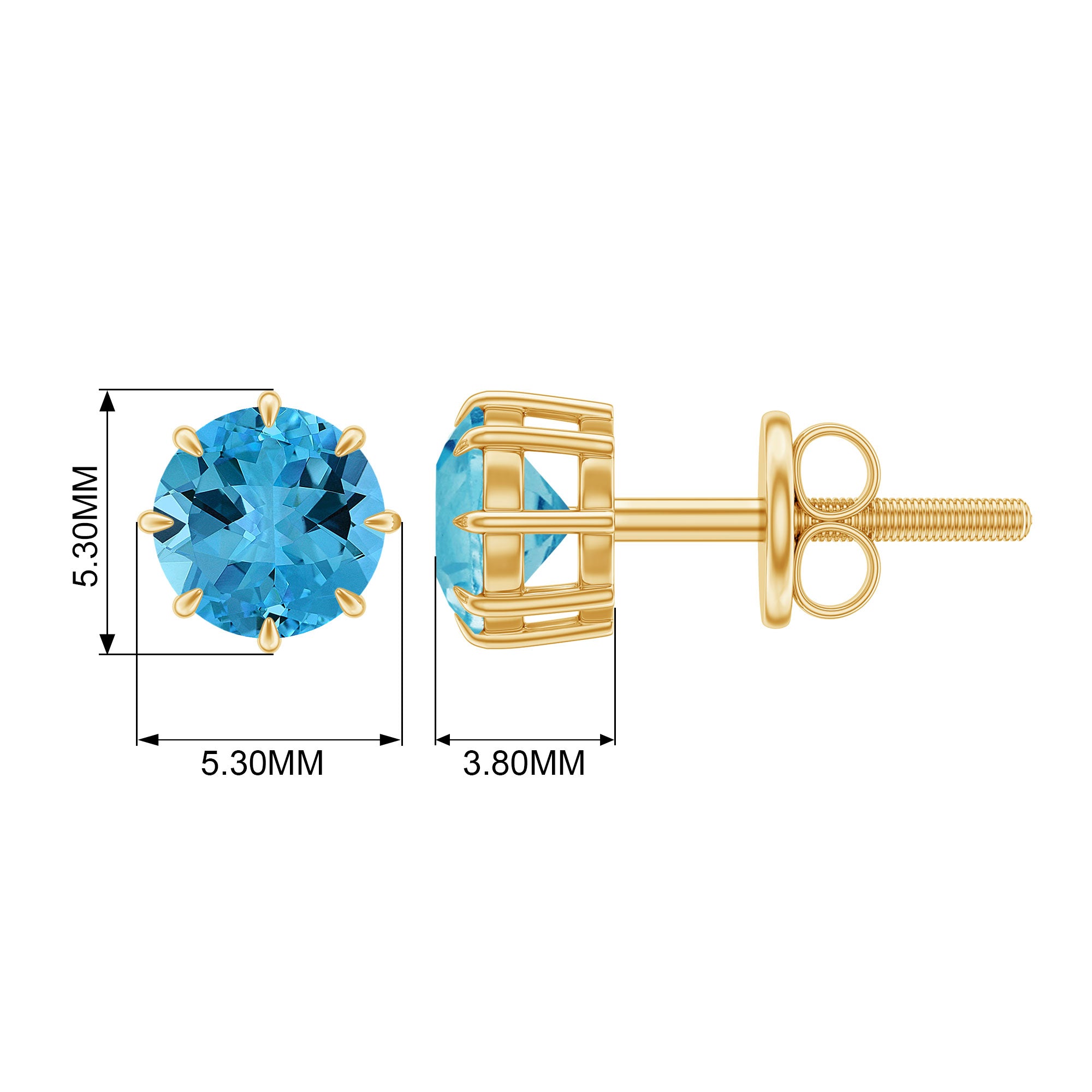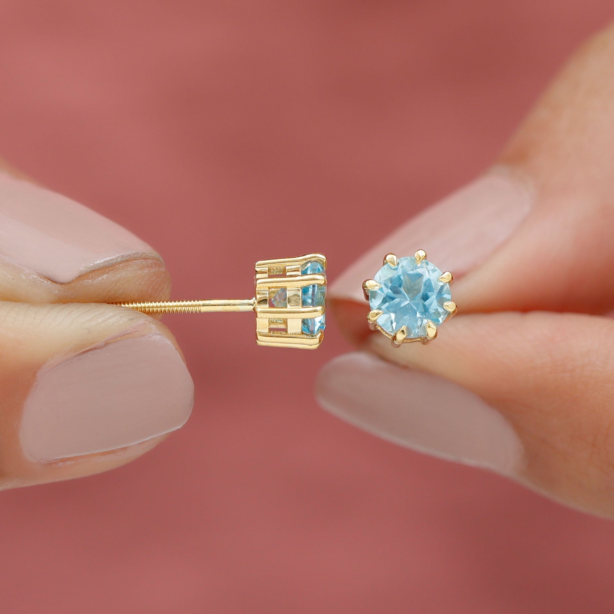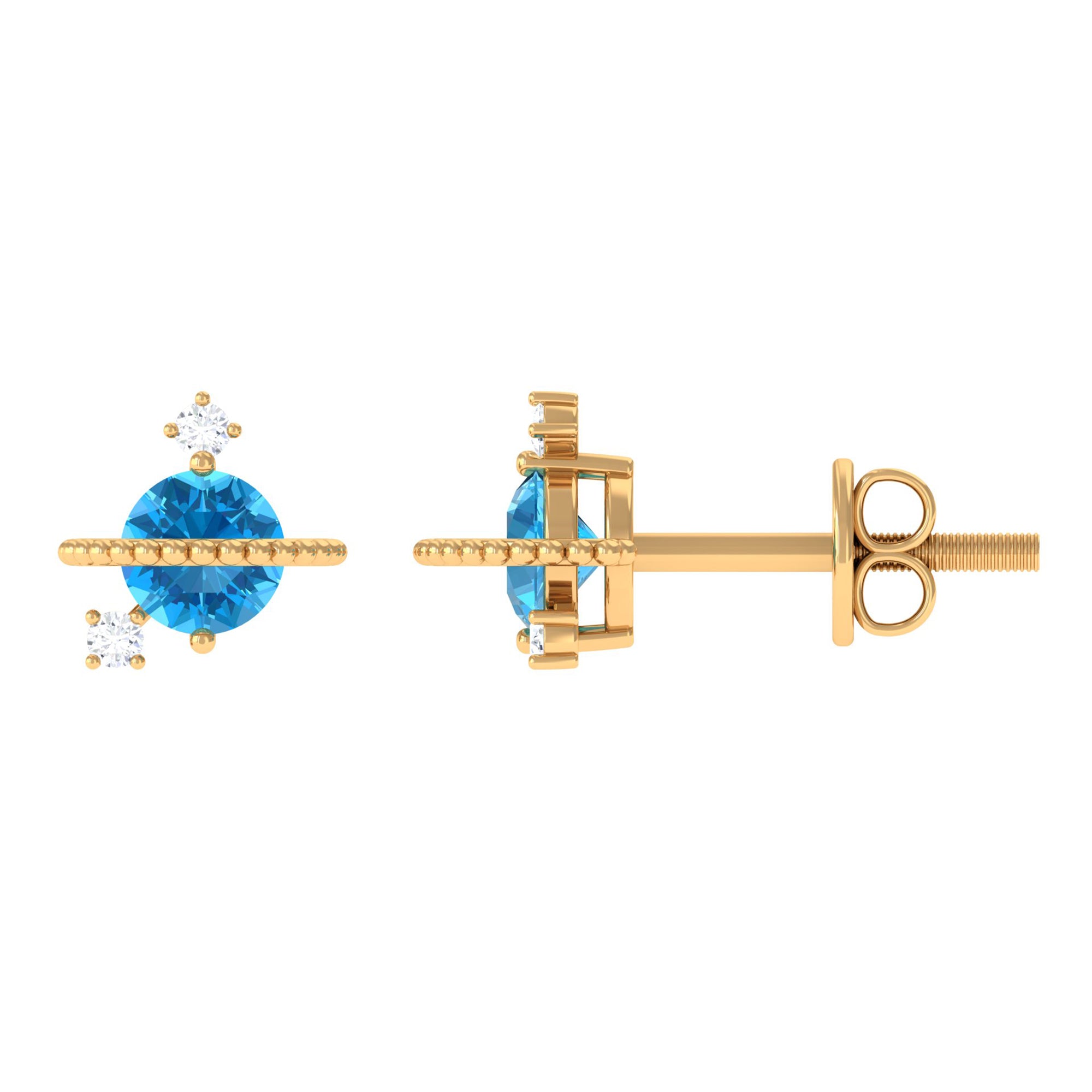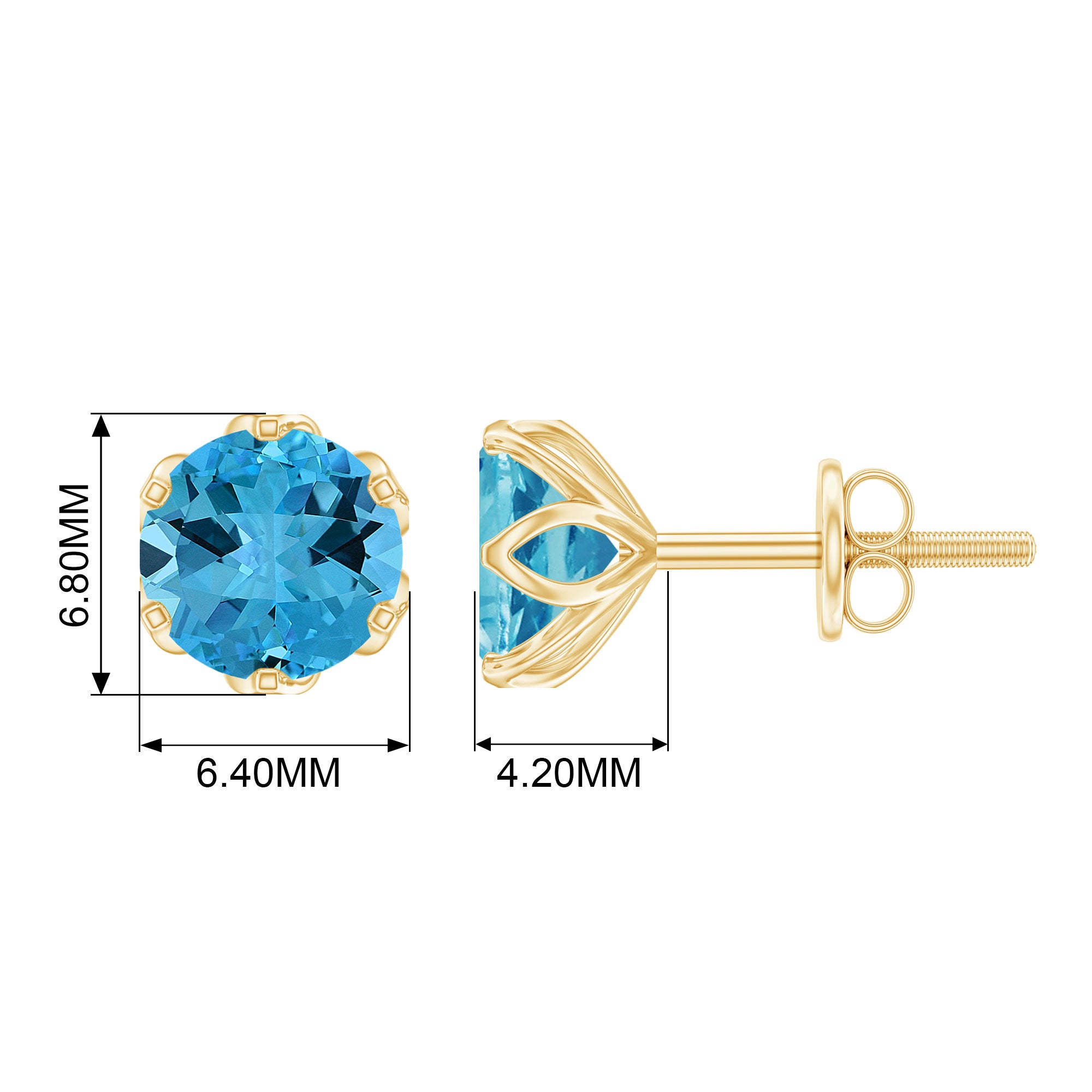Swiss Blue Topaz Stud Earrings: