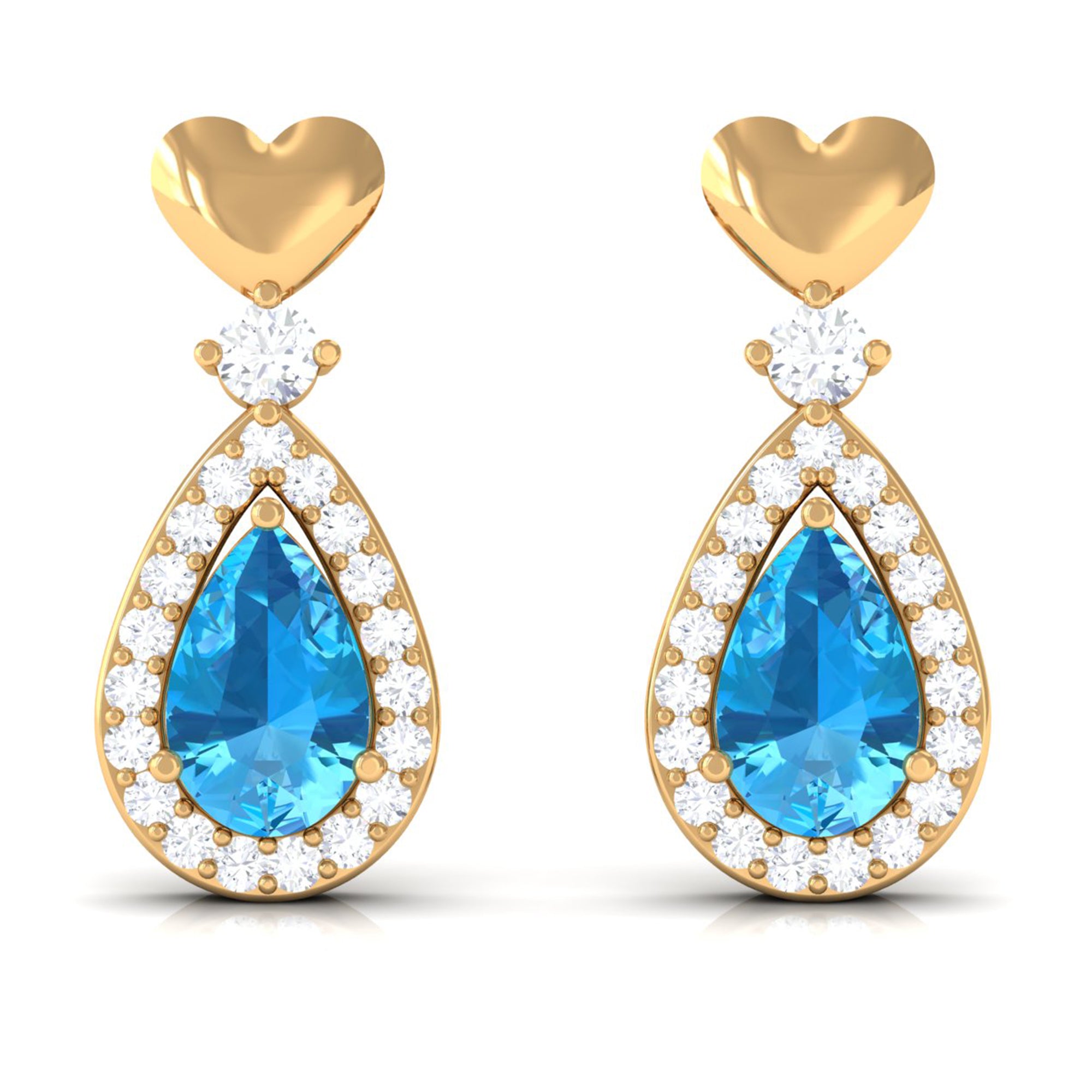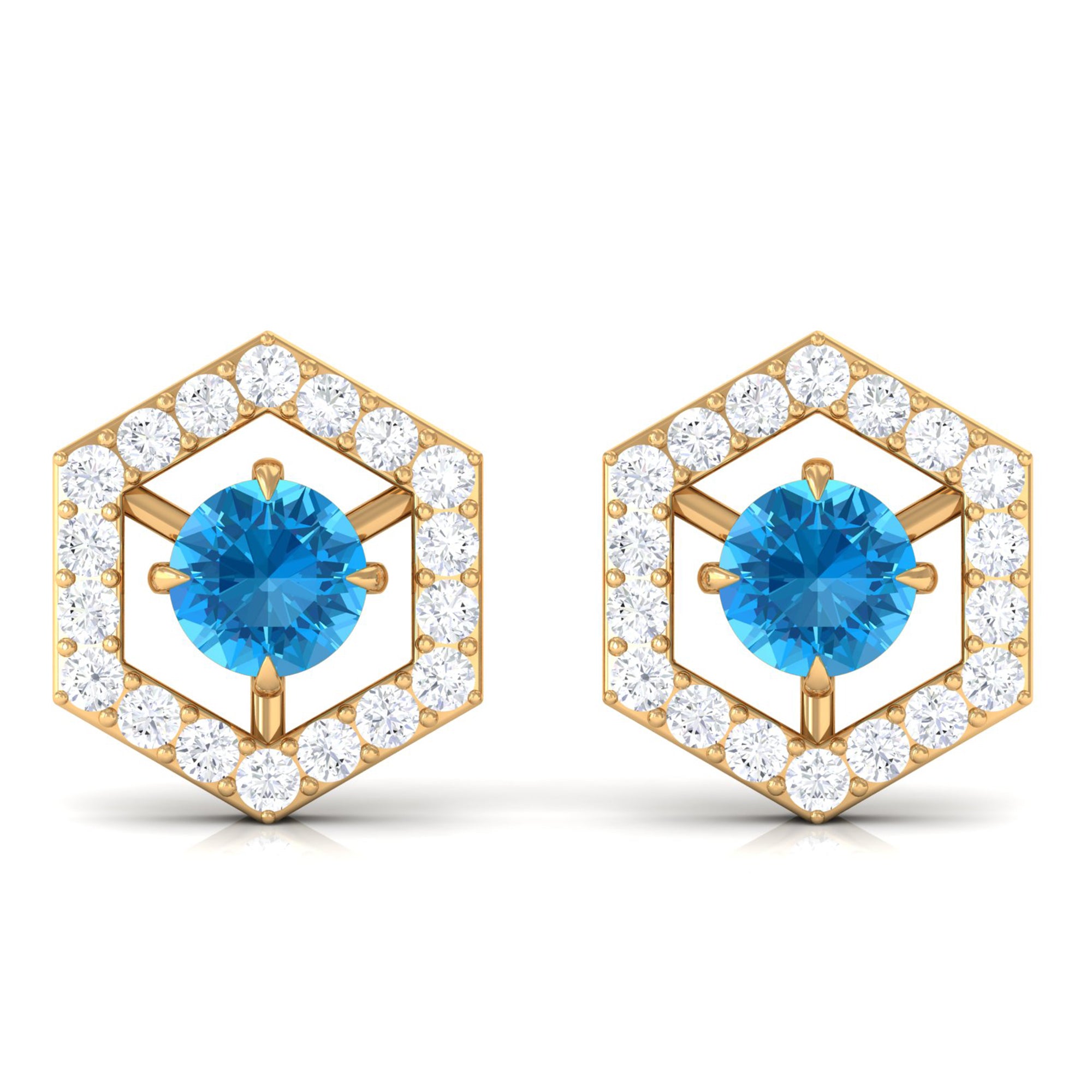 Since yellow gold looks so classy with any attire and when combined with the deep sea color of Swiss Blue Topaz, it looks no less alluring.