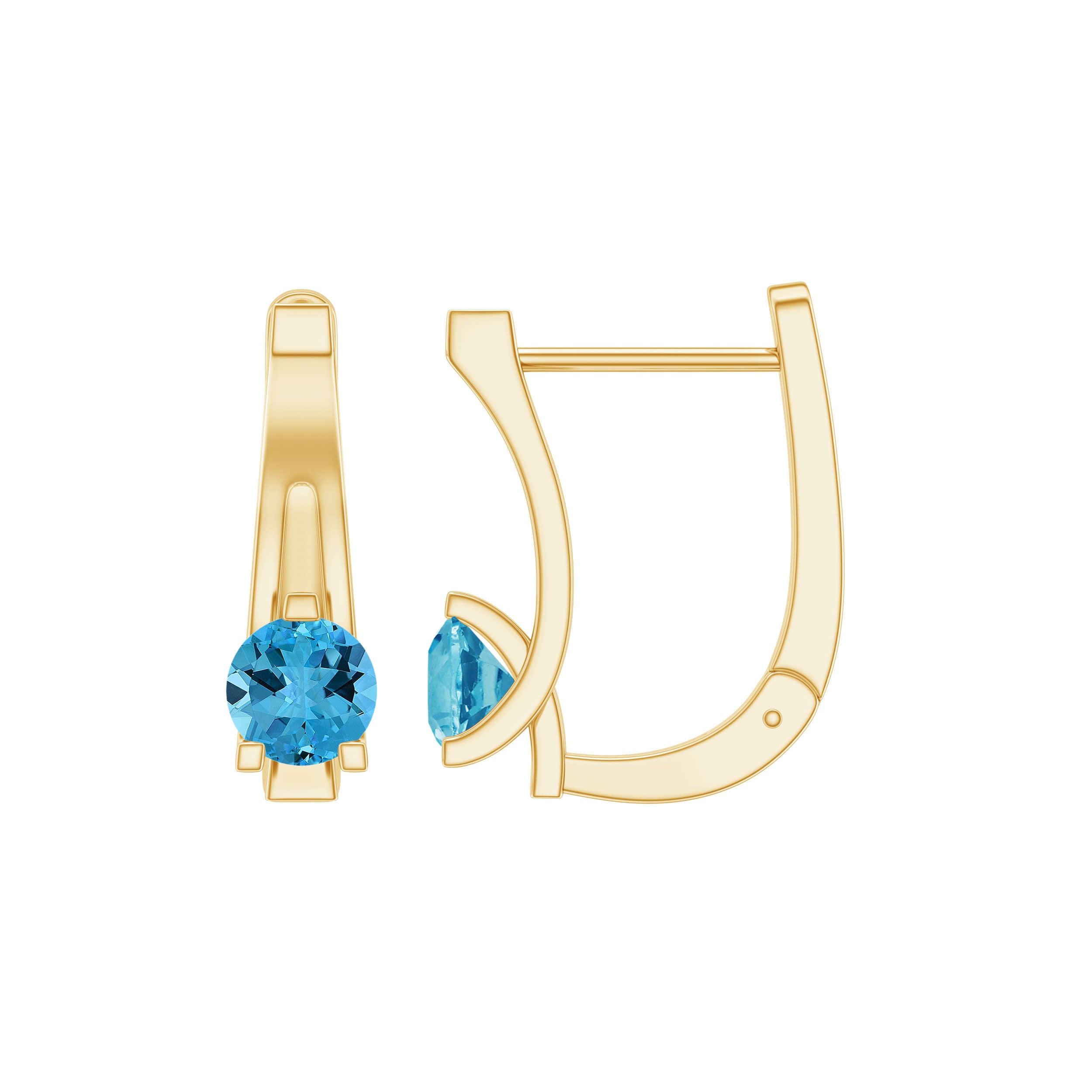 Swiss Blue Topaz Earrings Yellow Gold: