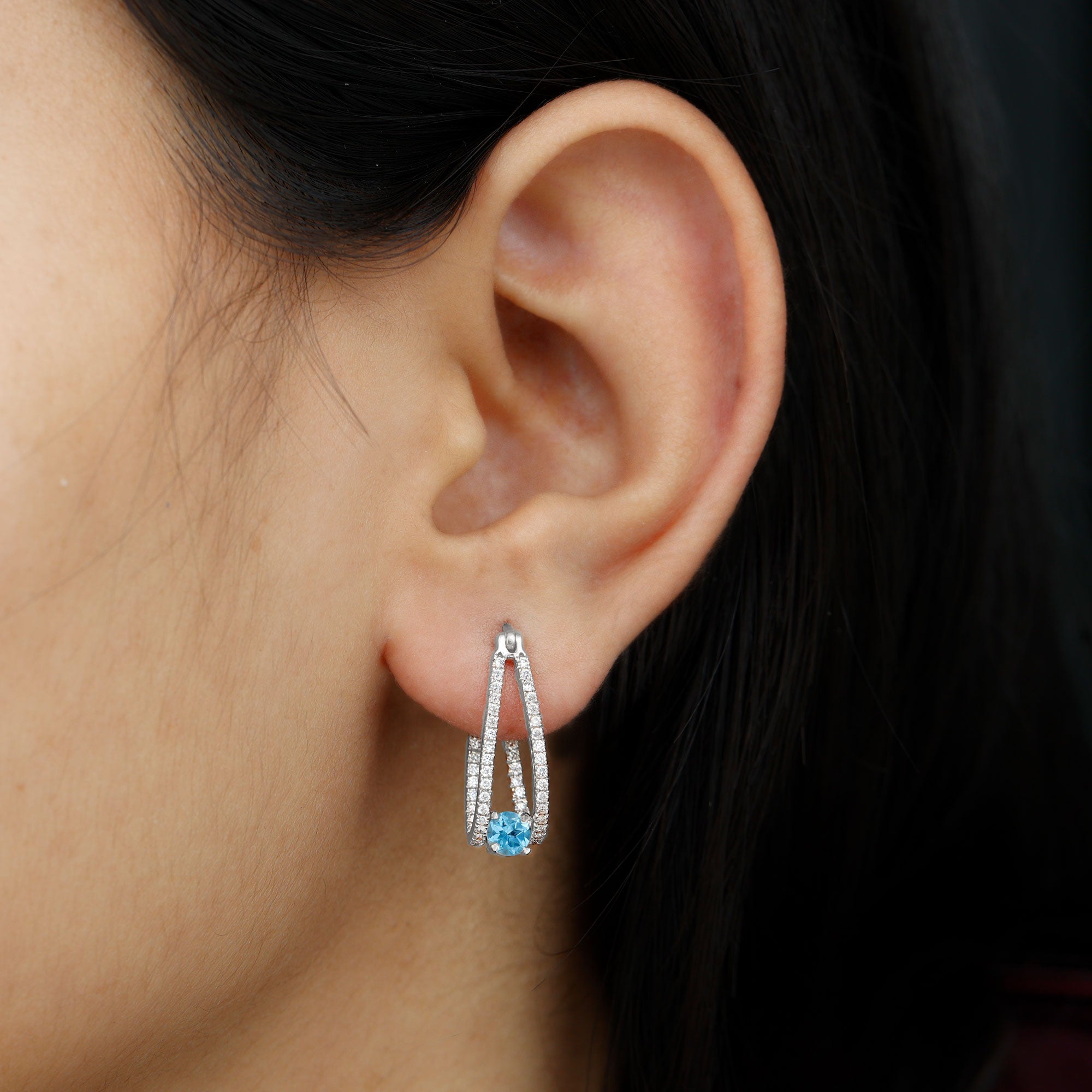 Hoop Earrings have become the new cool. The versatality is such that you can don Swiss Blue Topaz Hoop Earrings to work, parties or a casual day out looking just as timeless.