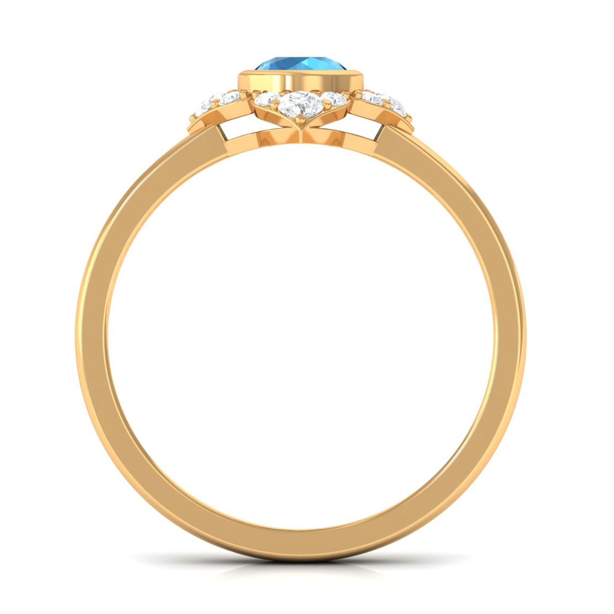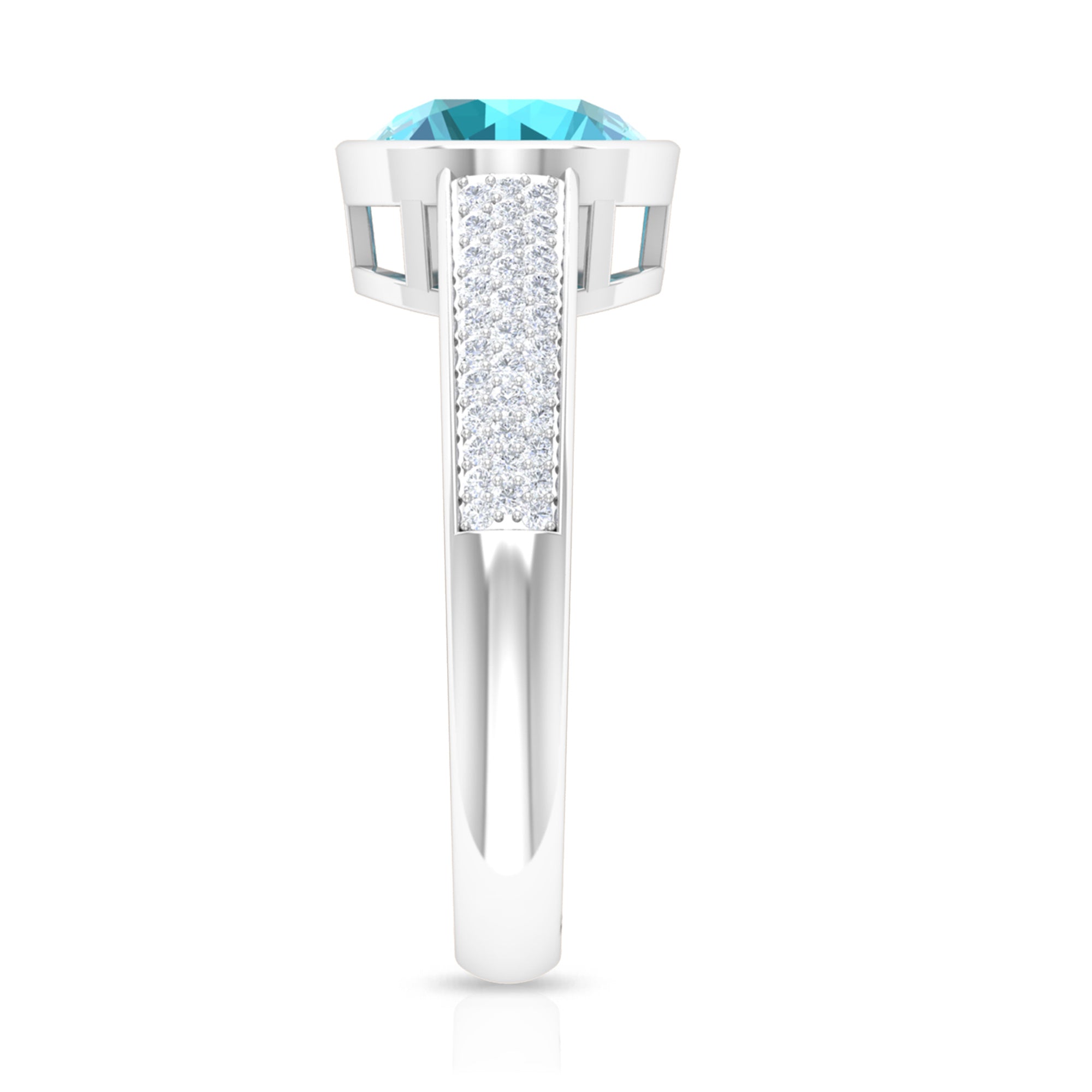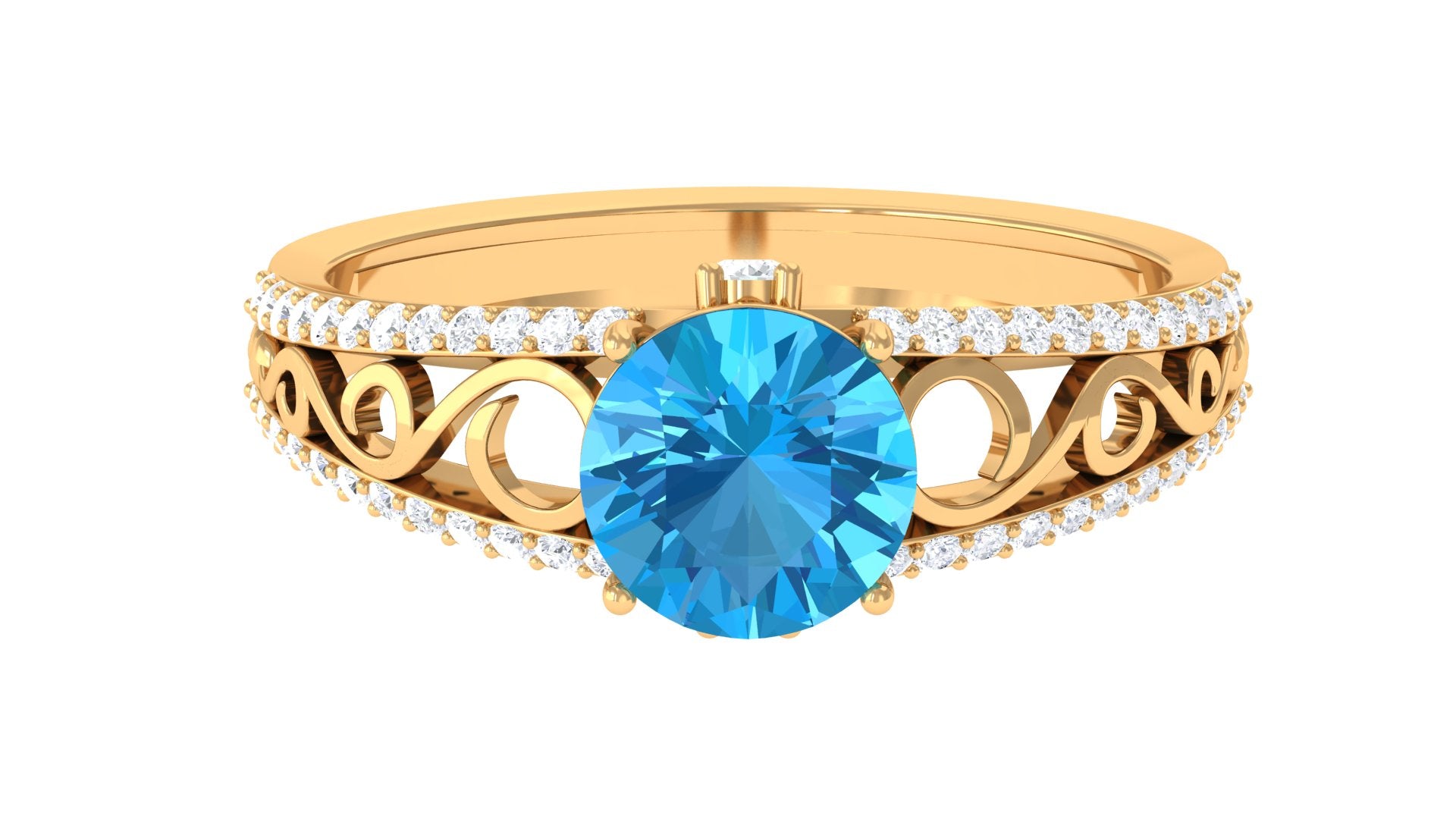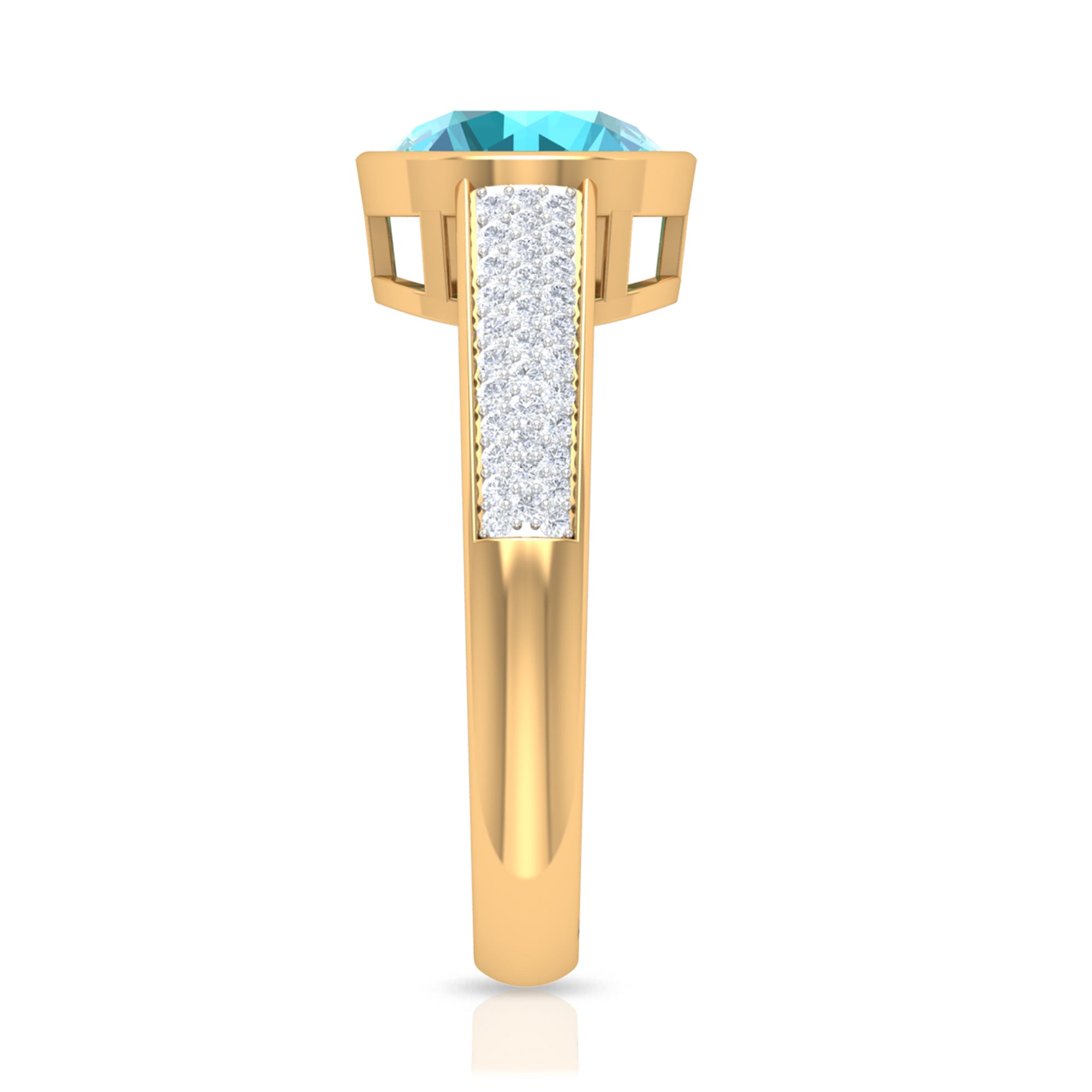 For the amalgamation of ring designs, our experts constantly experiment with different gold colors and Swiss blue topaz shapes to curate out of the box designs of Swiss blue topaz ring in yellow gold, white gold and rose gold. Popular & diverse shapes like oval, round, princess and cushion, further helps in broadening Swiss blue topaz engagement ring styles. Also, fine metal details and embellishments helps us in crafting vintage style blue topaz rings and many more to best suit your personal style.