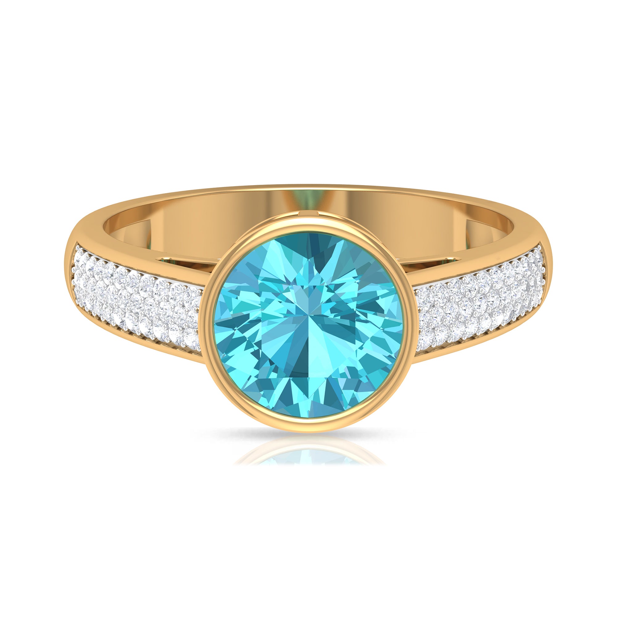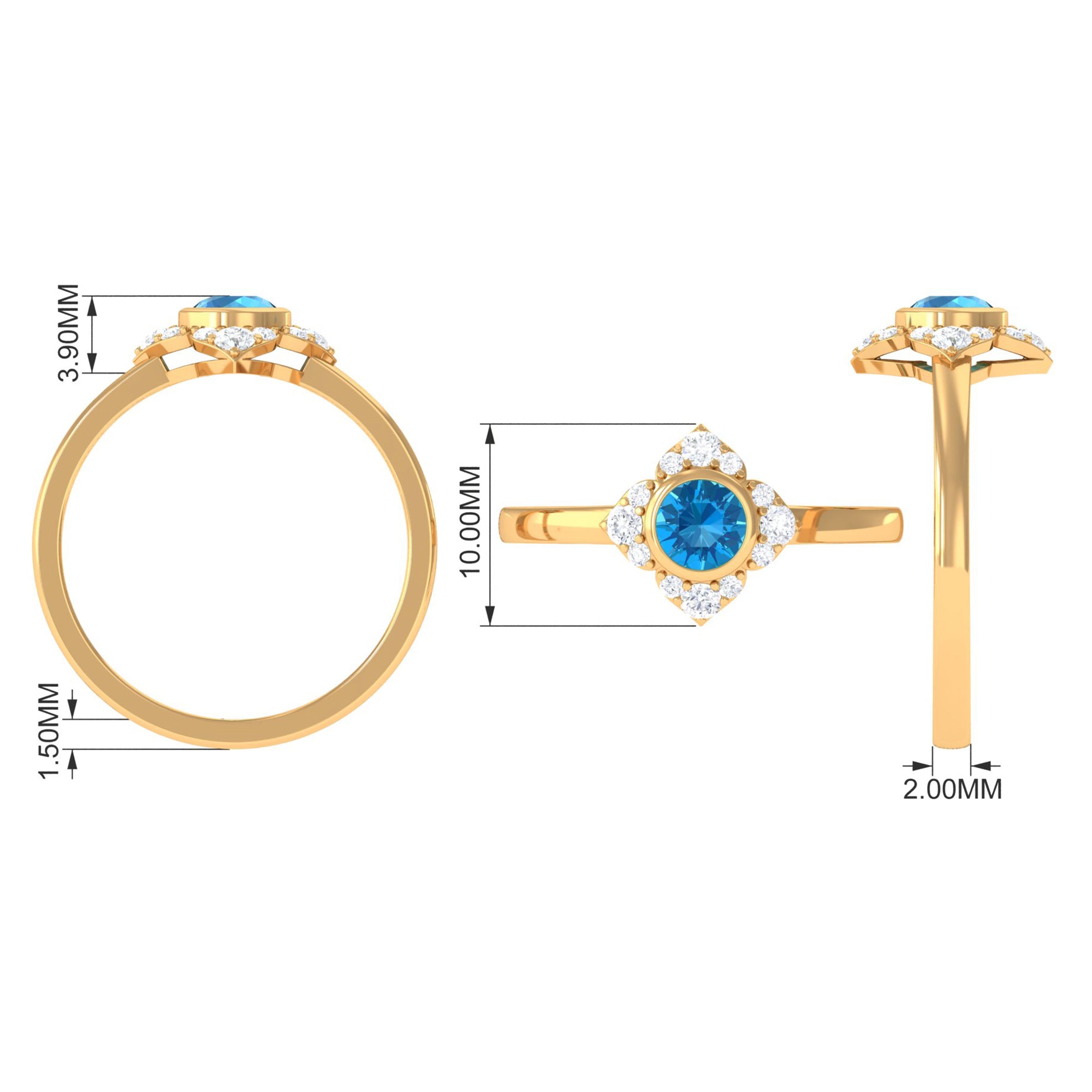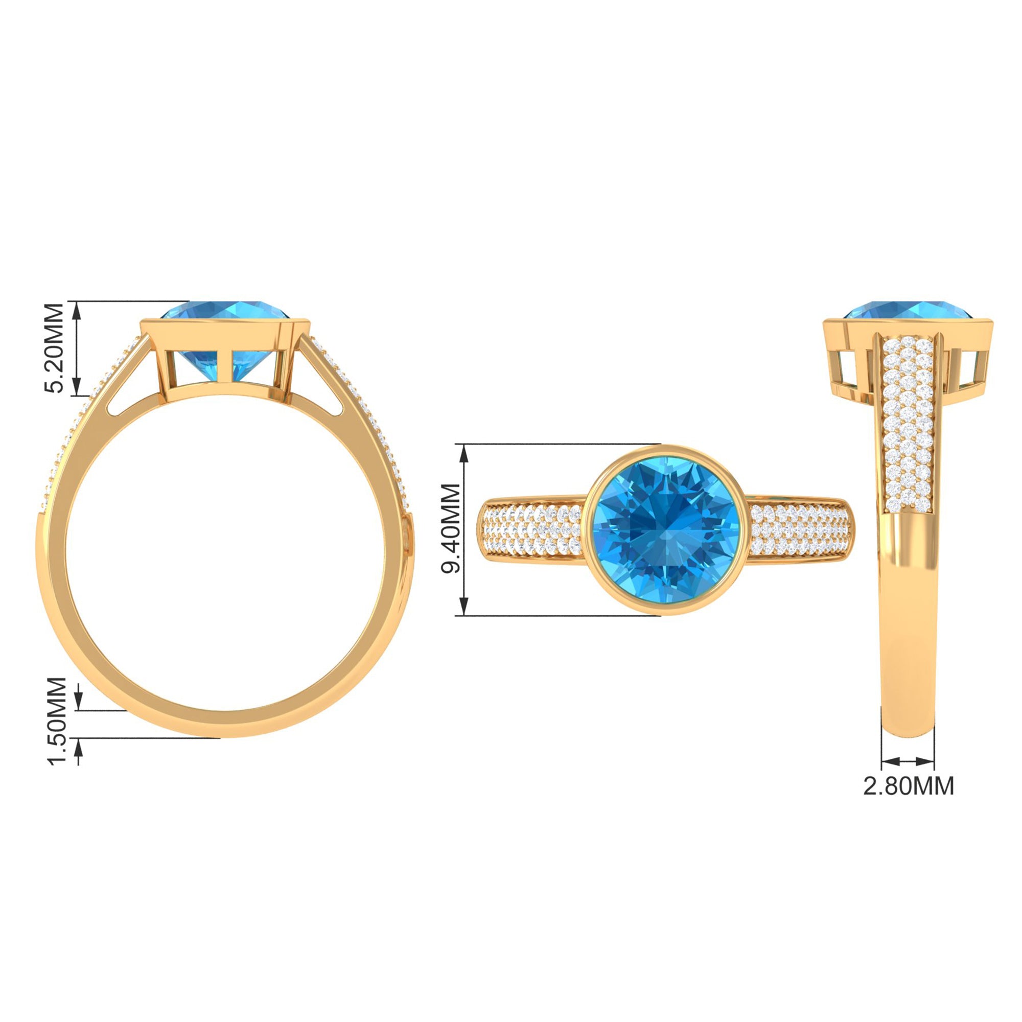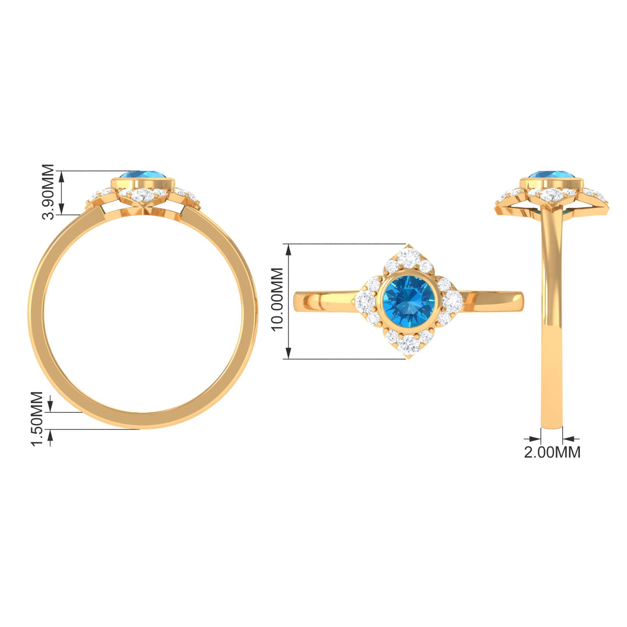 For the amalgamation of ring designs, our experts constantly experiment with different gold colors and Swiss blue topaz shapes to curate out of the box designs of Swiss blue topaz ring in yellow gold, white gold and rose gold. Popular & diverse shapes like oval, round, princess and cushion, further helps in broadening Swiss blue topaz engagement ring styles. Also, fine metal details and embellishments helps us in crafting vintage style blue topaz rings and many more to best suit your personal style.