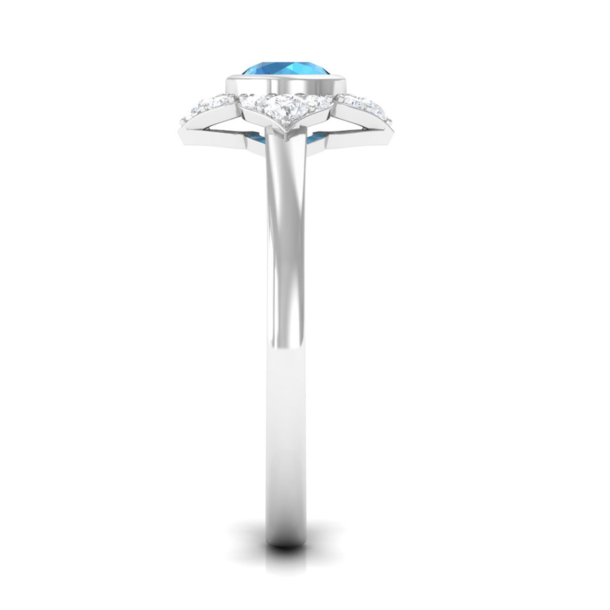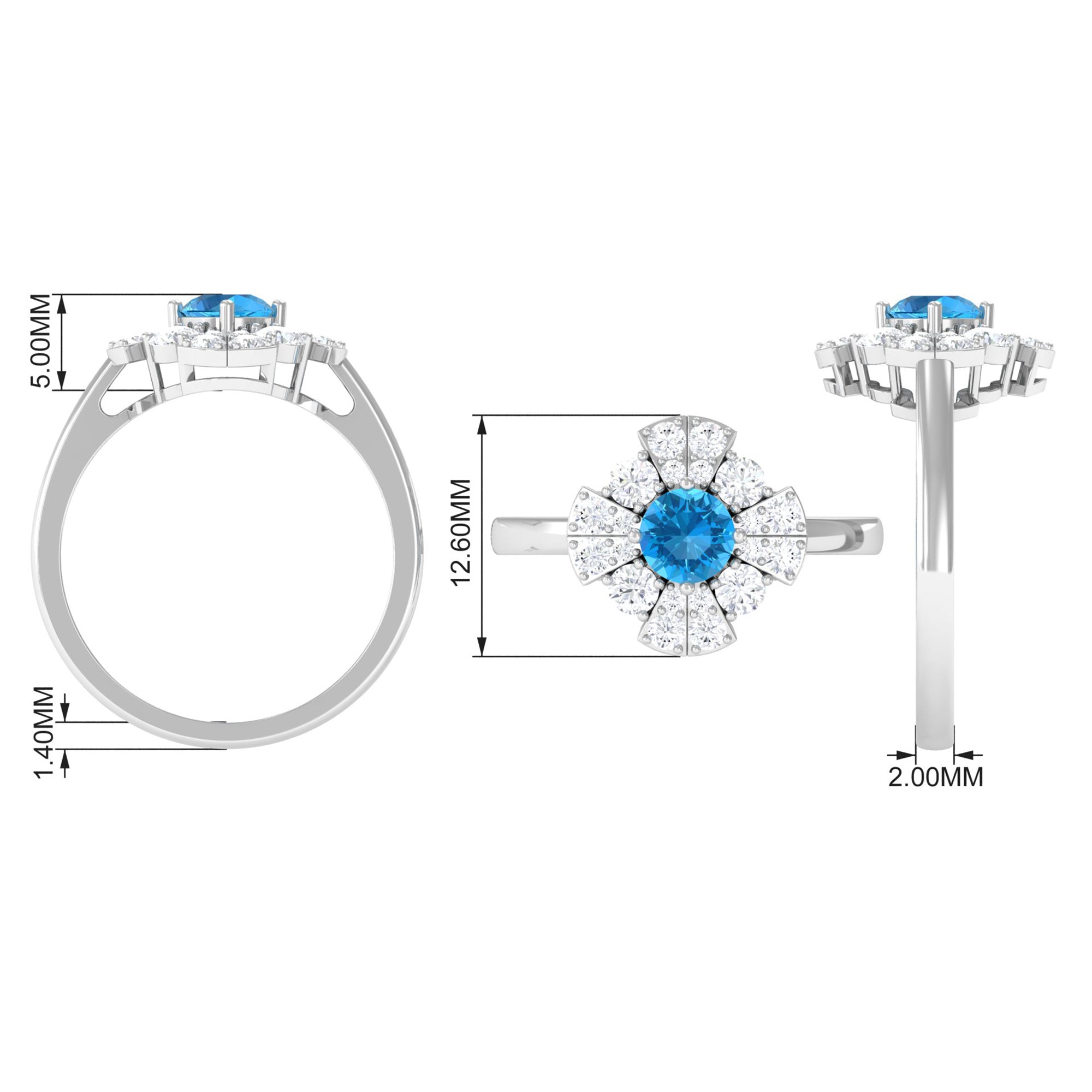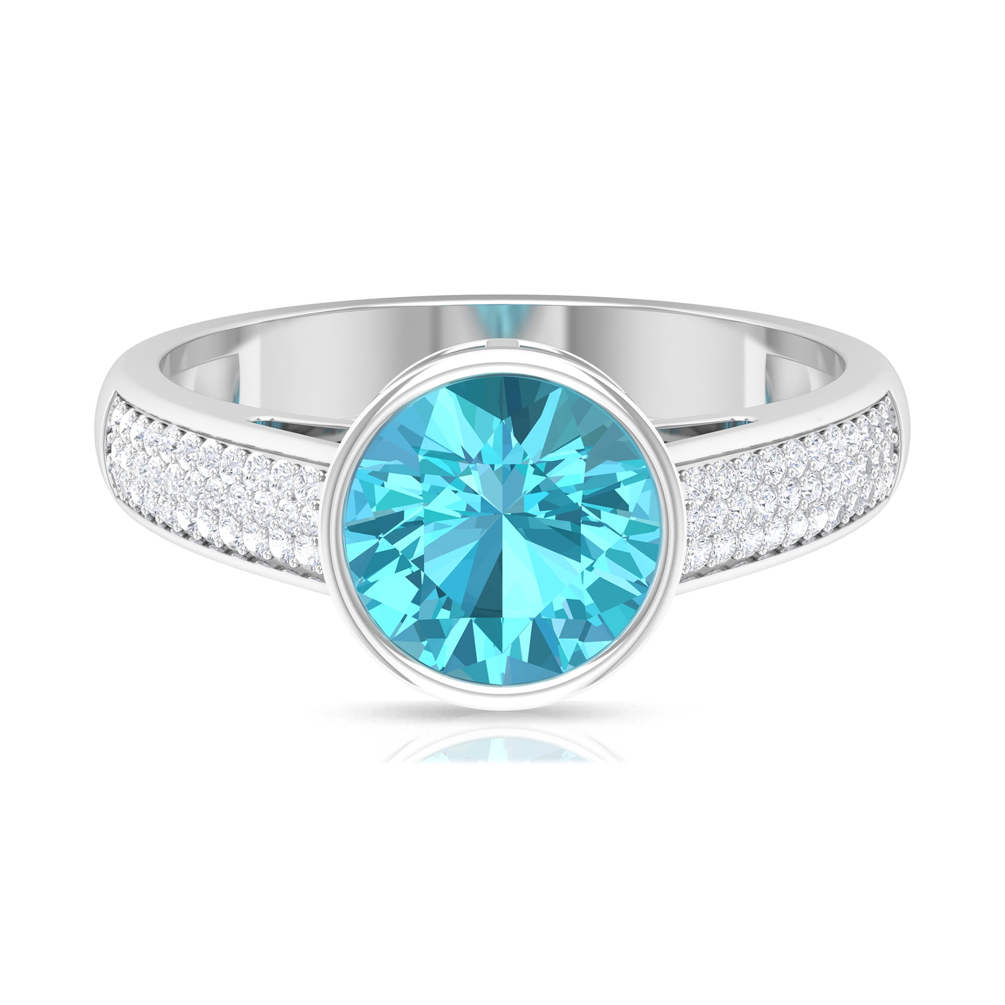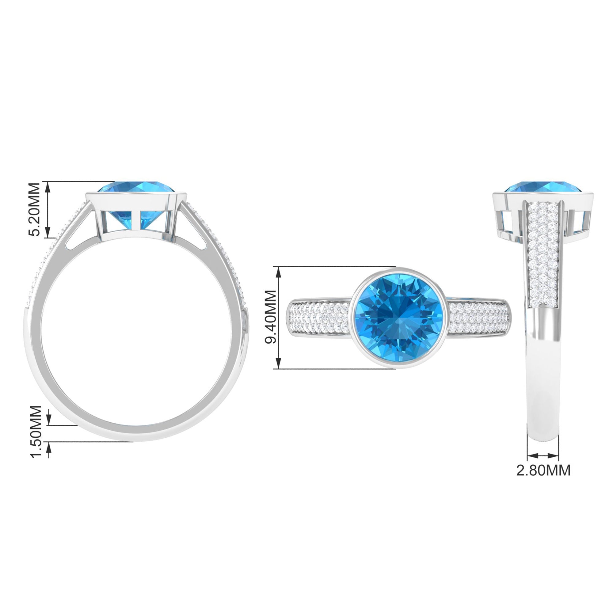 For the amalgamation of ring designs, our experts constantly experiment with different gold colors and Swiss blue topaz shapes to curate out of the box designs of Swiss blue topaz ring in yellow gold, white gold and rose gold. Popular & diverse shapes like oval, round, princess and cushion, further helps in broadening Swiss blue topaz engagement ring styles. Also, fine metal details and embellishments helps us in crafting vintage style blue topaz rings and many more to best suit your personal style.
